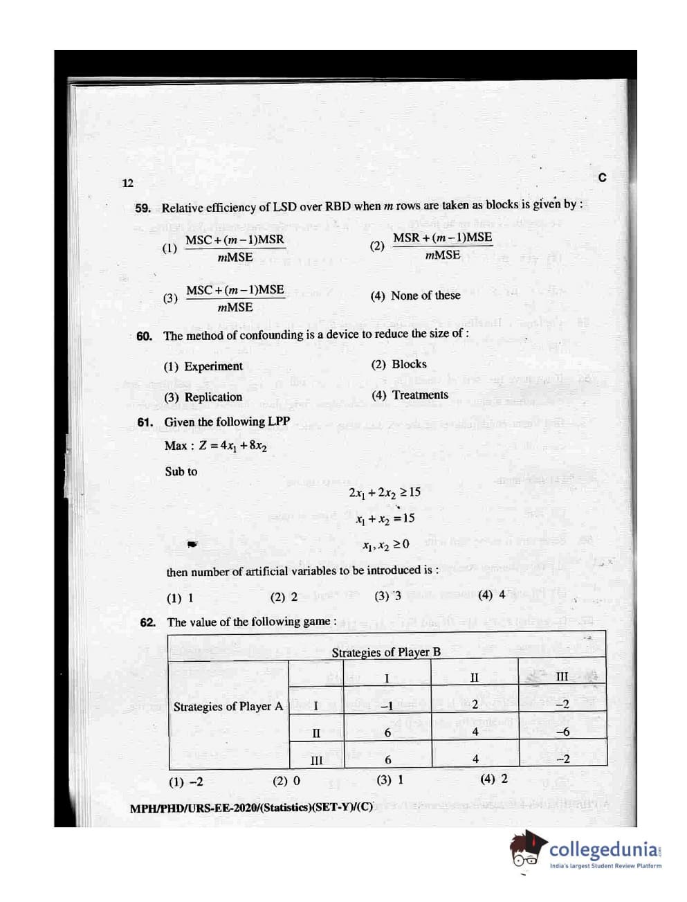 | MDUCEE 2020 M.Phil/Ph.D/URS - Statistics Set C Question Paper PDF | MDUCEE 2020 M.Phil/Ph.D/URS - Statistics Set C Answer Key PDF |