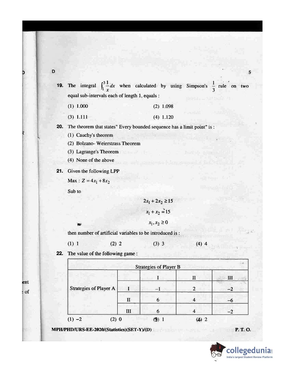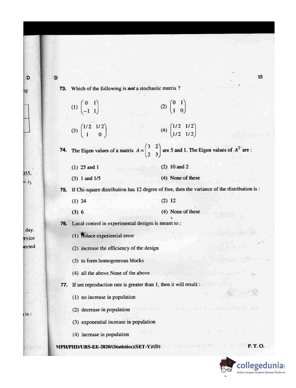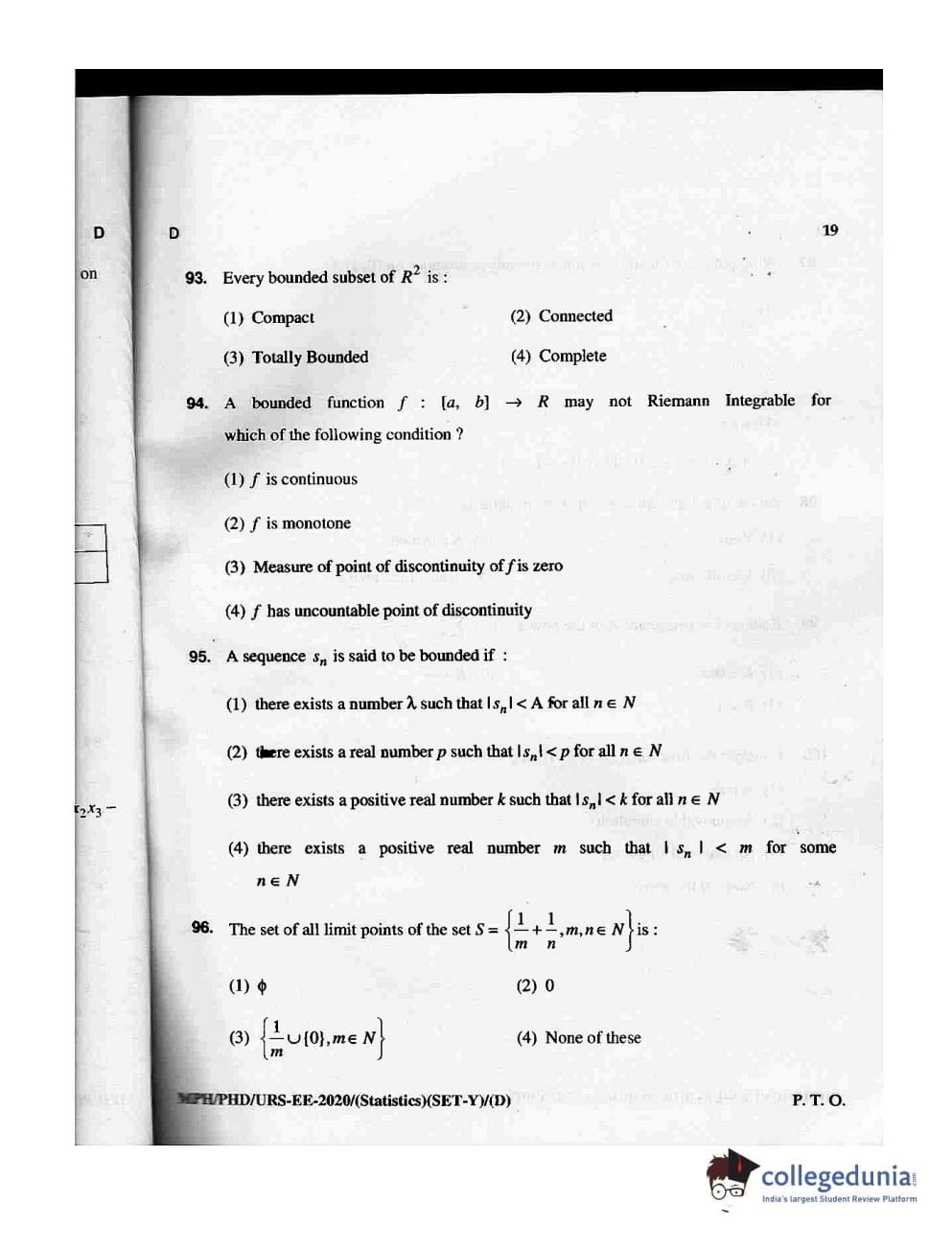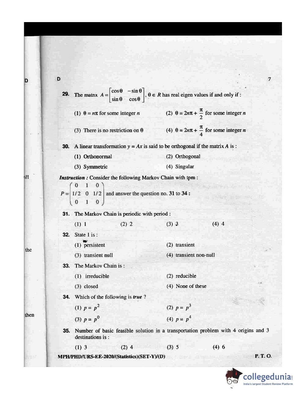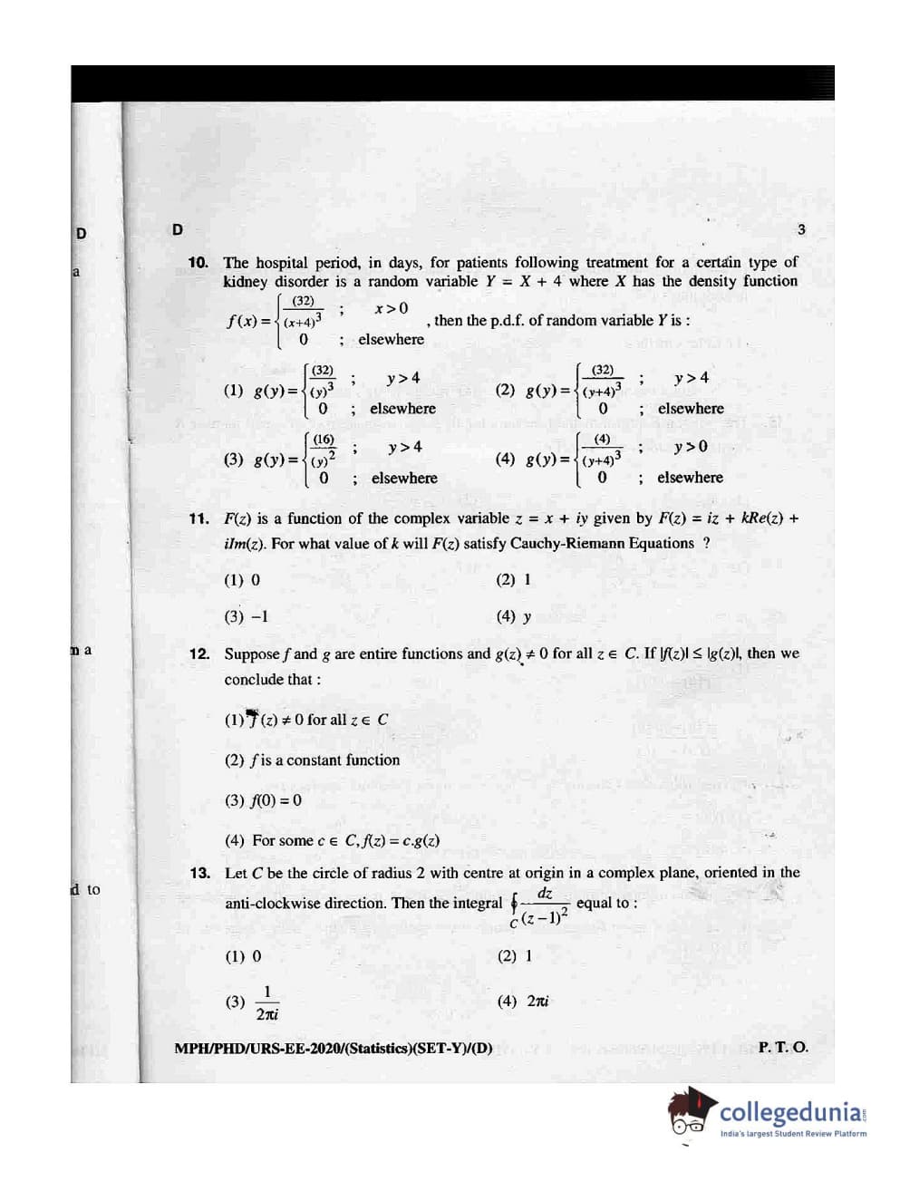 MDUCEE 2020 M.Phil/Ph.D/URS - Statistics Set D Question Paper with Answer Key PDFs