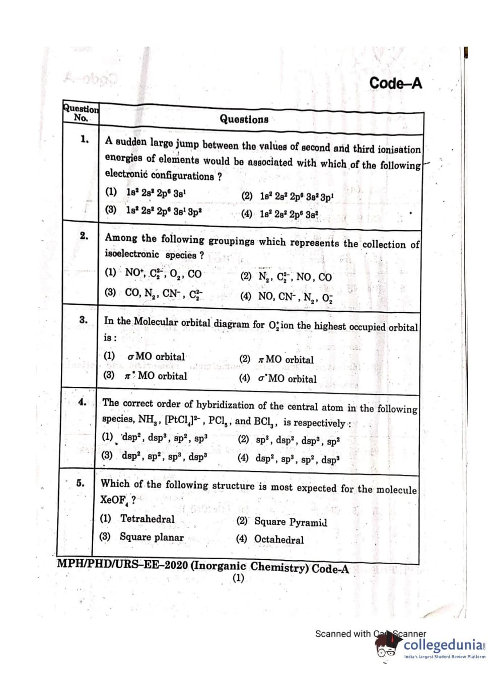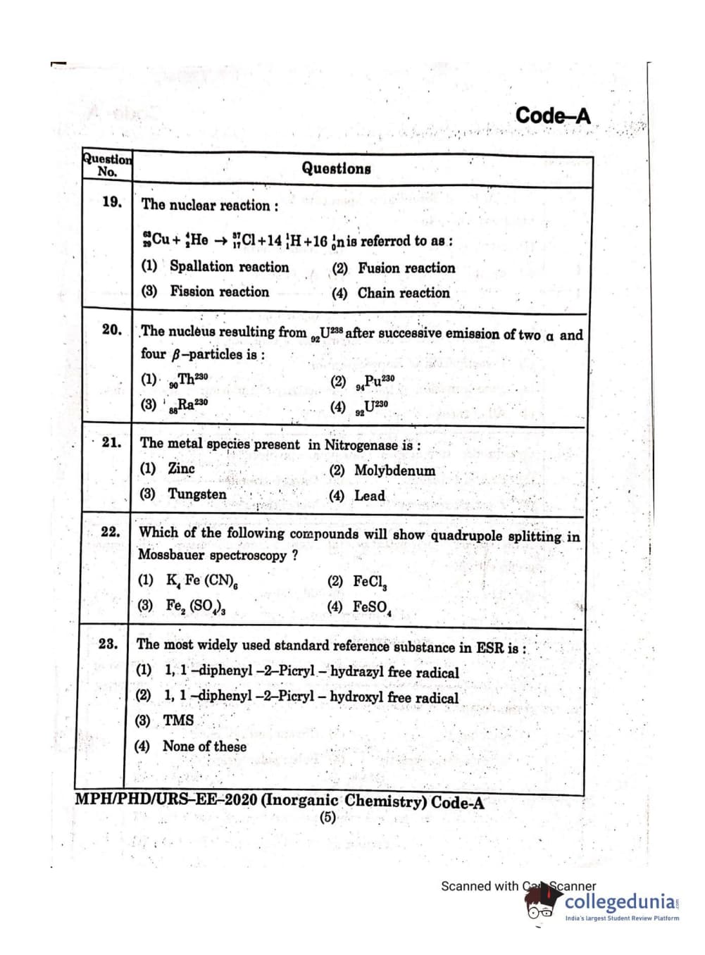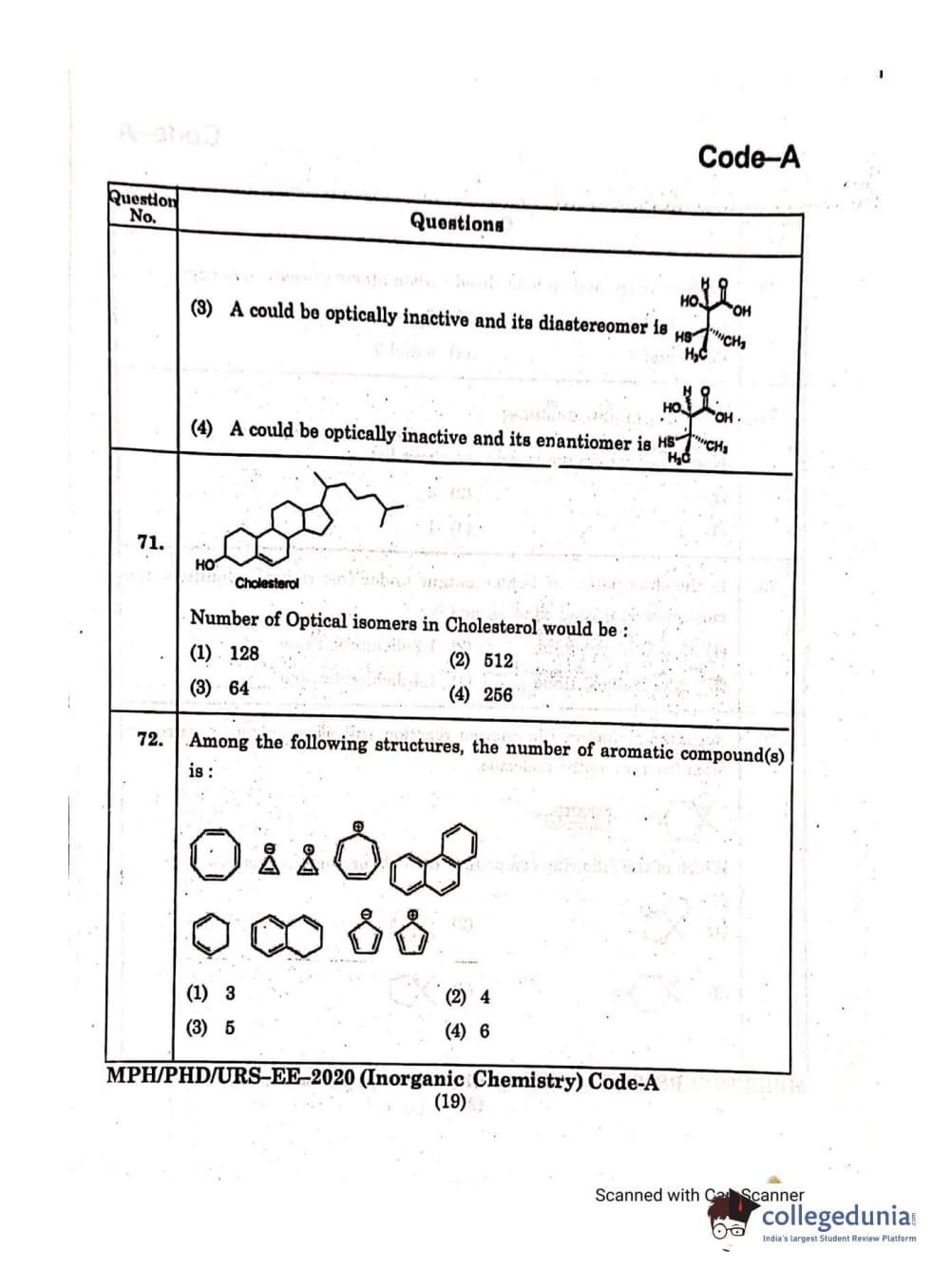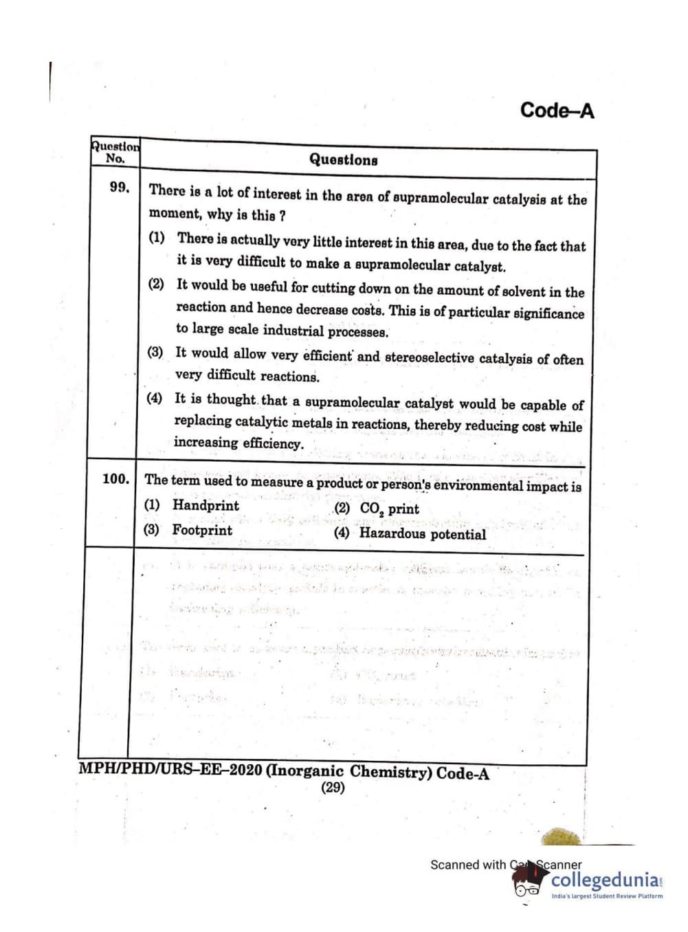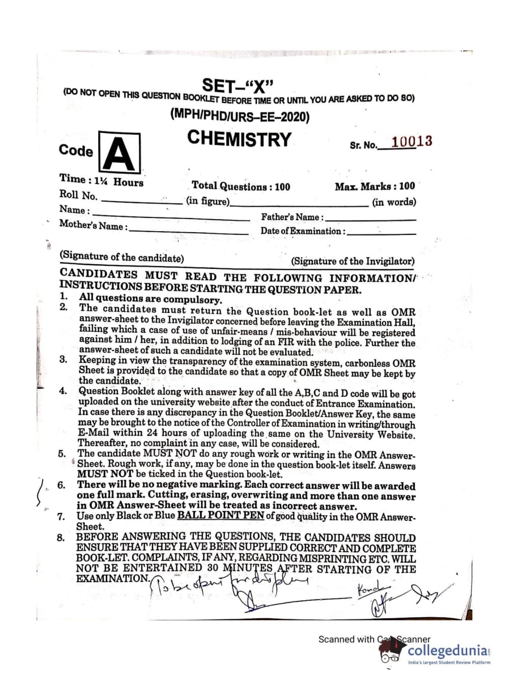 | MDUCEE 2020 Ph.D./URS Chemistry Set A Question Paper PDF | MDUCEE 2020 Ph.D./URS Chemistry Set A Answer Key PDF |