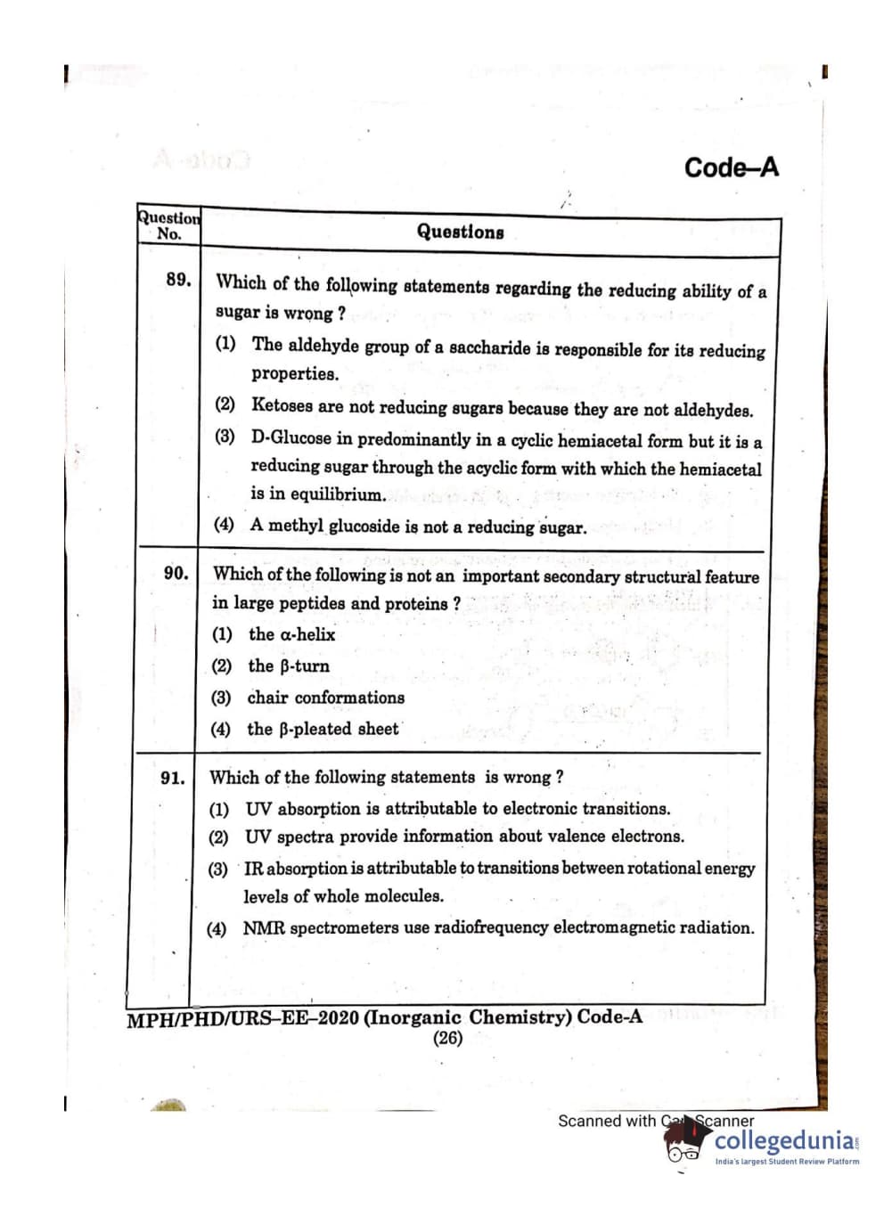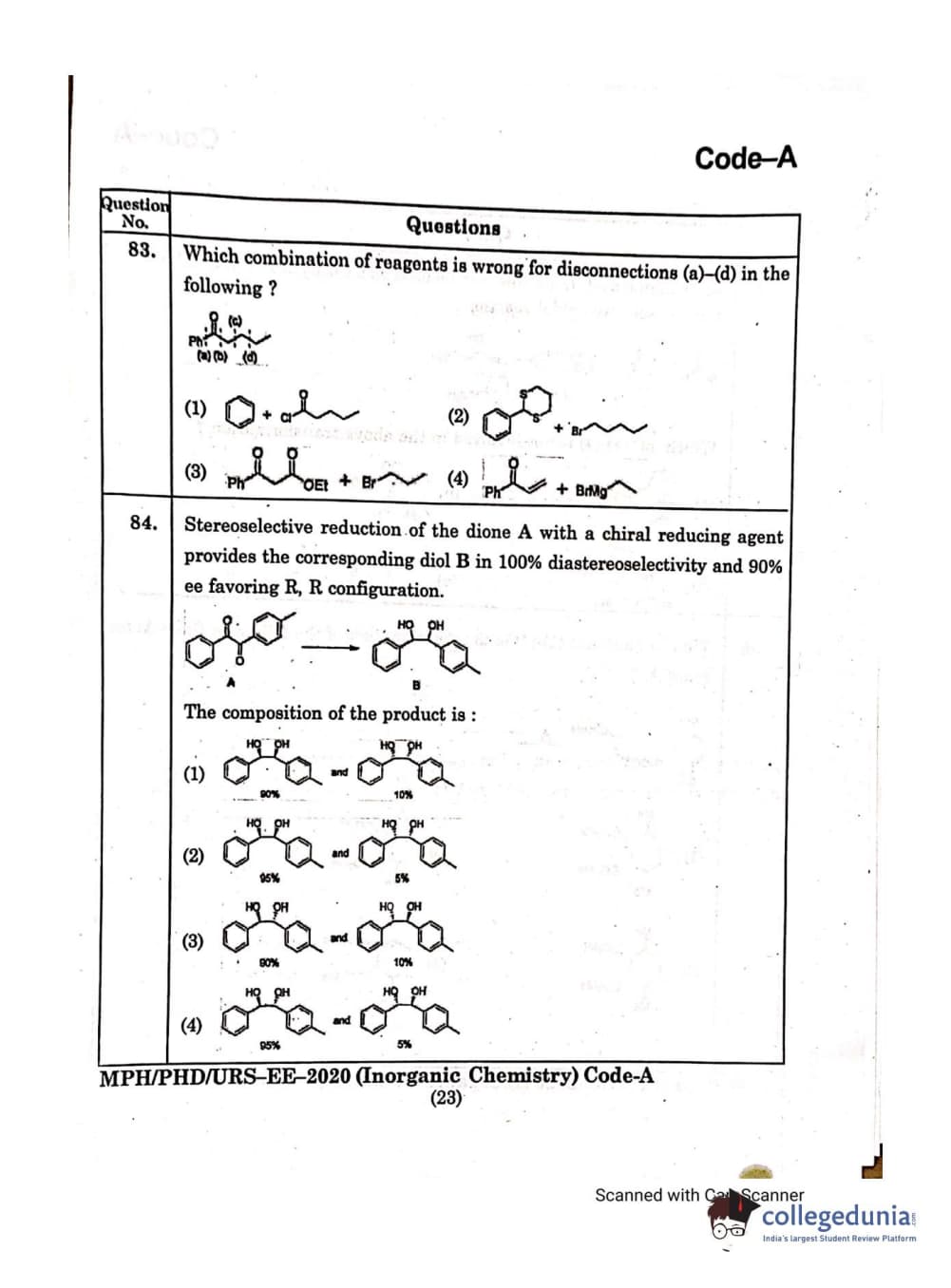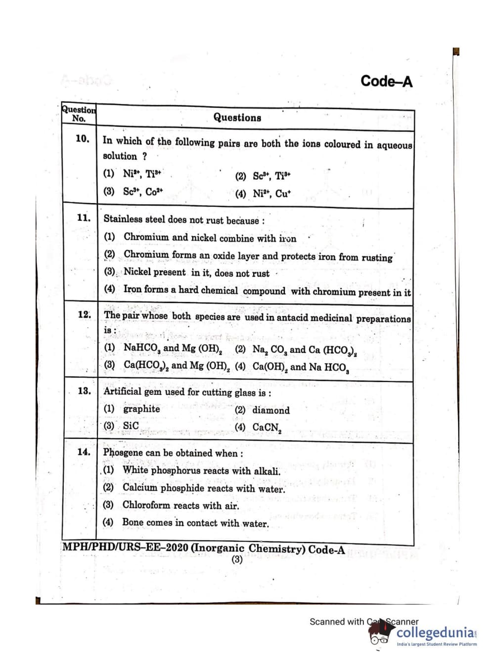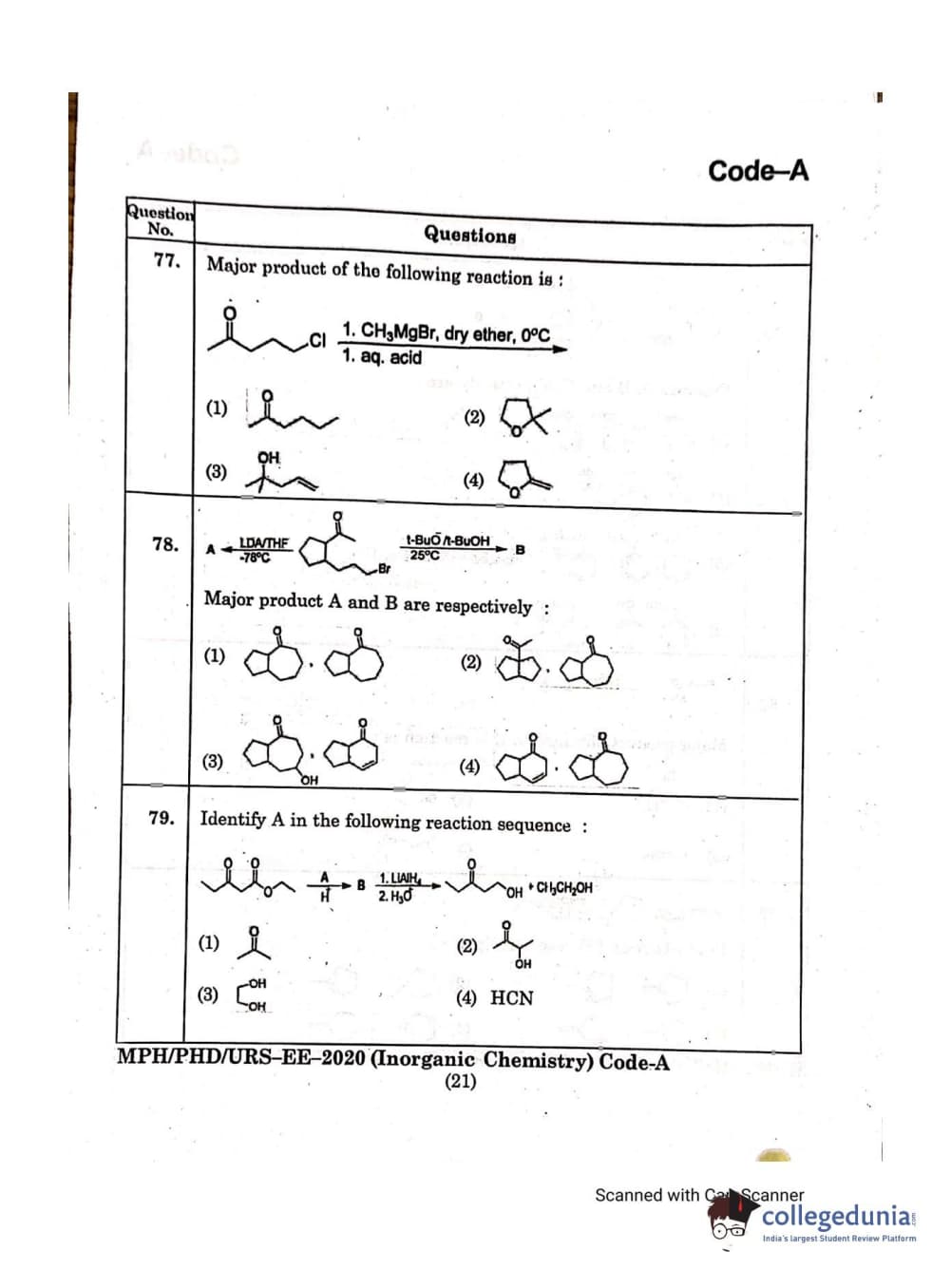 | MDUCEE 2020 Ph.D./URS Chemistry Set A Question Paper PDF | MDUCEE 2020 Ph.D./URS Chemistry Set A Answer Key PDF |