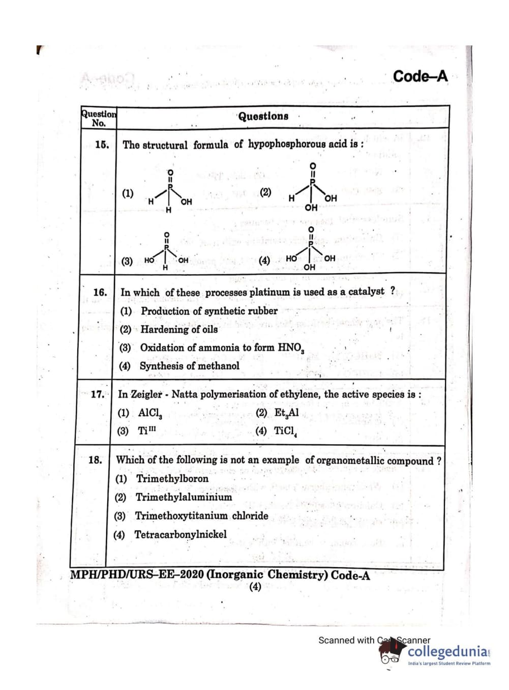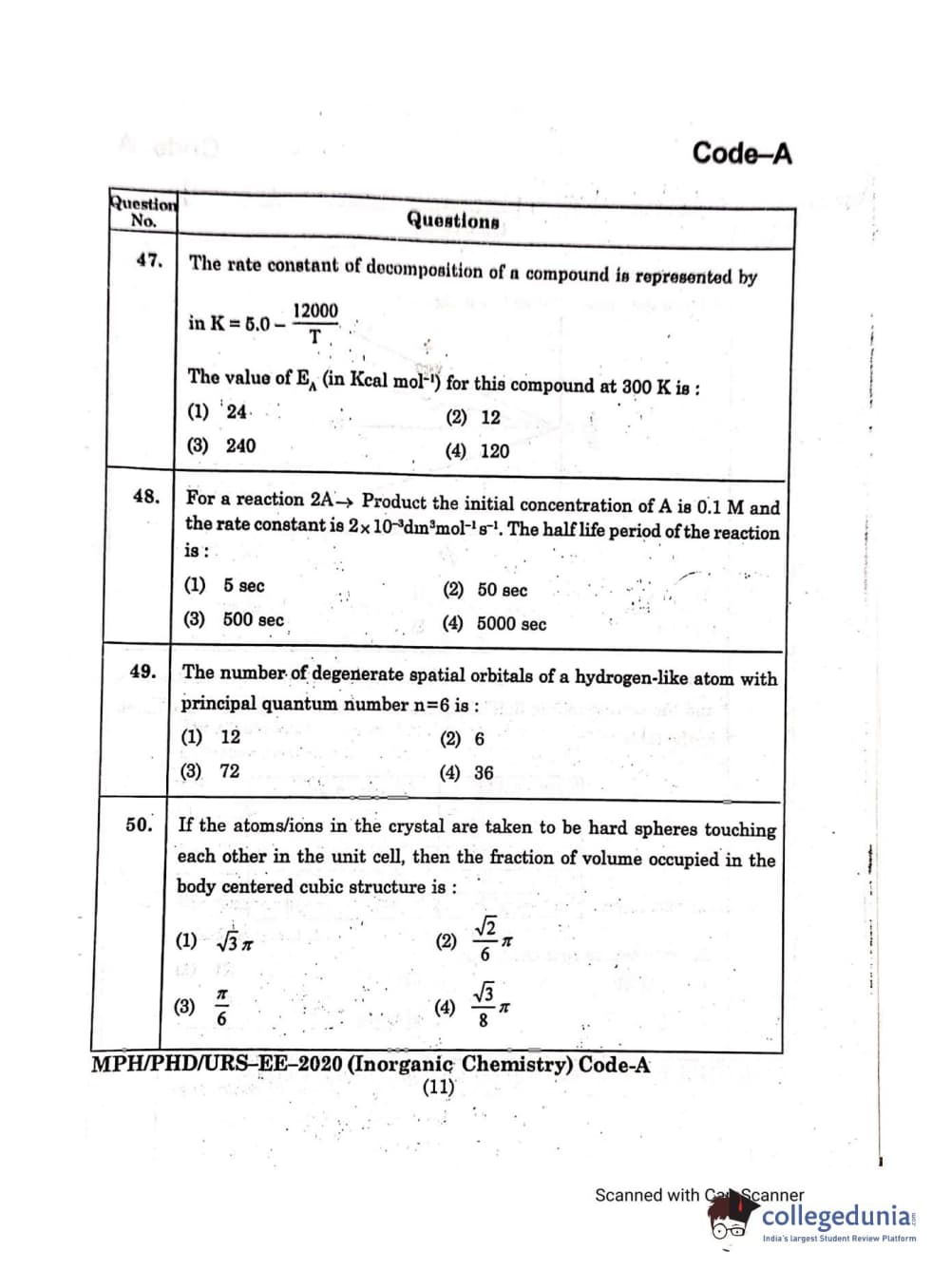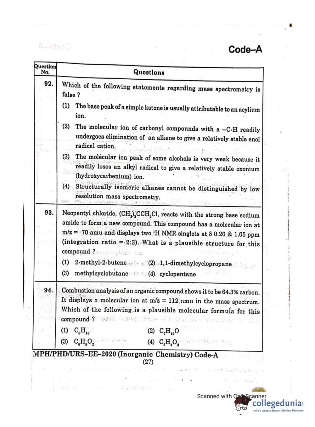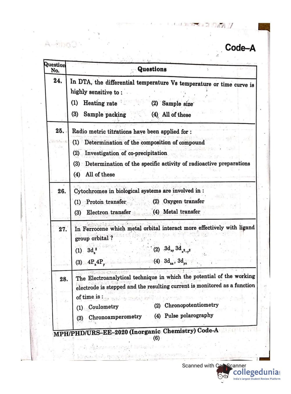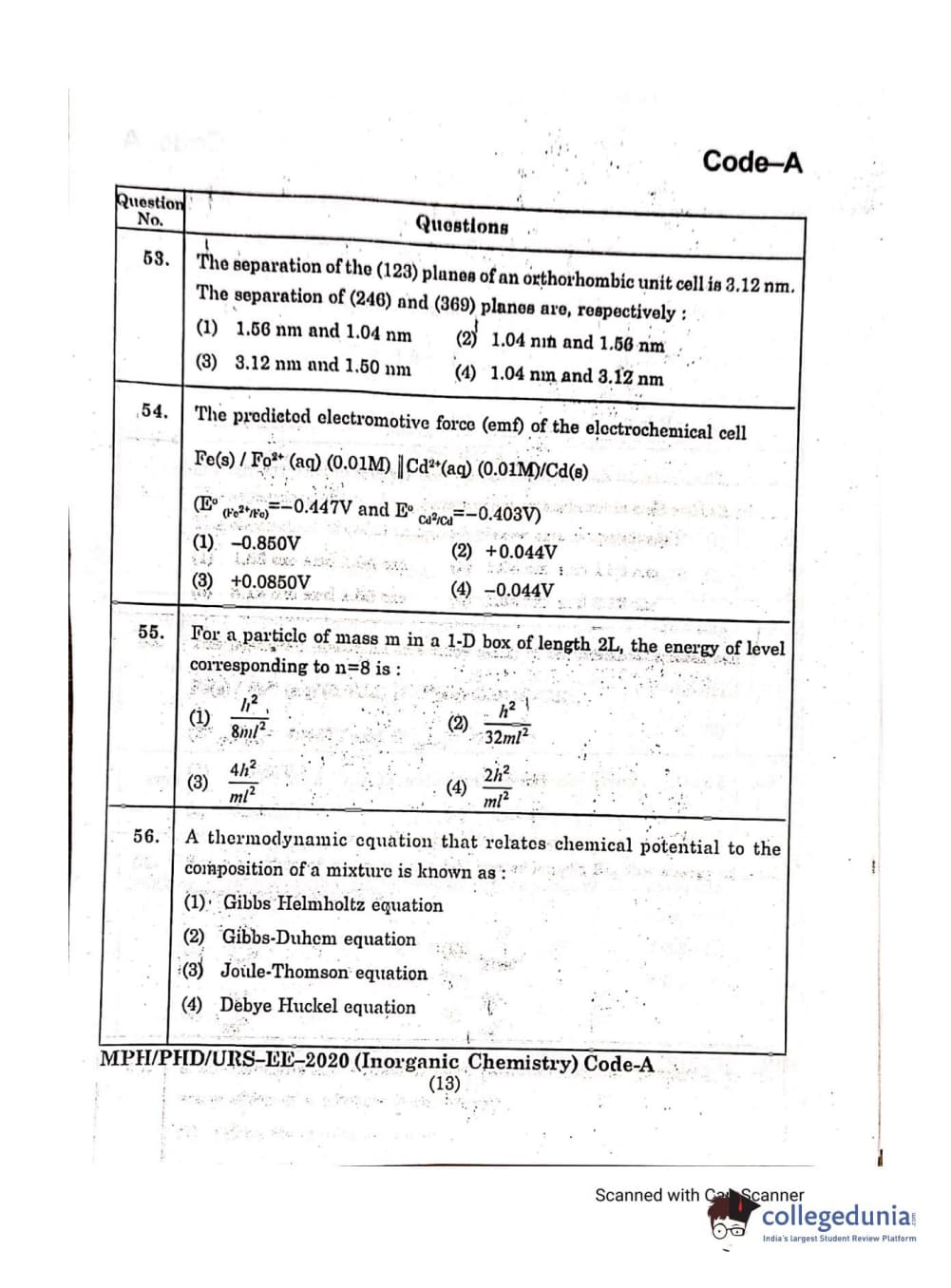| MDUCEE 2020 Ph.D./URS Chemistry Set A Question Paper PDF | MDUCEE 2020 Ph.D./URS Chemistry Set A Answer Key PDF |
