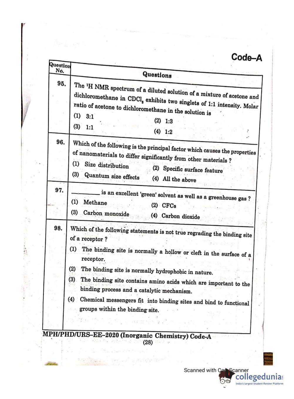 MDUCEE 2020 Ph.D./URS Chemistry Set A Question Paper with Answer Key PDFs