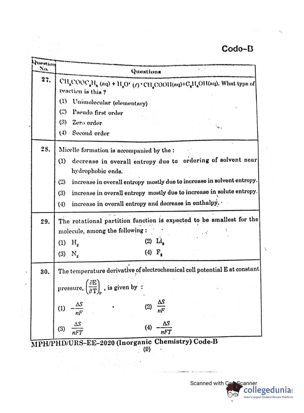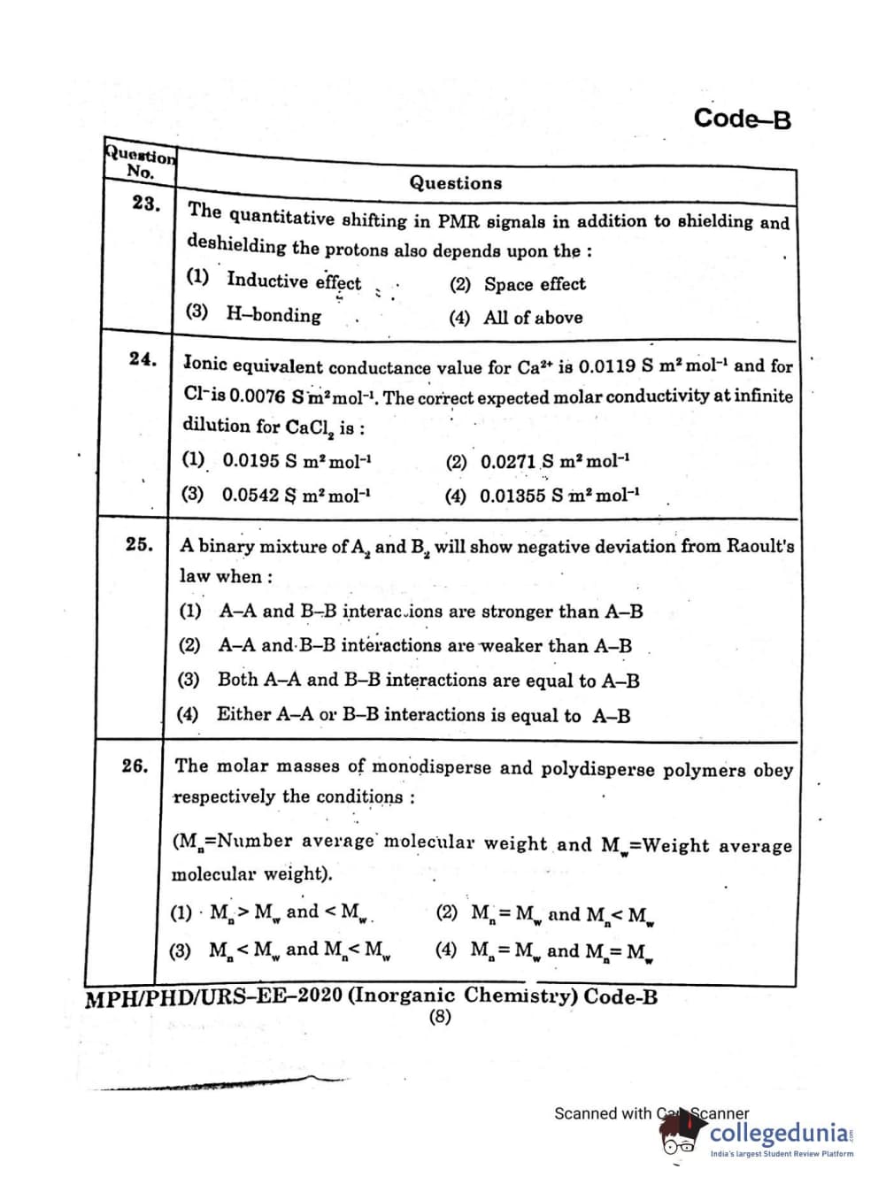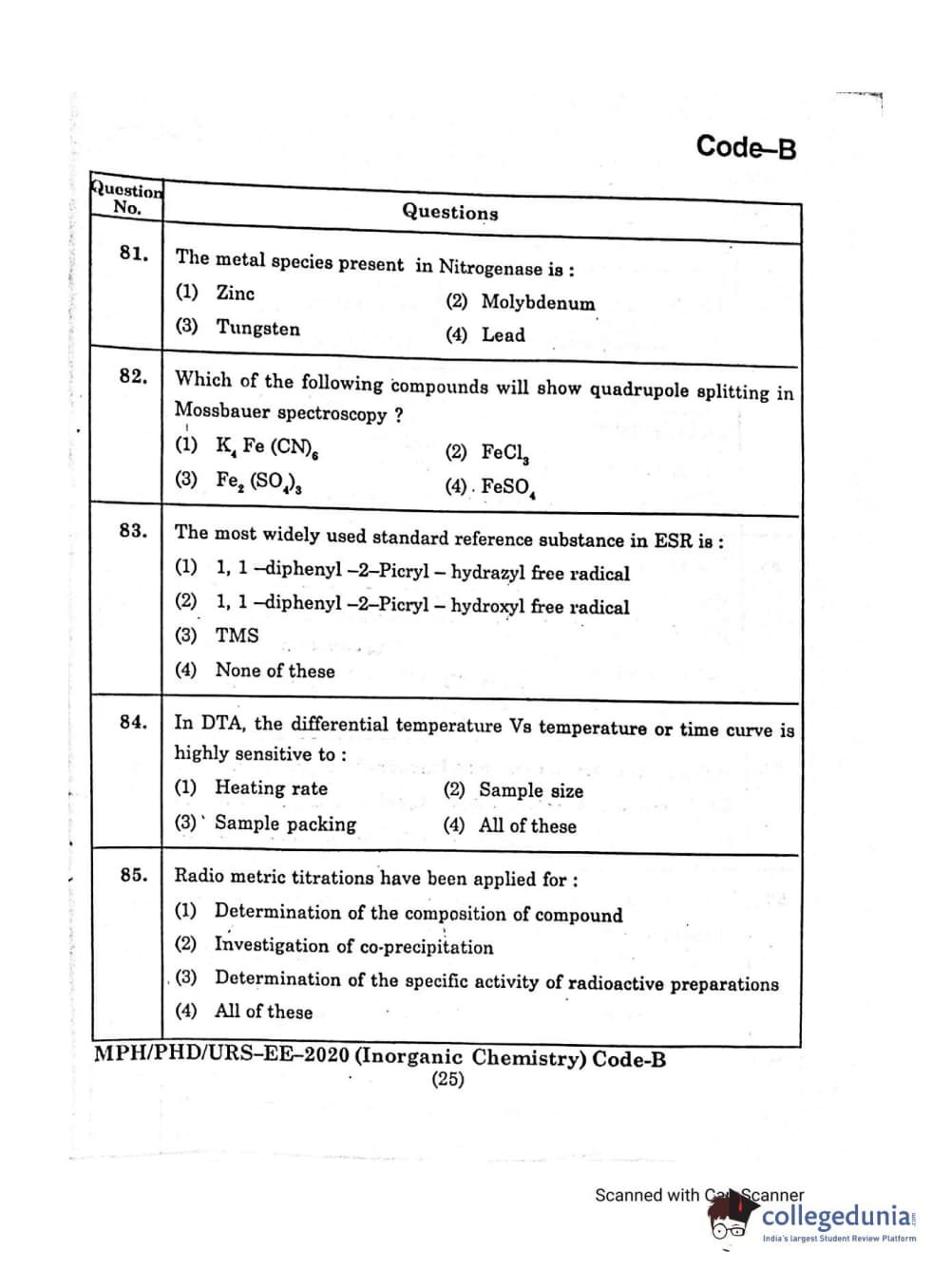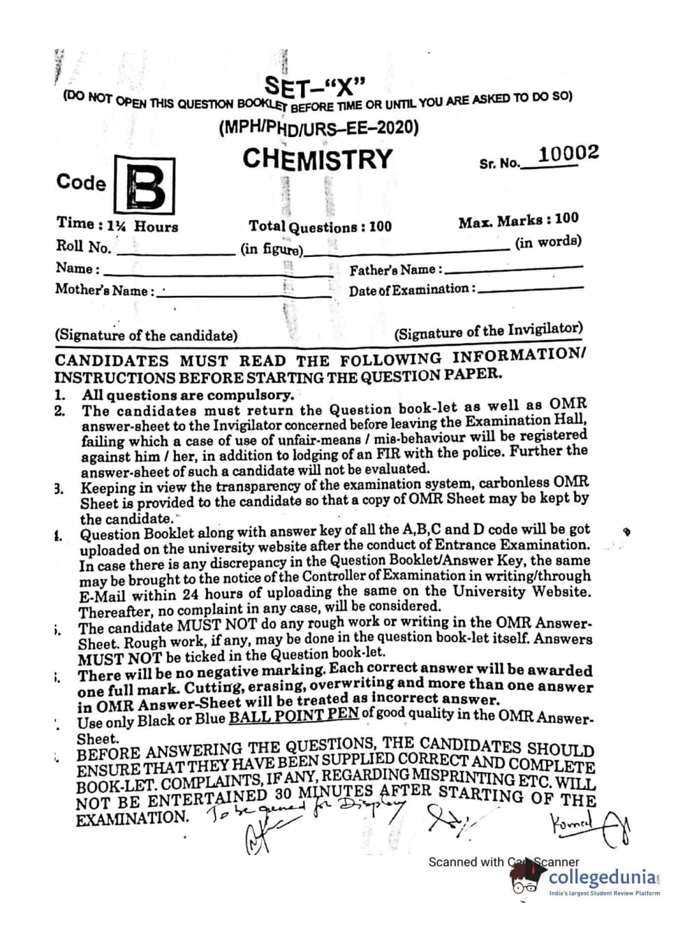 MDUCEE 2020 Ph.D./URS Chemistry Set B Question Paper with Answer Key PDFs