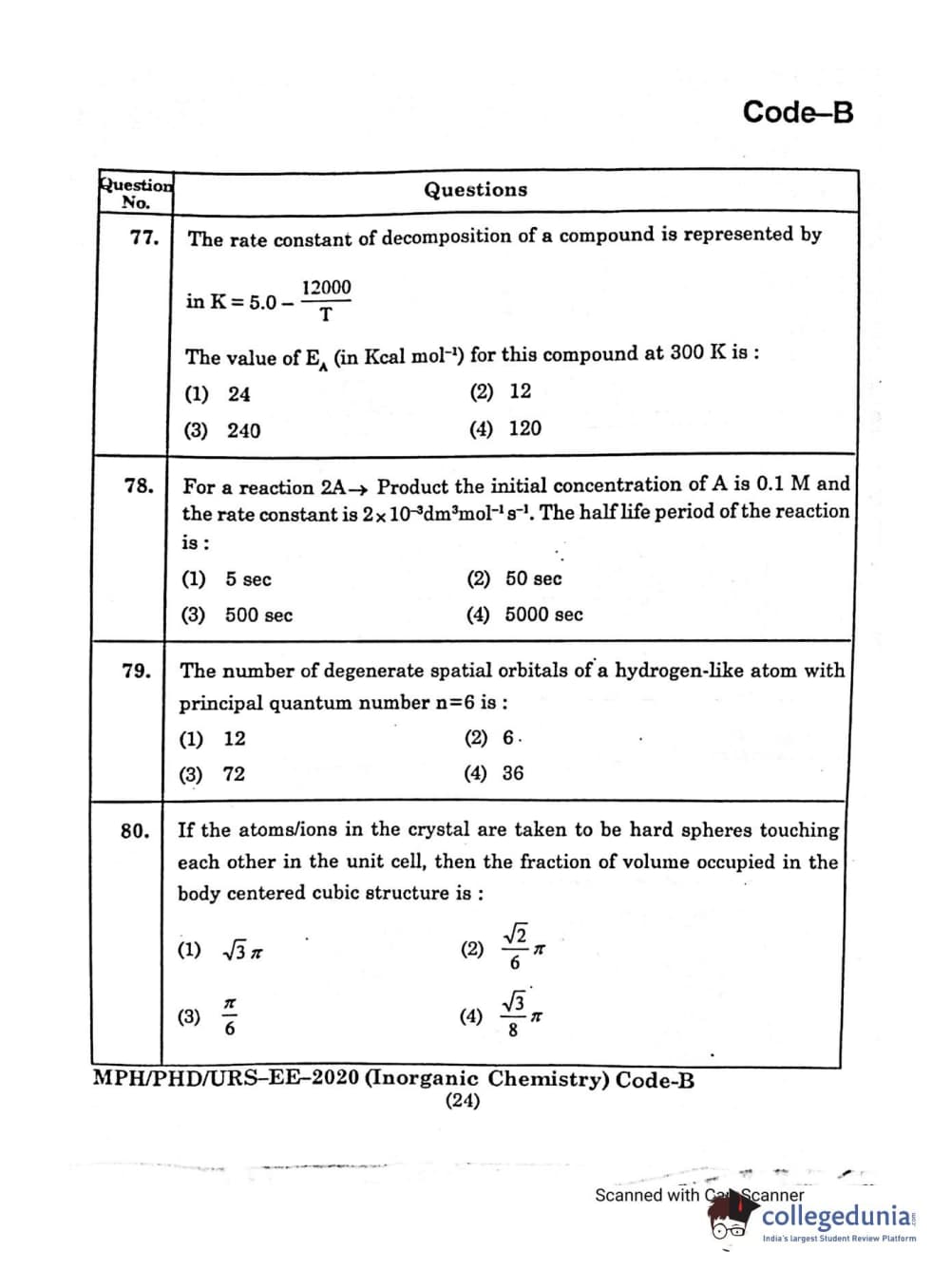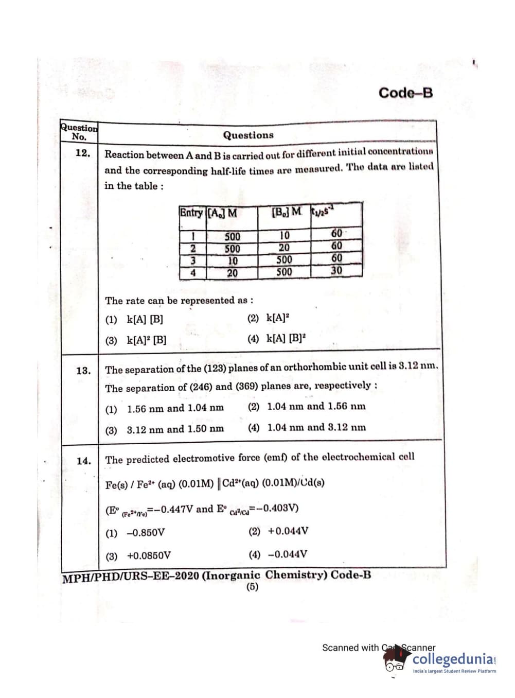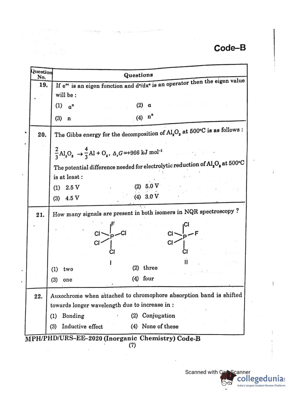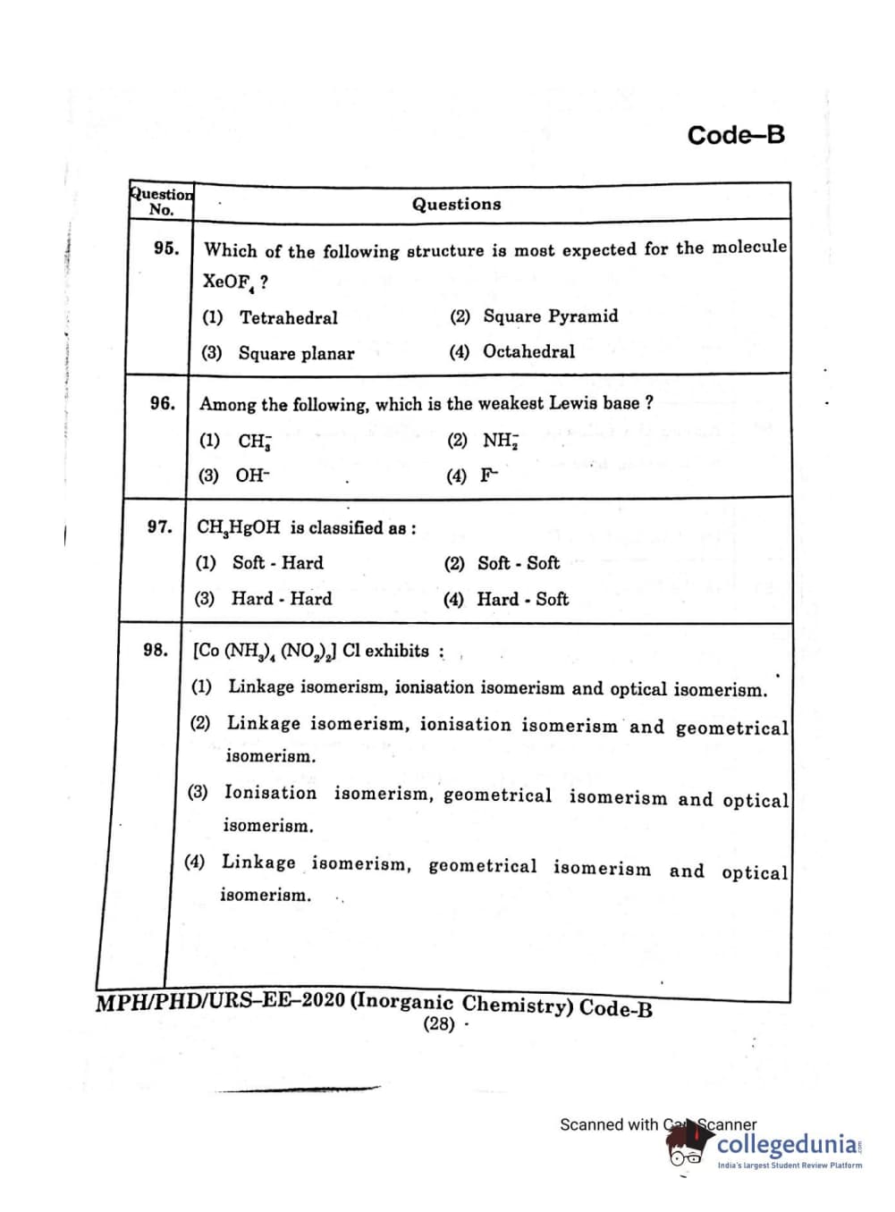 MDUCEE 2020 Ph.D./URS Chemistry Set B Question Paper with Answer Key PDFs