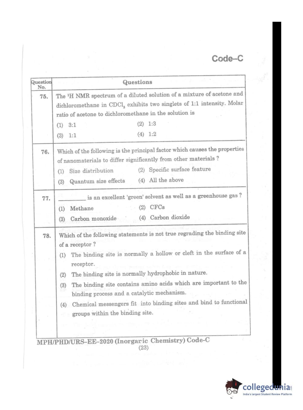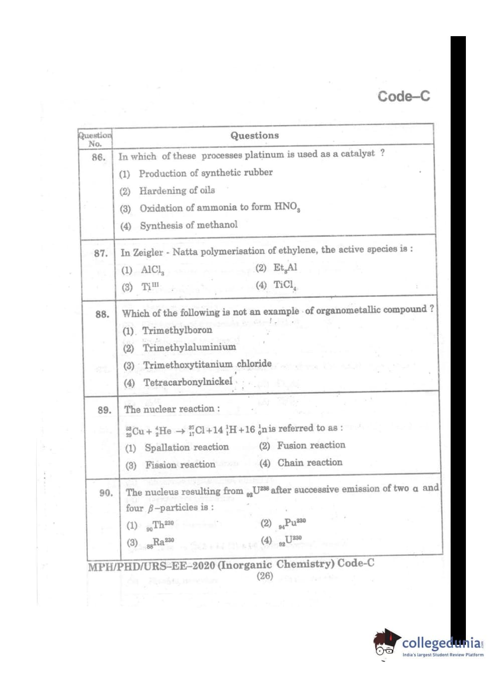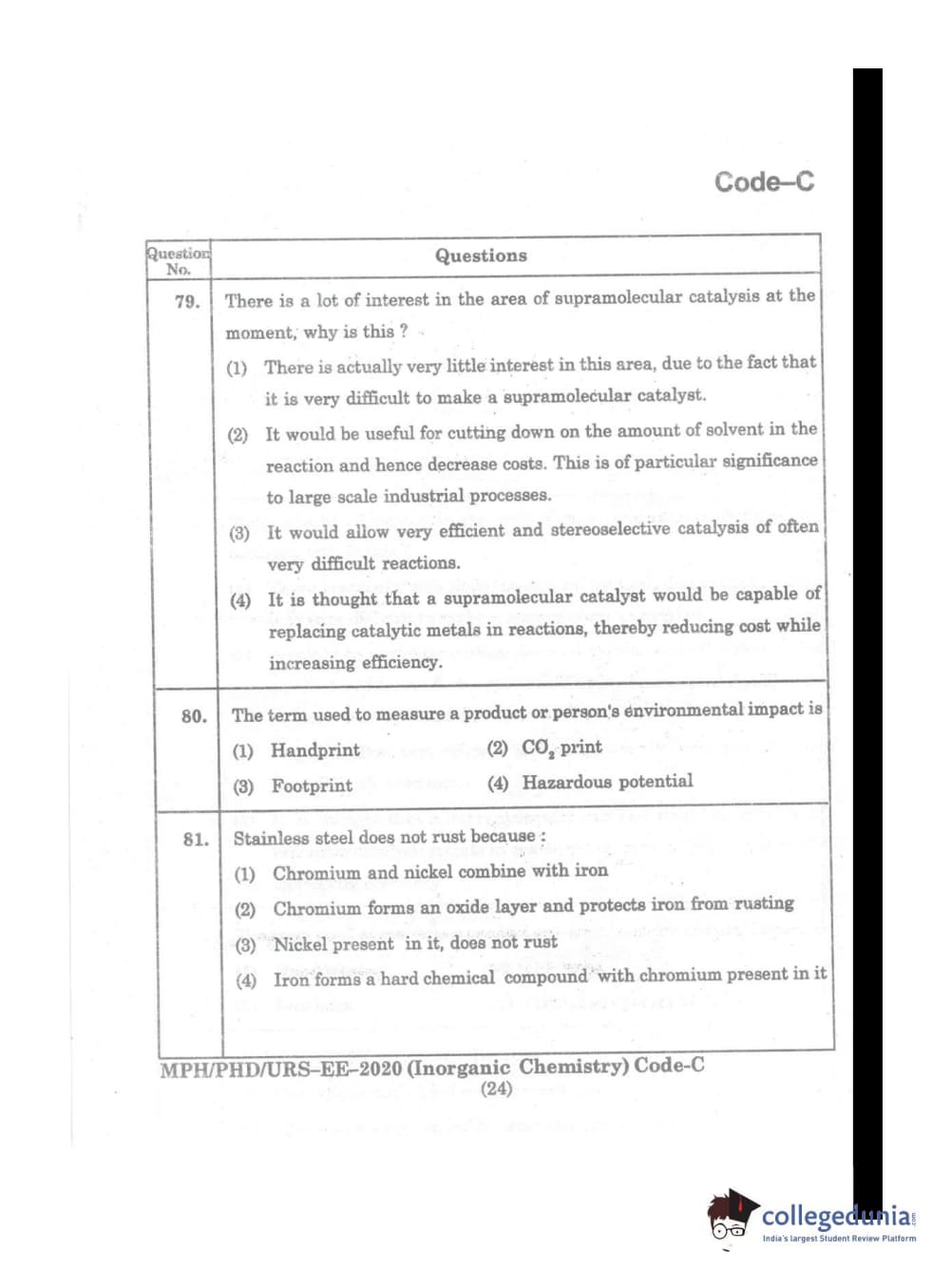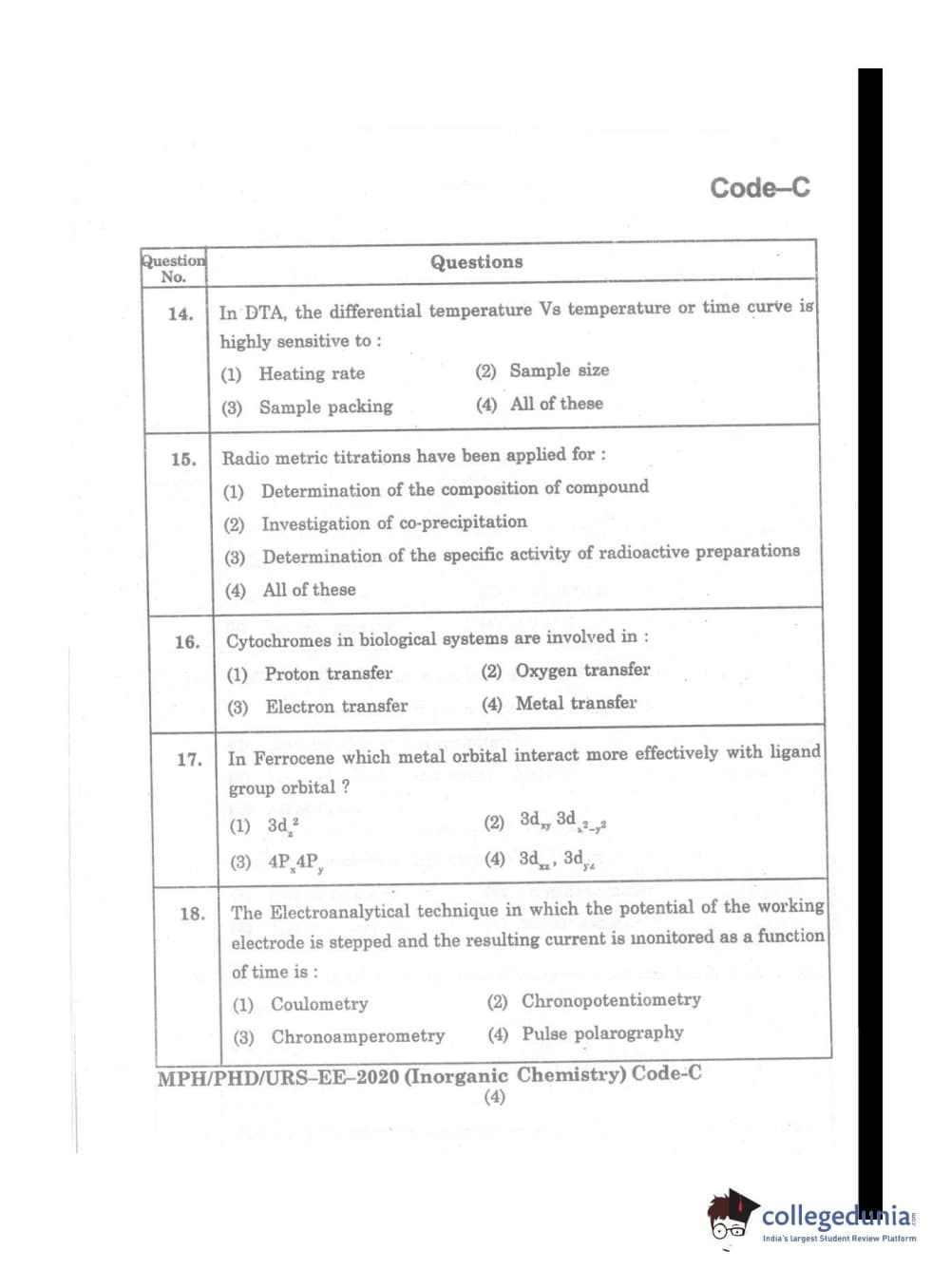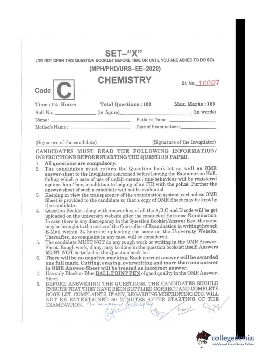 | MDUCEE 2020 Ph.D./URS Chemistry Set C Question Paper PDF | MDUCEE 2020 Ph.D./URS Chemistry Set C Answer Key PDF |
