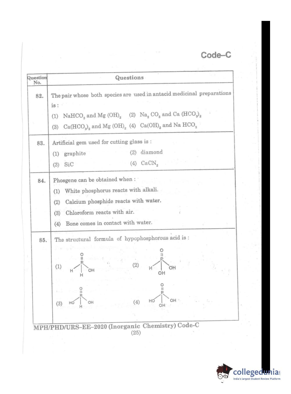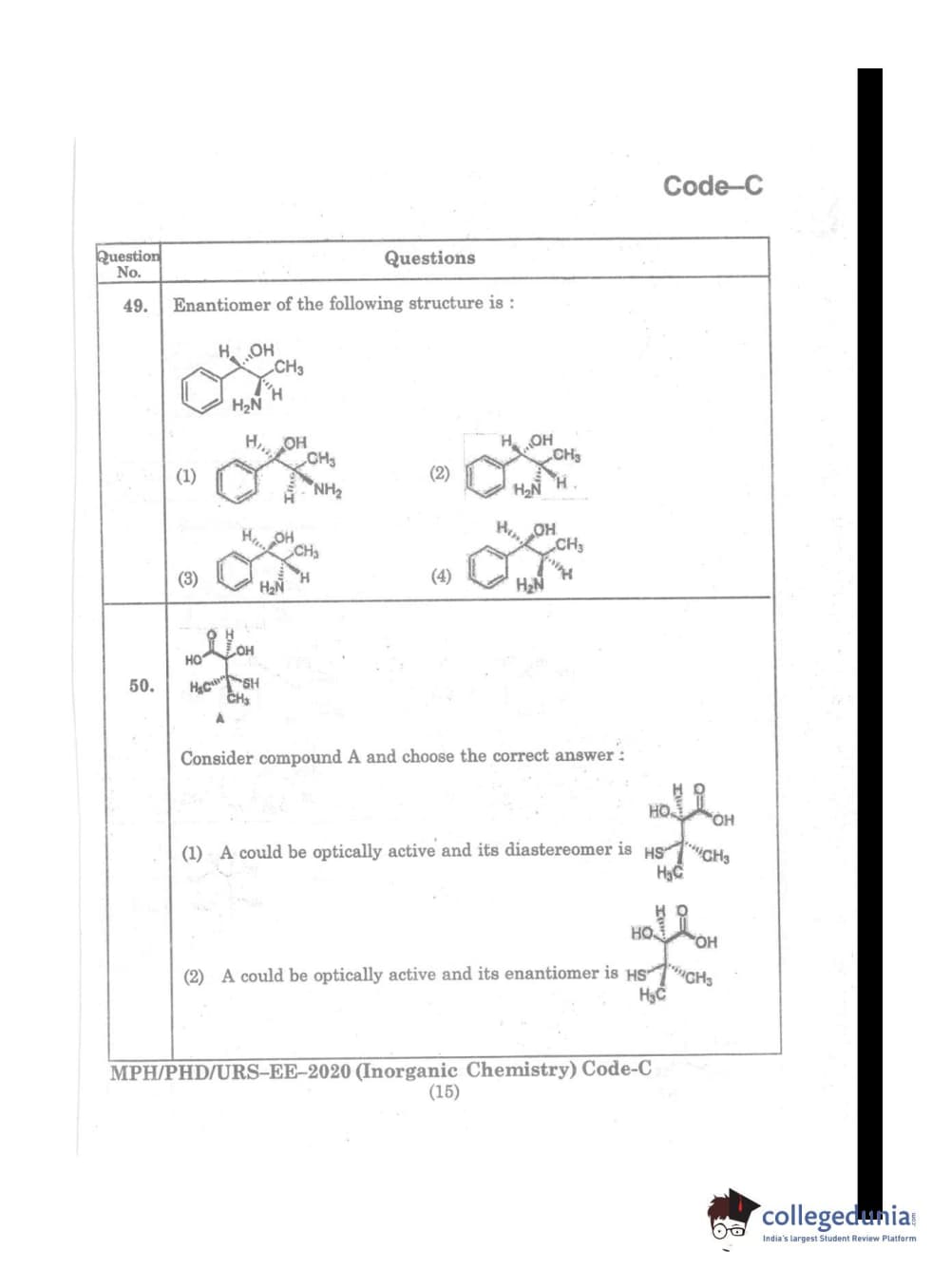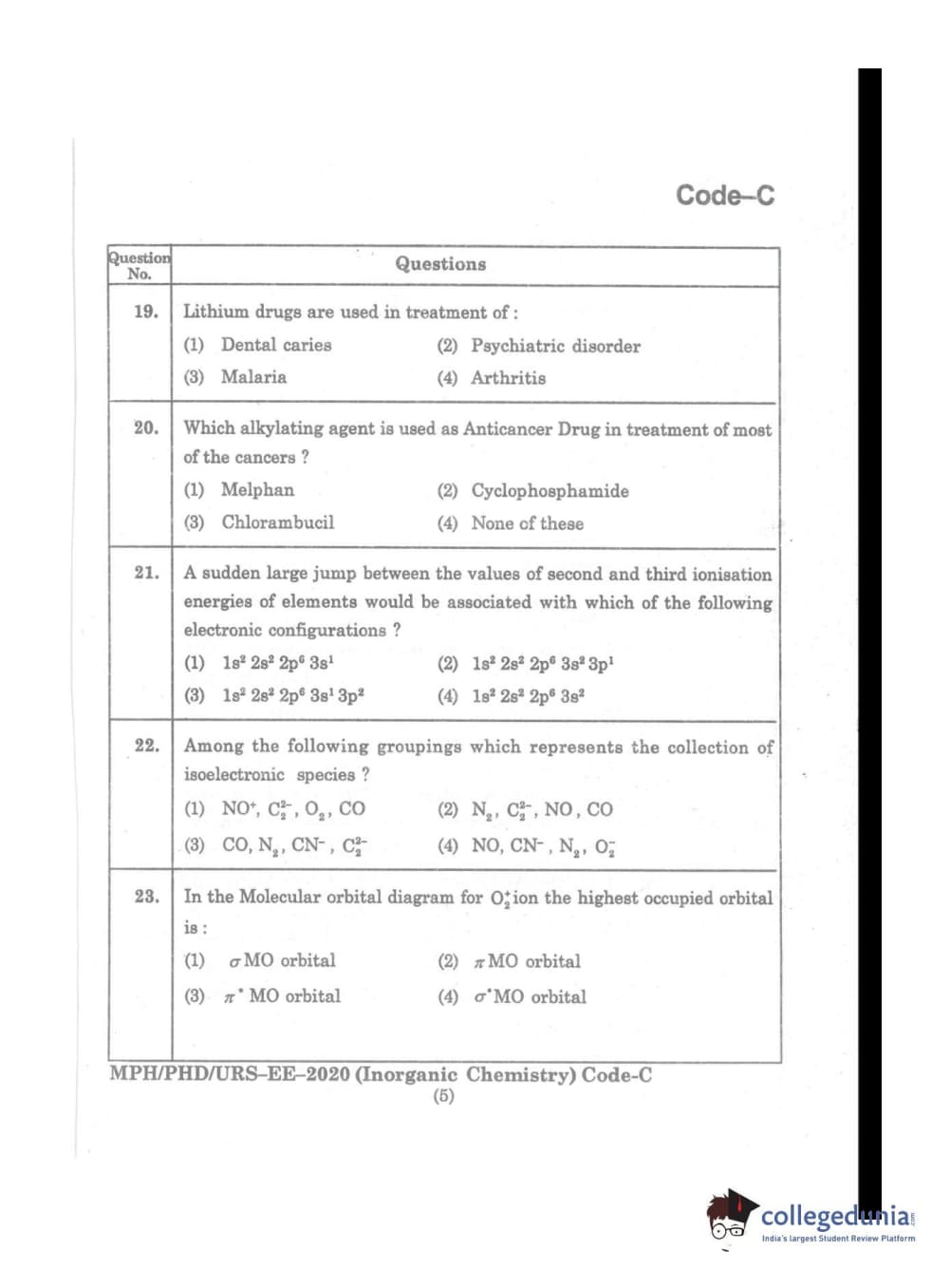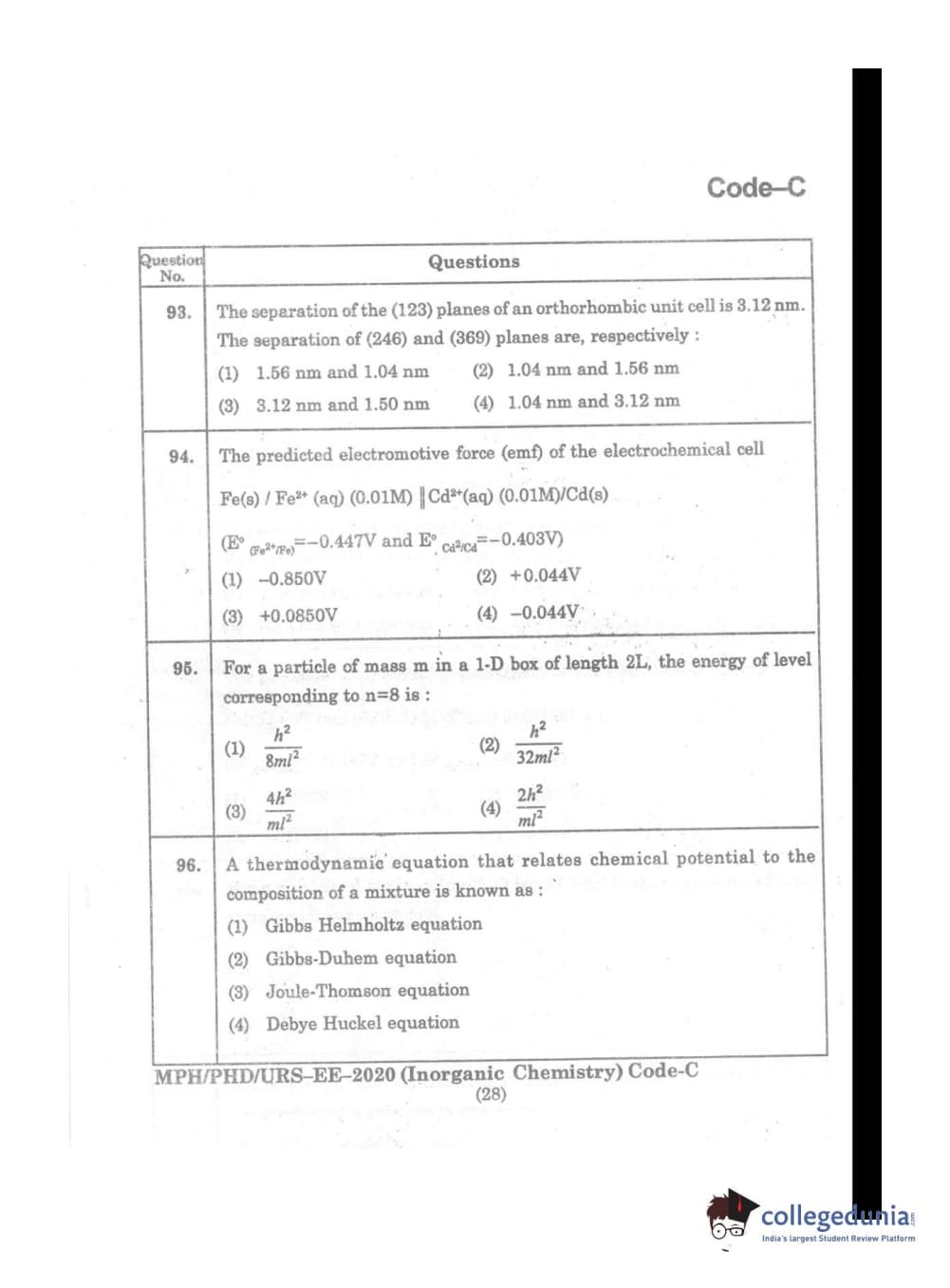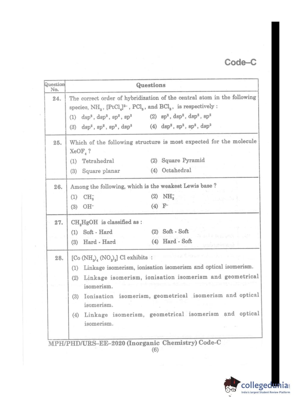 | MDUCEE 2020 Ph.D./URS Chemistry Set C Question Paper PDF | MDUCEE 2020 Ph.D./URS Chemistry Set C Answer Key PDF |