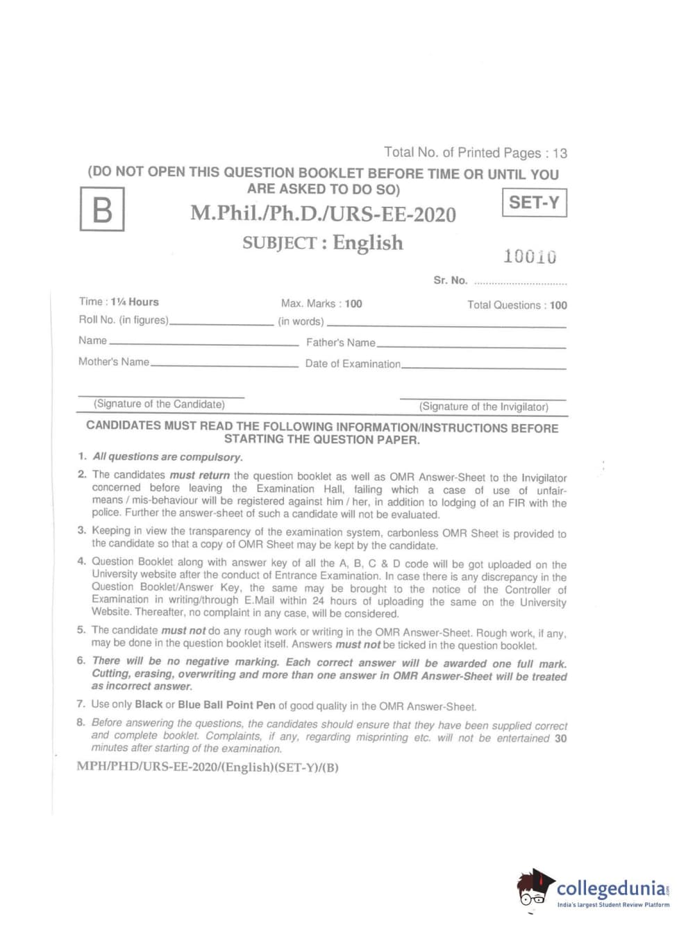 | MDUCEE 2020 Ph.D./M.Phil./URS English Set B Question Paper PDF | MDUCEE 2020 Ph.D./M.Phil./URS English Set B Answer Key PDF |