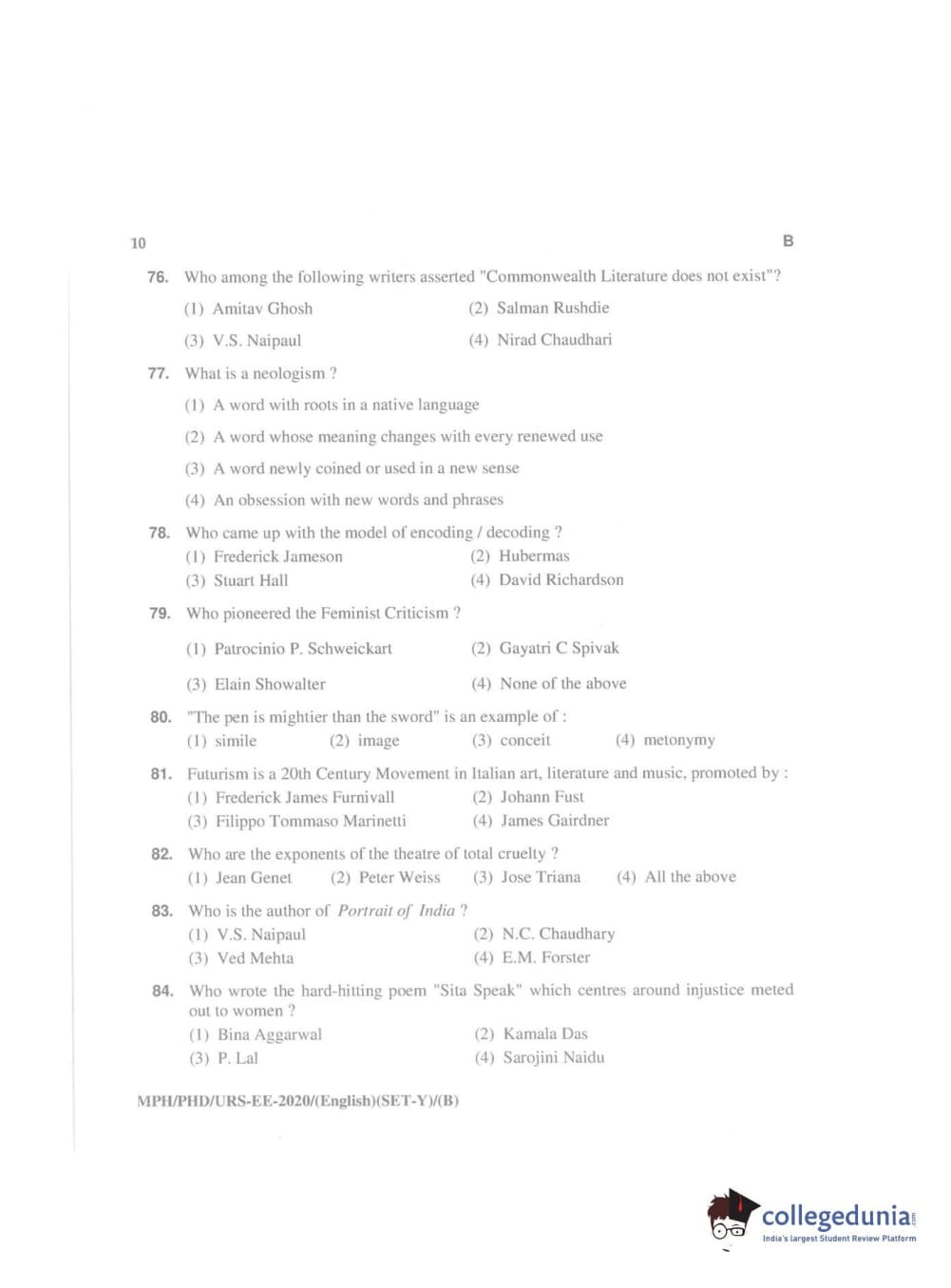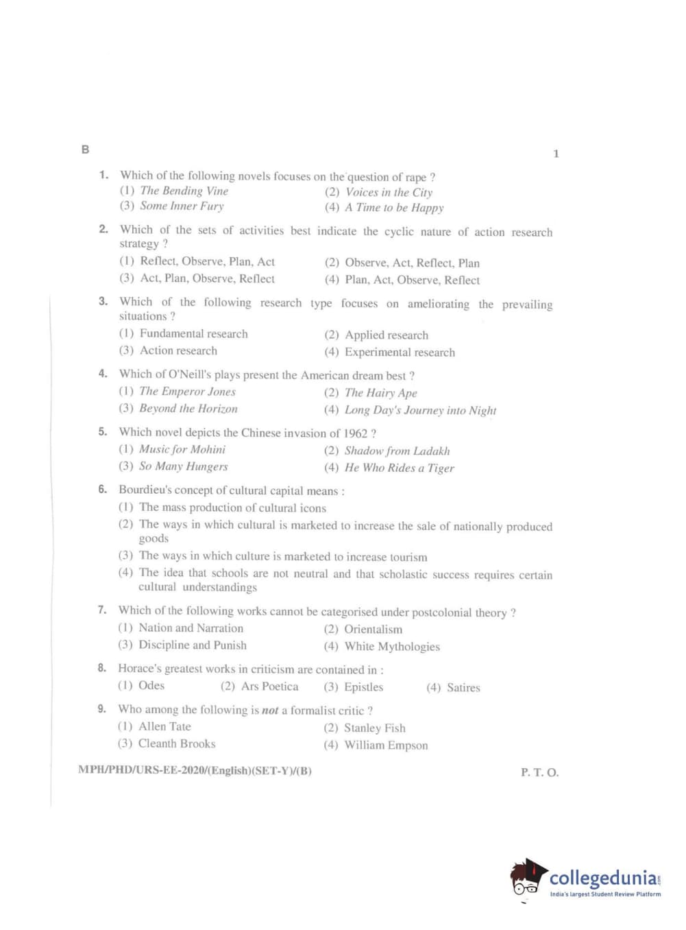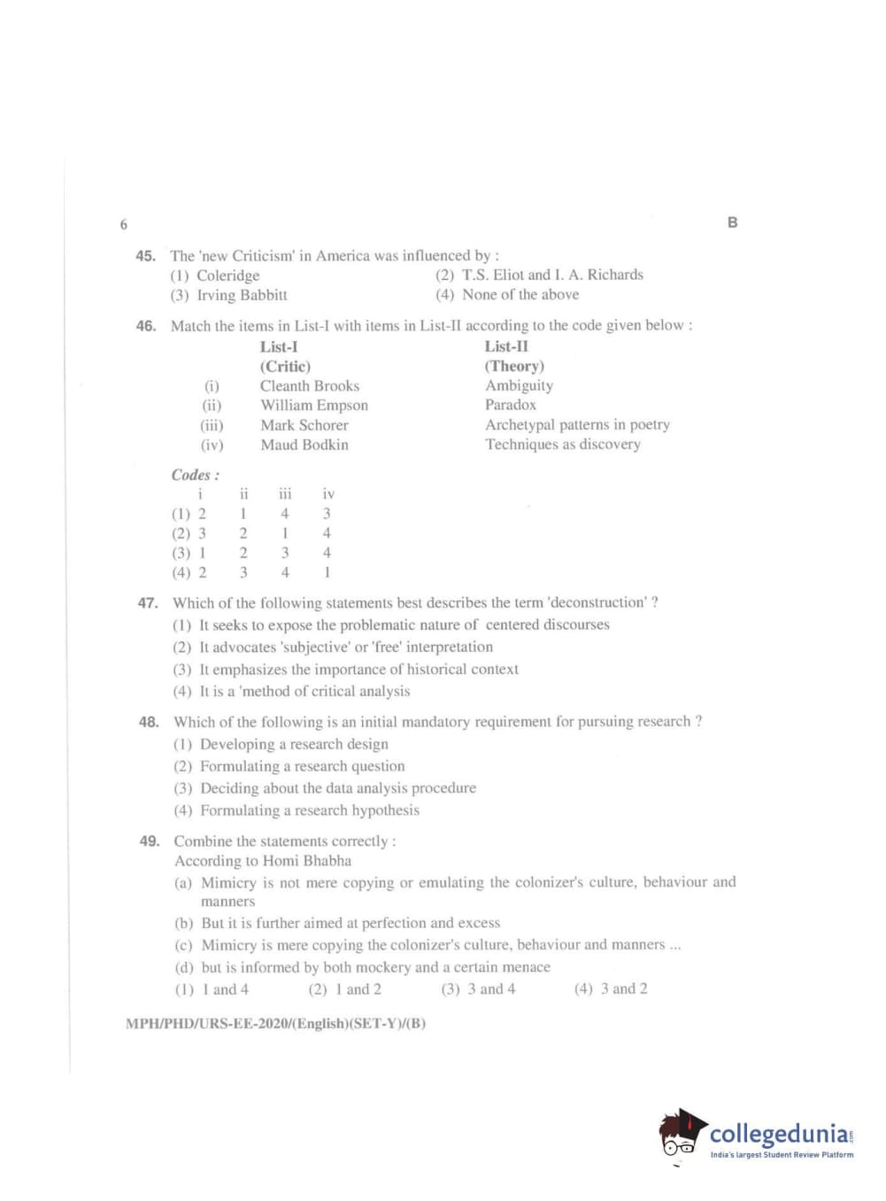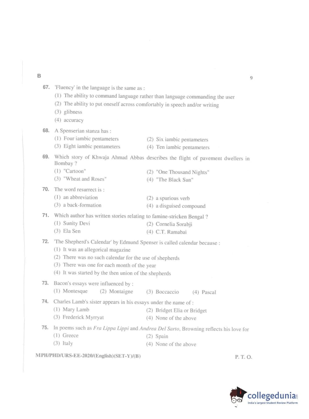 MDUCEE 2020 Ph.D./M.Phil./URS English Set B Question Paper with Answer Key PDFs