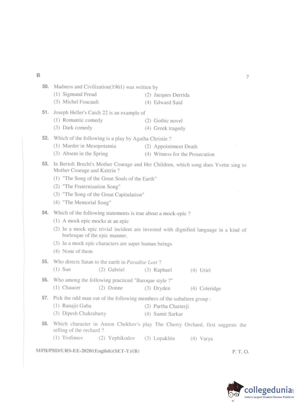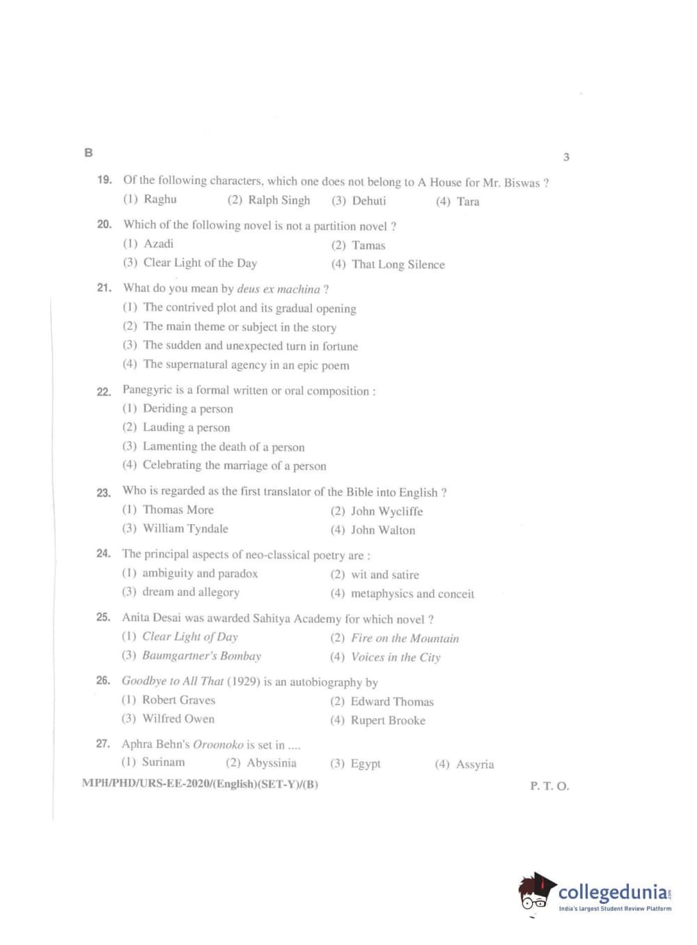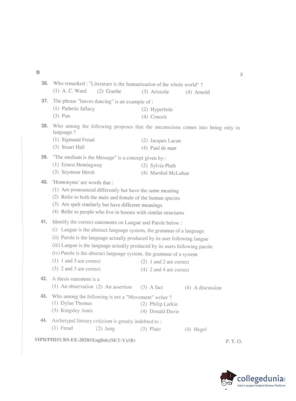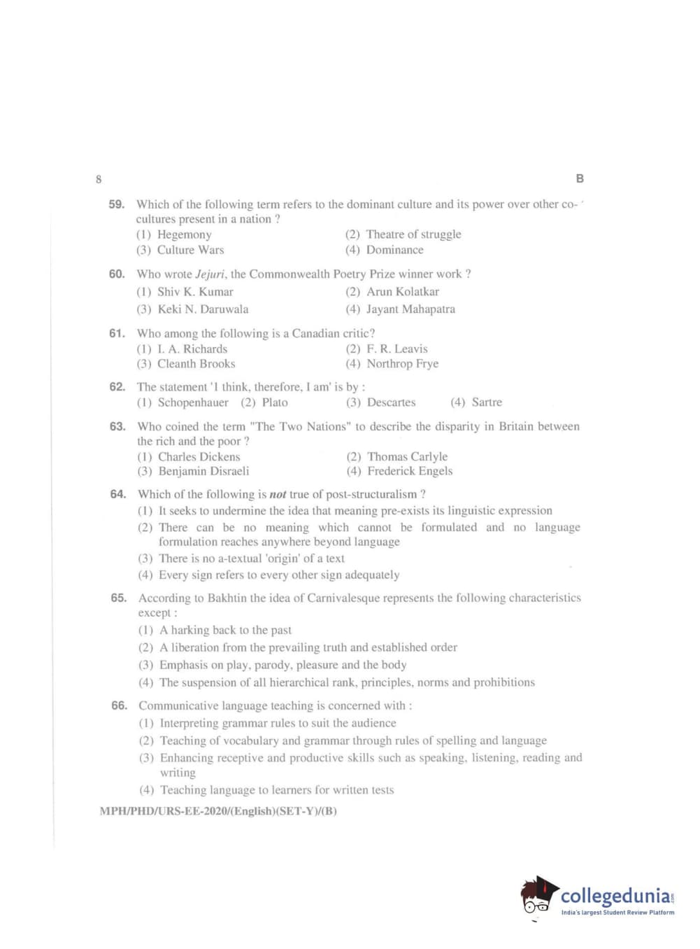 MDUCEE 2020 Ph.D./M.Phil./URS English Set B Question Paper with Answer Key PDFs