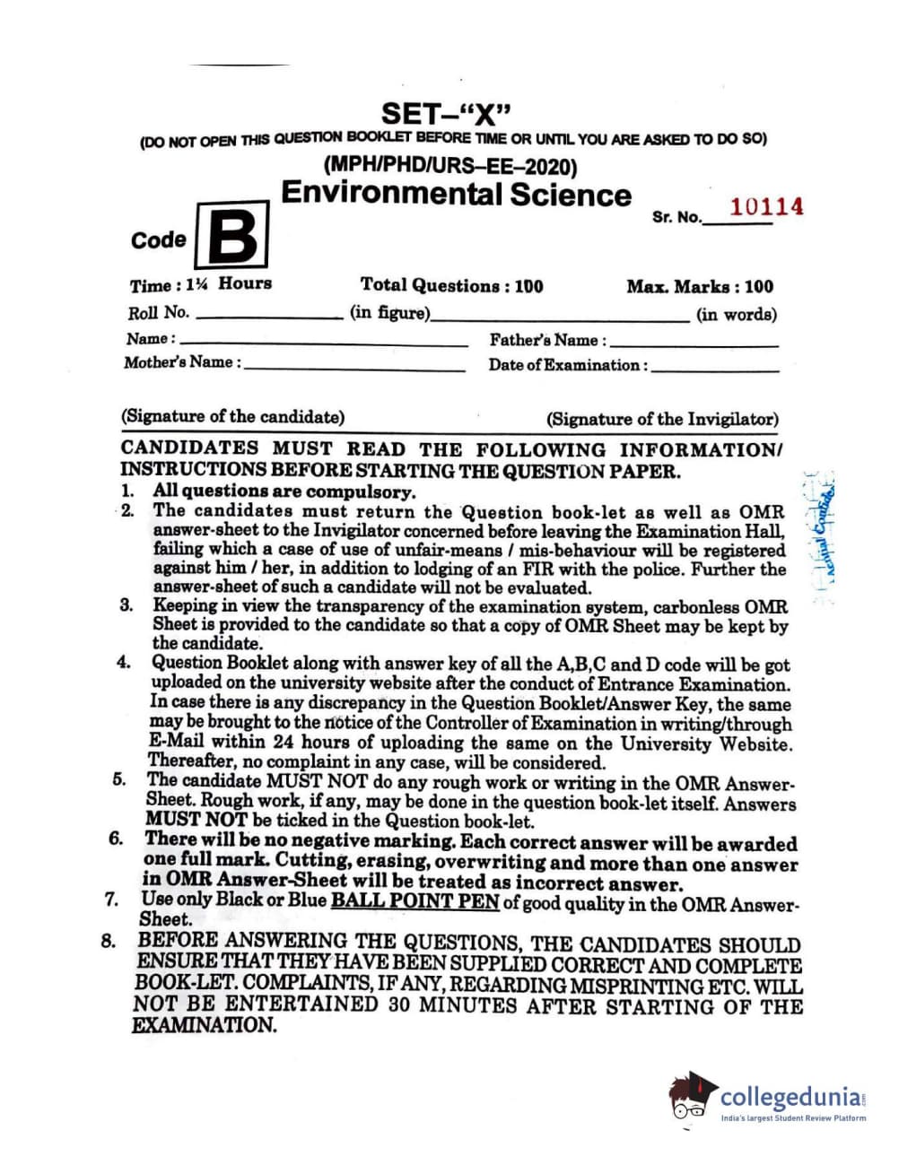 MDUCEE 2020 Ph.D./M.Phil./URS Environment Science Set B Question paper with answer key pdf is available for download. The exam was successfully organized by Maharishi Dayanand University. The question paper comprised a total of 100 questions.