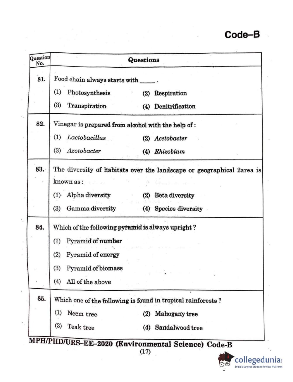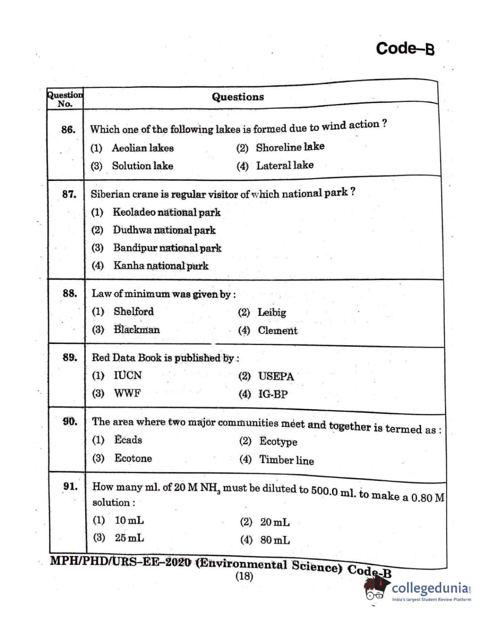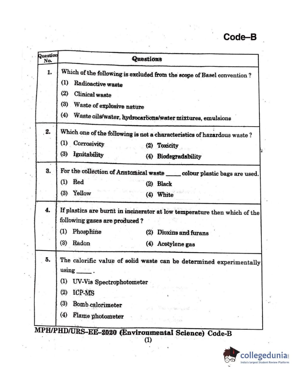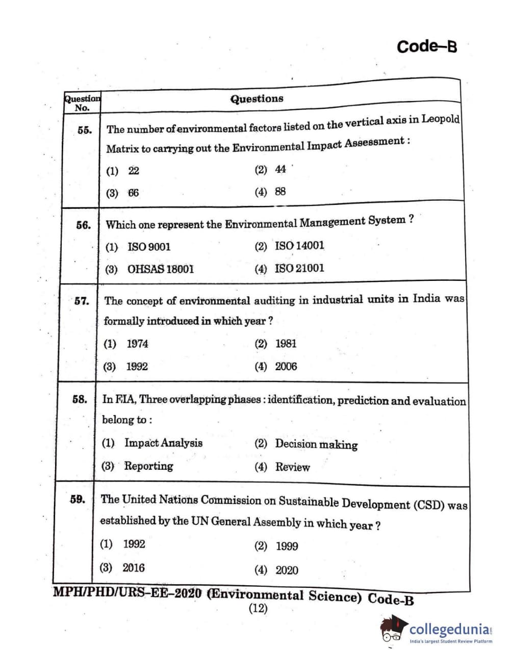 MDUCEE 2020 Ph.D./M.Phil./URS Environment Science Set B Question Paper with Answer Key PDFs
