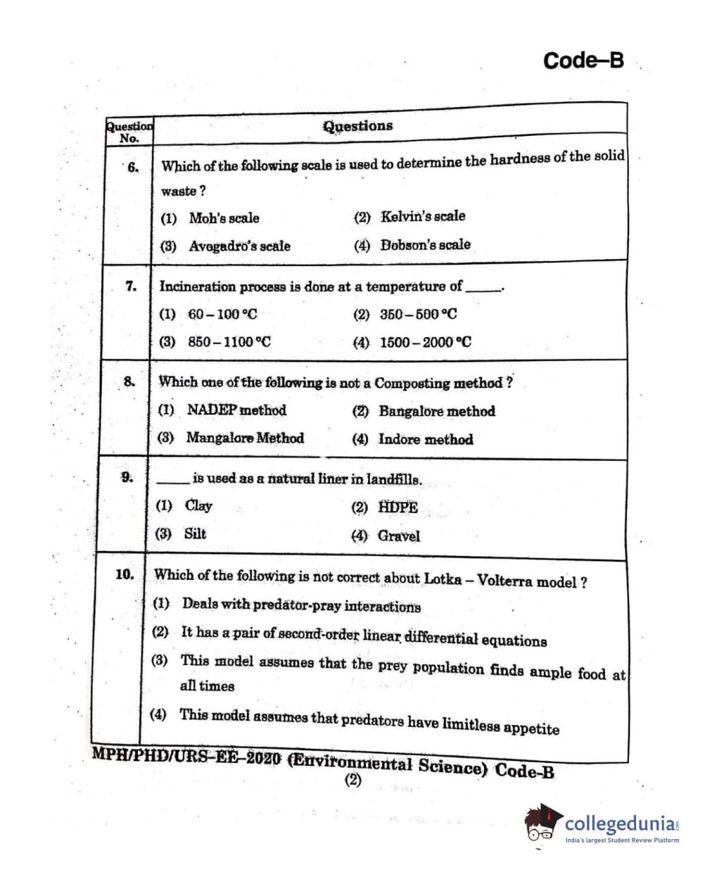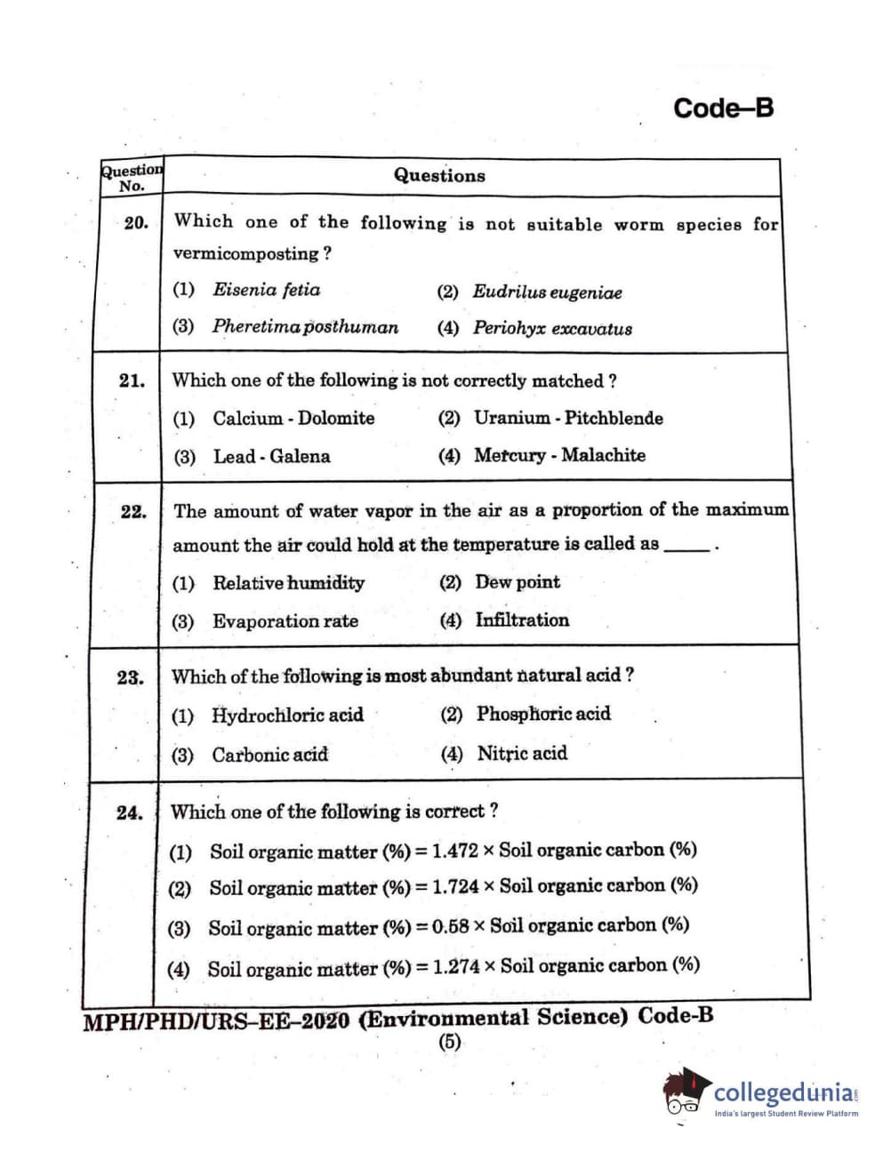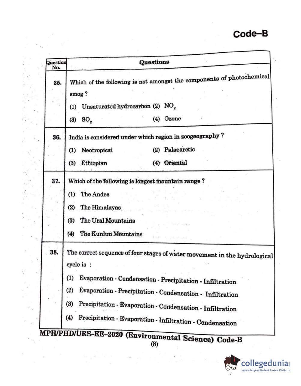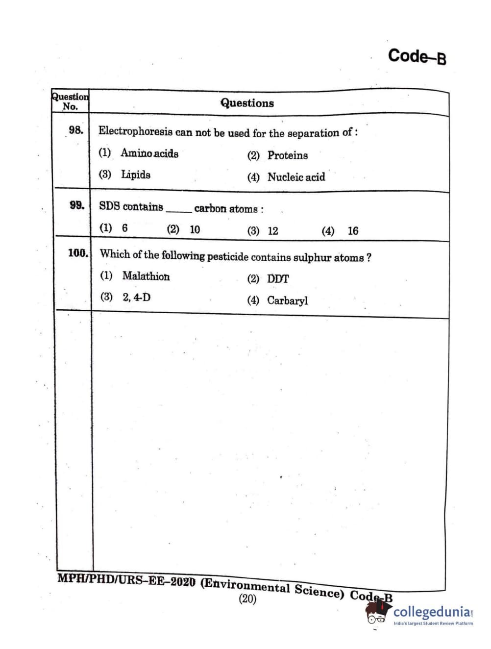 MDUCEE 2020 Ph.D./M.Phil./URS Environment Science Set B Question Paper with Answer Key PDFs