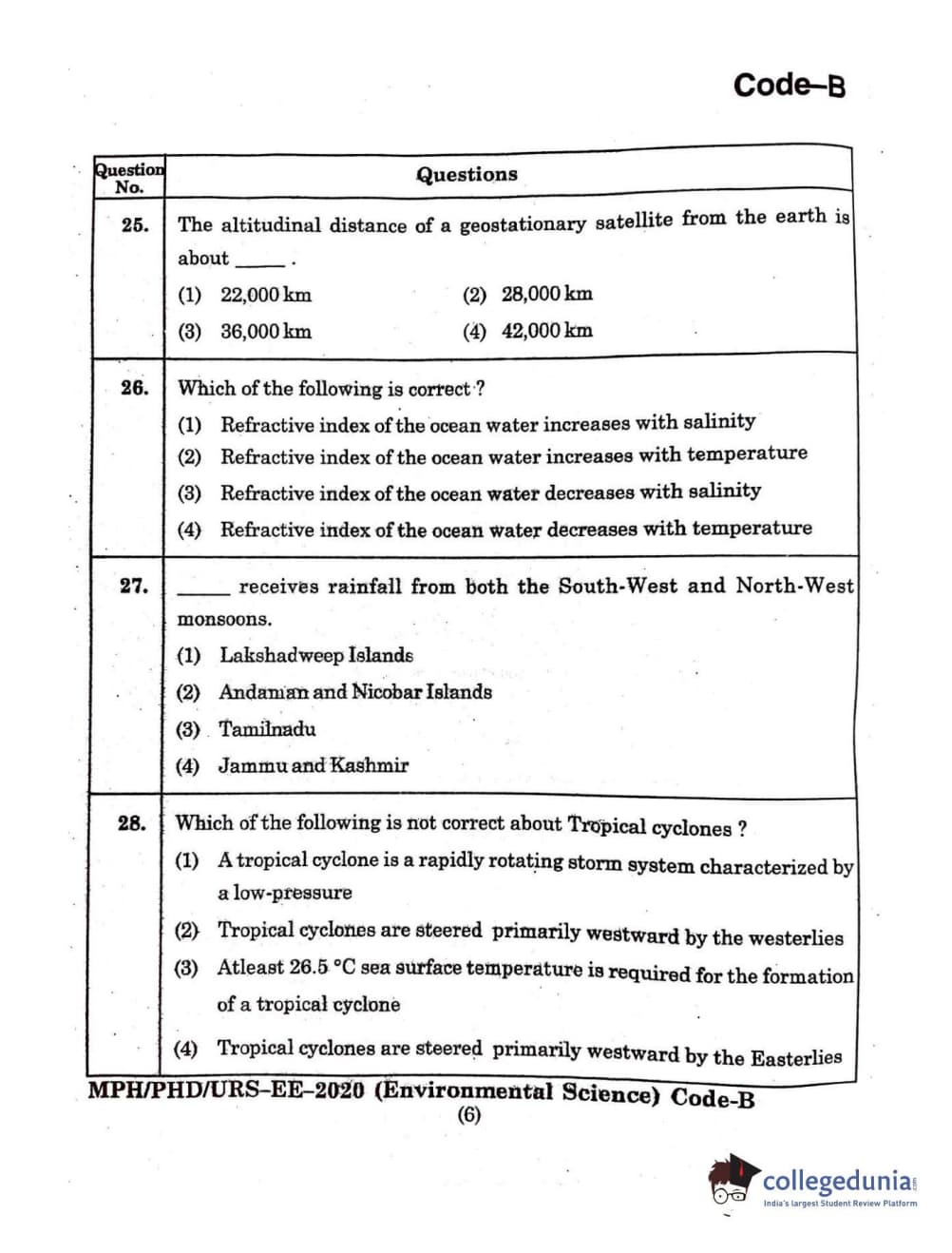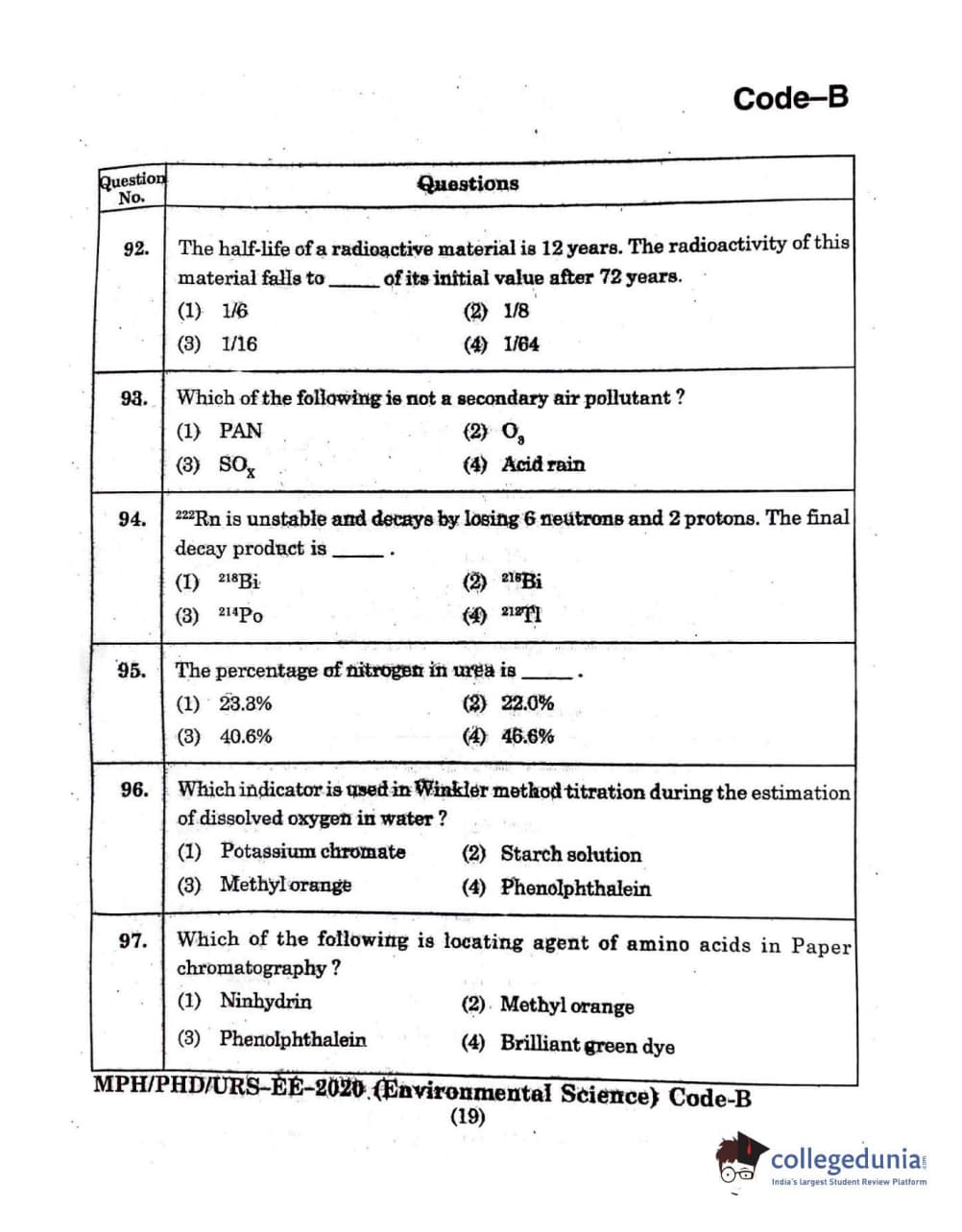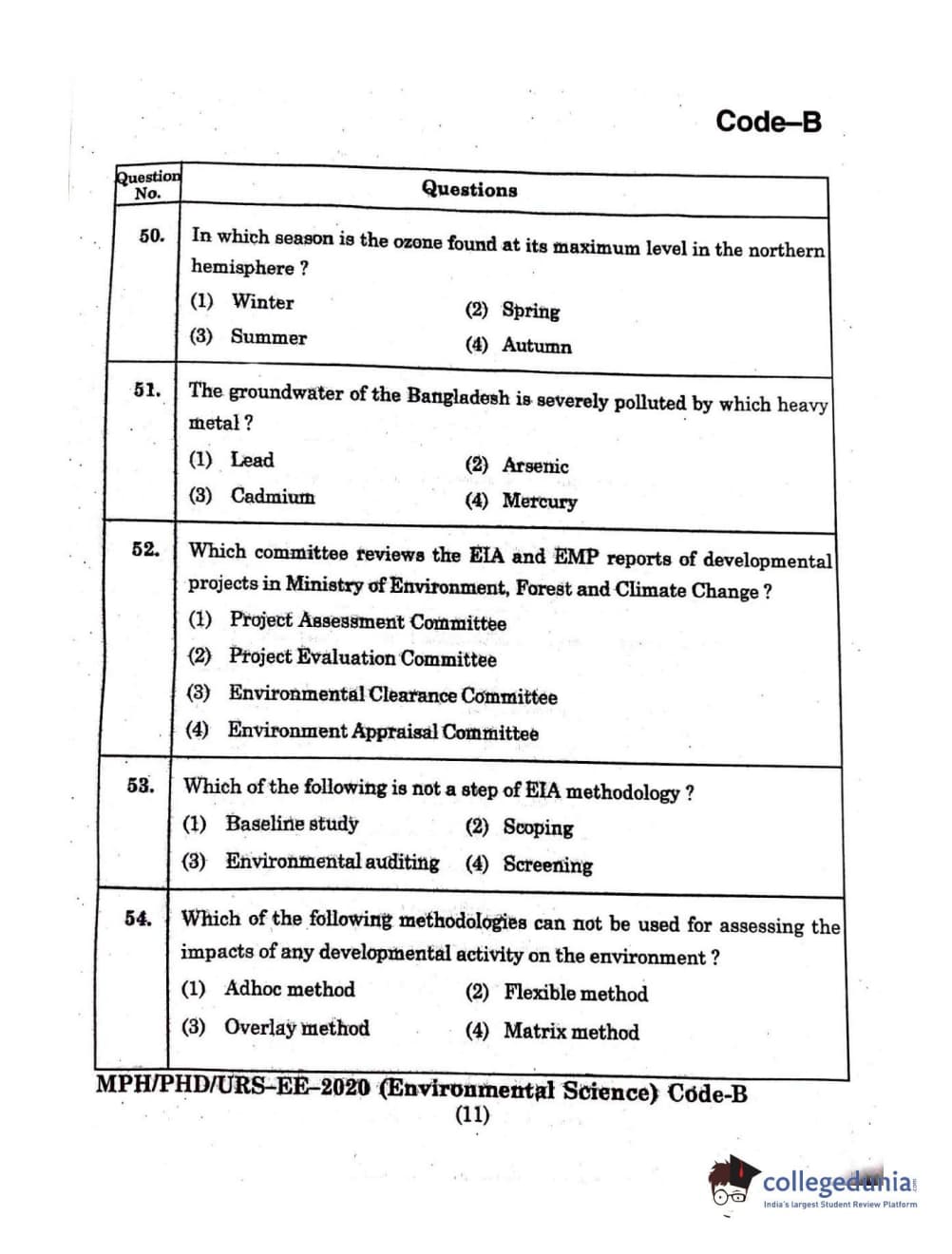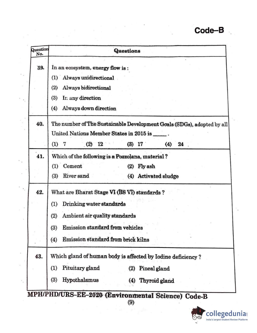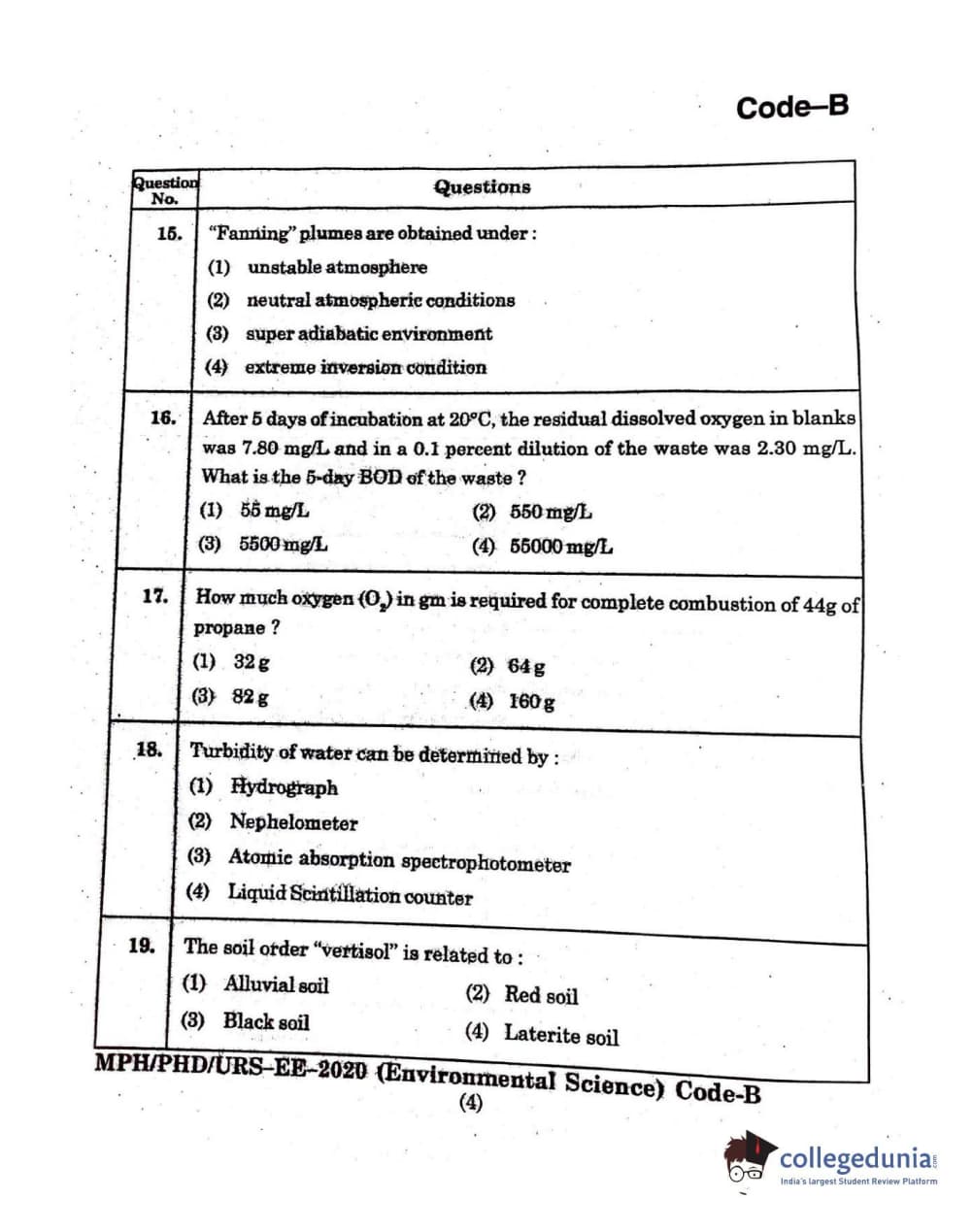 MDUCEE 2020 Ph.D./M.Phil./URS Environment Science Set B Question Paper with Answer Key PDFs