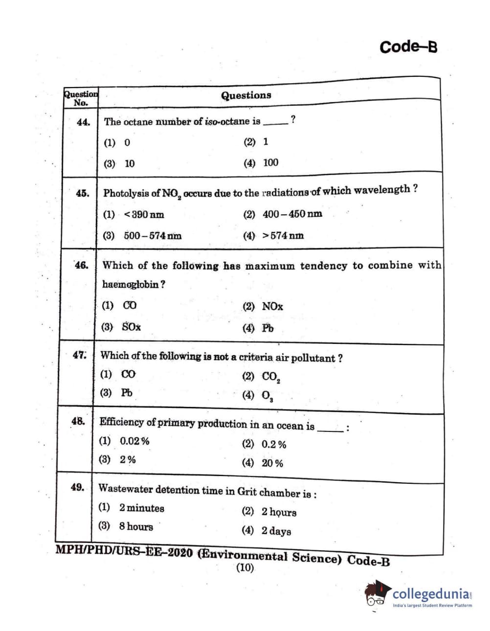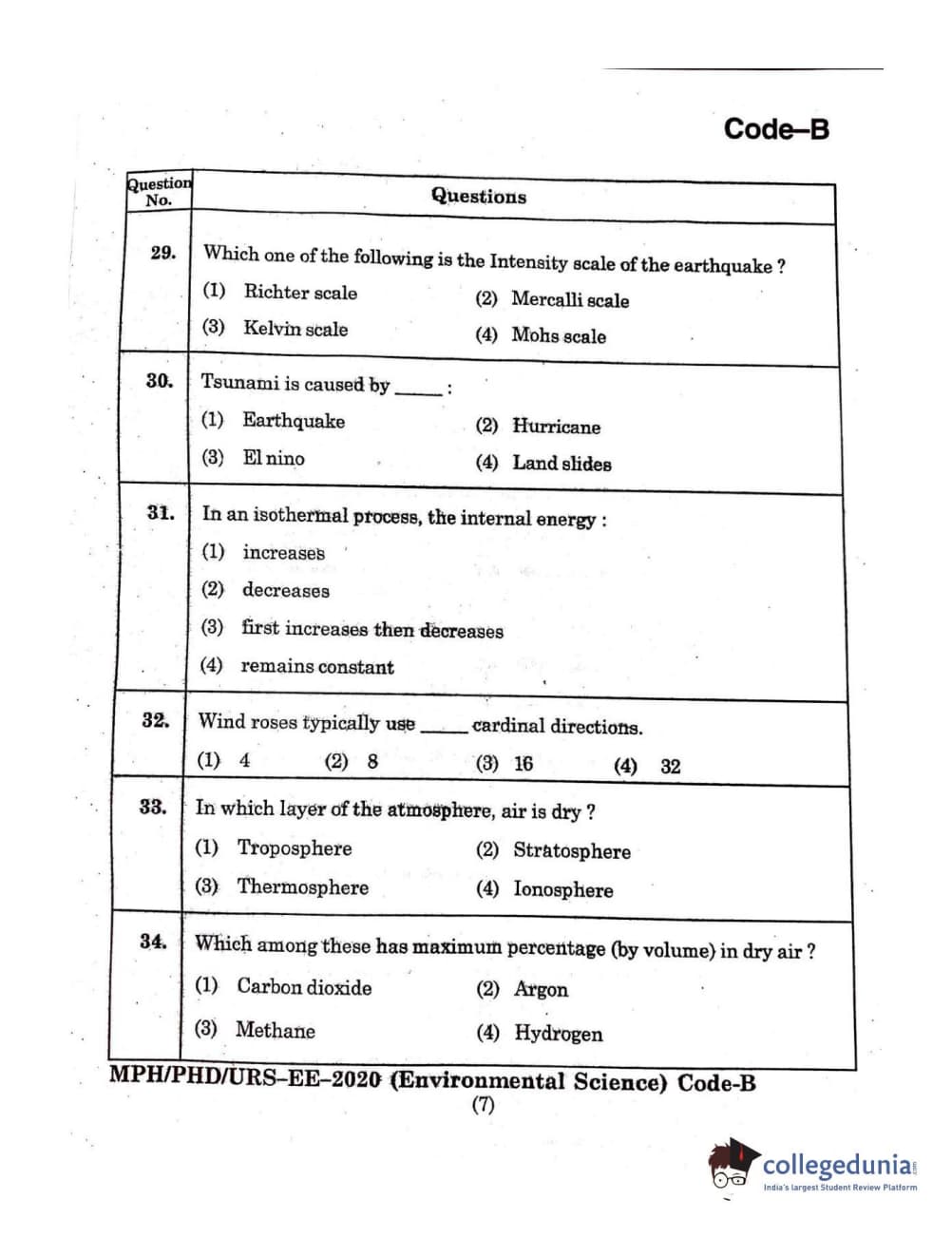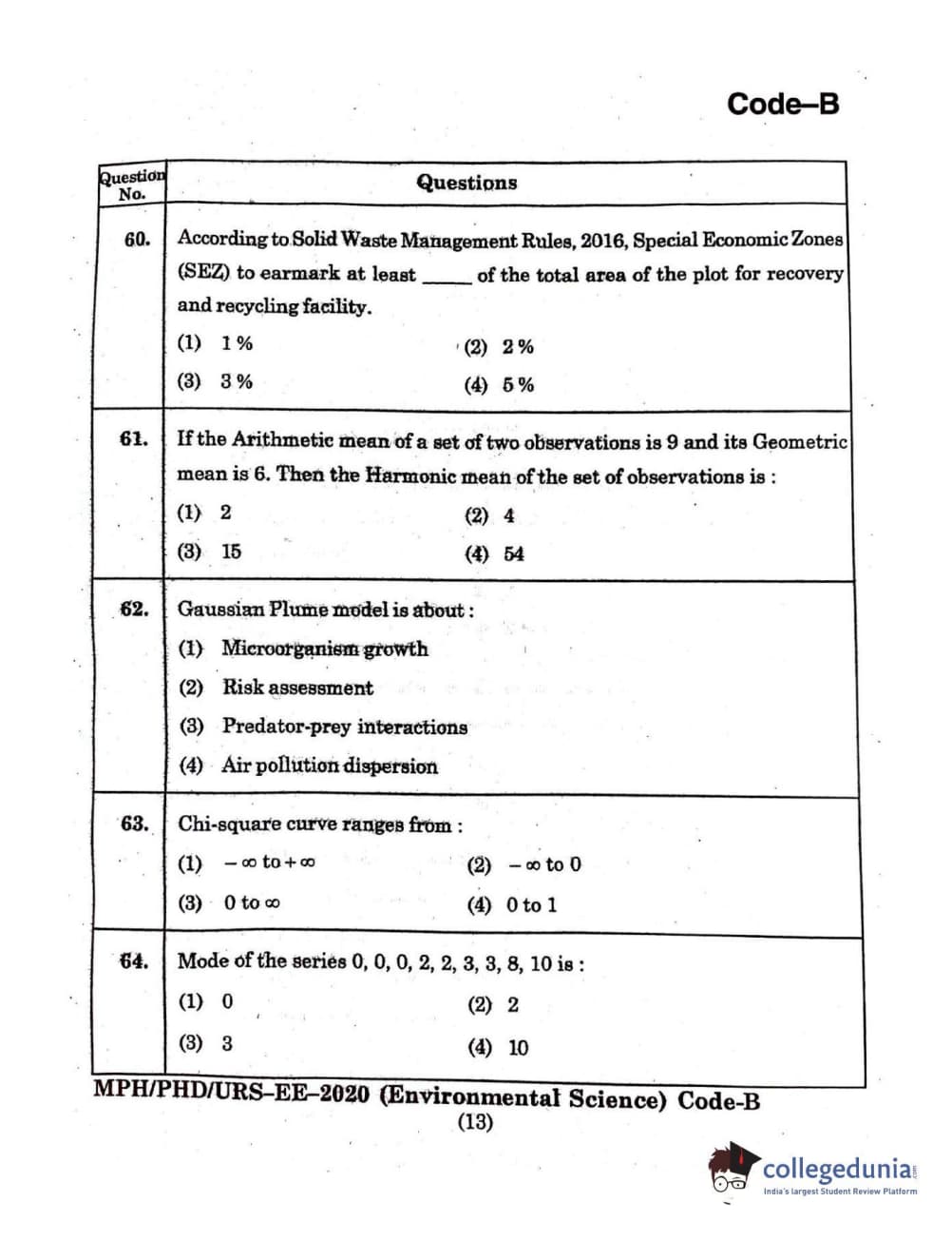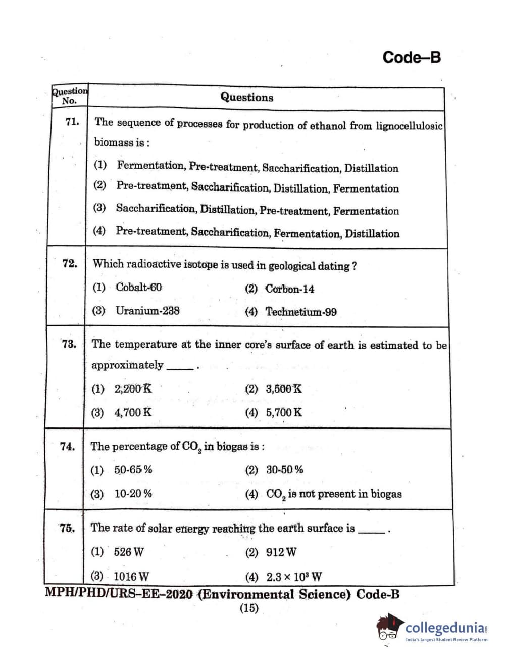 MDUCEE 2020 Ph.D./M.Phil./URS Environment Science Set B Question Paper with Answer Key PDFs
