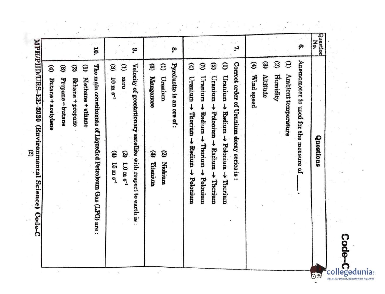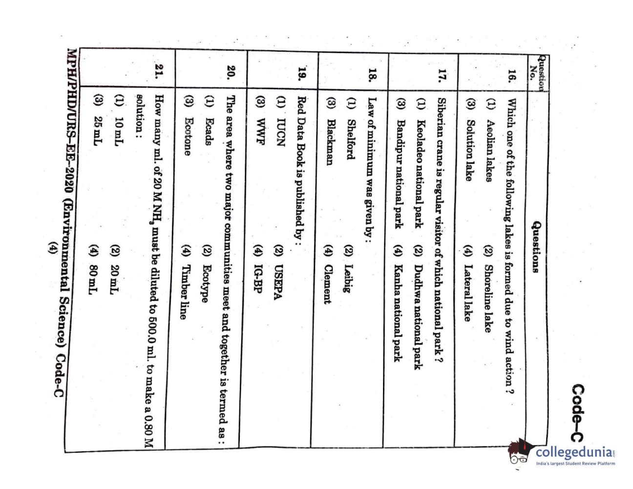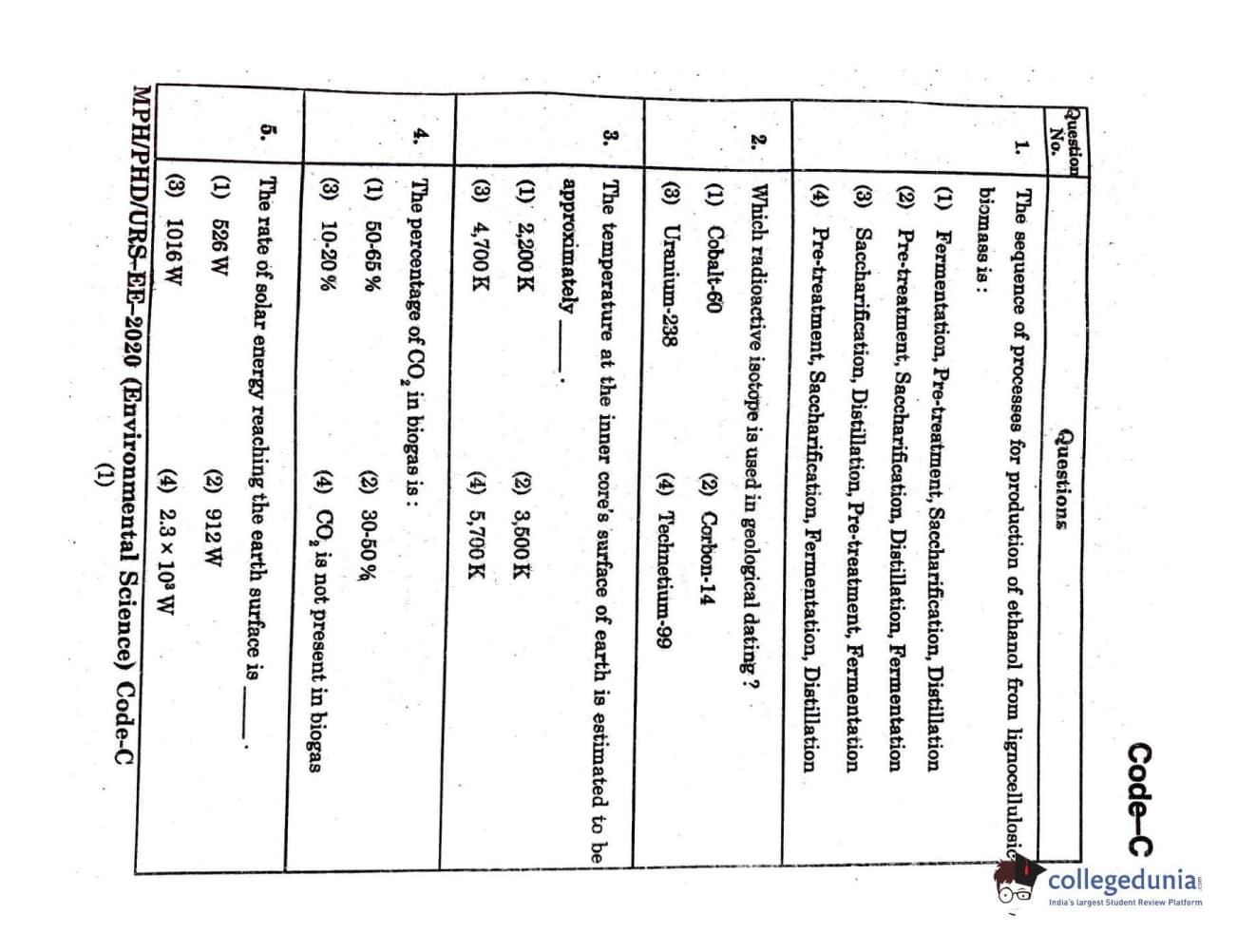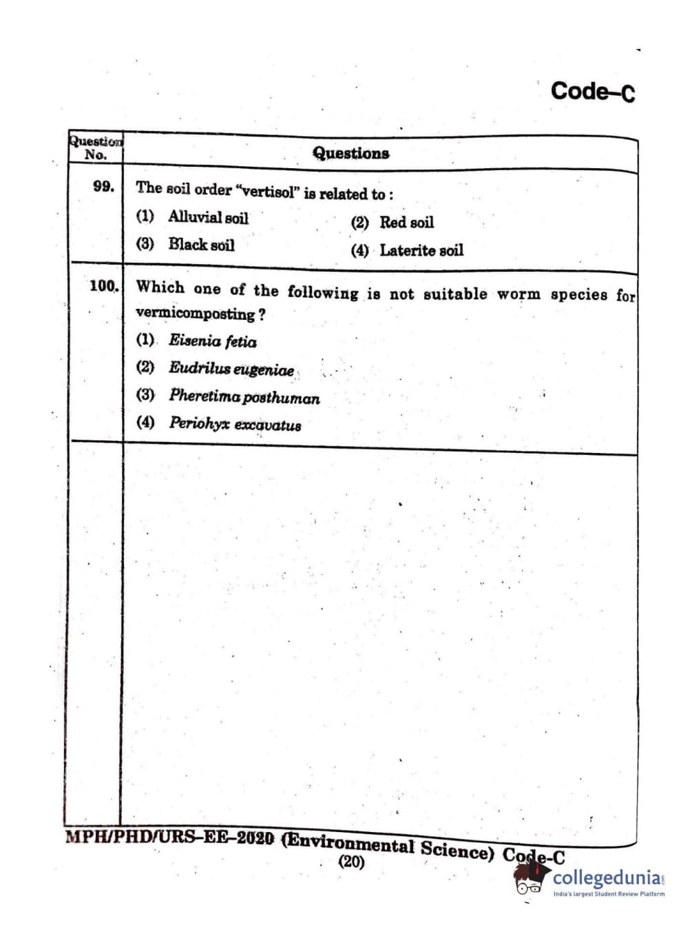 MDUCEE 2020 Ph.D./M.Phil./URS Environment Science Set C Question Paper with Answer Key PDFs