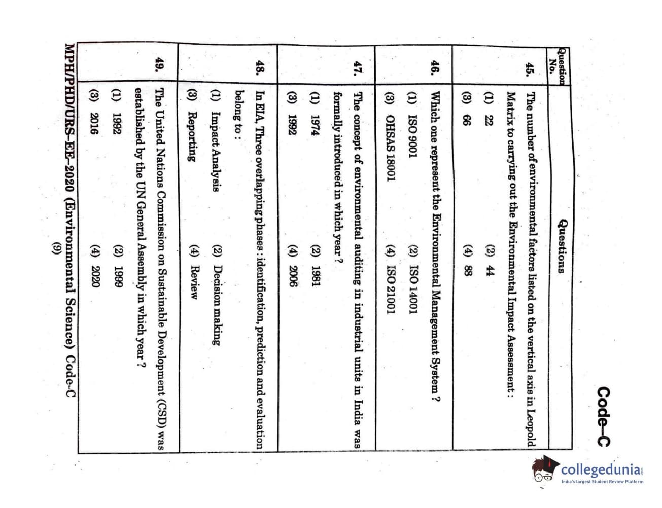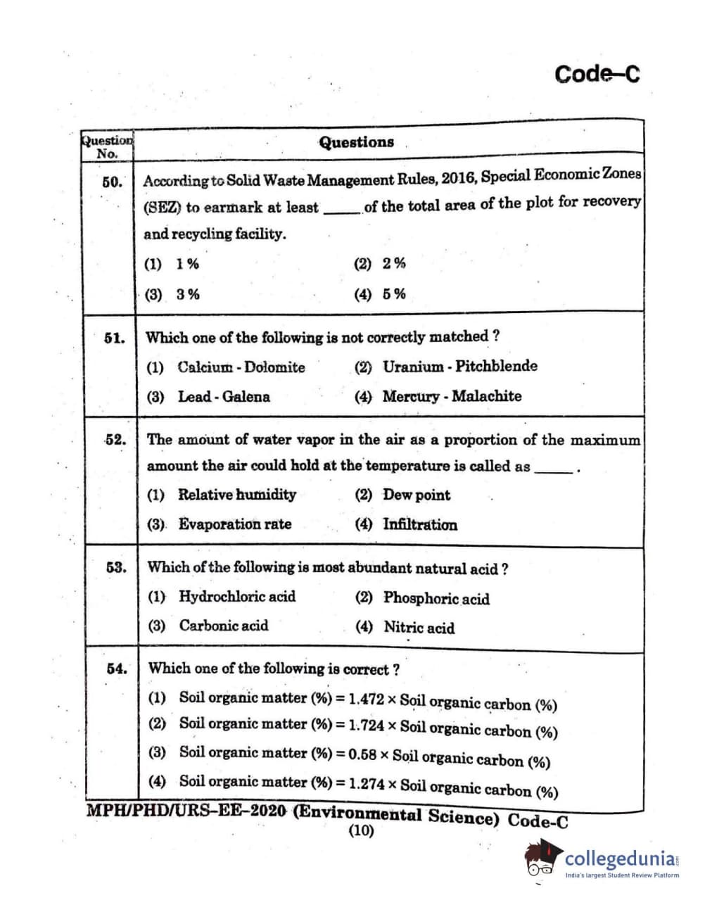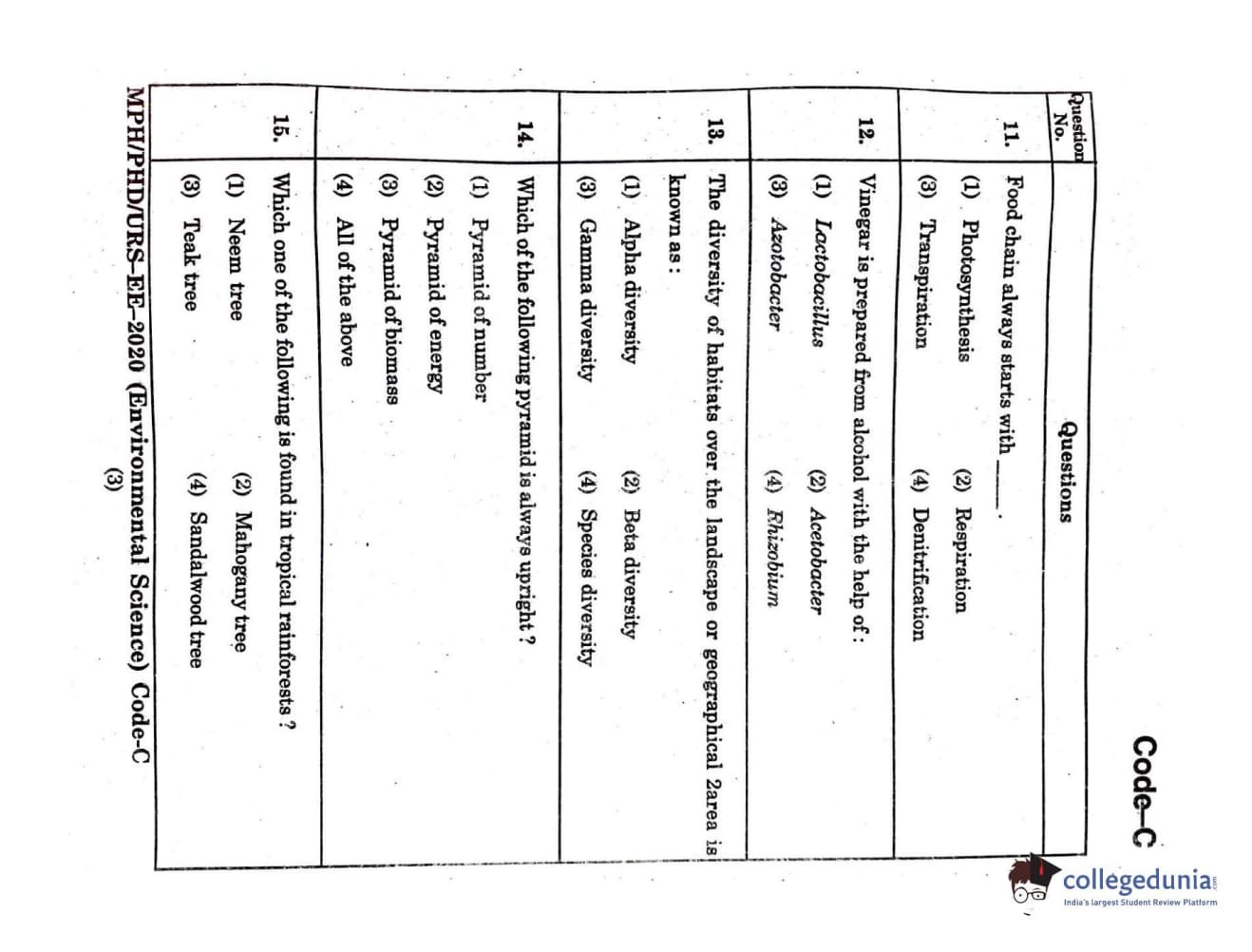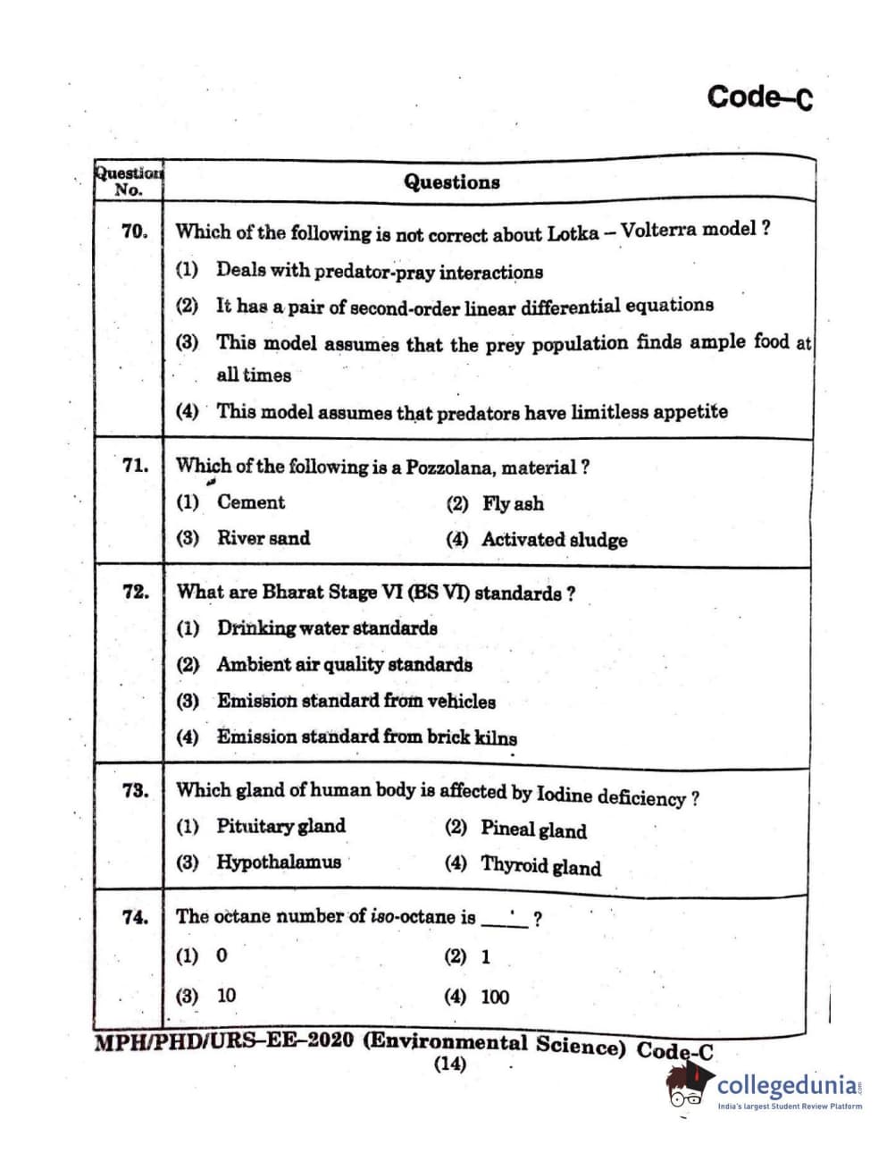 MDUCEE 2020 Ph.D./M.Phil./URS Environment Science Set C Question Paper with Answer Key PDFs