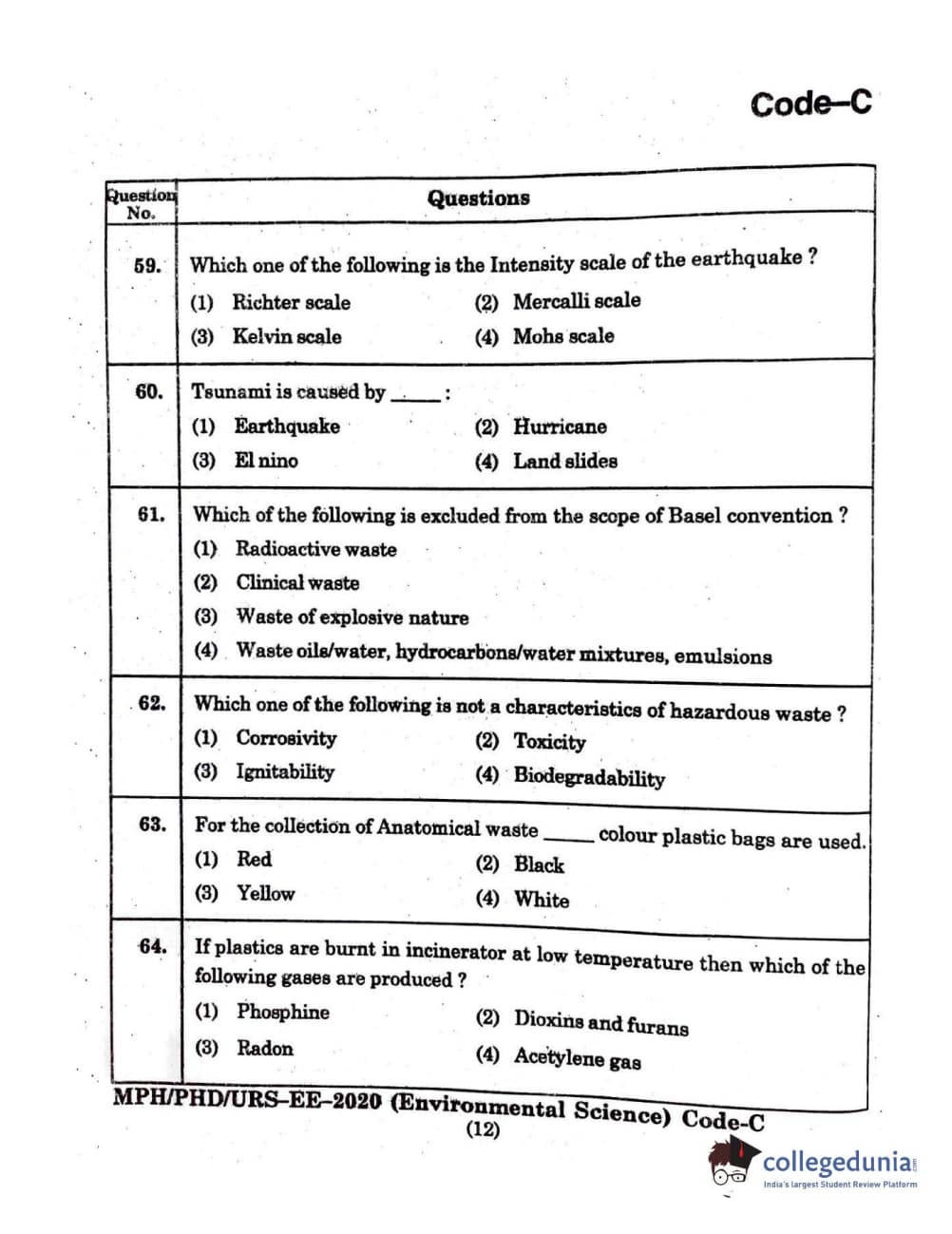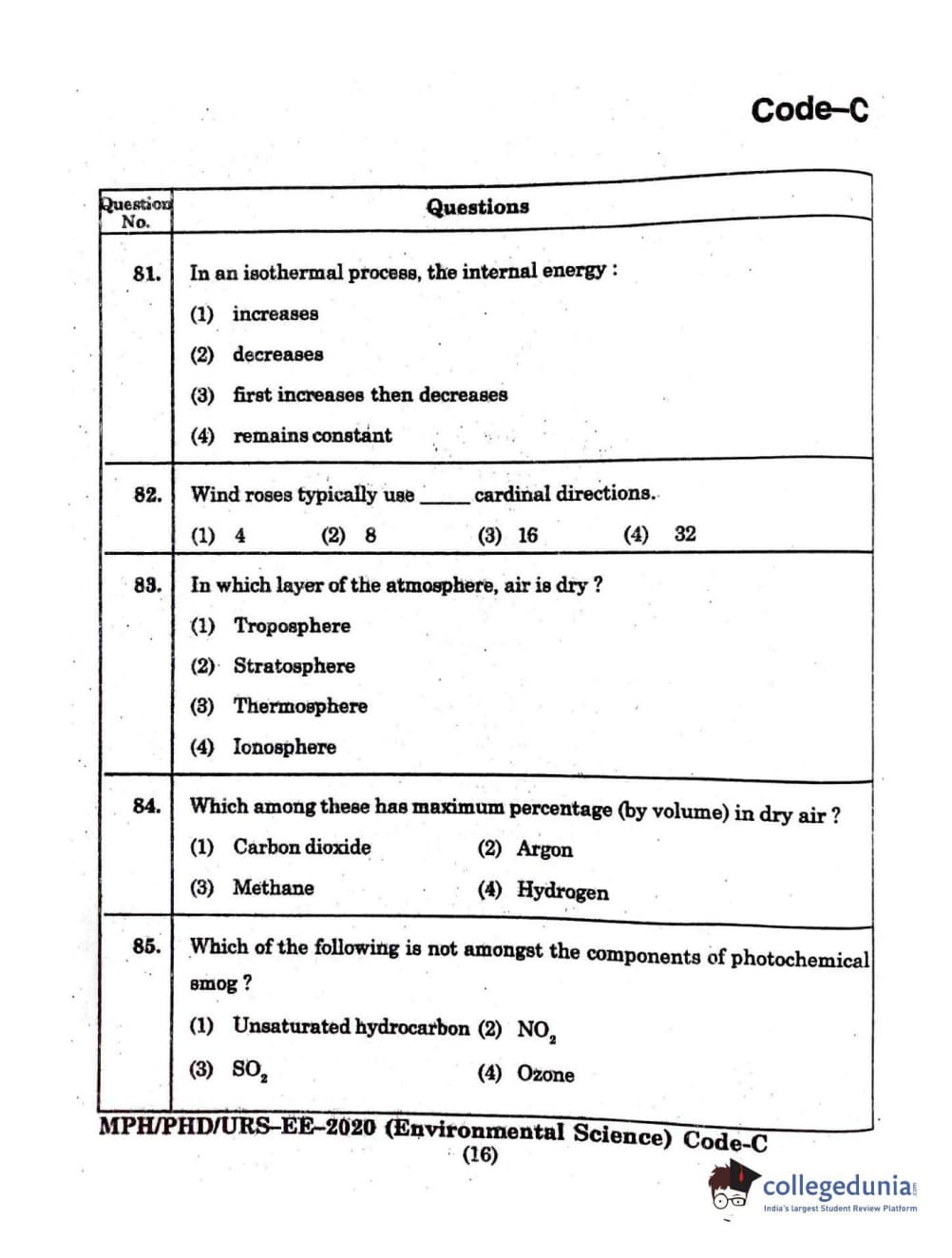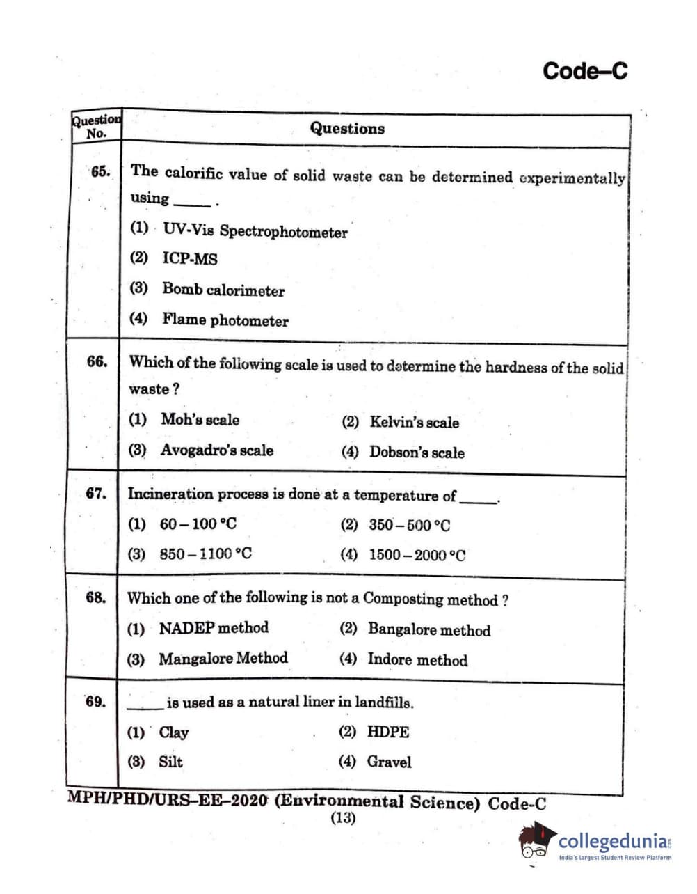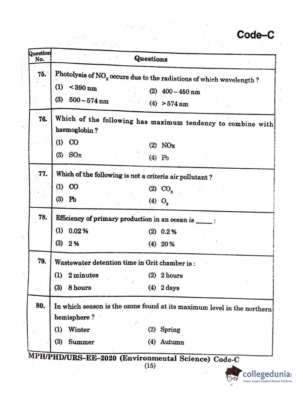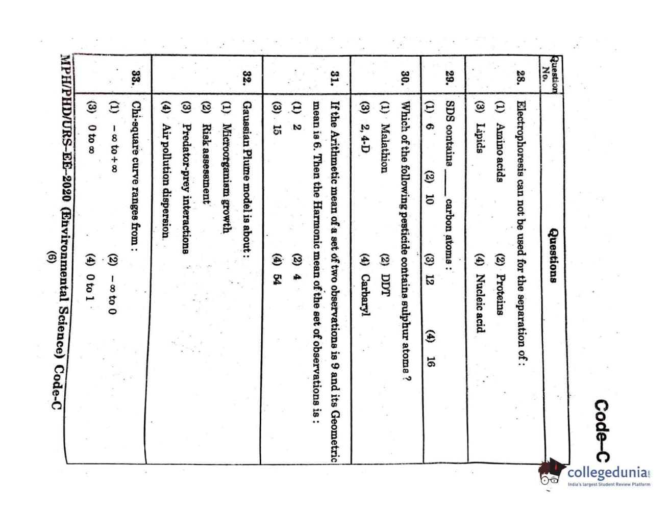 MDUCEE 2020 Ph.D./M.Phil./URS Environment Science Set C Question Paper with Answer Key PDFs