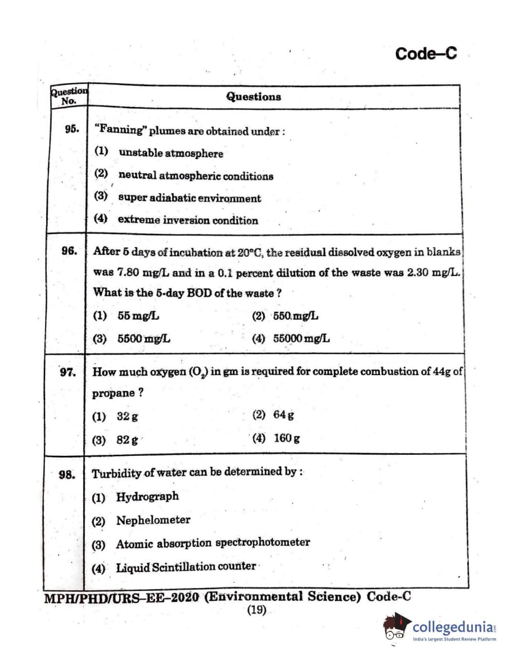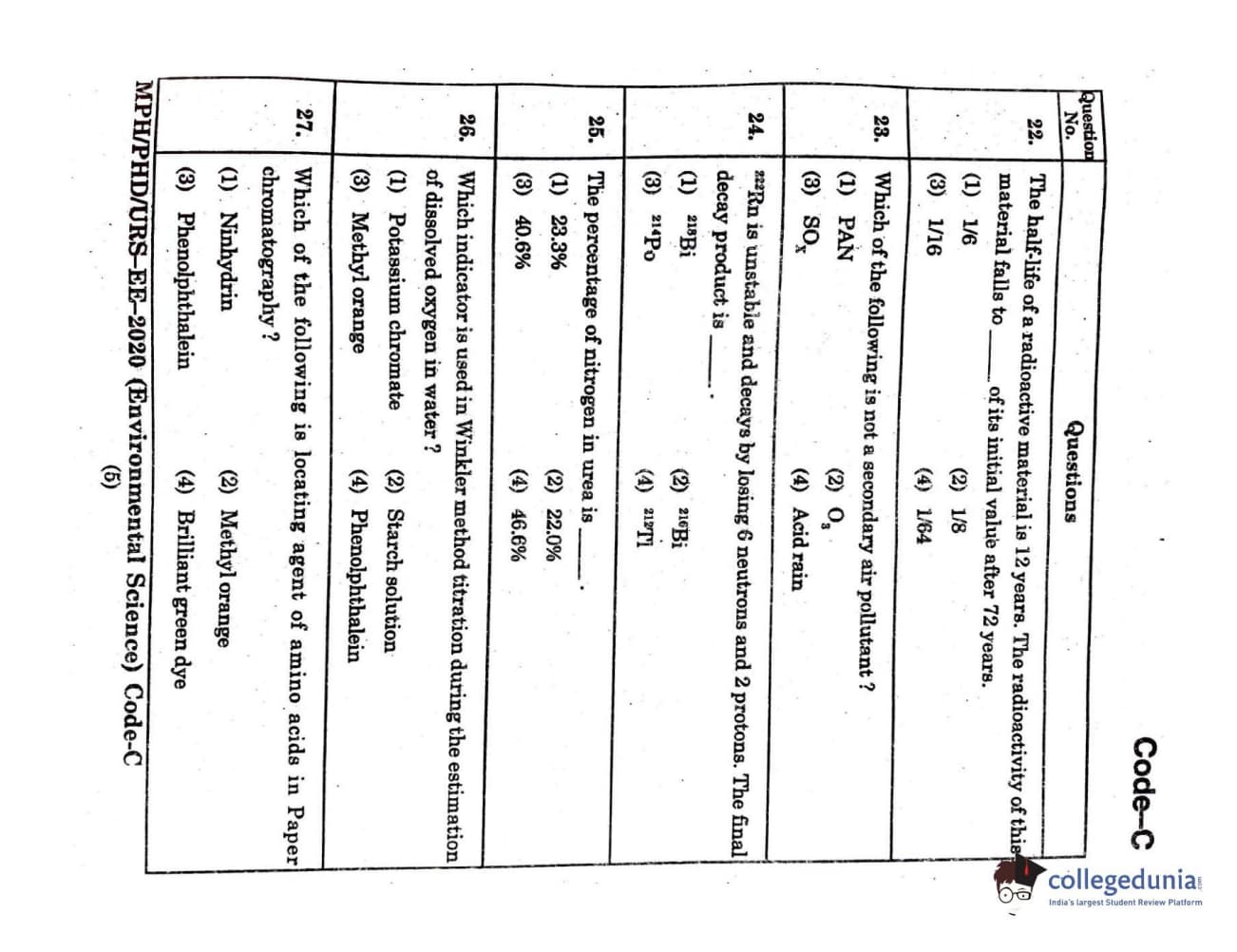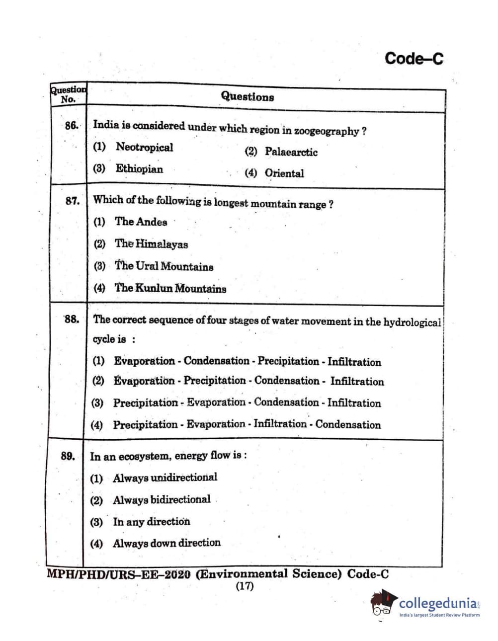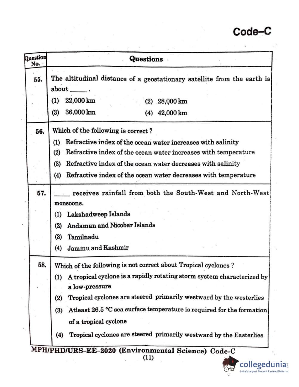 MDUCEE 2020 Ph.D./M.Phil./URS Environment Science Set C Question Paper with Answer Key PDFs