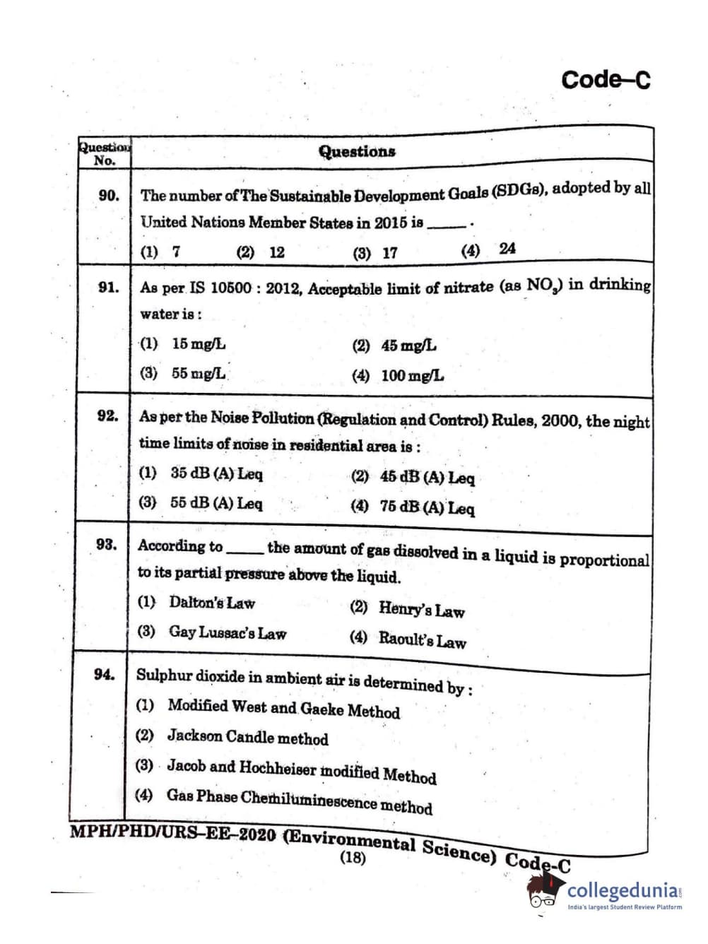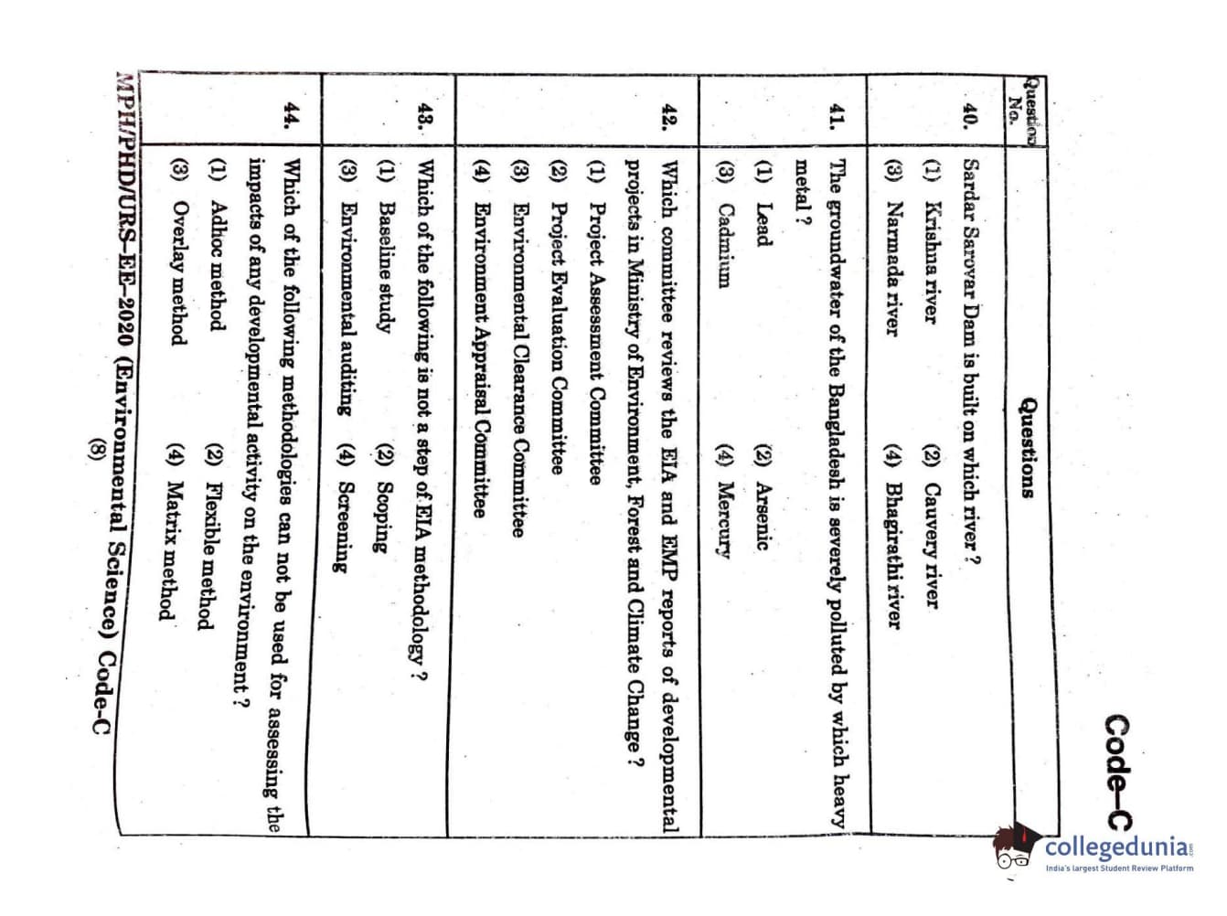 | MDUCEE 2020 Ph.D./M.Phil./URS Environment Science Set C Question Paper PDF | MDUCEE 2020 Ph.D./M.Phil./URS Environment Science Set C Answer Key PDF |