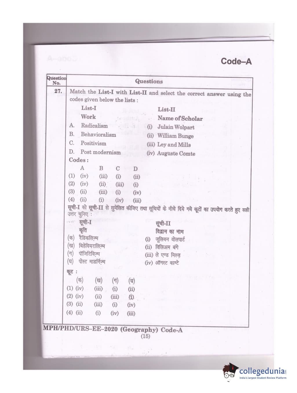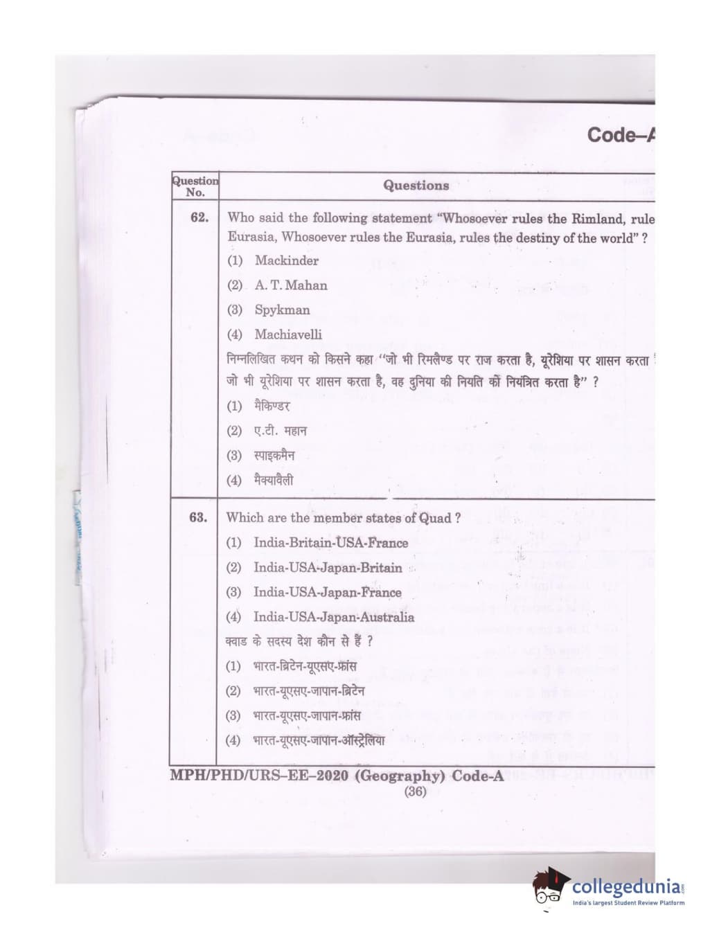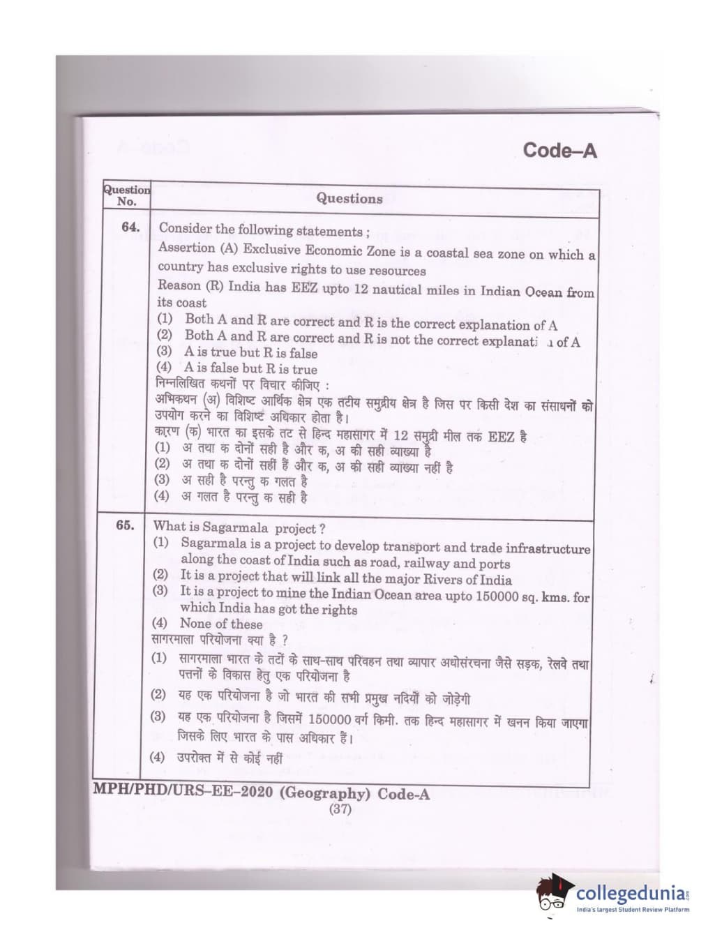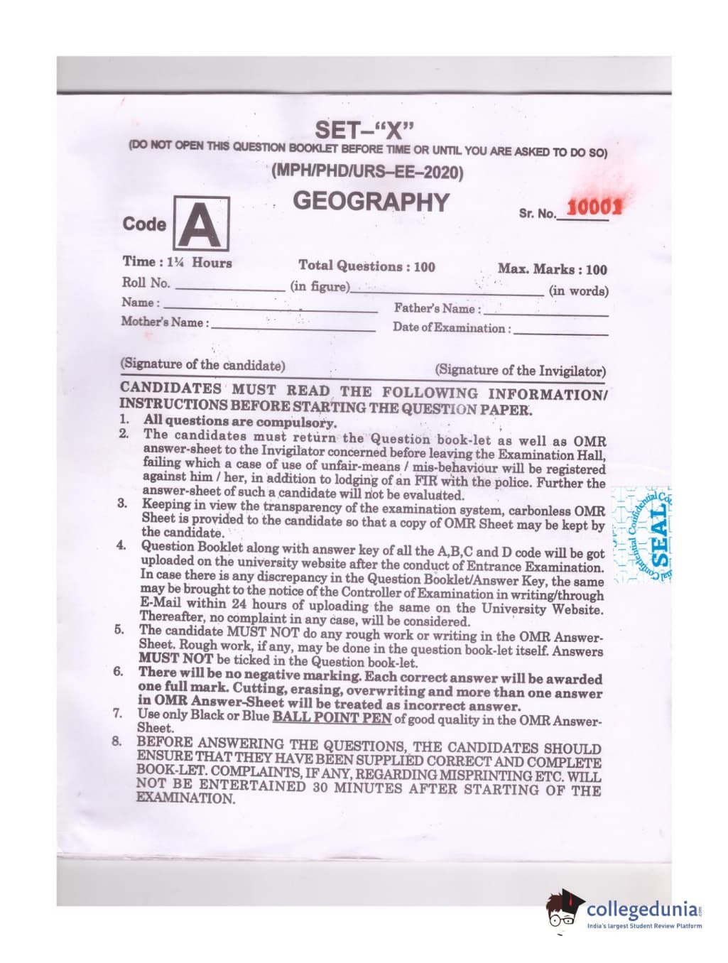 | MDUCEE 2020 Ph.D./M.Phil./URS Geography Set A Question Paper PDF | MDUCEE 2020 Ph.D./M.Phil./URS Geography Set A Answer Key PDF |
