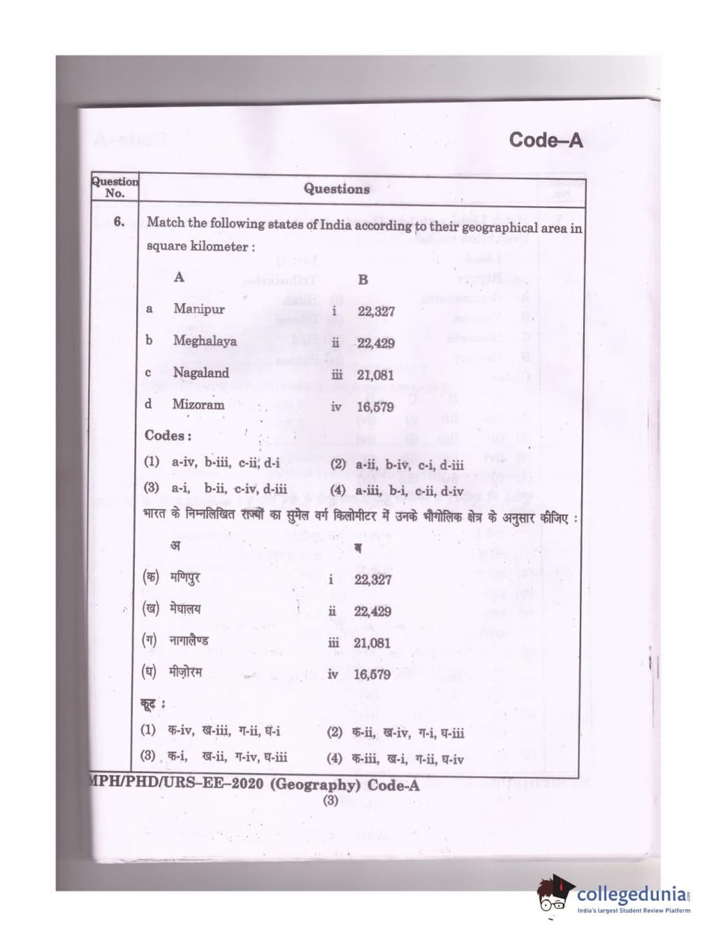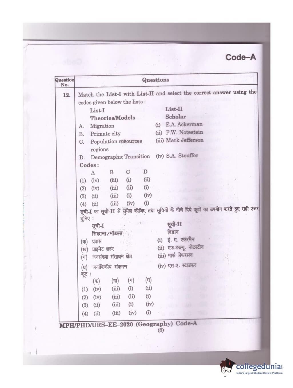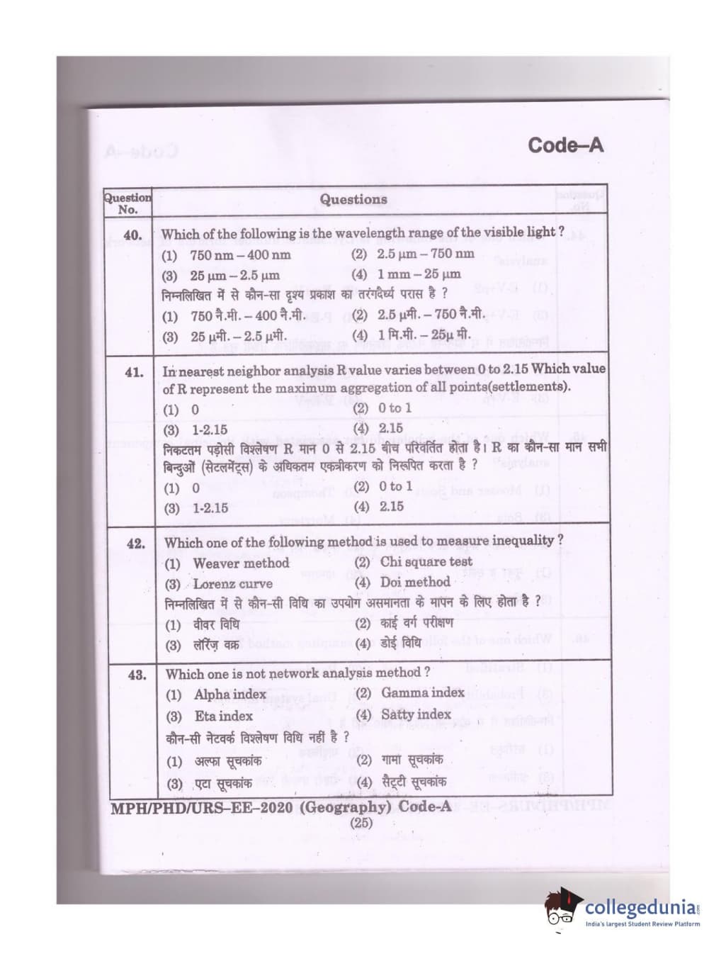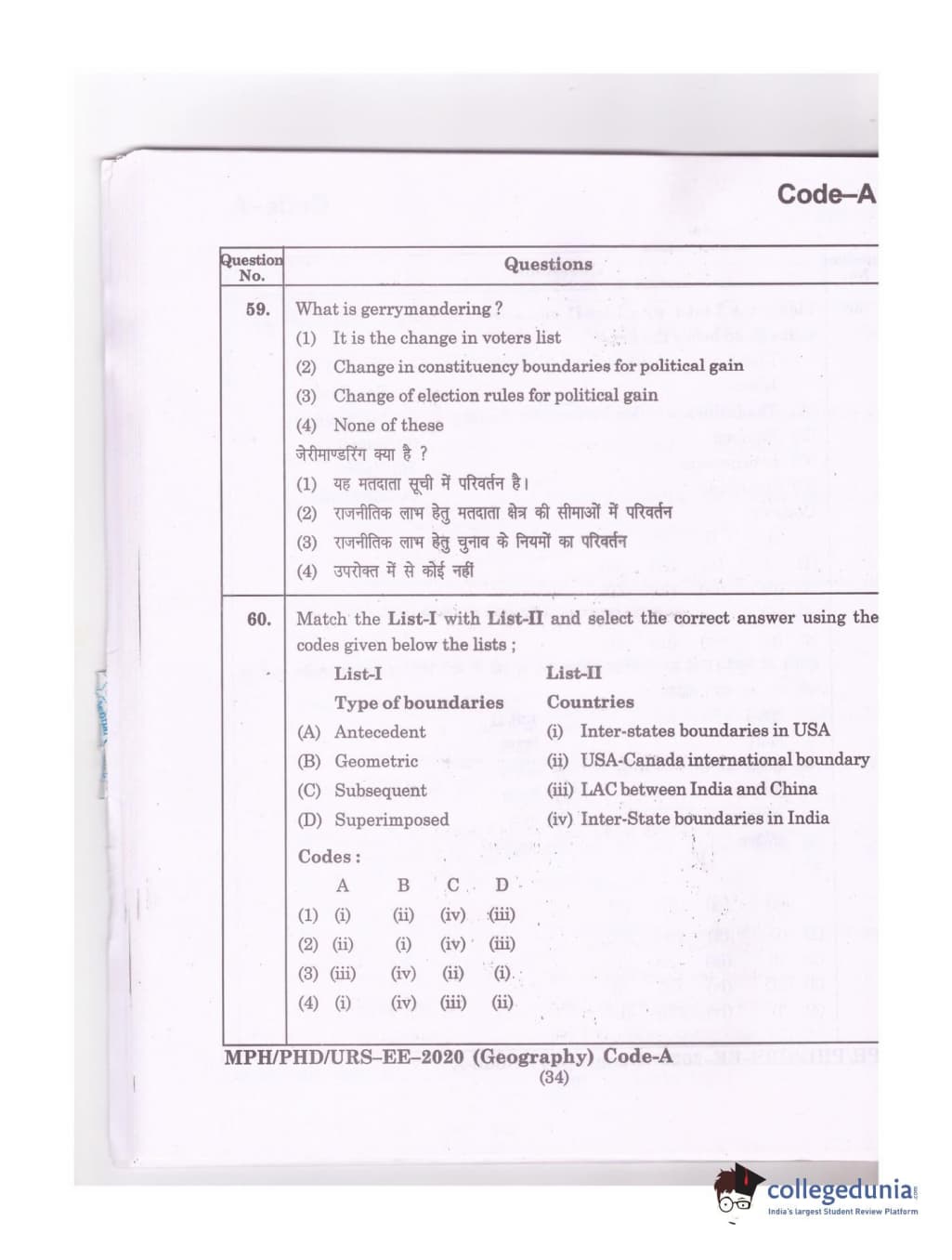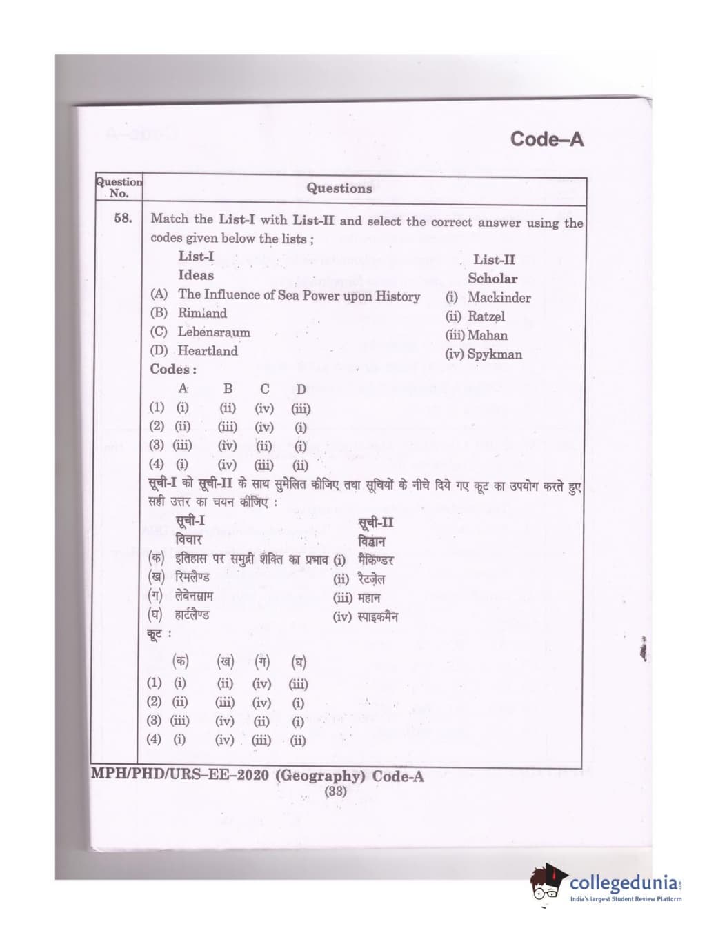 MDUCEE 2020 Ph.D./M.Phil./URS Geography Set A Question Paper with Answer Key PDFs