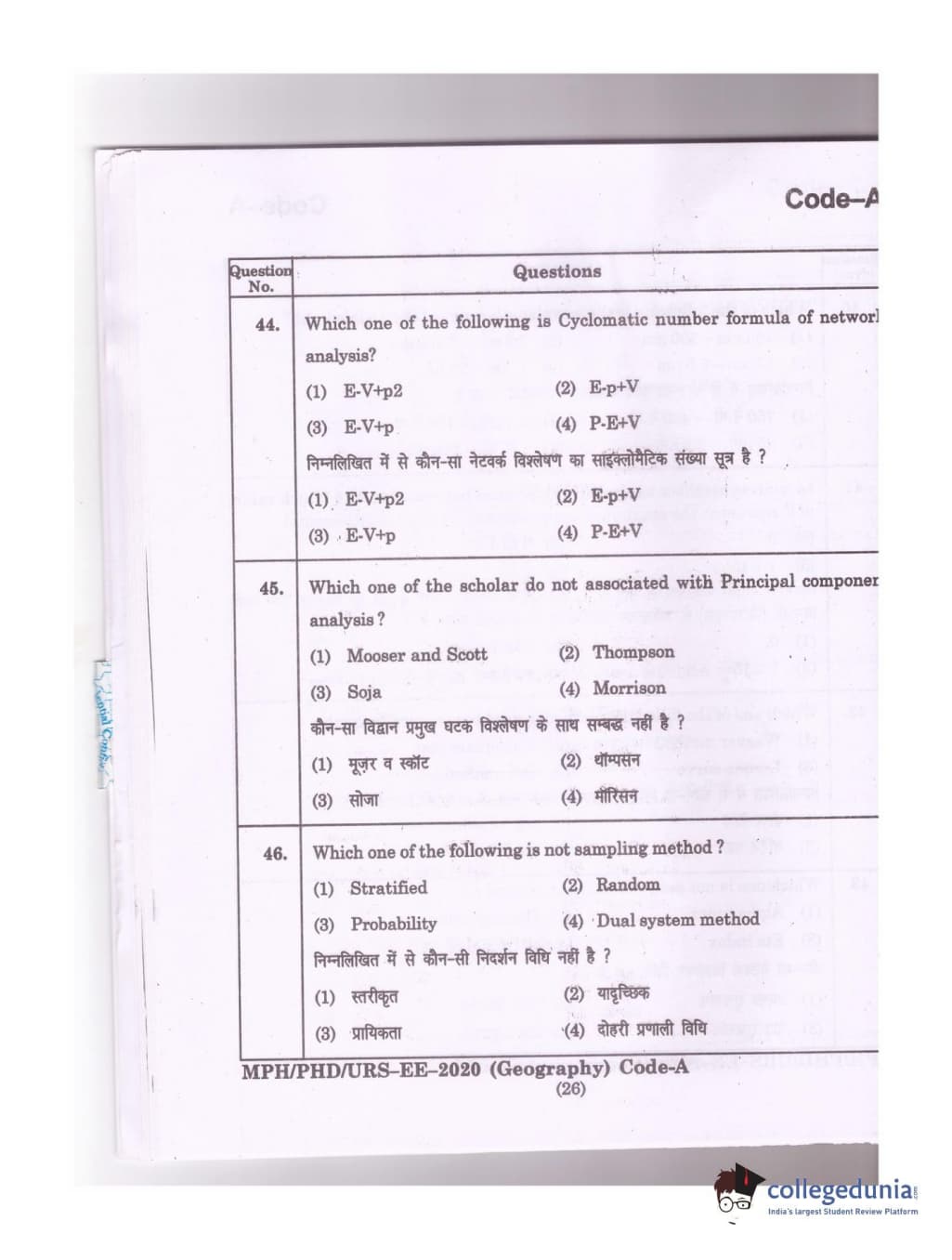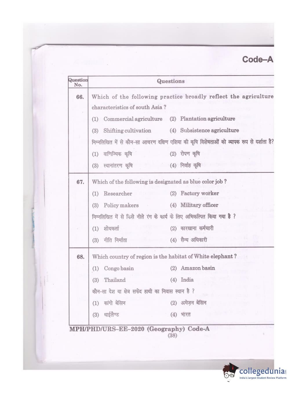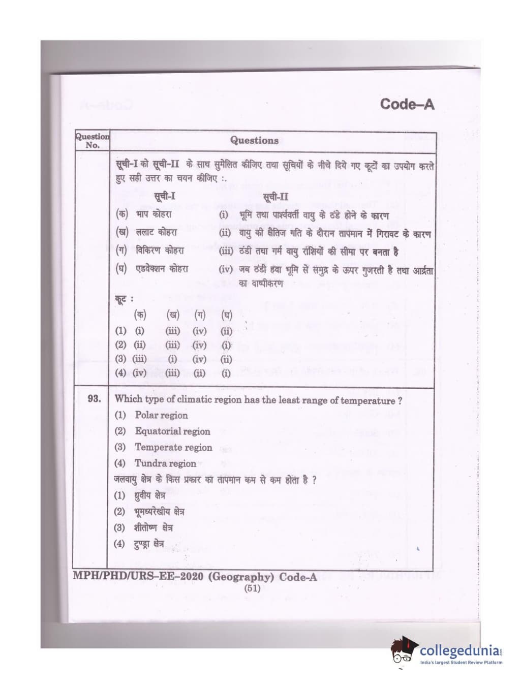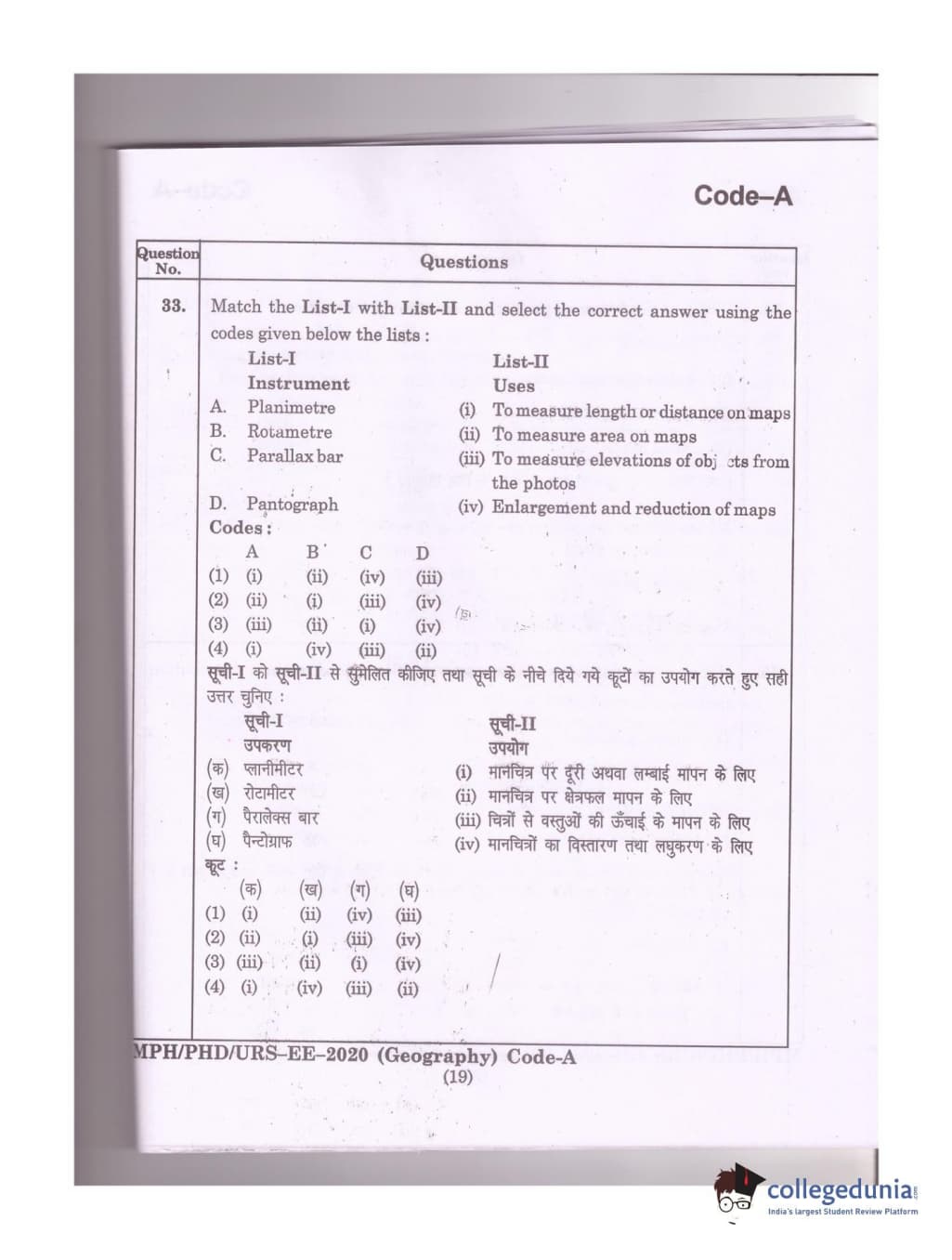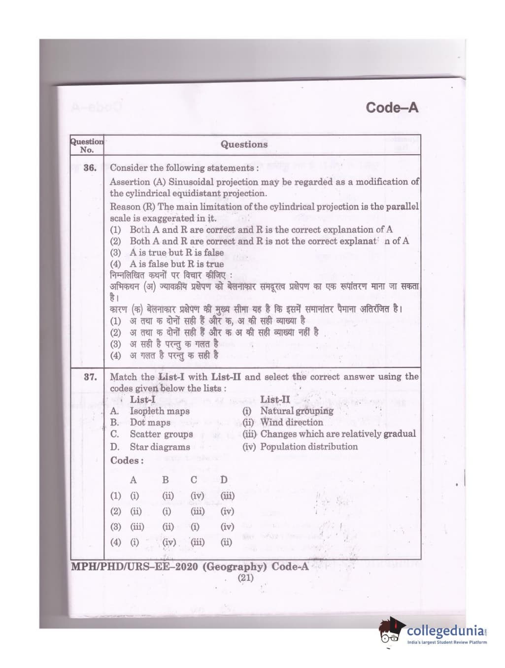 MDUCEE 2020 Ph.D./M.Phil./URS Geography Set A Question Paper with Answer Key PDFs