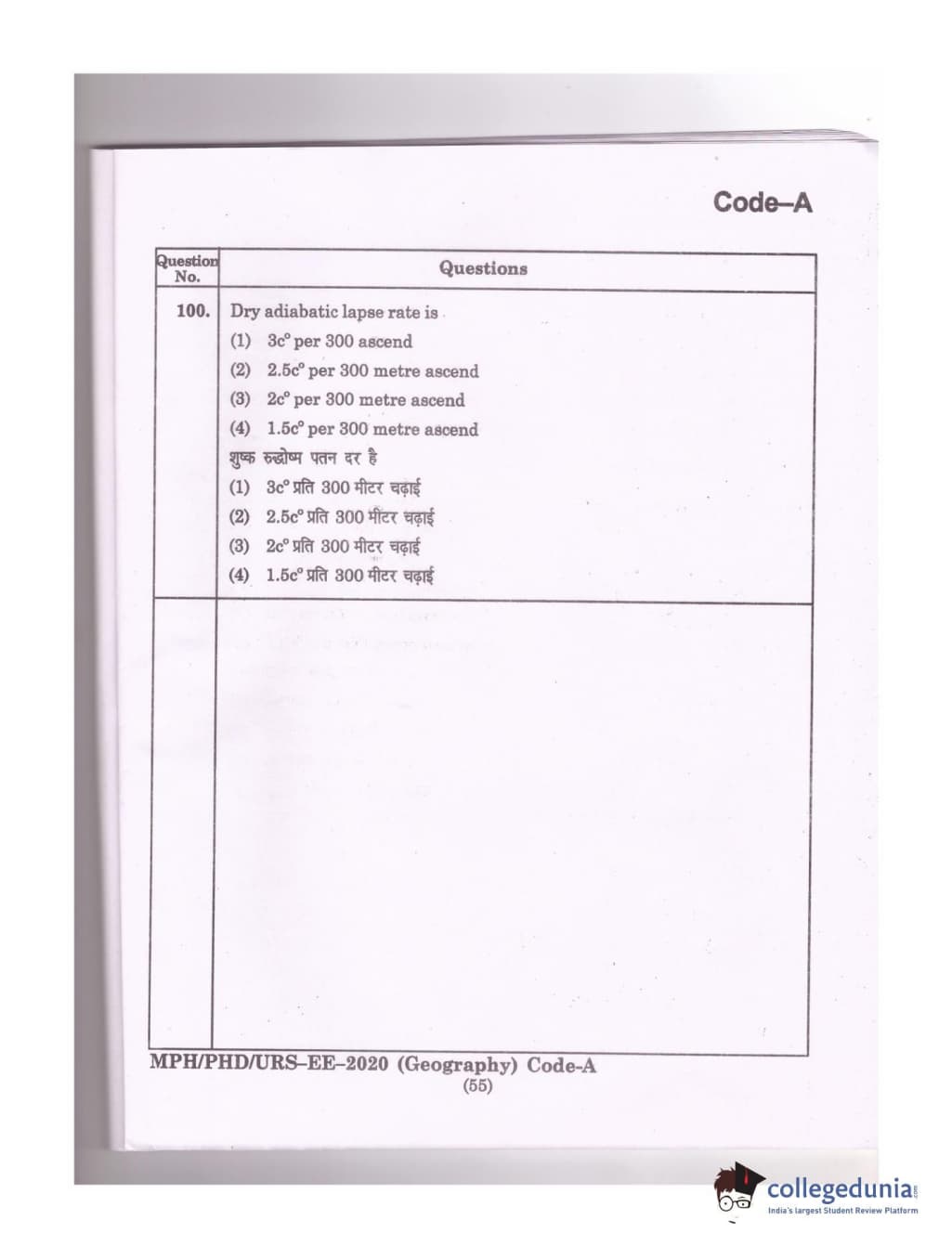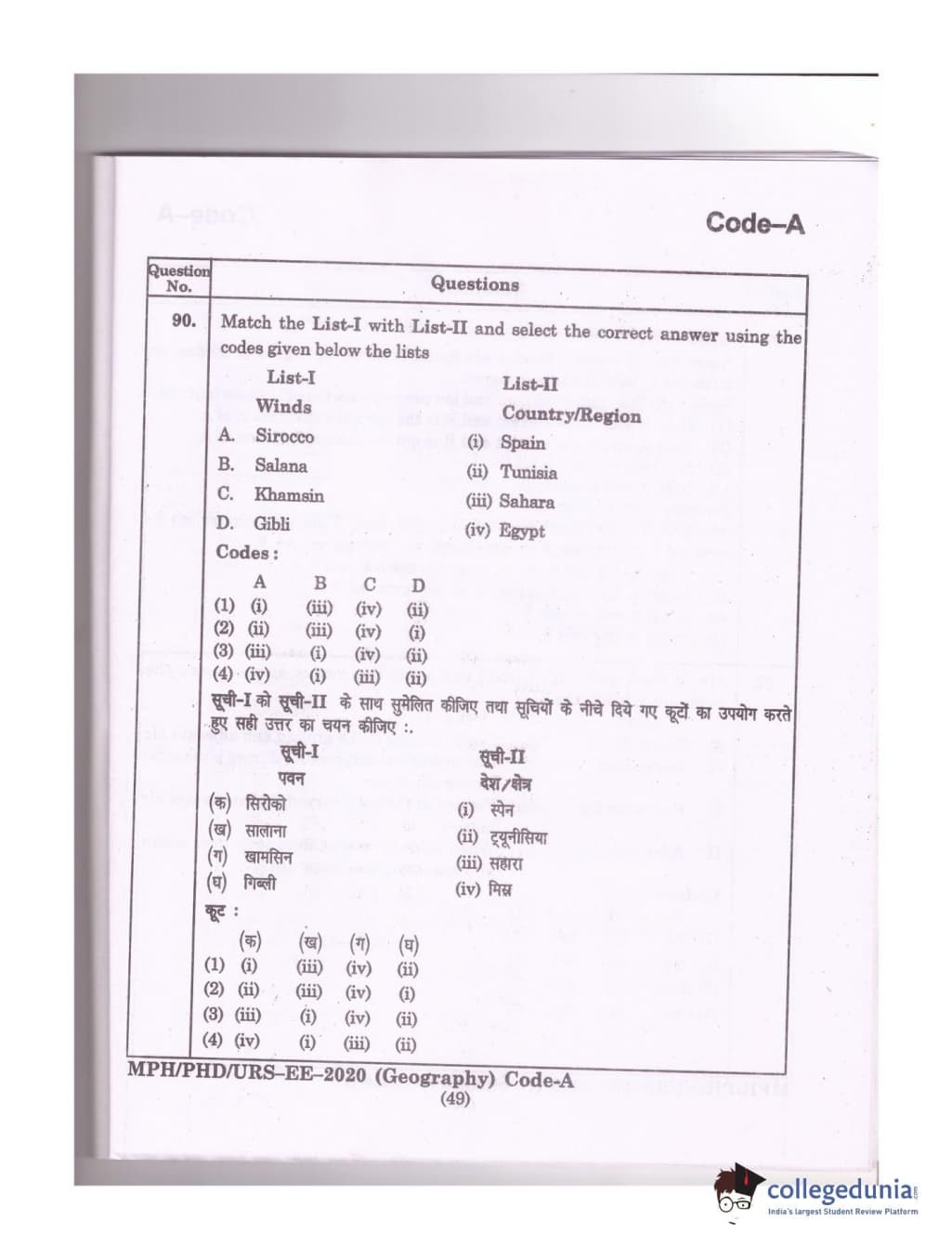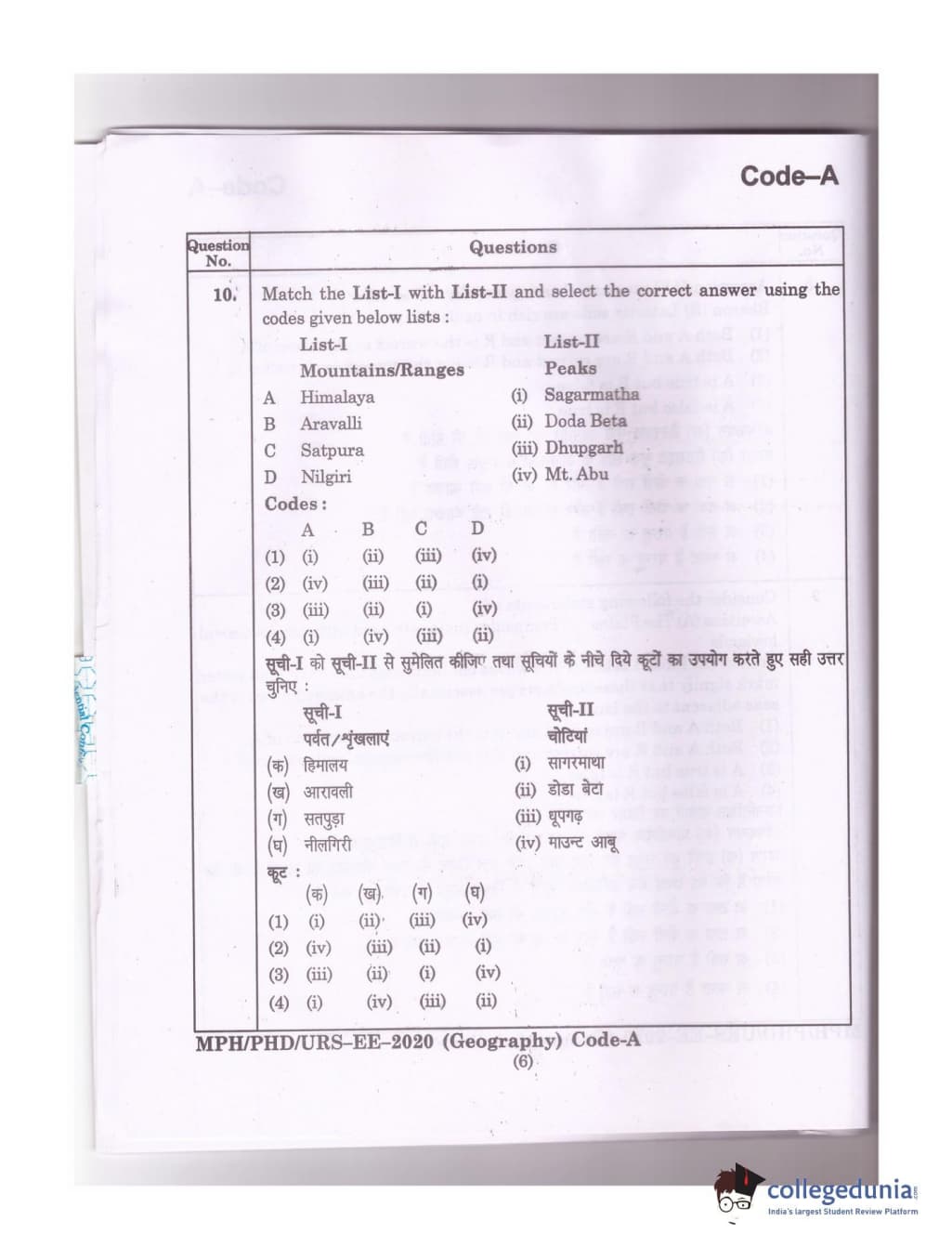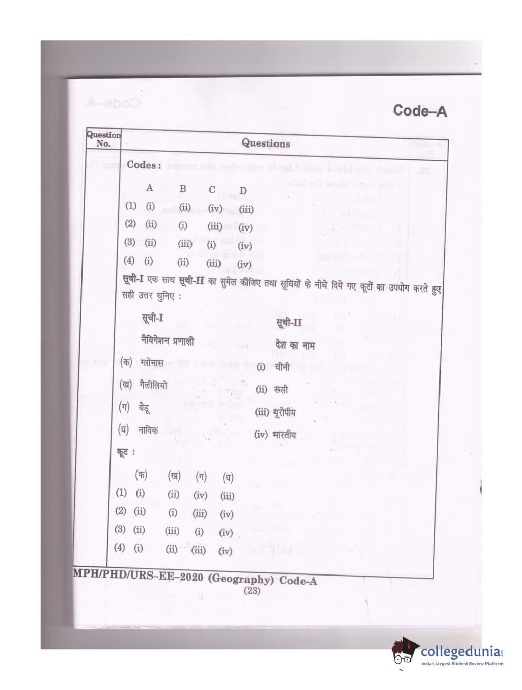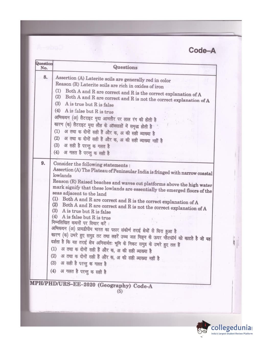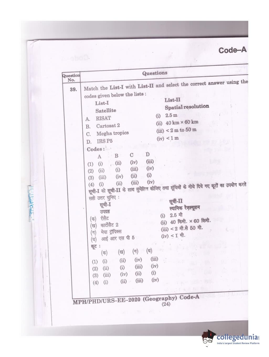 MDUCEE 2020 Ph.D./M.Phil./URS Geography Set A Question Paper with Answer Key PDFs