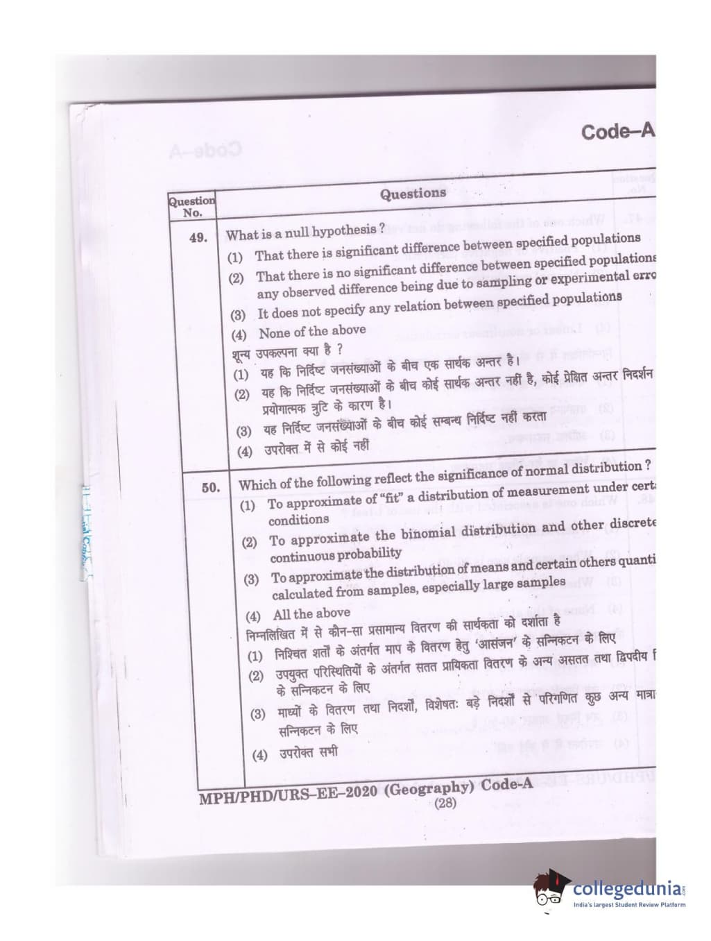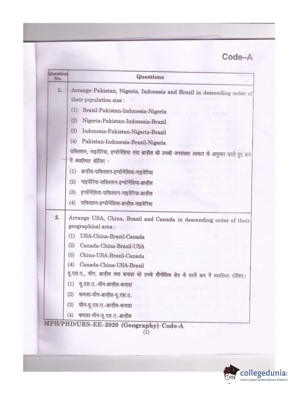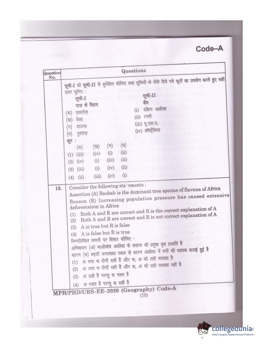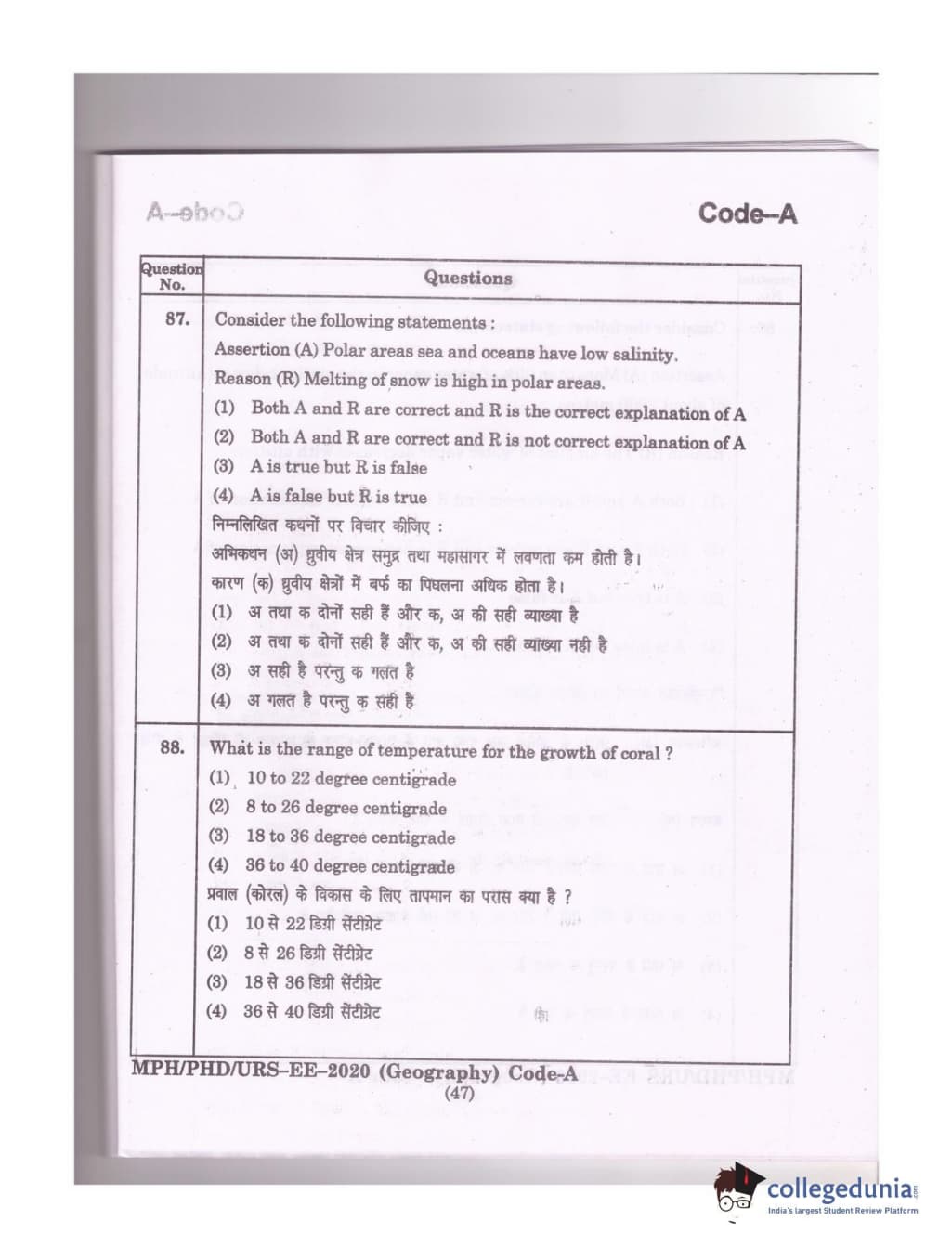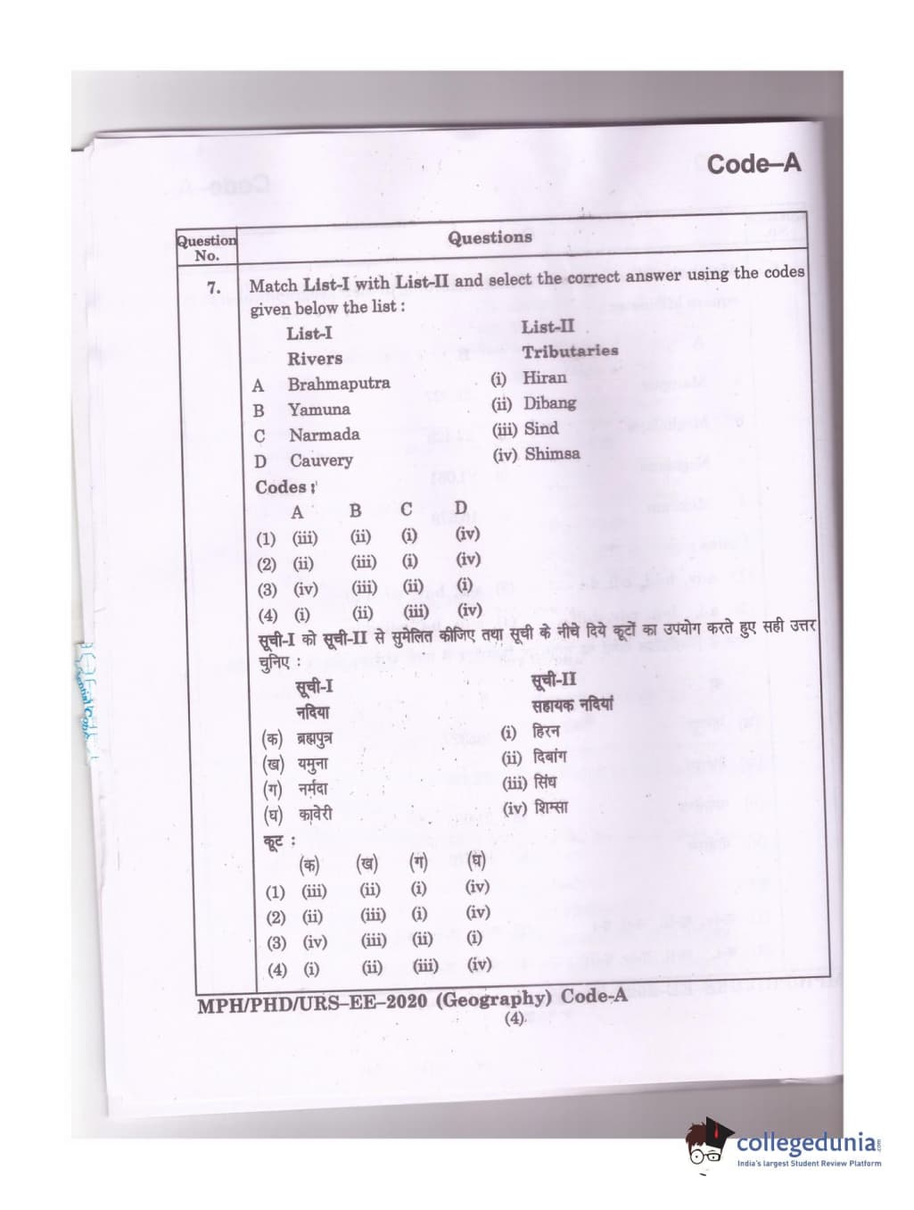 MDUCEE 2020 Ph.D./M.Phil./URS Geography Set A Question Paper with Answer Key PDFs