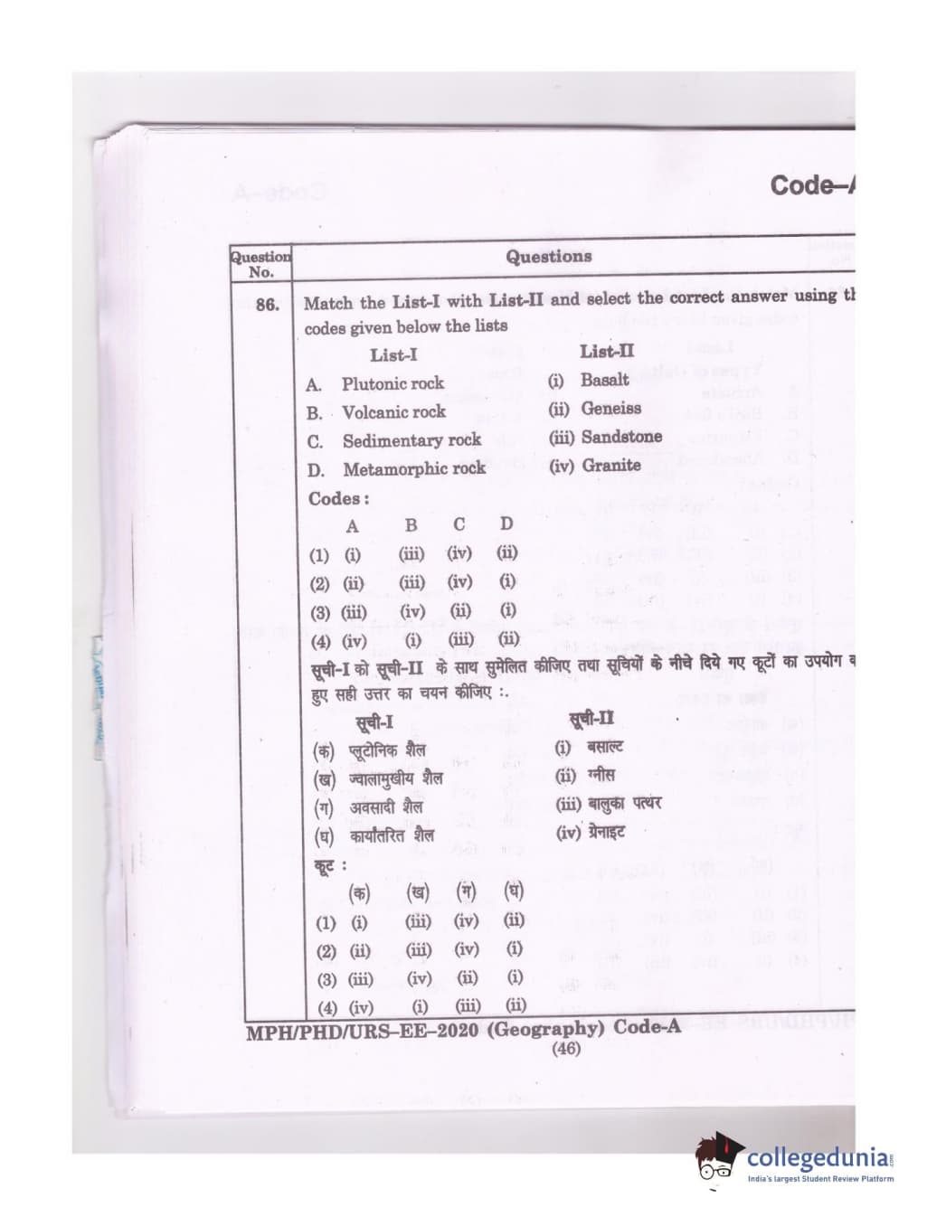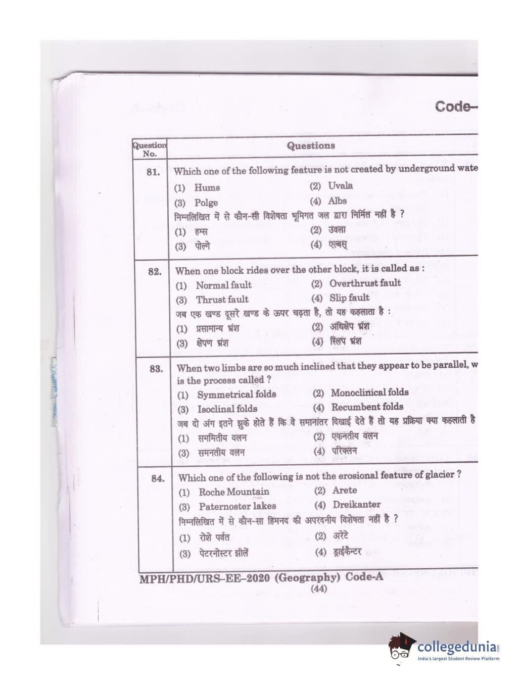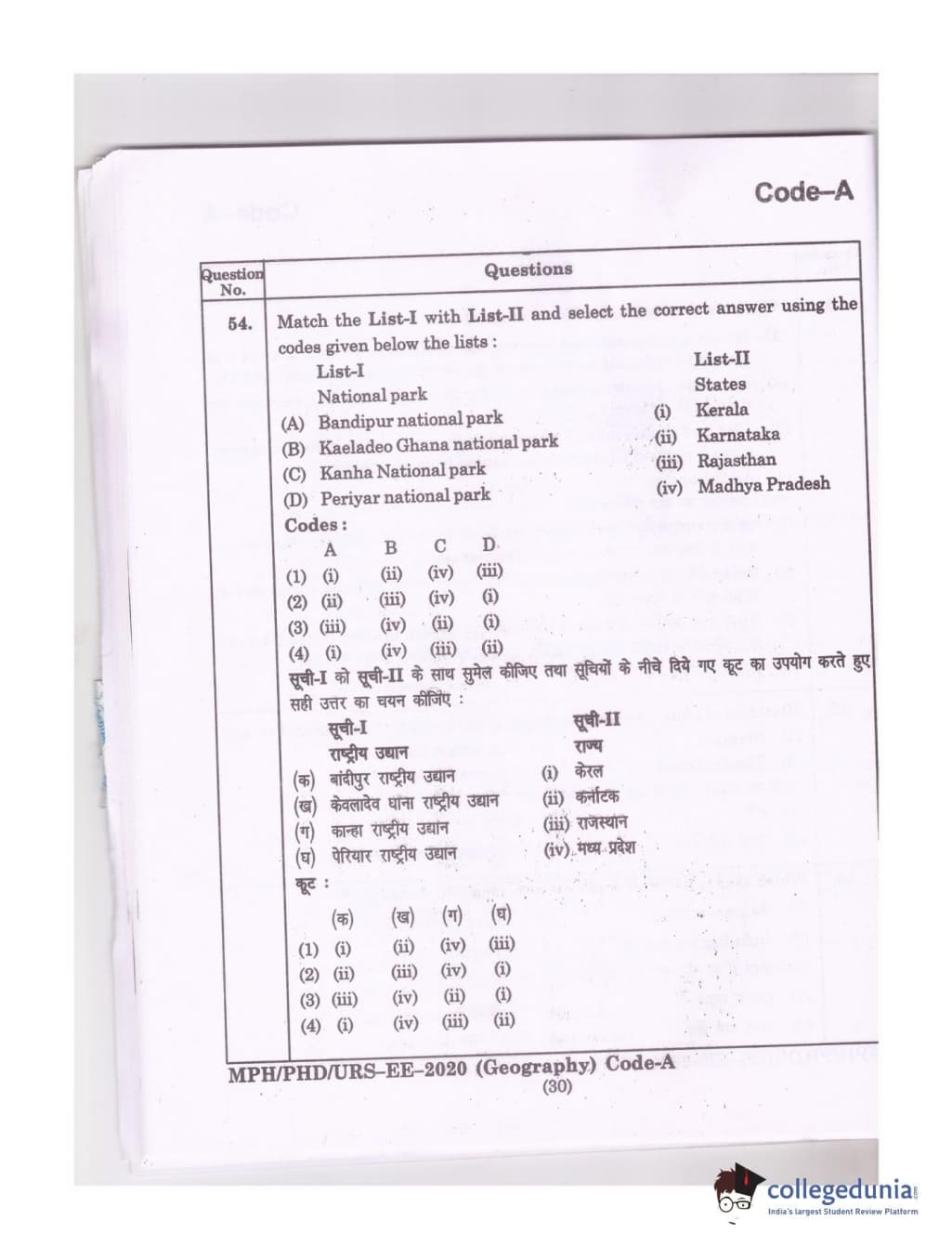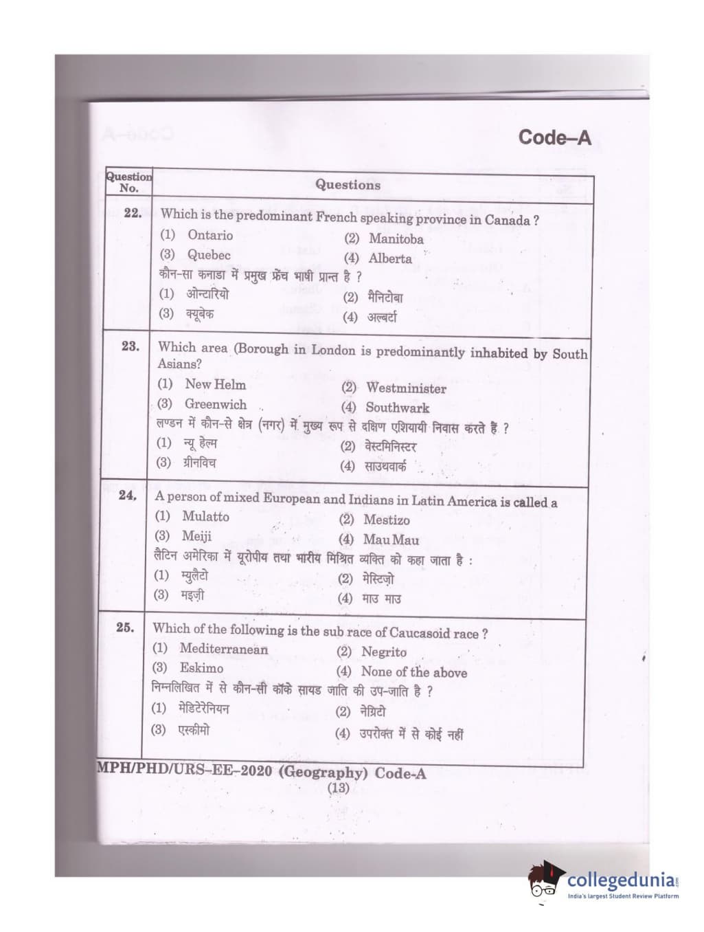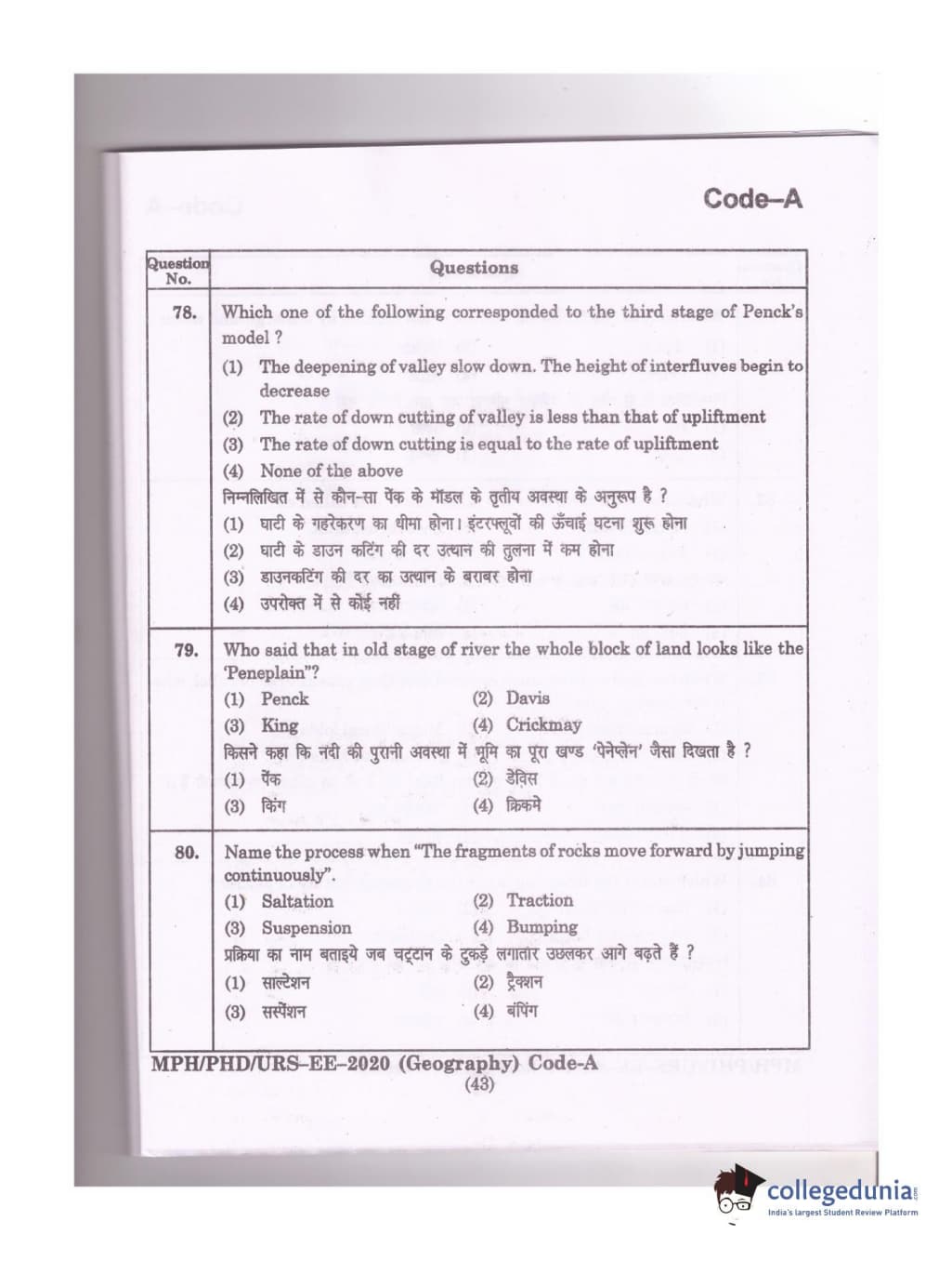 MDUCEE 2020 Ph.D./M.Phil./URS Geography Set A Question Paper with Answer Key PDFs
