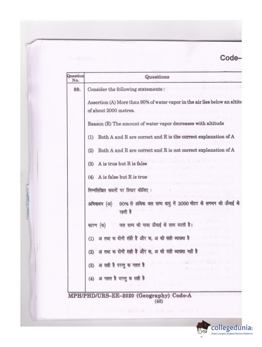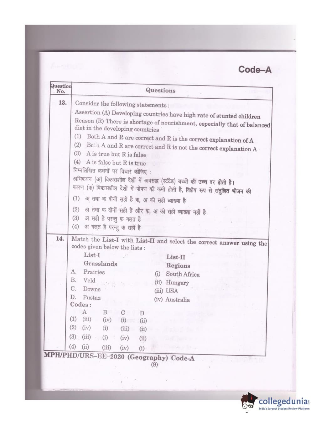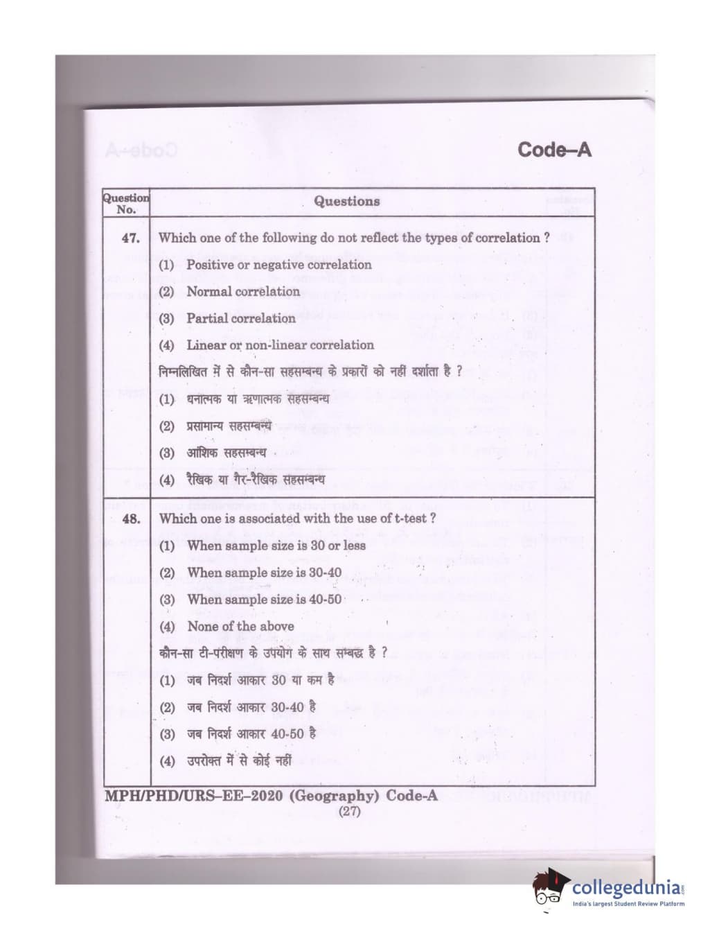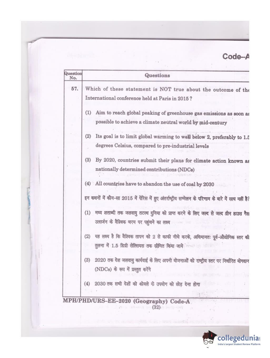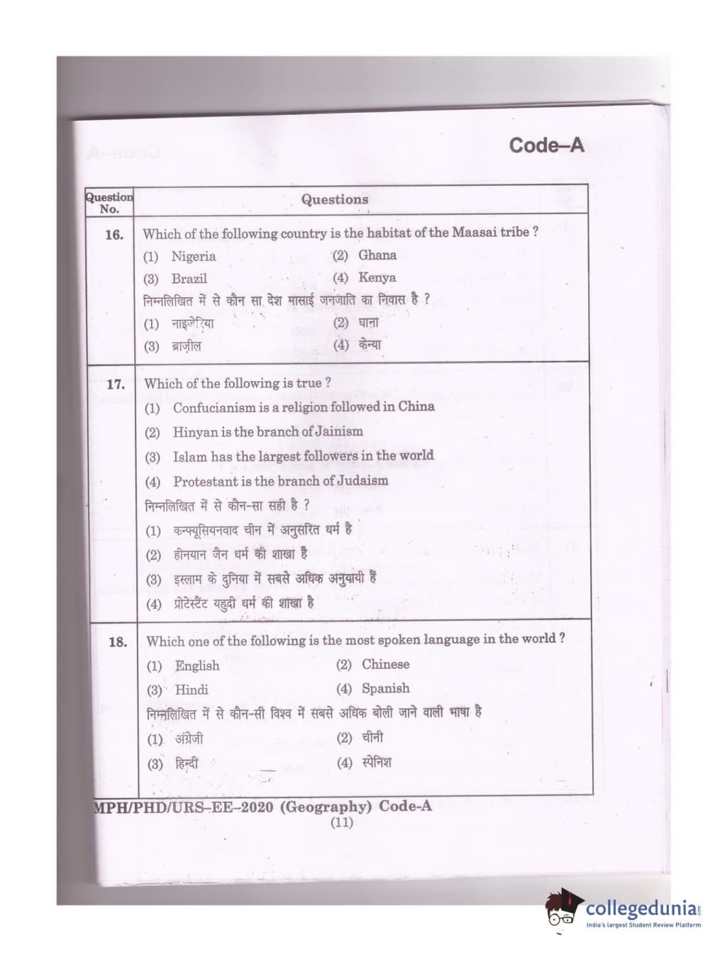 MDUCEE 2020 Ph.D./M.Phil./URS Geography Set A Question Paper with Answer Key PDFs