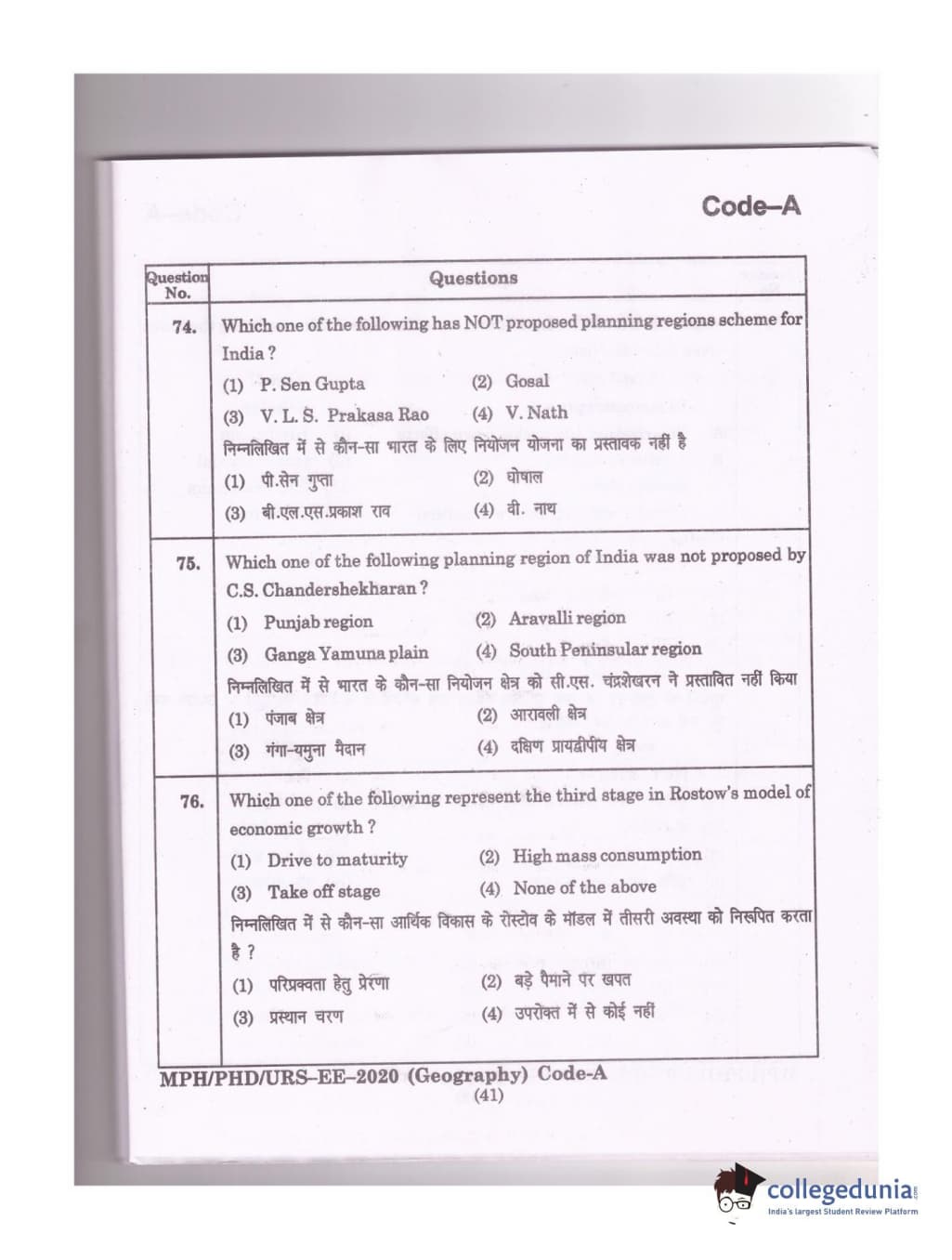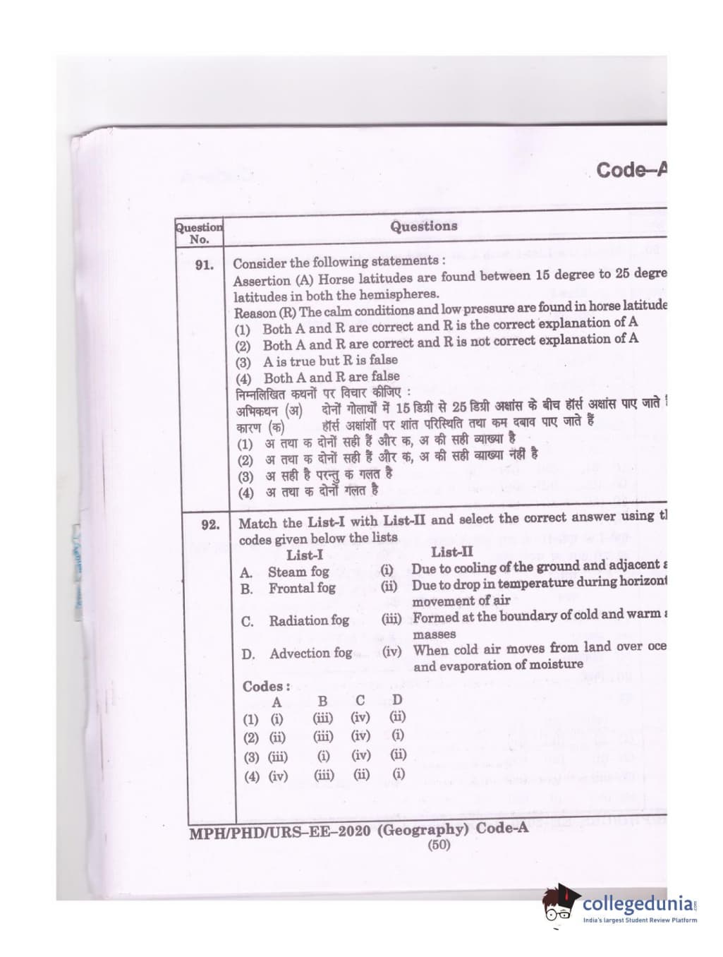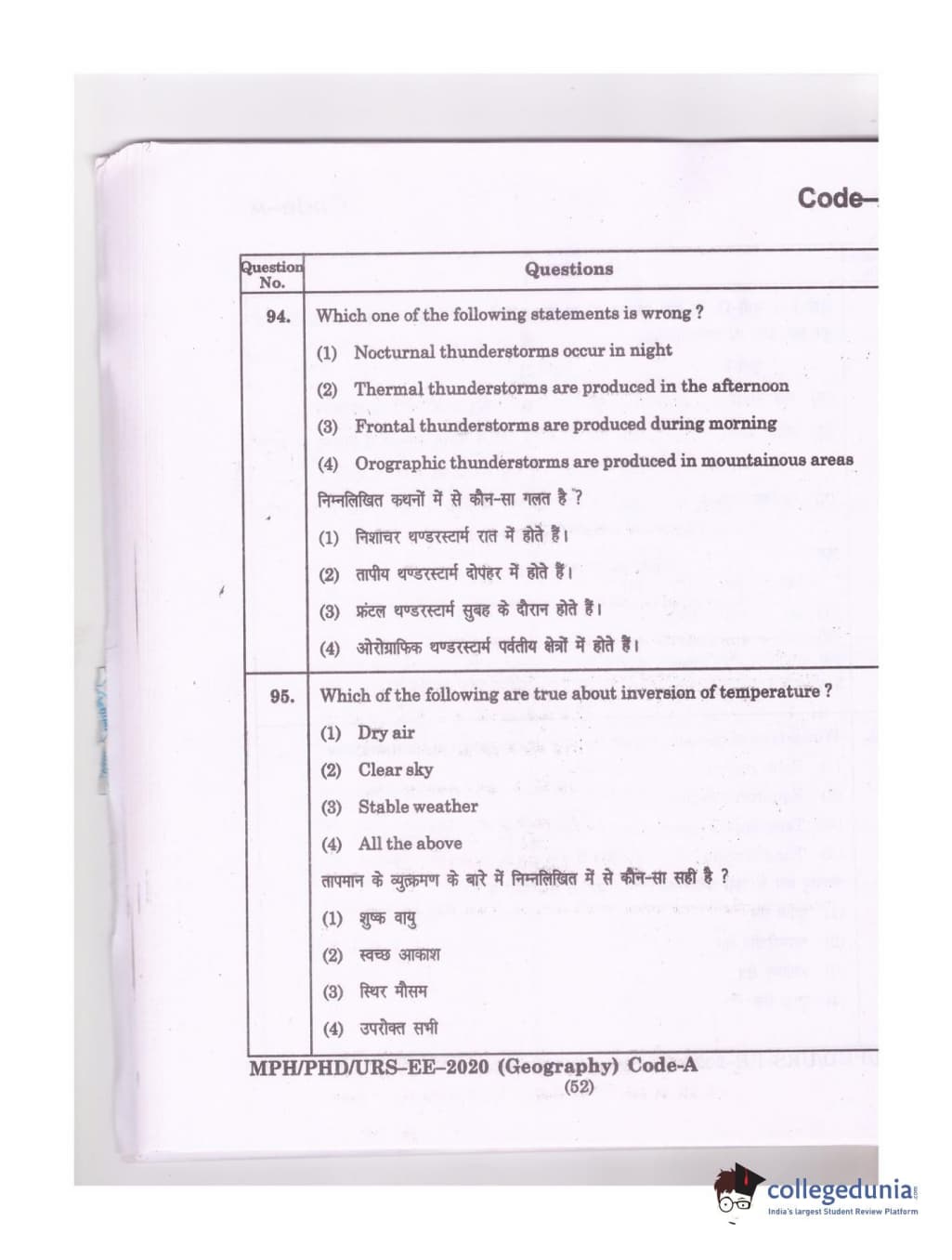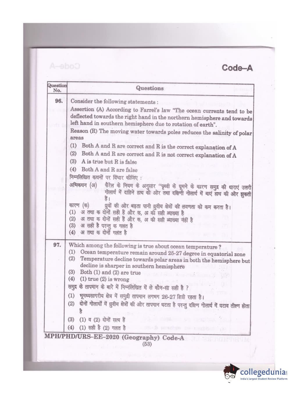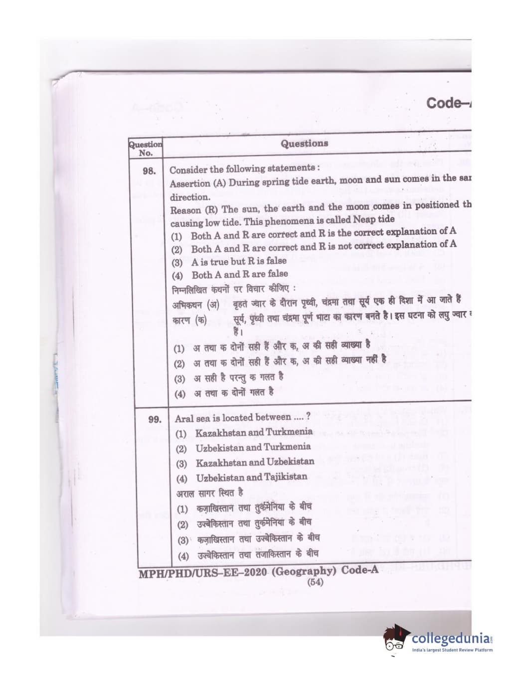 MDUCEE 2020 Ph.D./M.Phil./URS Geography Set A Question Paper with Answer Key PDFs