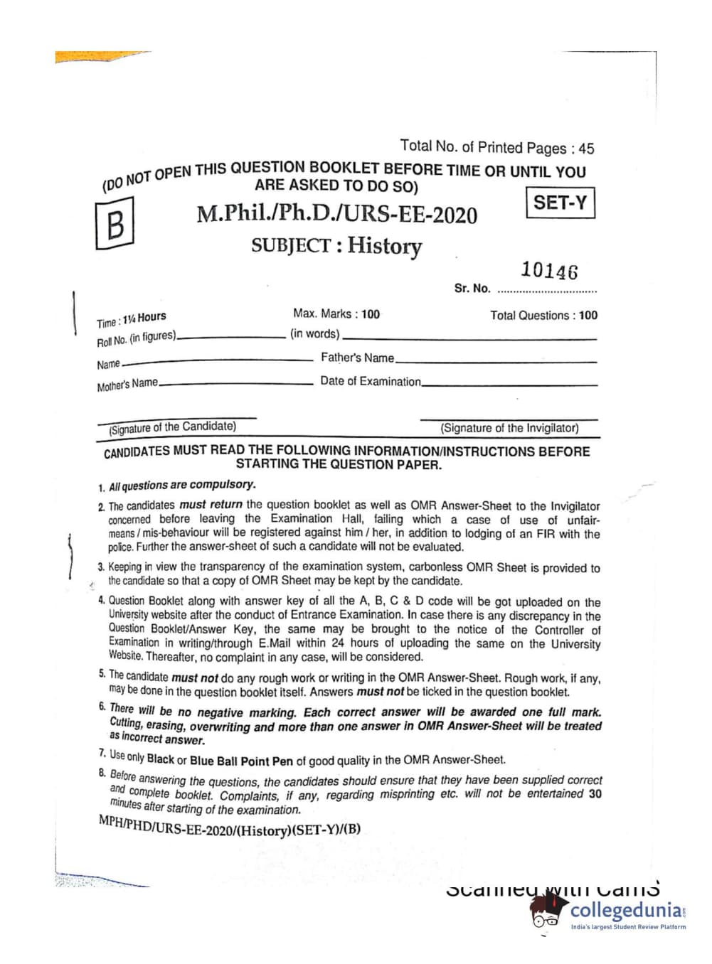 | MDUCEE 2020 Ph.D./M.Phil./URS History Set B Question Paper PDF | MDUCEE 2020 Ph.D./M.Phil./URS History Set B Answer Key PDF |