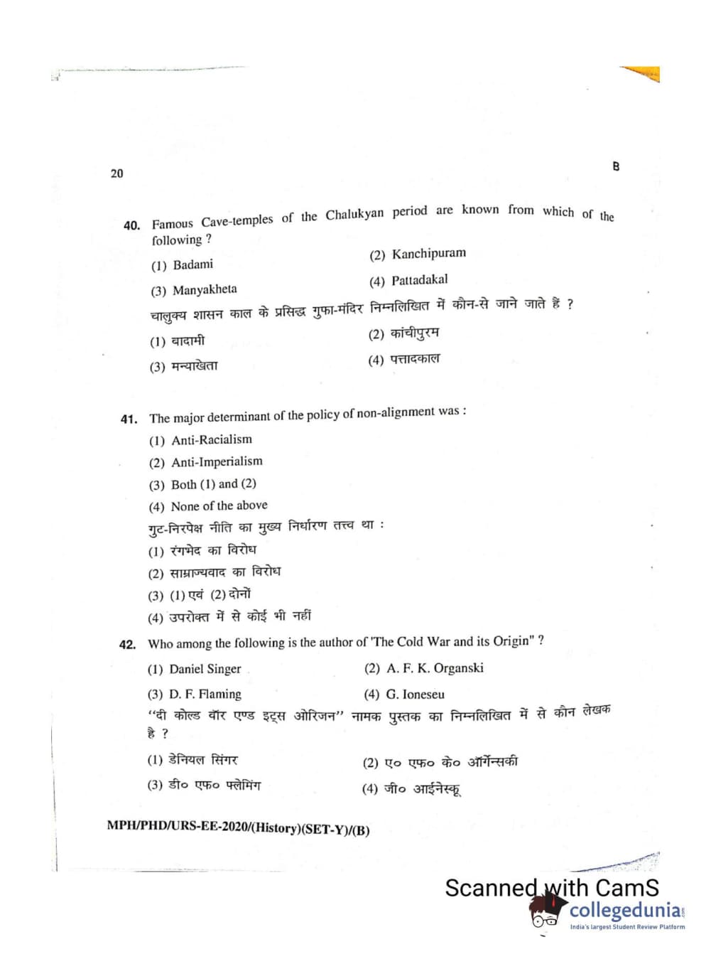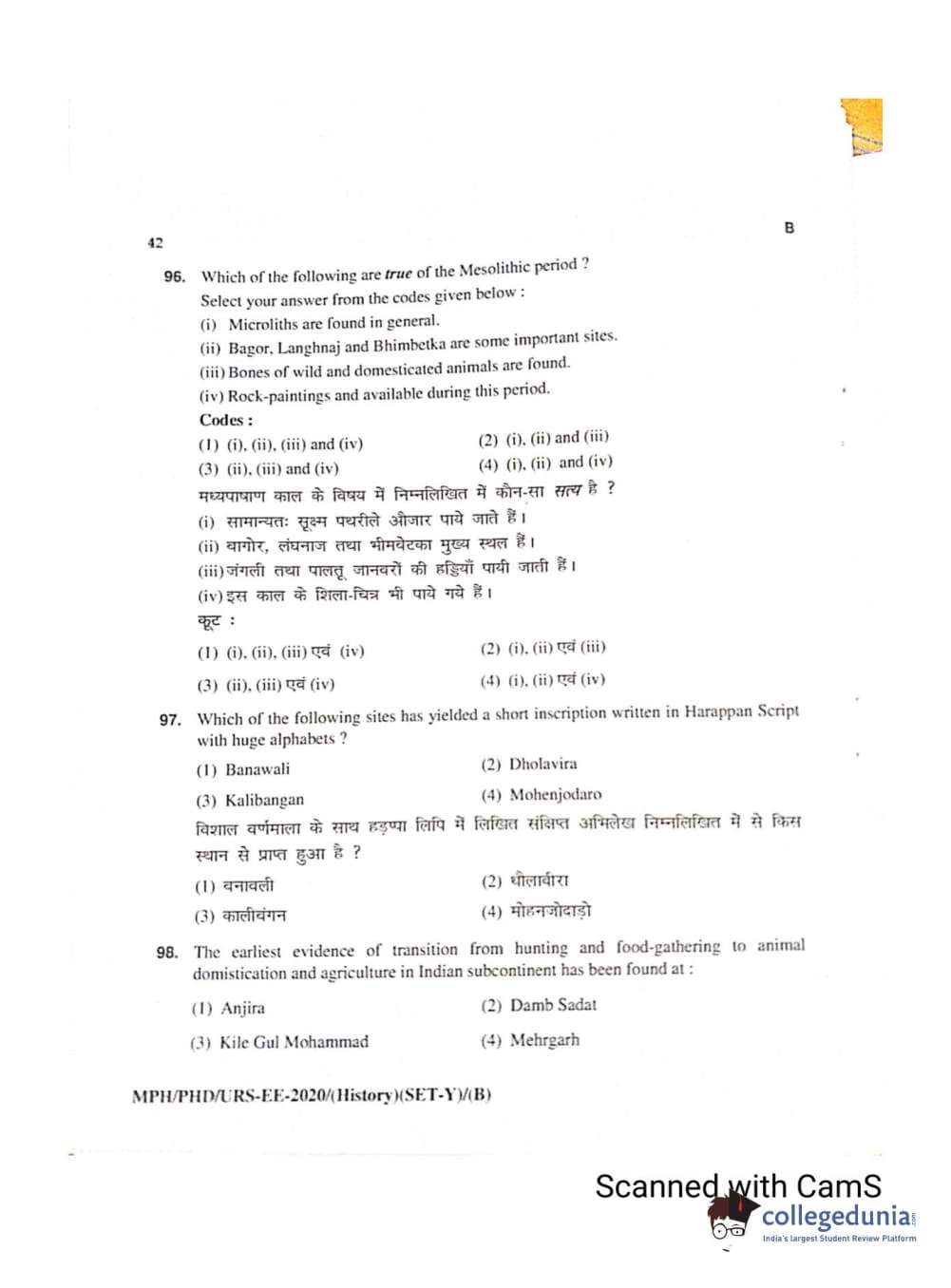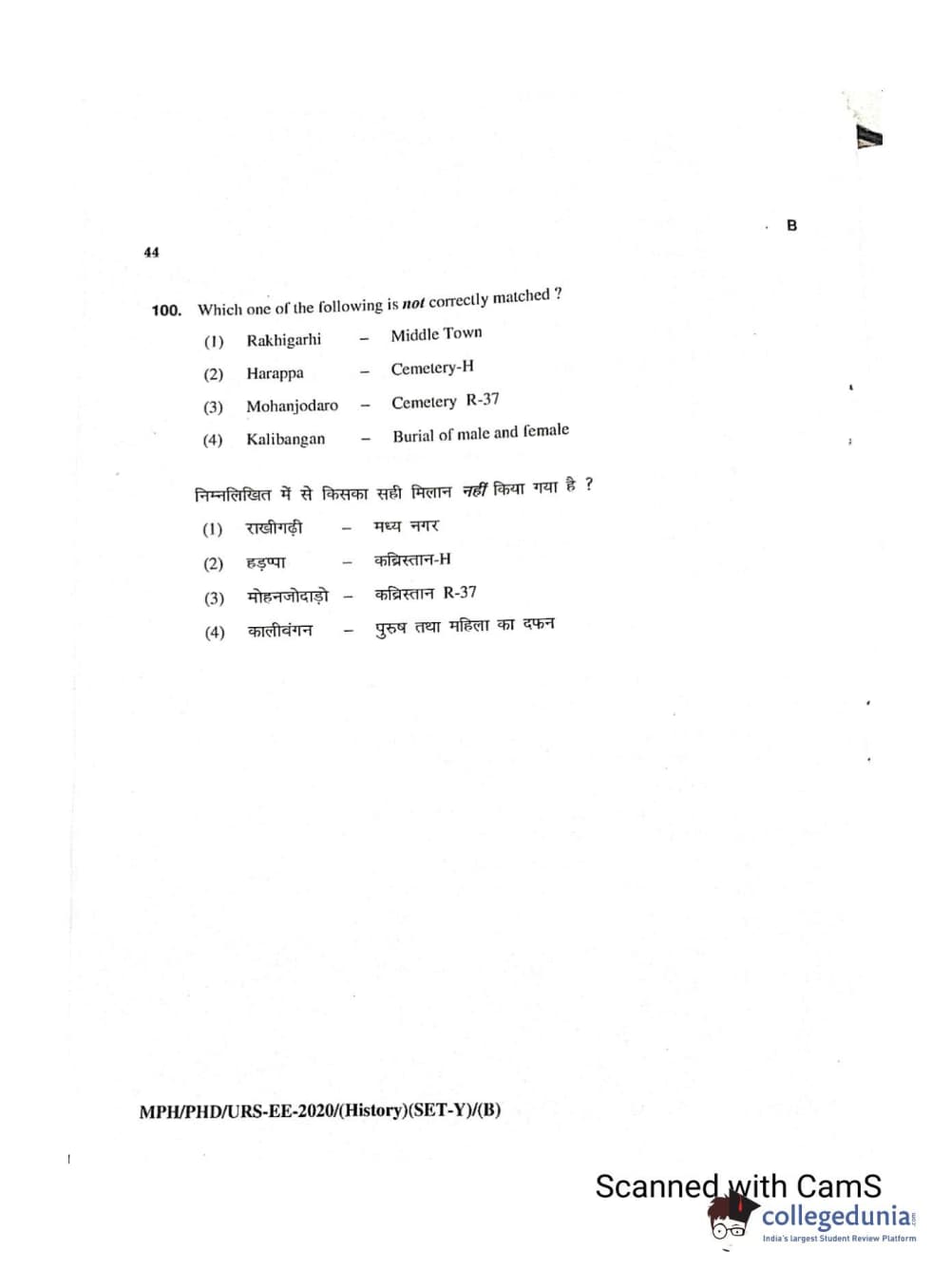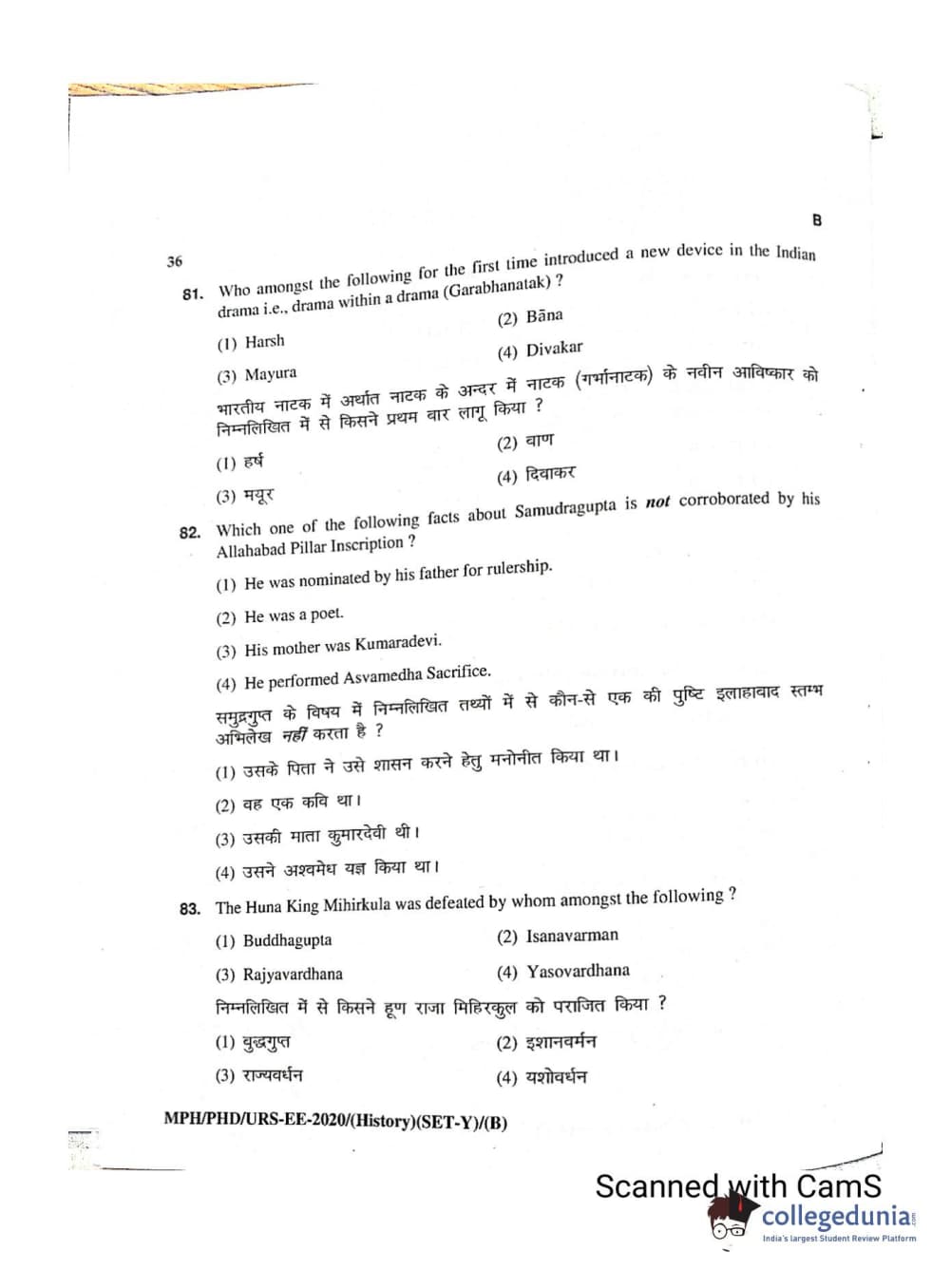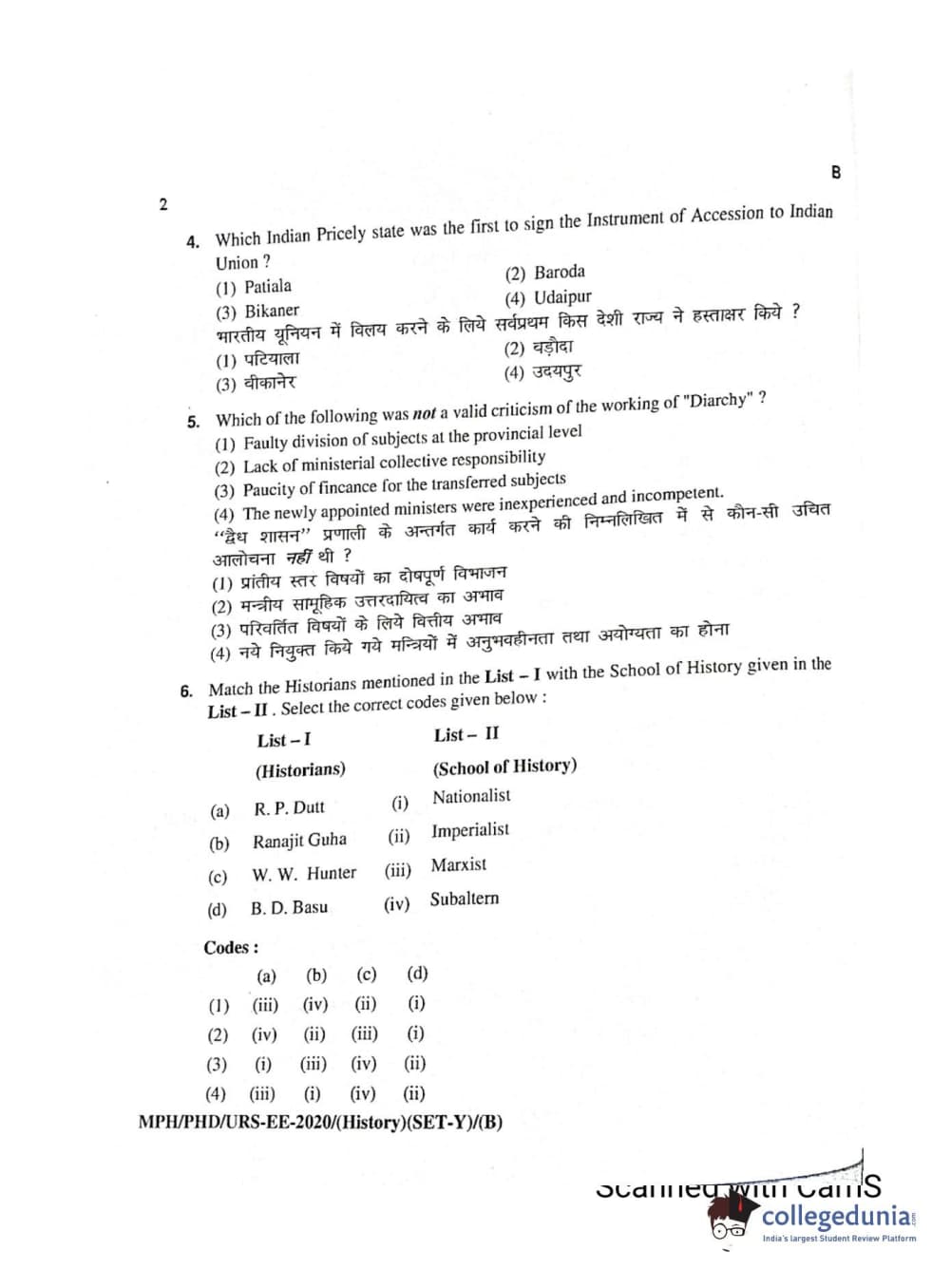 MDUCEE 2020 Ph.D./M.Phil./URS History Set B Question Paper with Answer Key PDFs