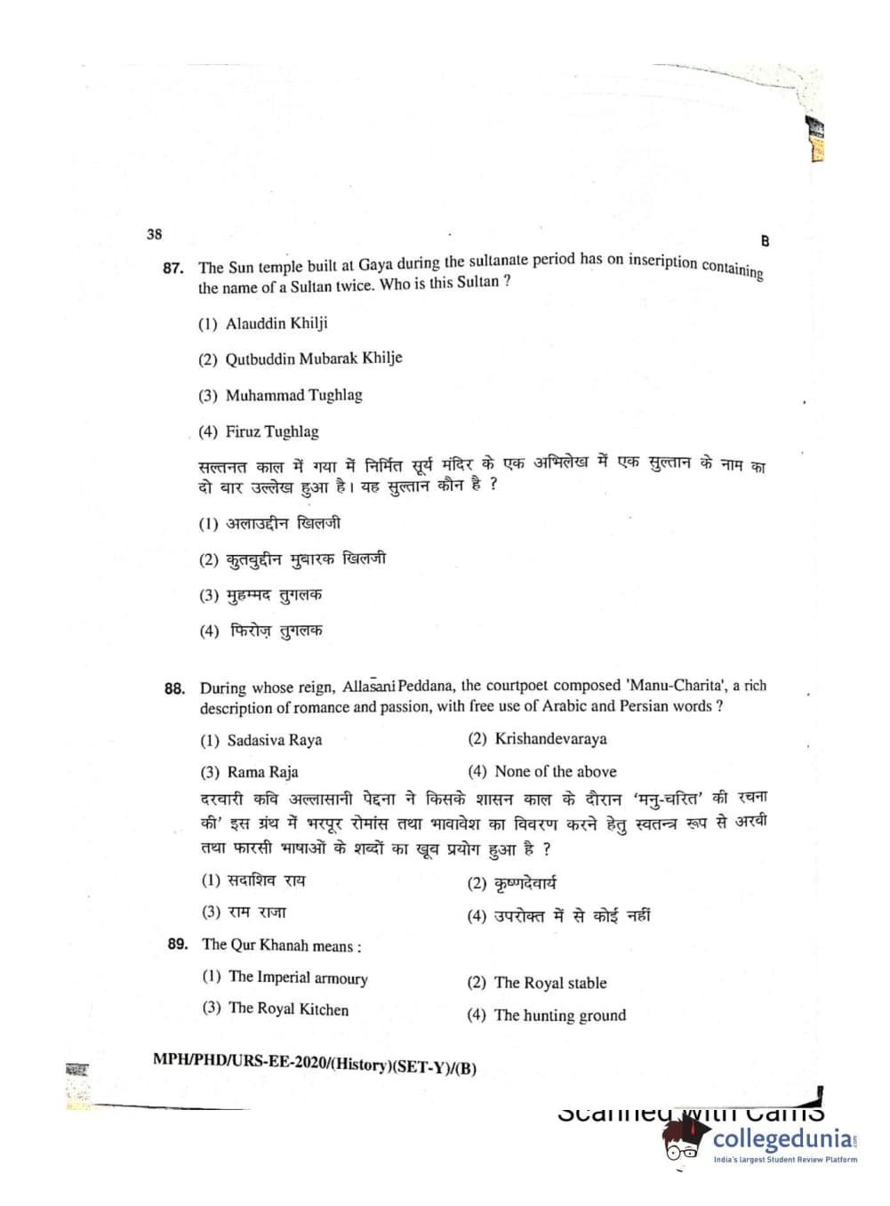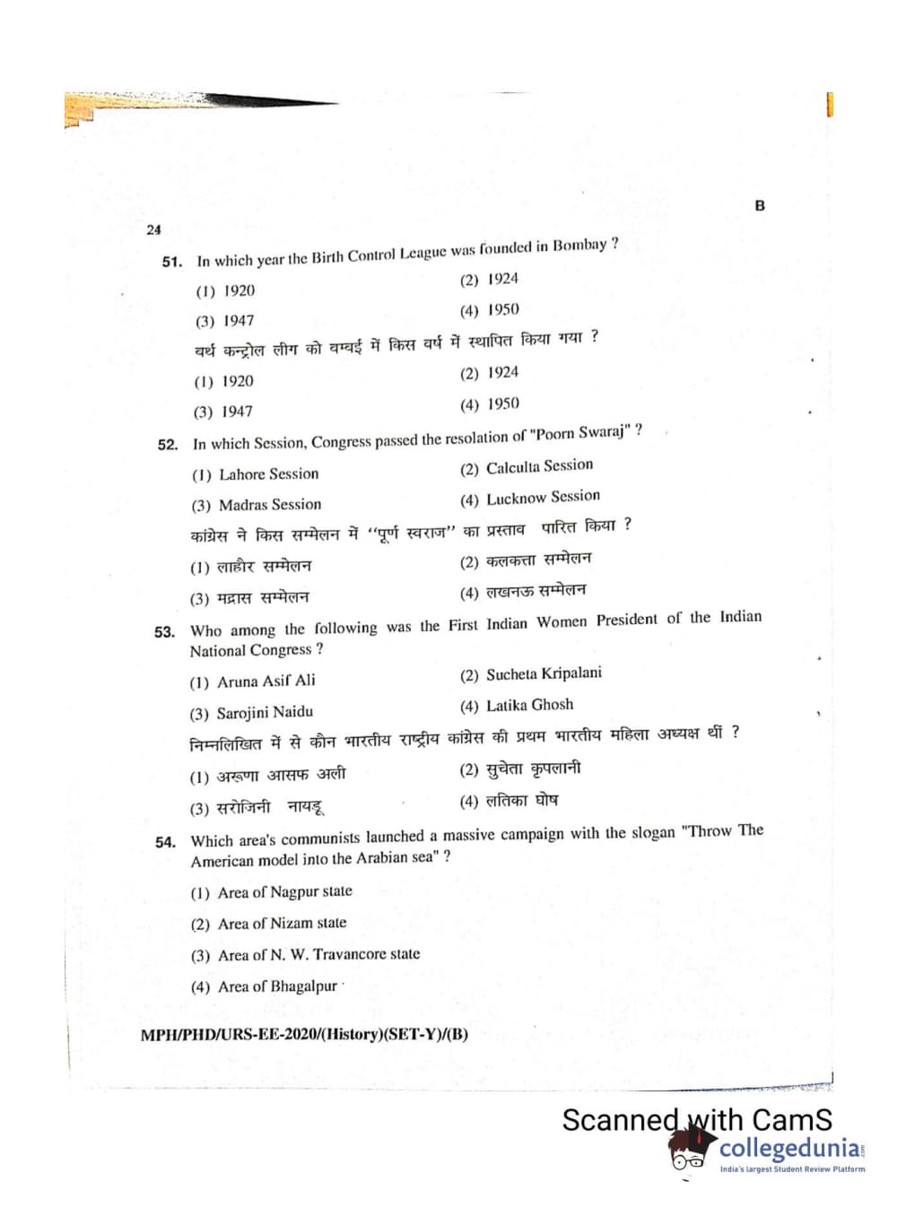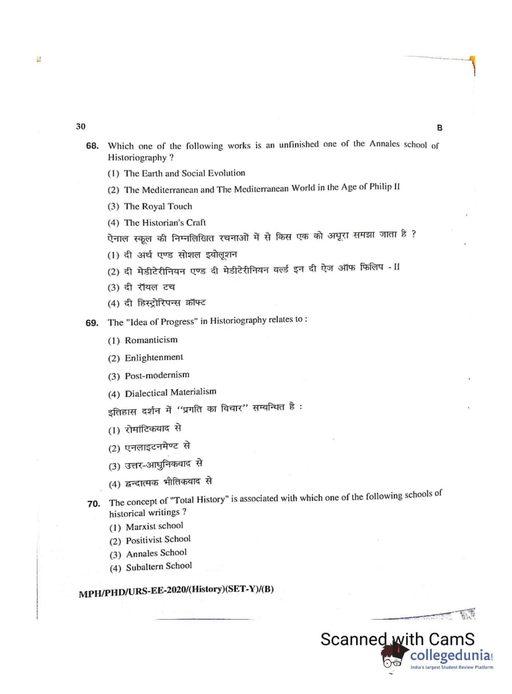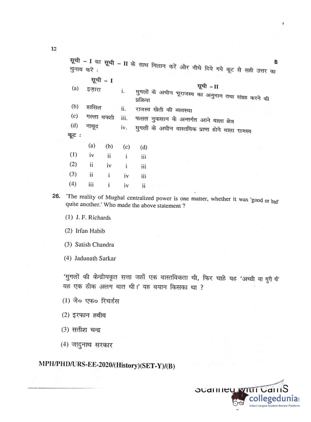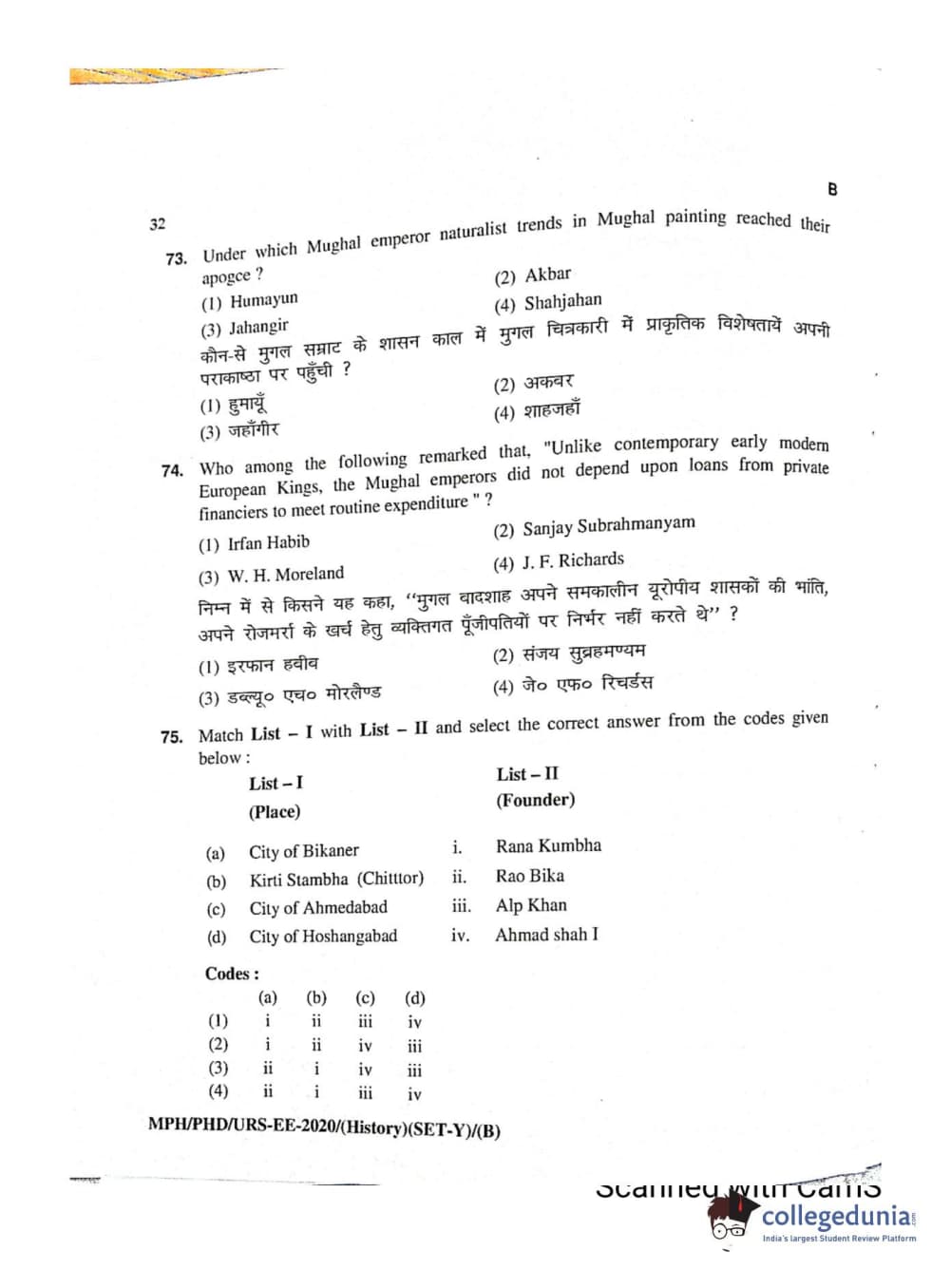 MDUCEE 2020 Ph.D./M.Phil./URS History Set B Question Paper with Answer Key PDFs