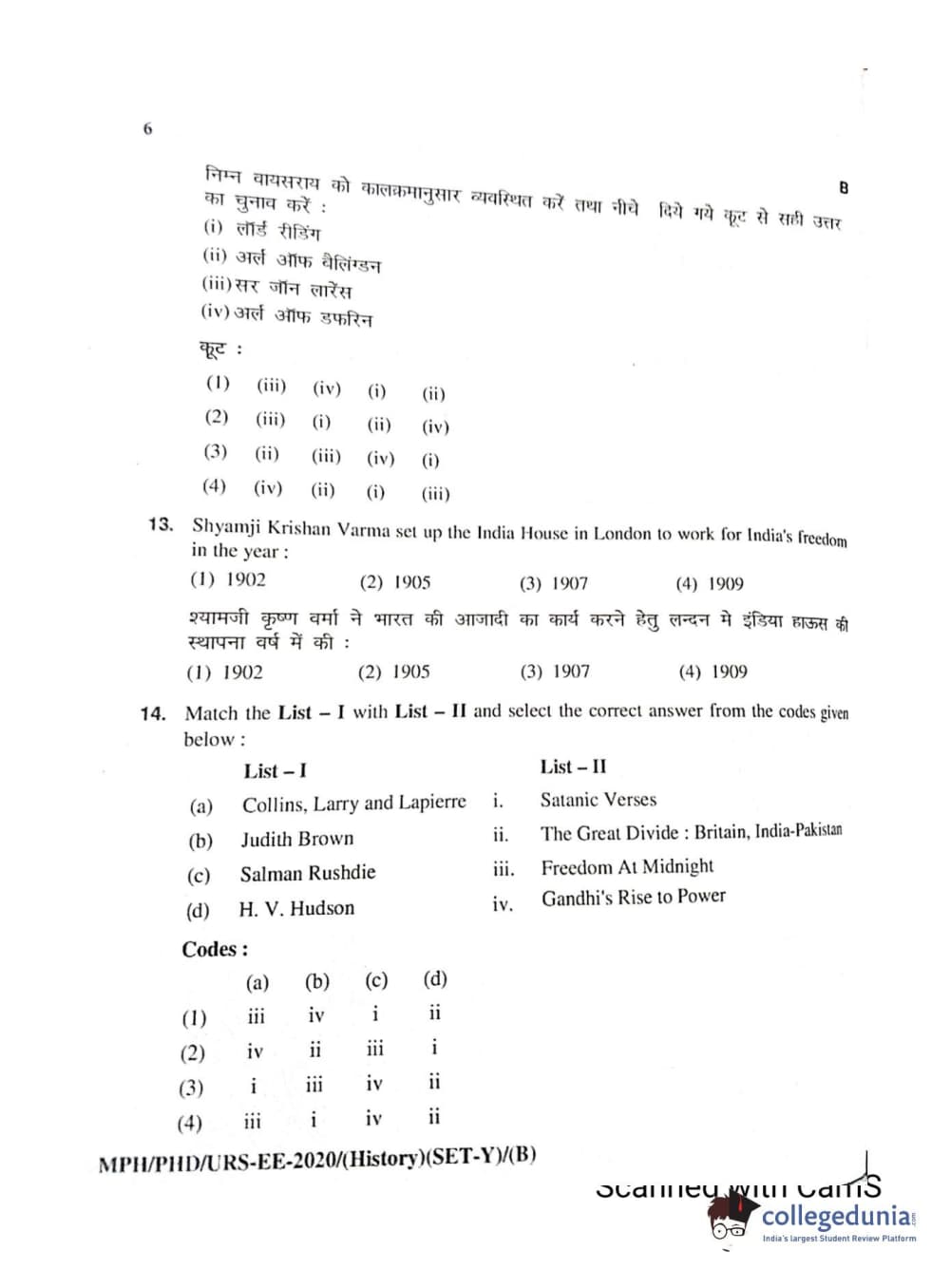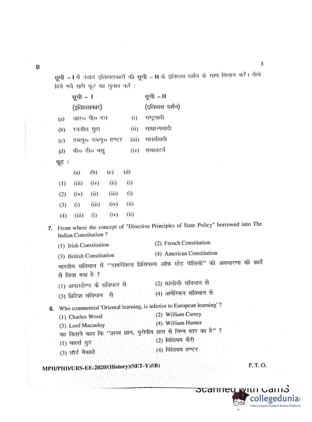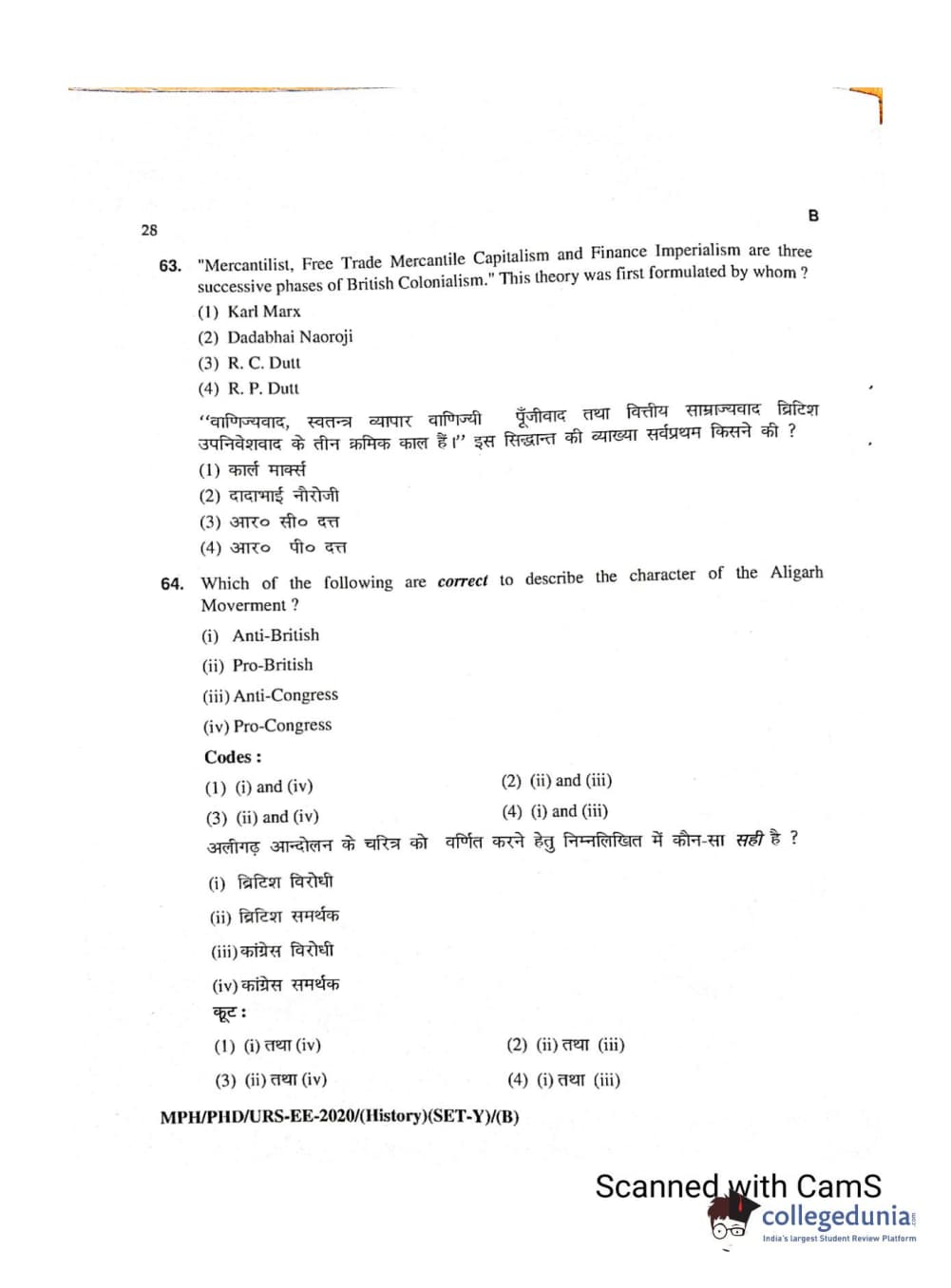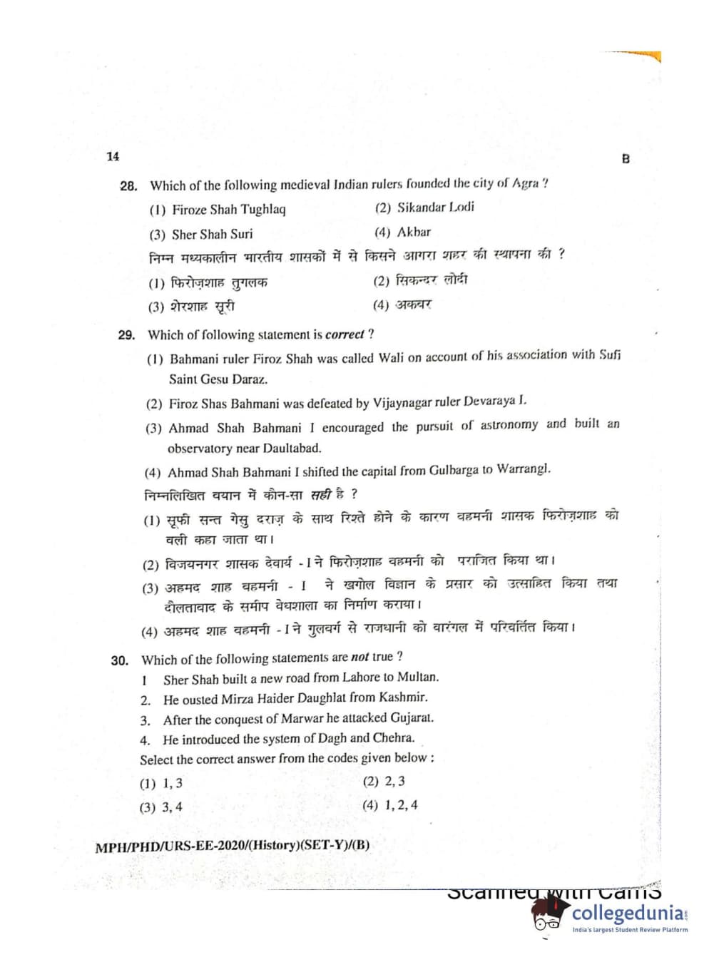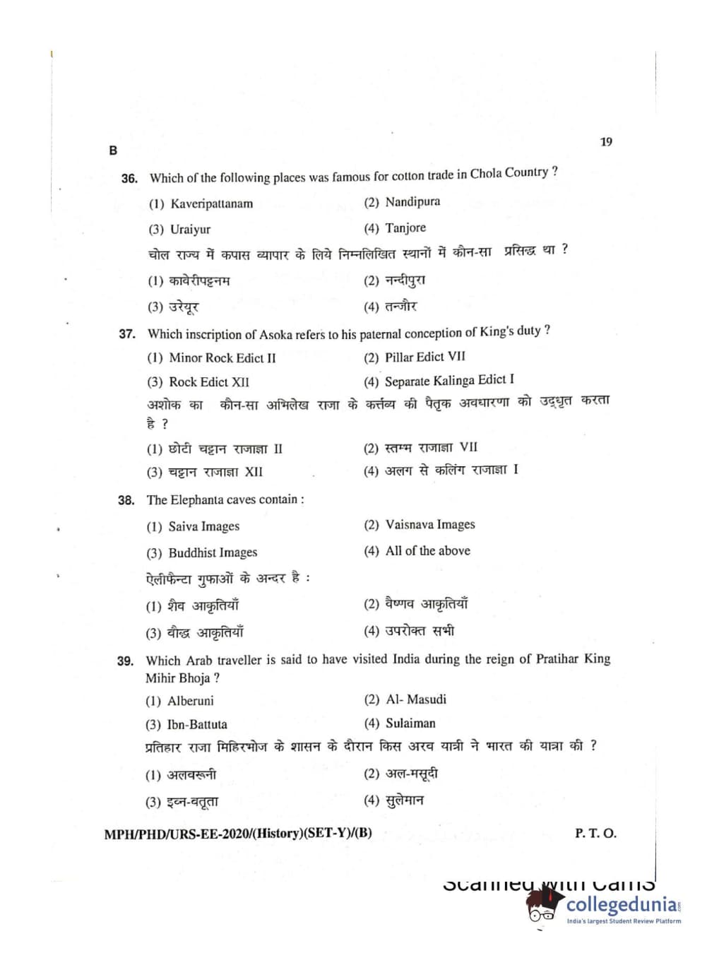 MDUCEE 2020 Ph.D./M.Phil./URS History Set B Question Paper with Answer Key PDFs