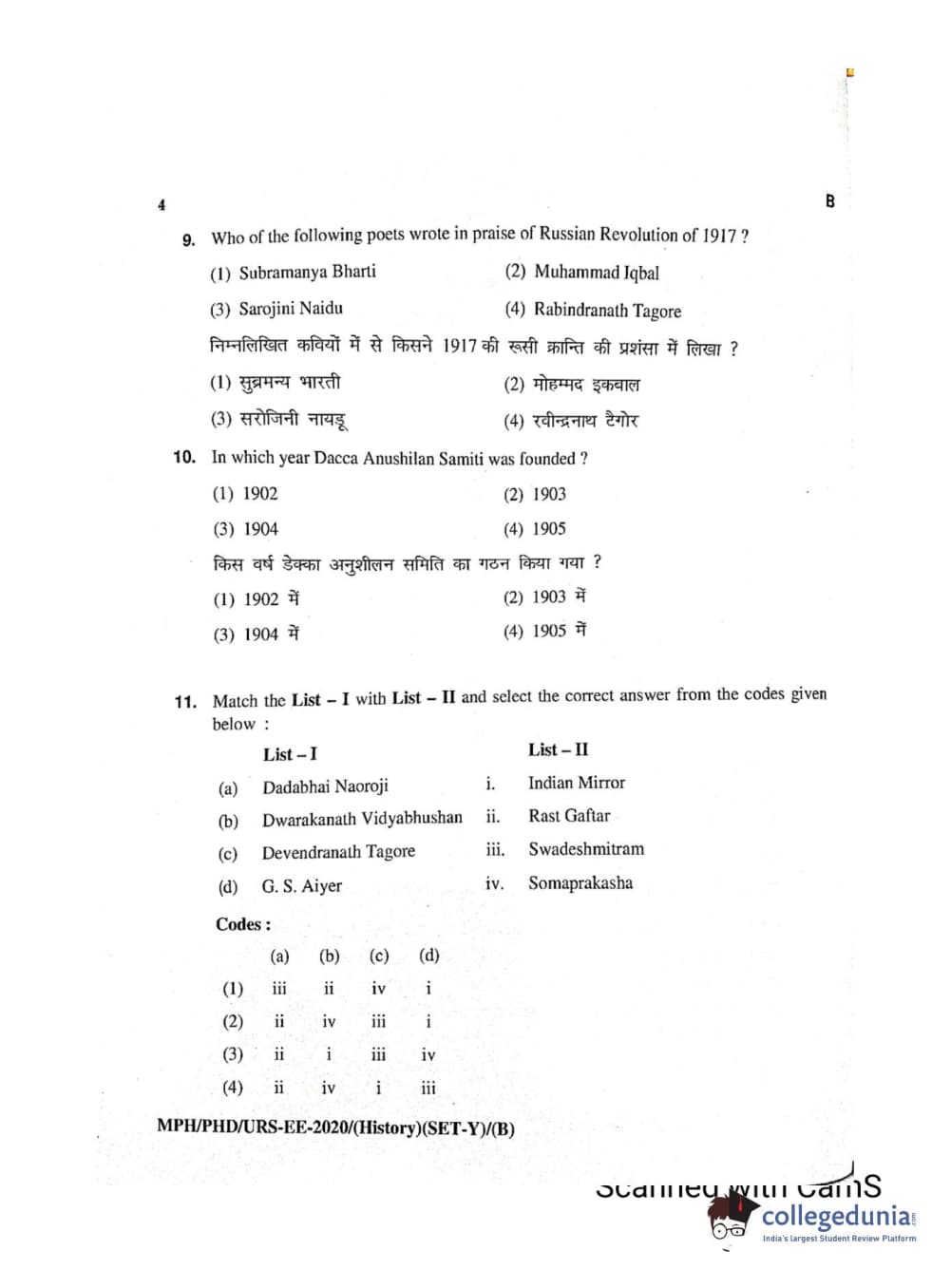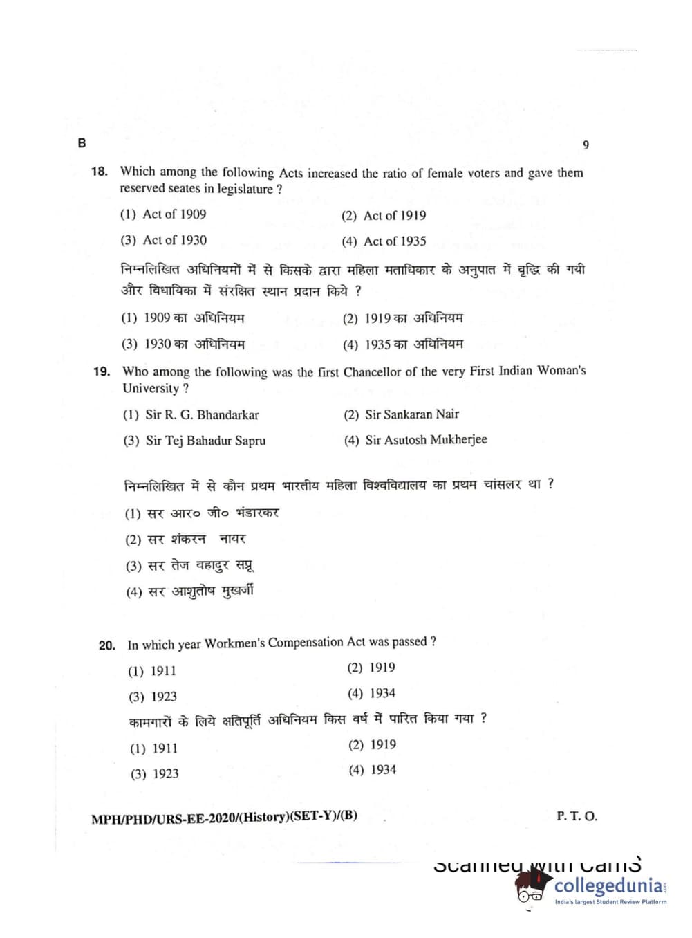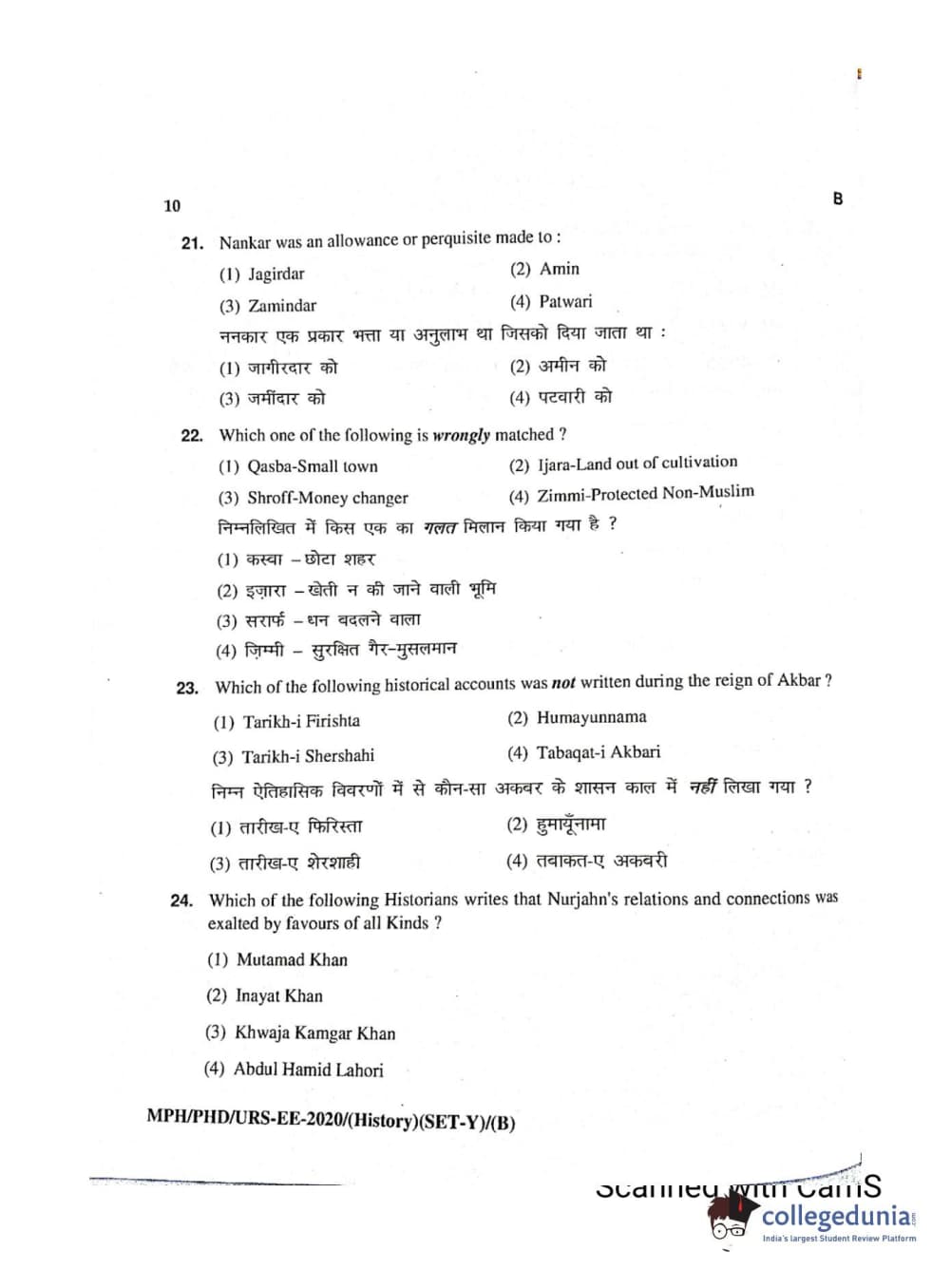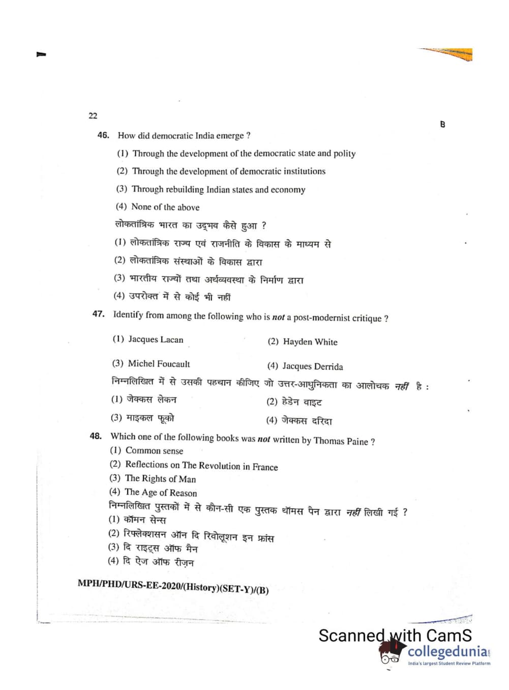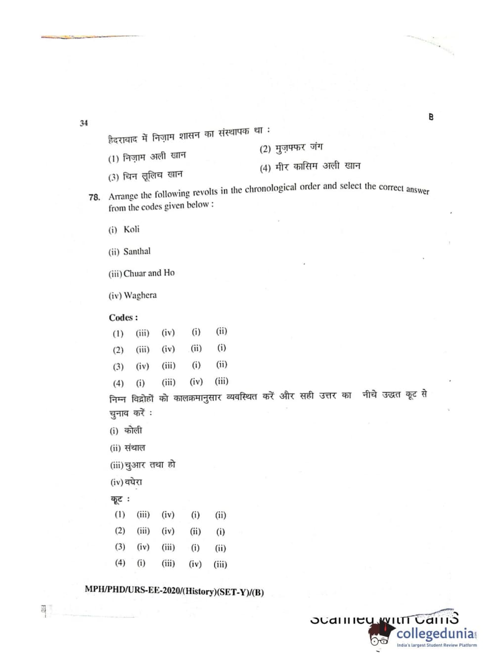 MDUCEE 2020 Ph.D./M.Phil./URS History Set B Question Paper with Answer Key PDFs