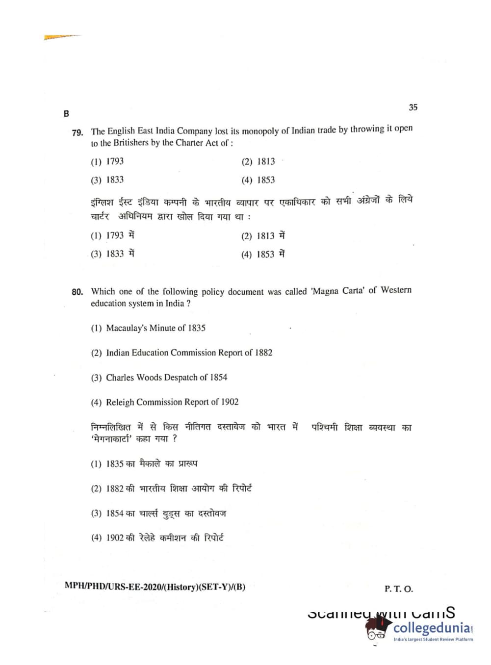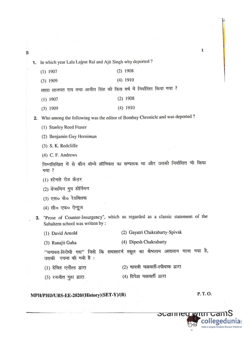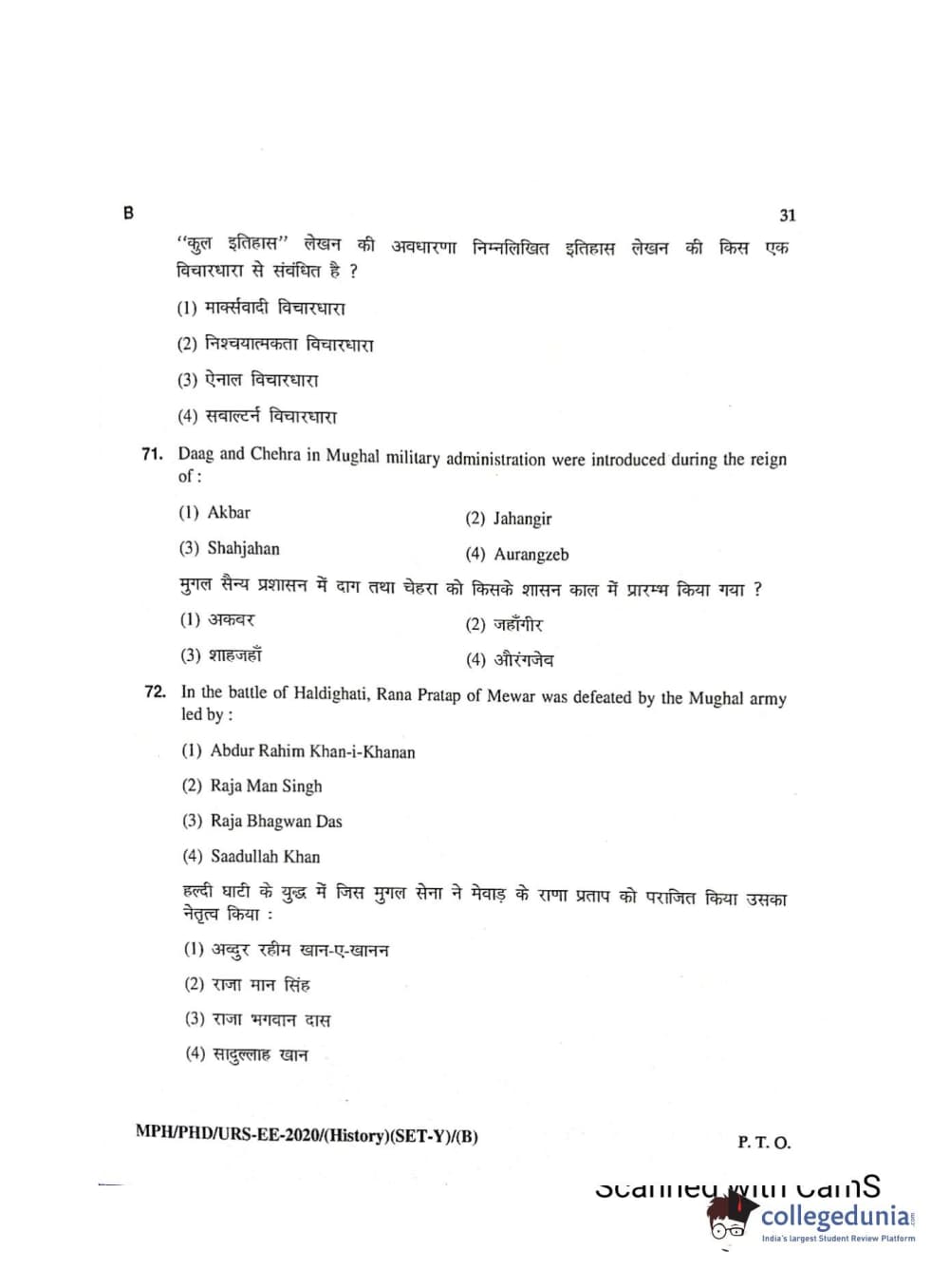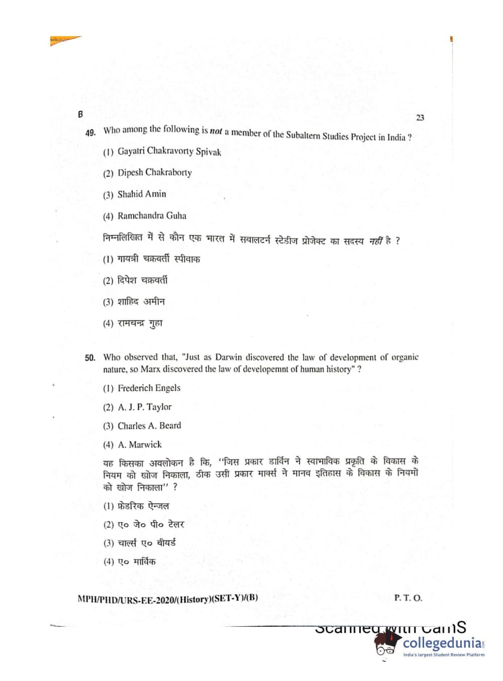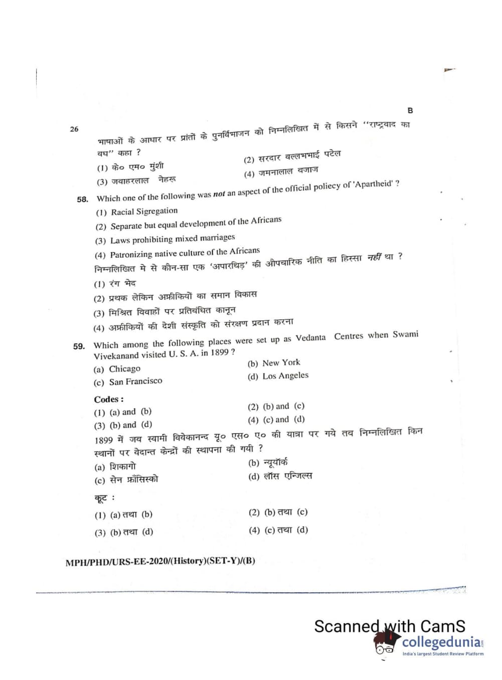 MDUCEE 2020 Ph.D./M.Phil./URS History Set B Question Paper with Answer Key PDFs