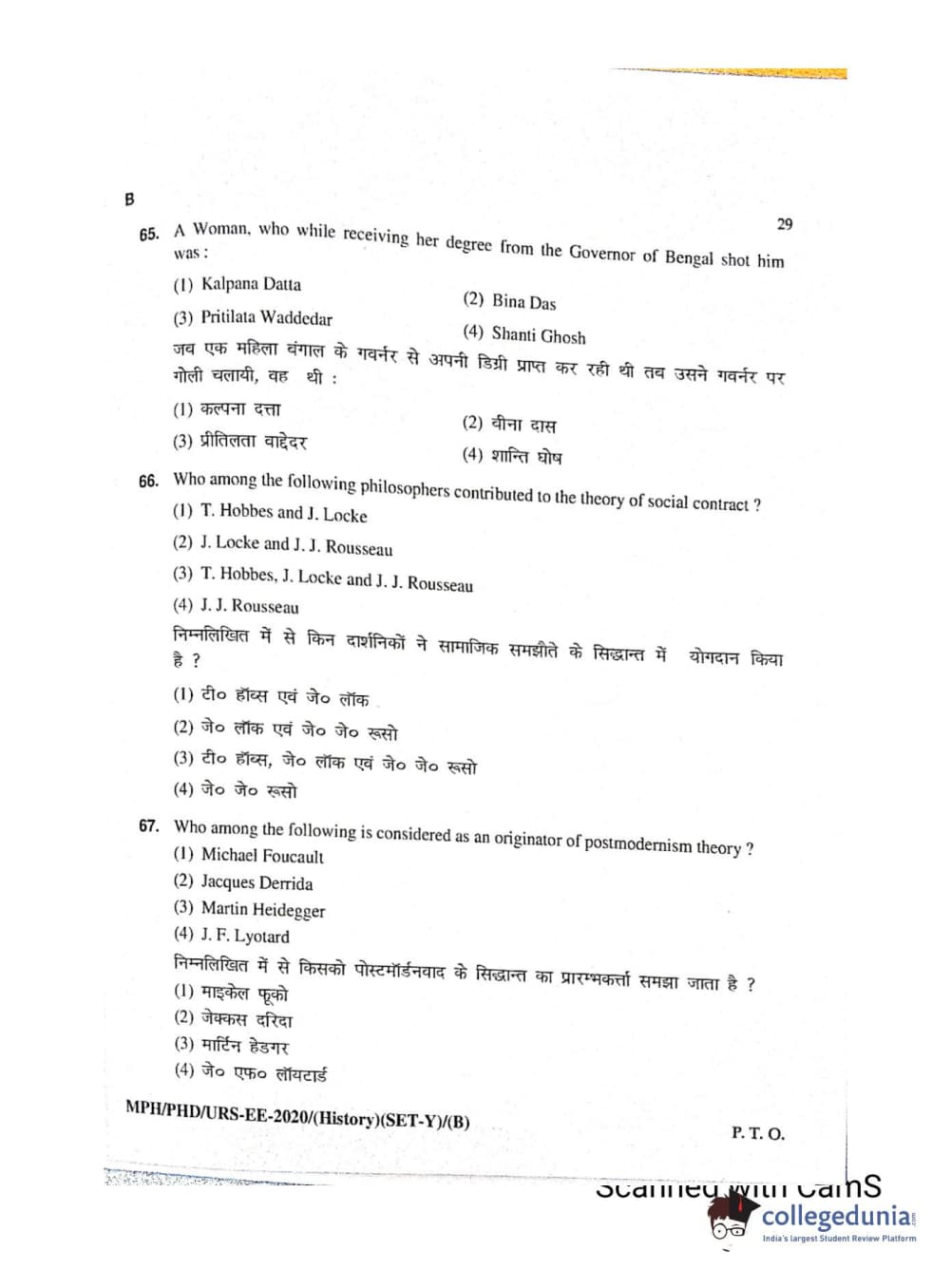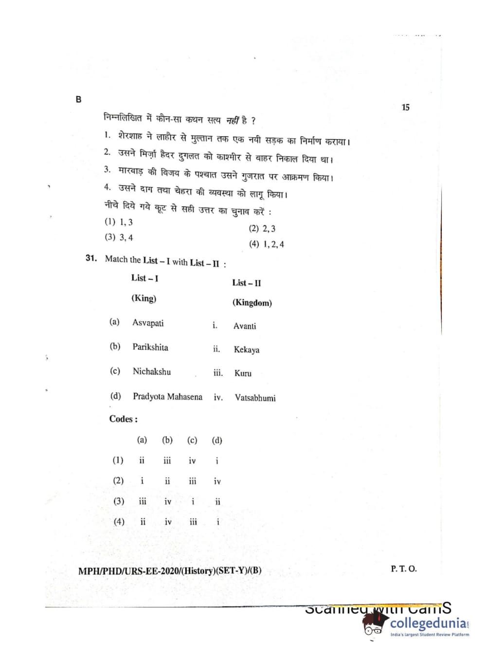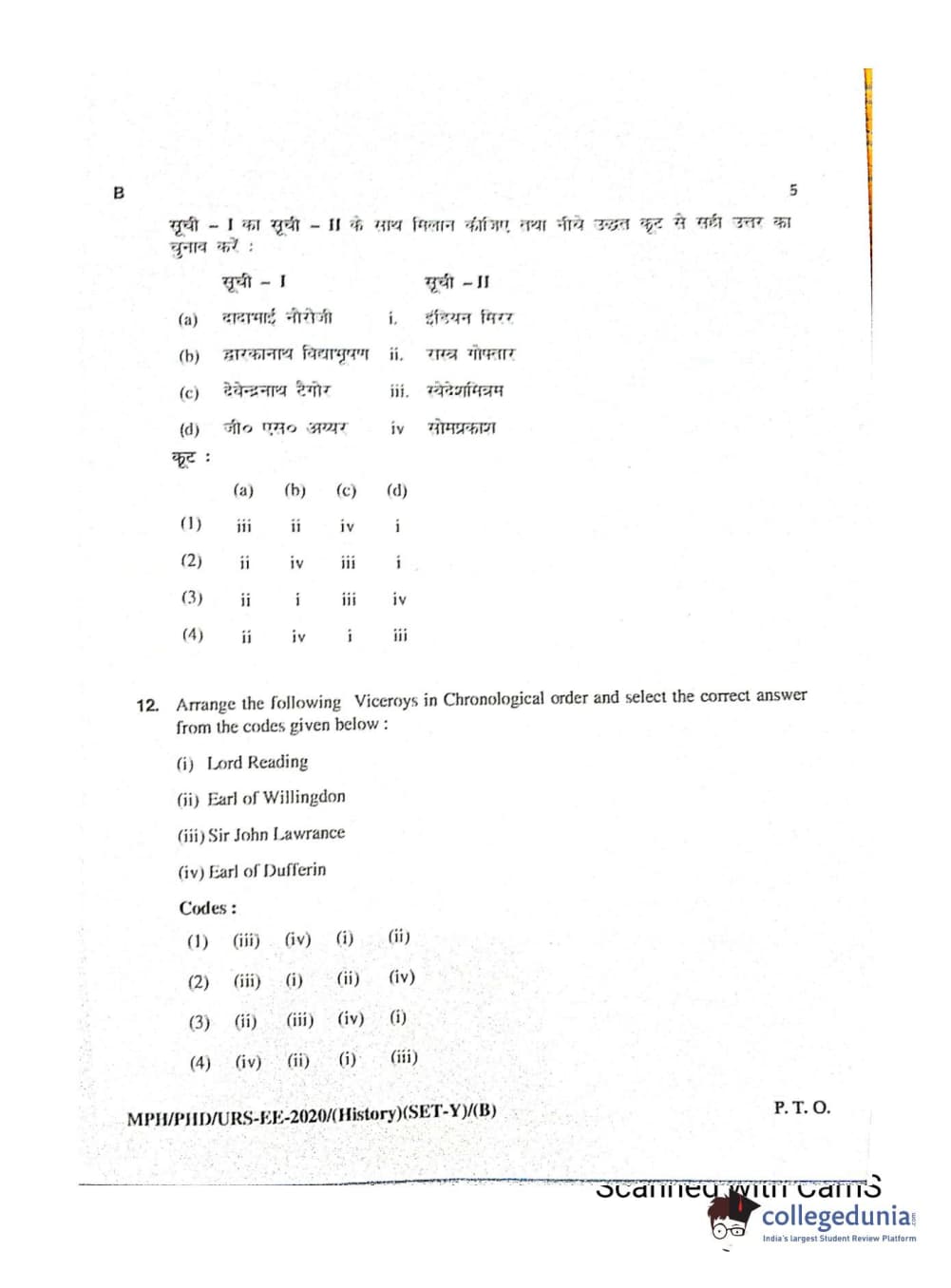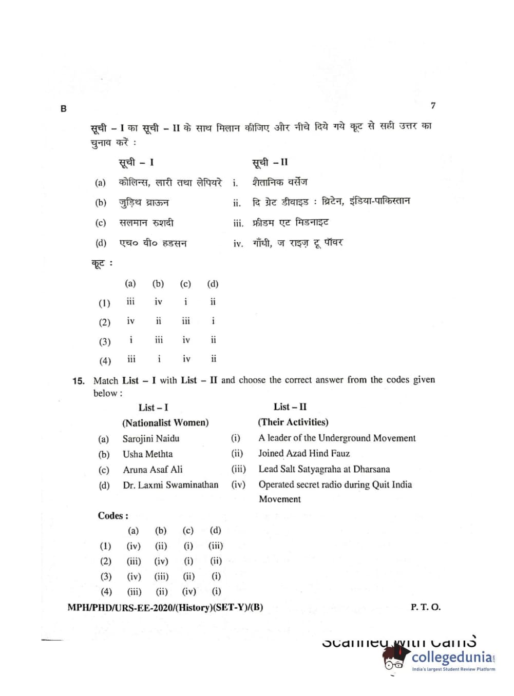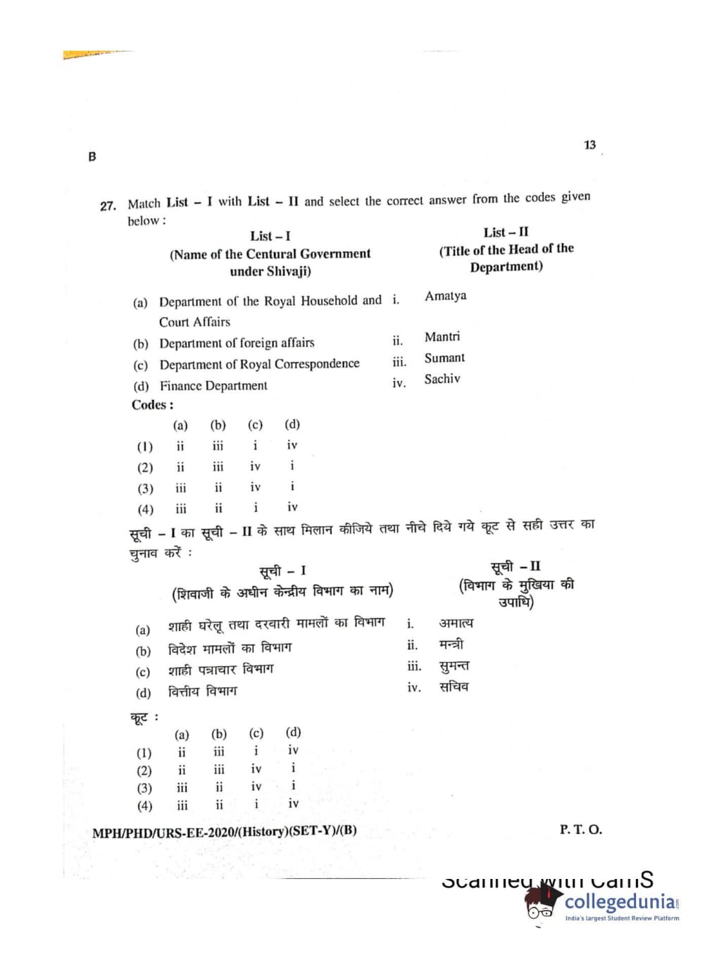 MDUCEE 2020 Ph.D./M.Phil./URS History Set B Question Paper with Answer Key PDFs
