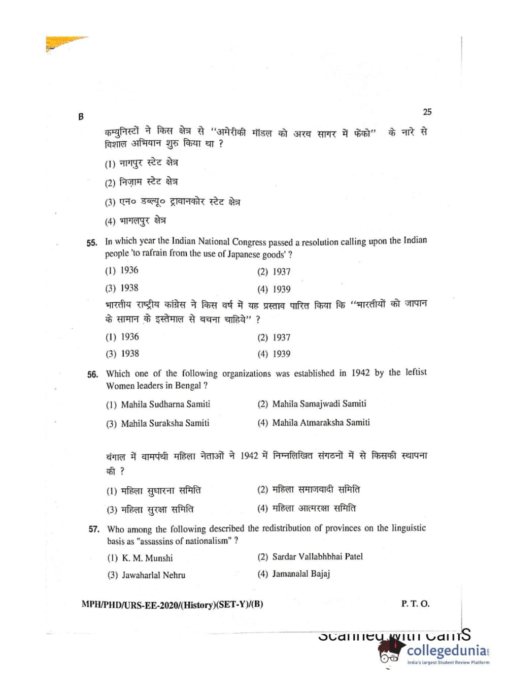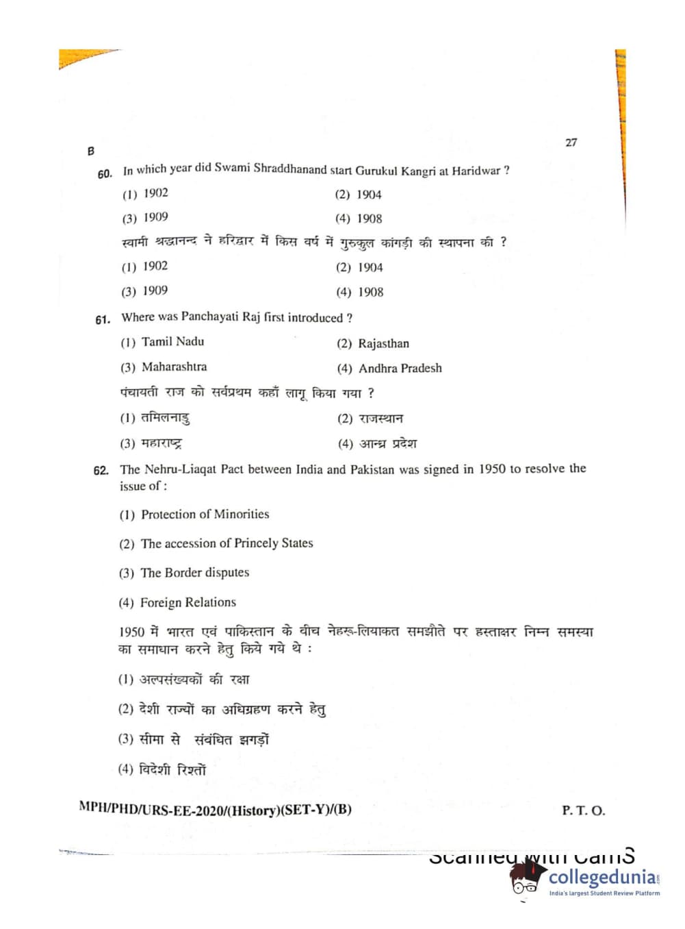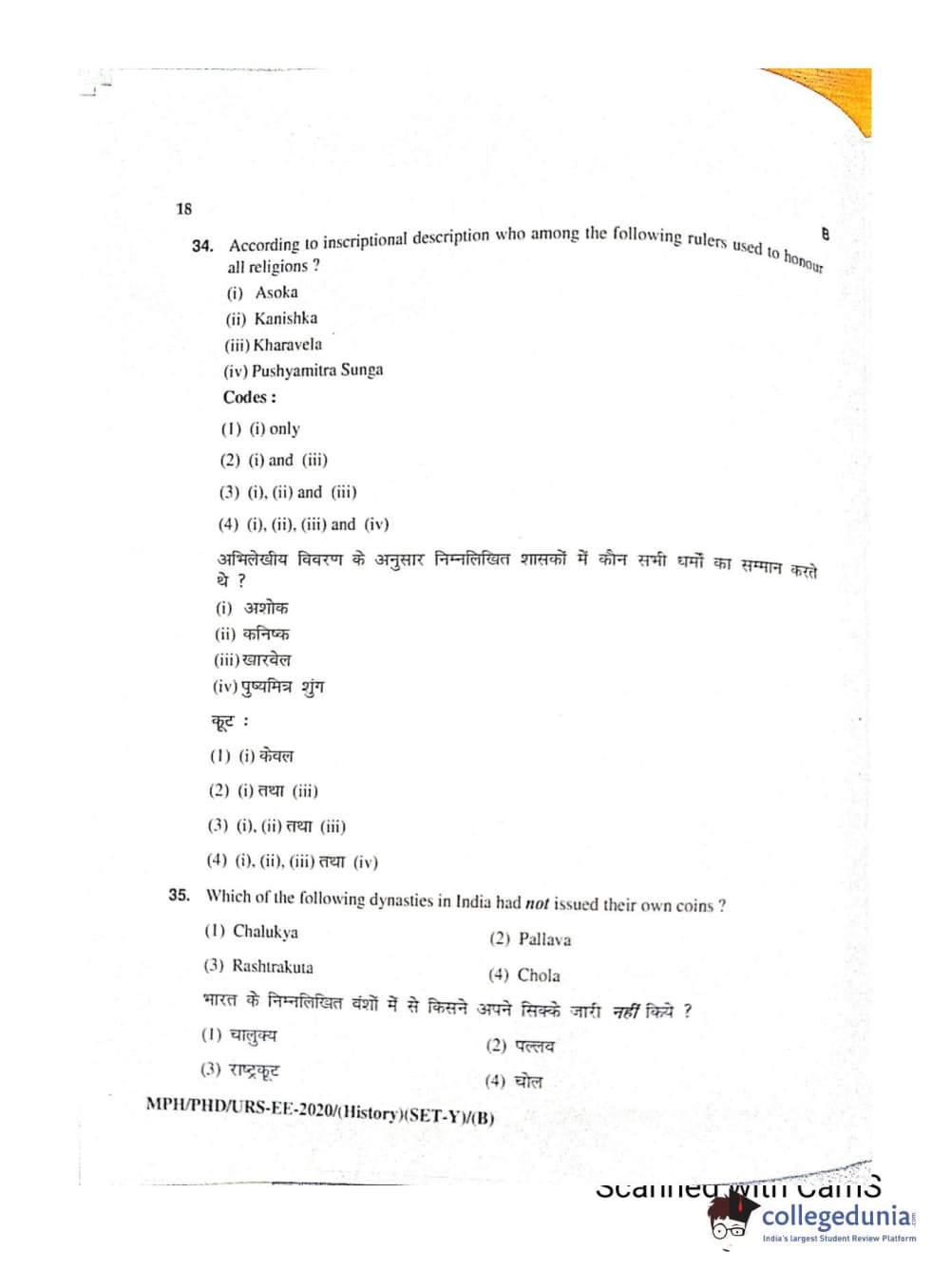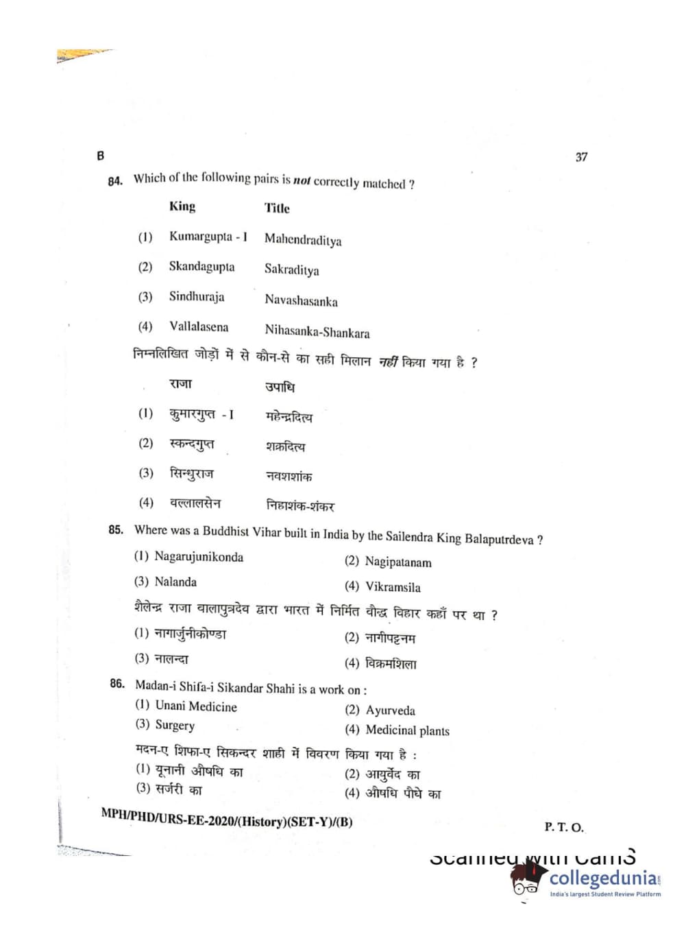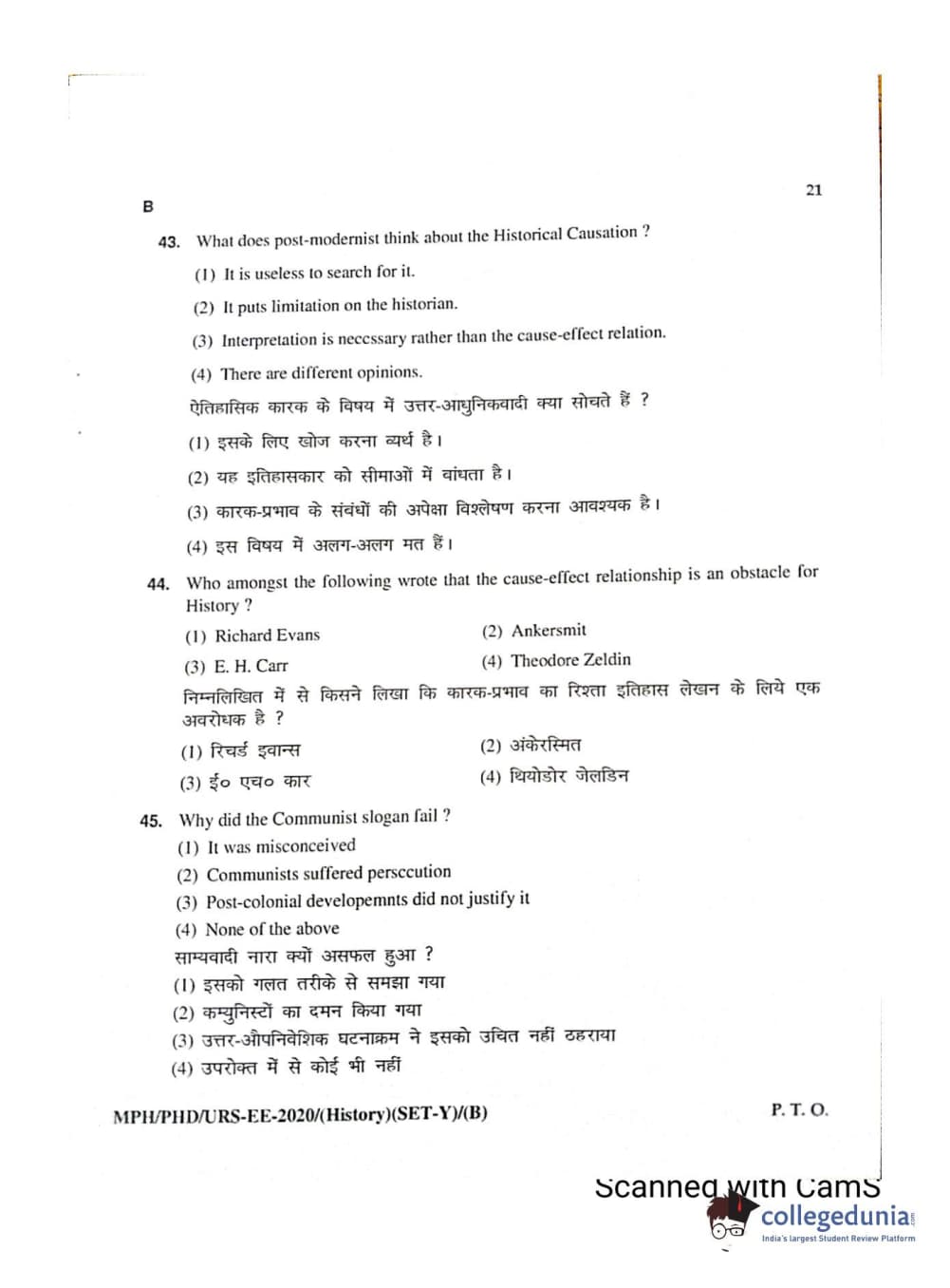 MDUCEE 2020 Ph.D./M.Phil./URS History Set B Question Paper with Answer Key PDFs