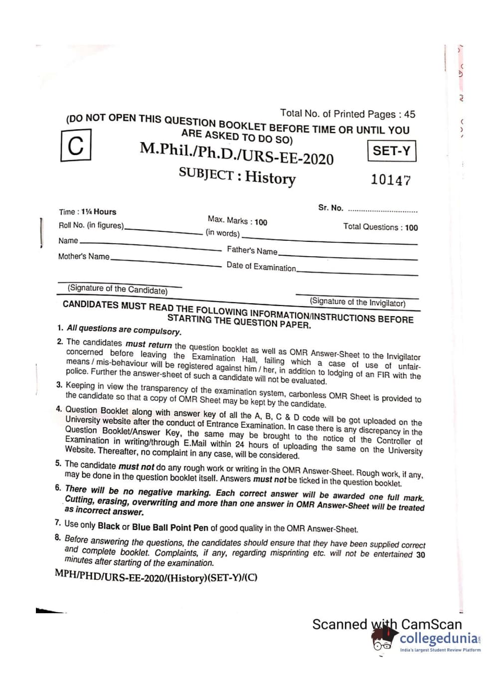 | MDUCEE 2020 Ph.D./M.Phil./URS History Set C Question Paper PDF | MDUCEE 2020 Ph.D./M.Phil./URS History Set C Answer Key PDF |