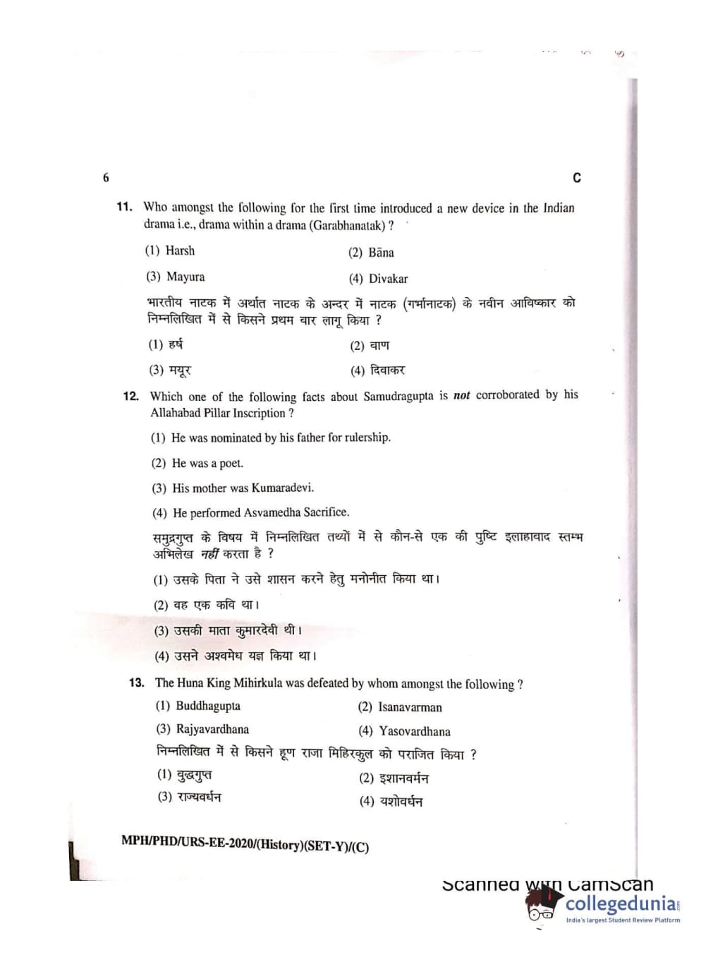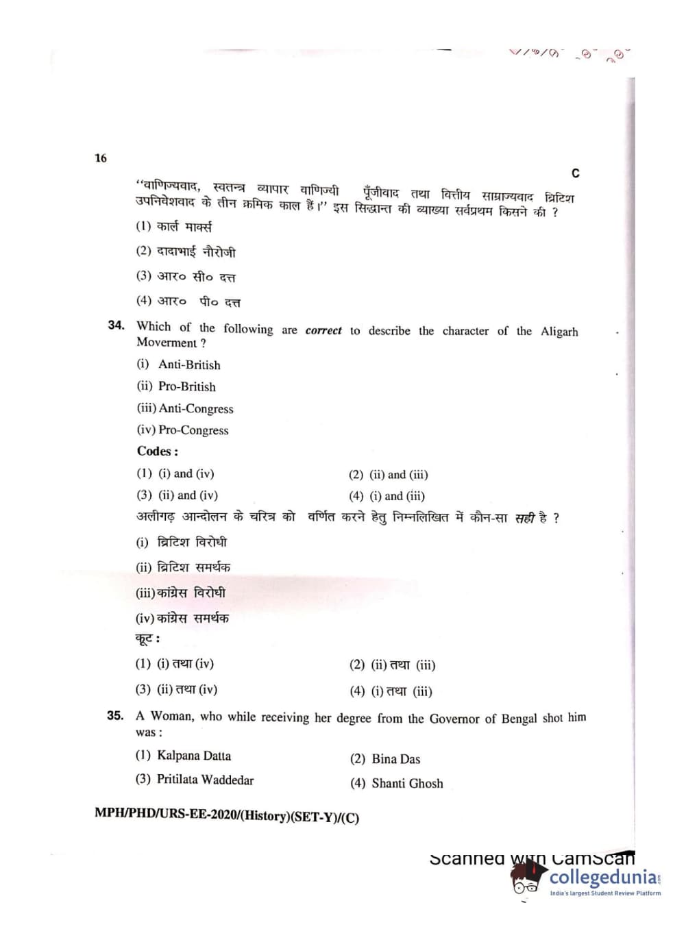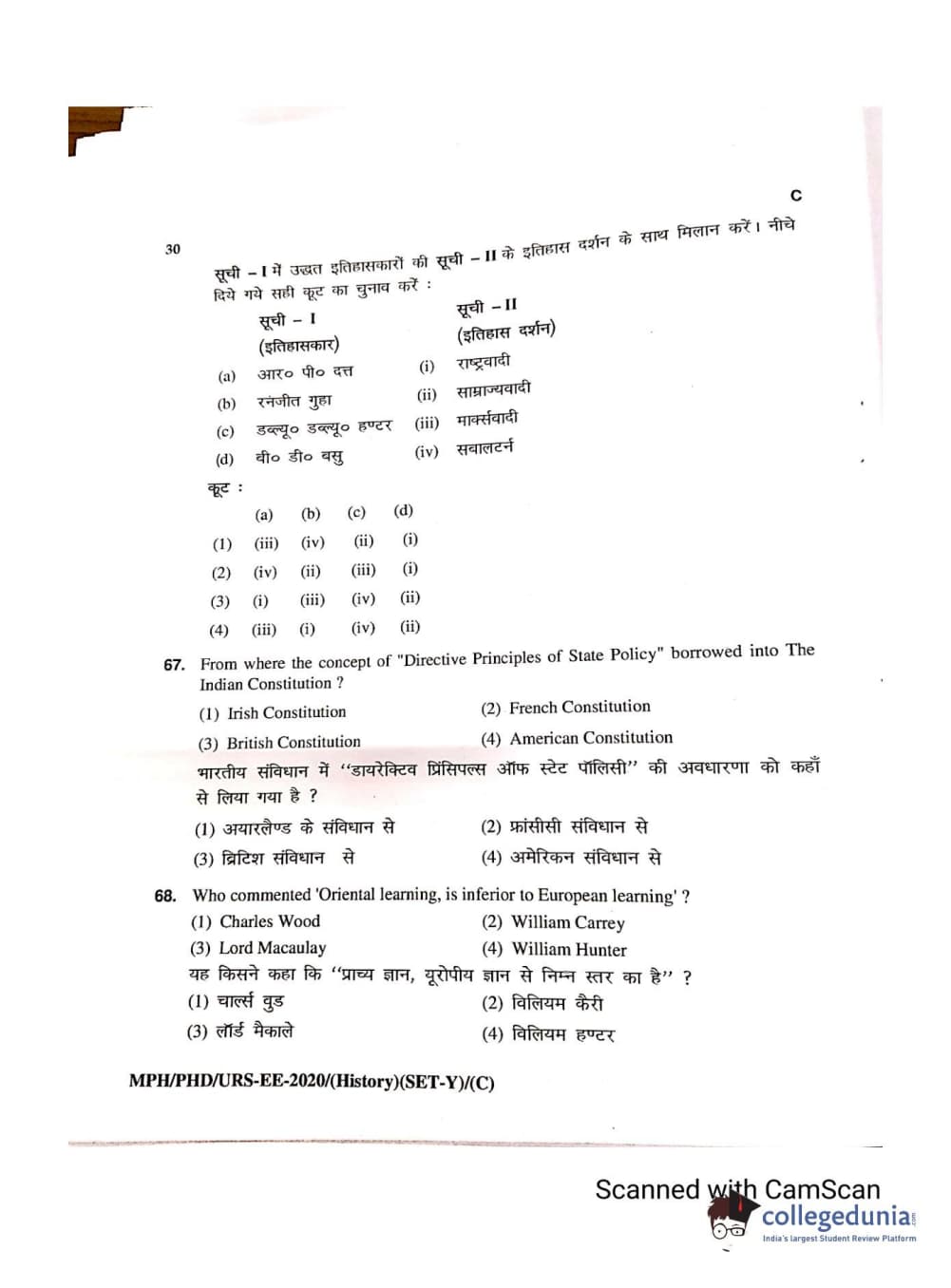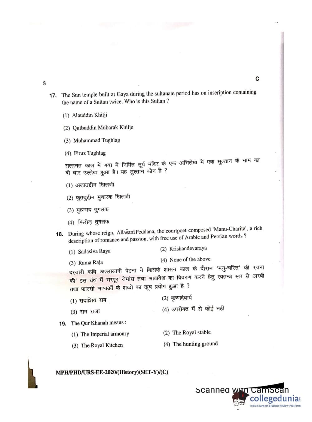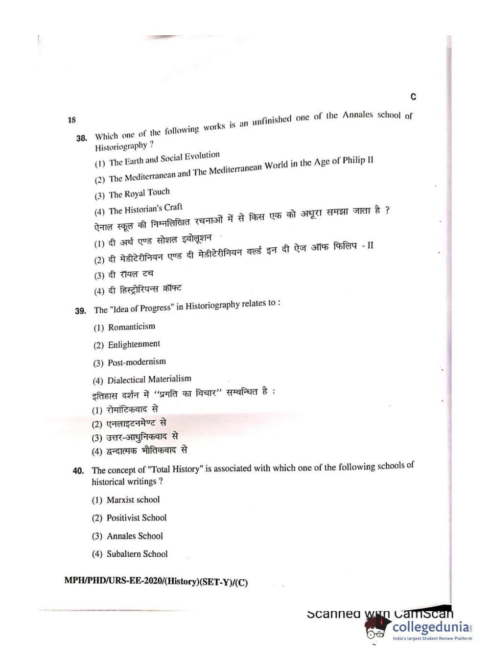 MDUCEE 2020 Ph.D./M.Phil./URS History Set C Question Paper with Answer Key PDFs
