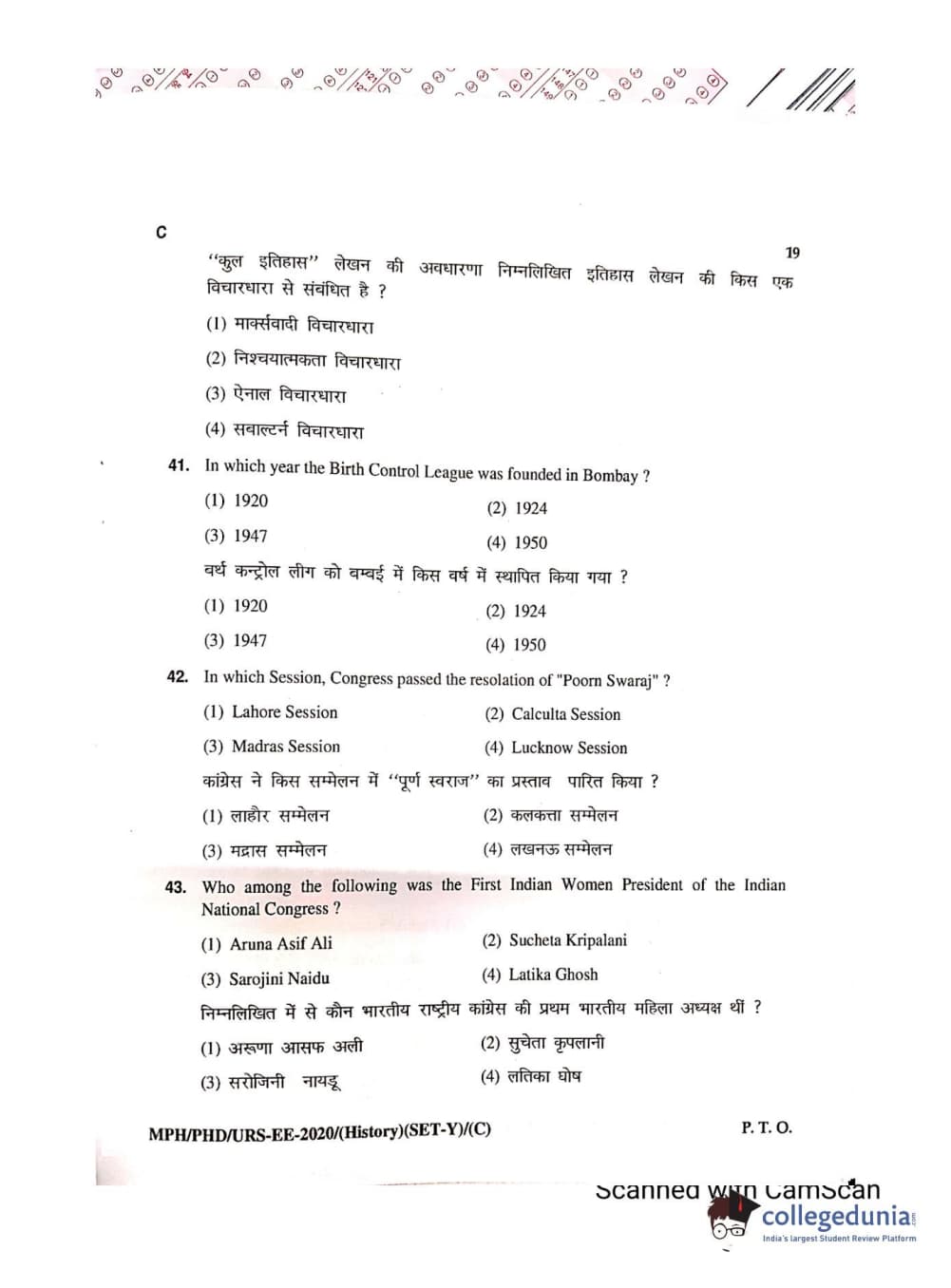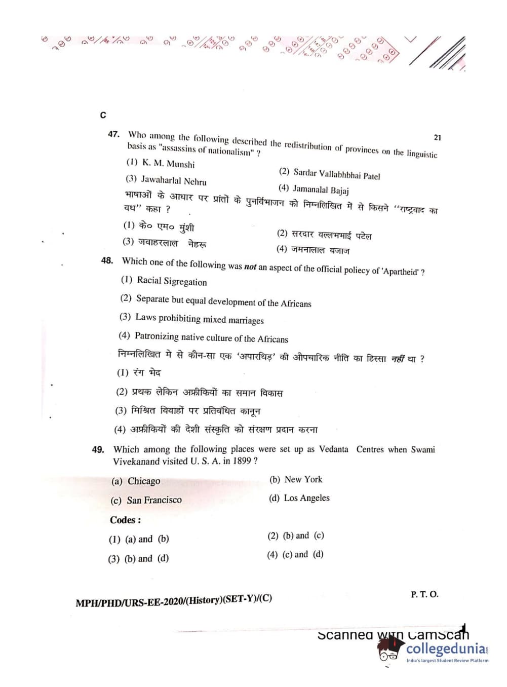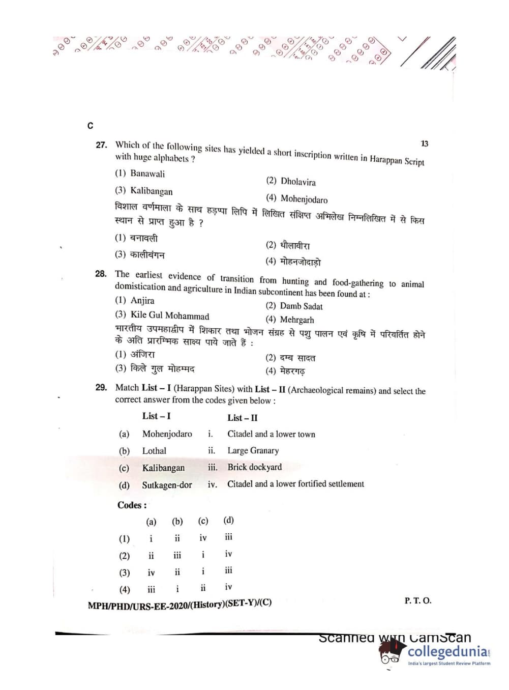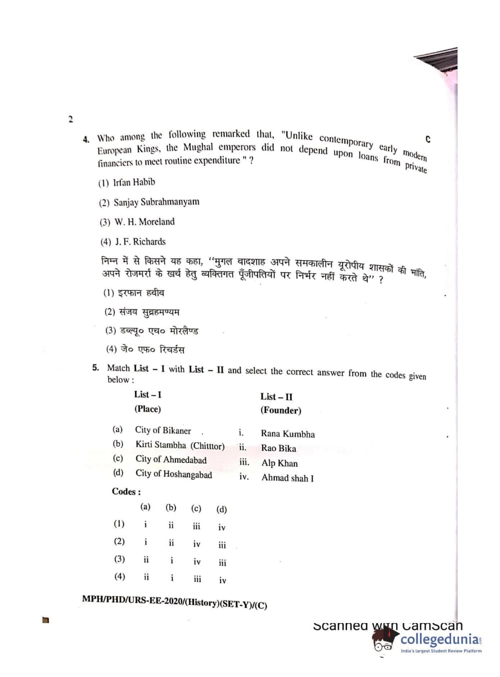 MDUCEE 2020 Ph.D./M.Phil./URS History Set C Question Paper with Answer Key PDFs