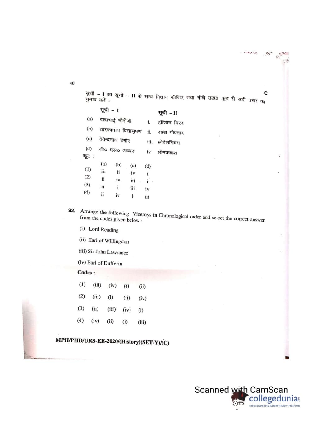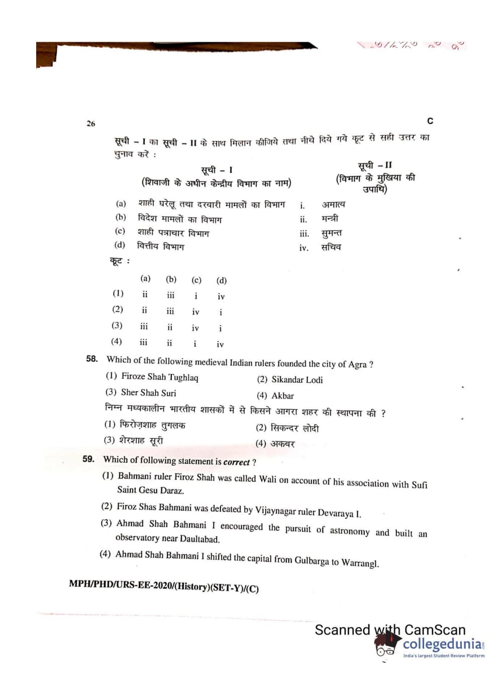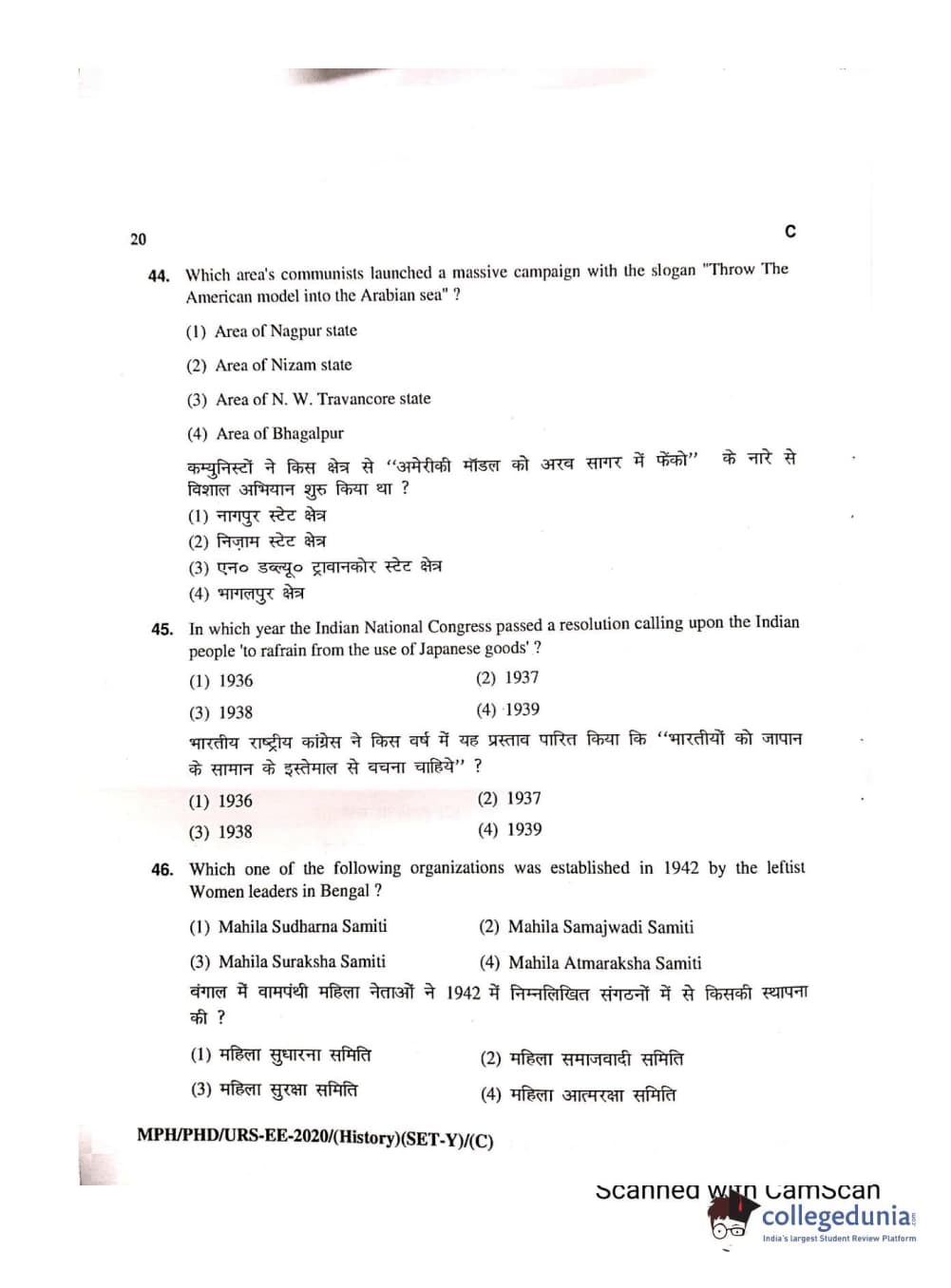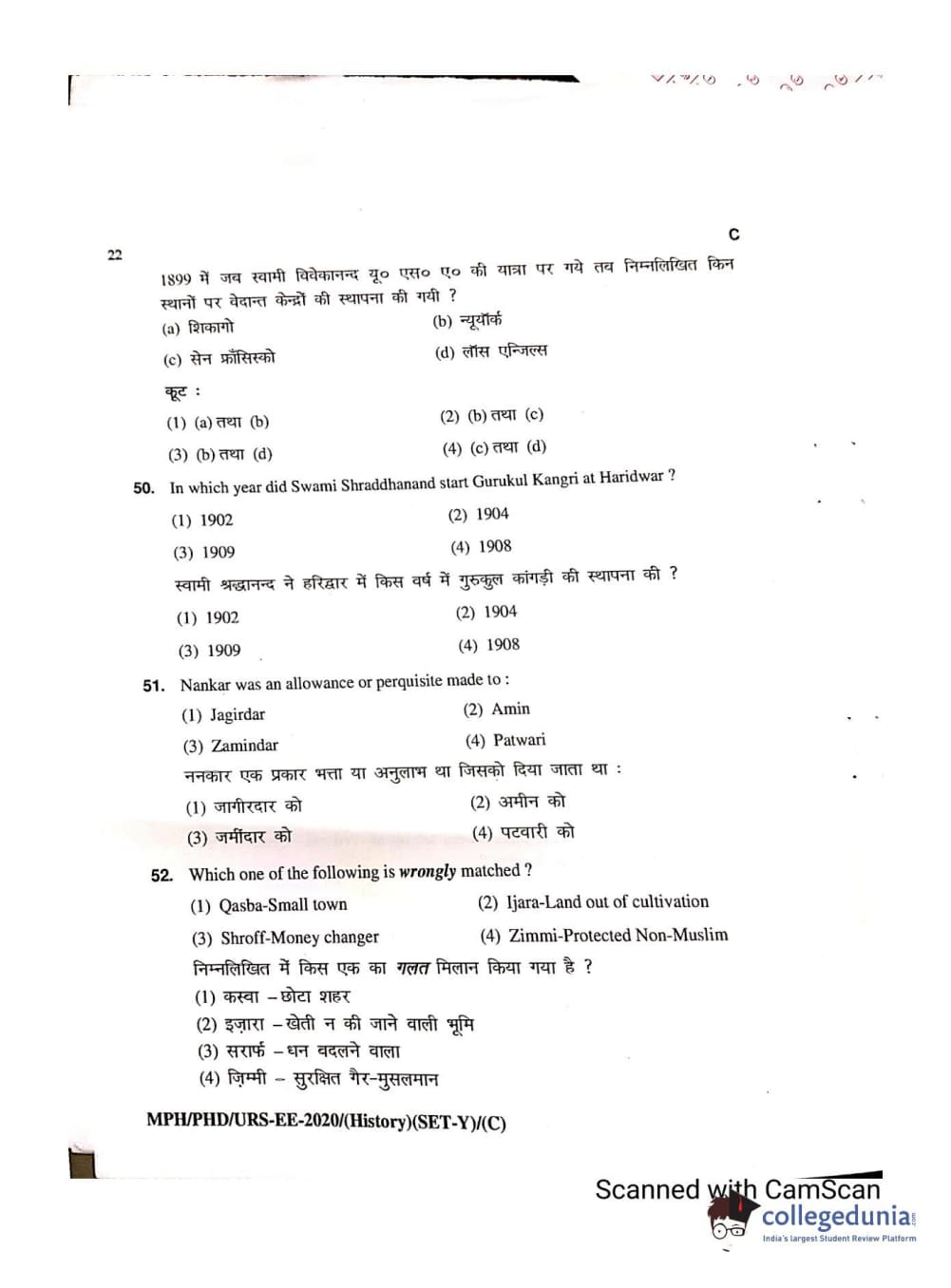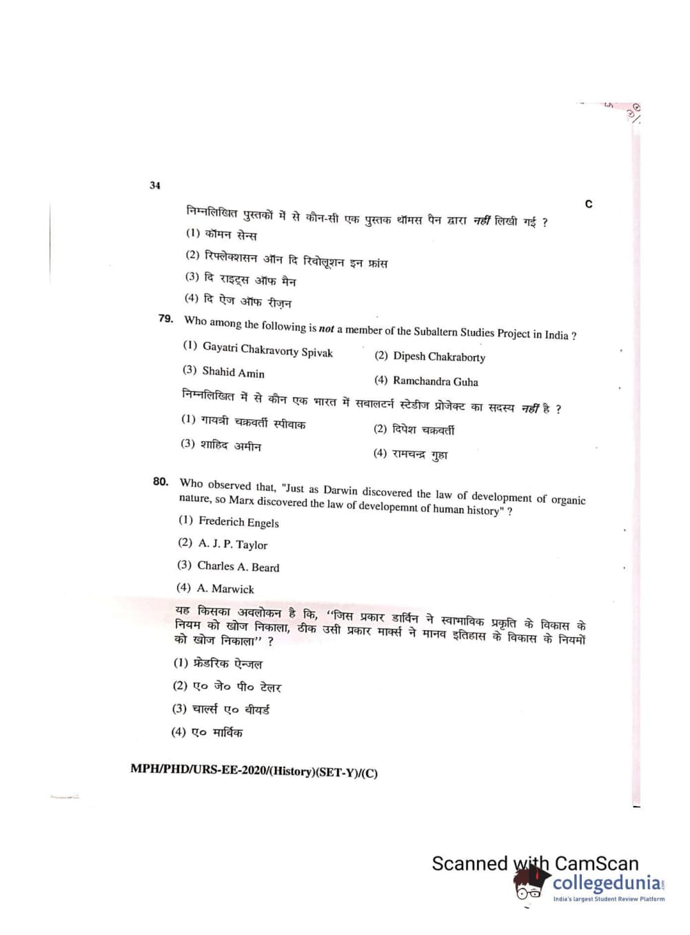MDUCEE 2020 Ph.D./M.Phil./URS History Set C Question Paper with Answer Key PDFs