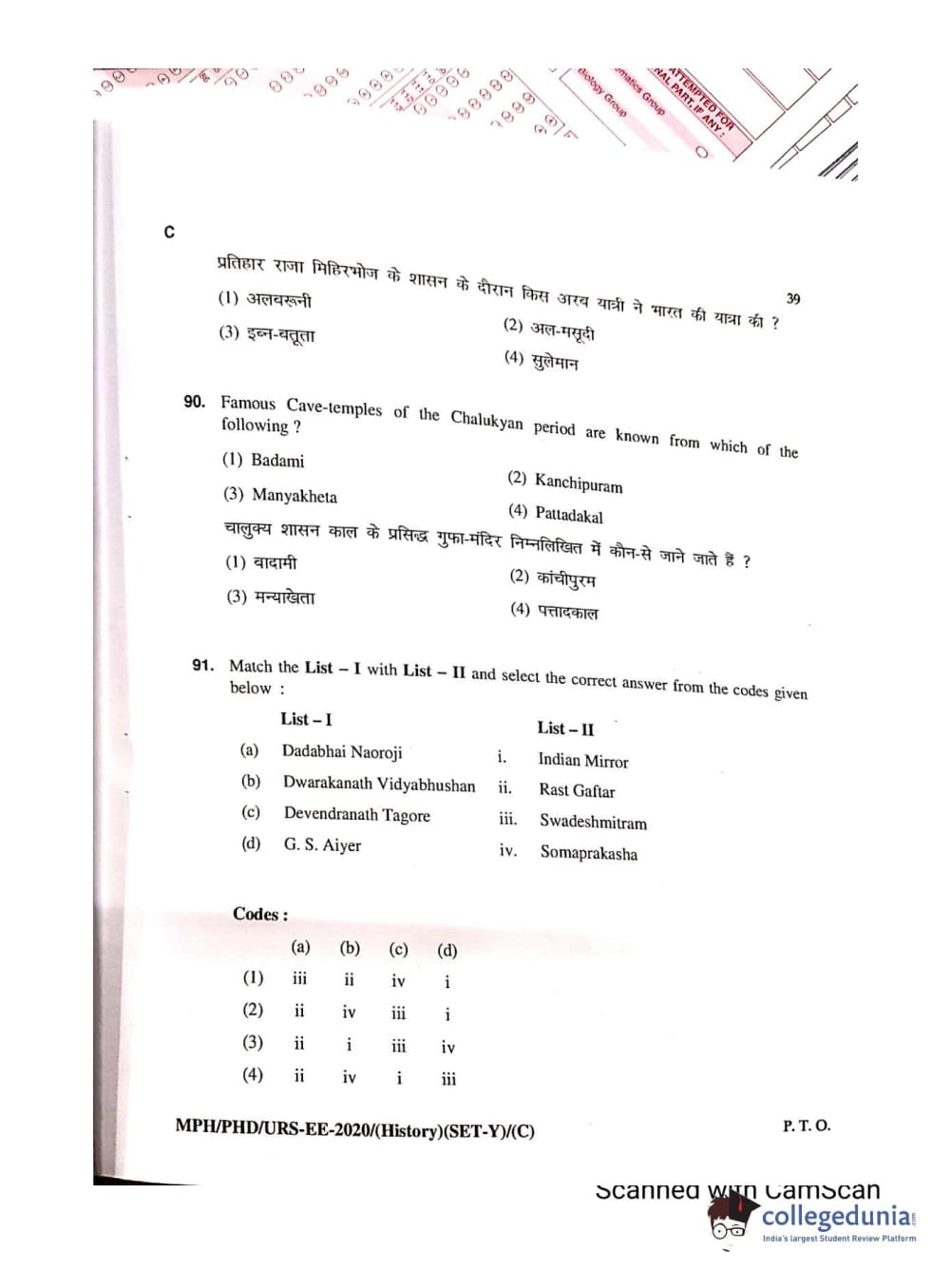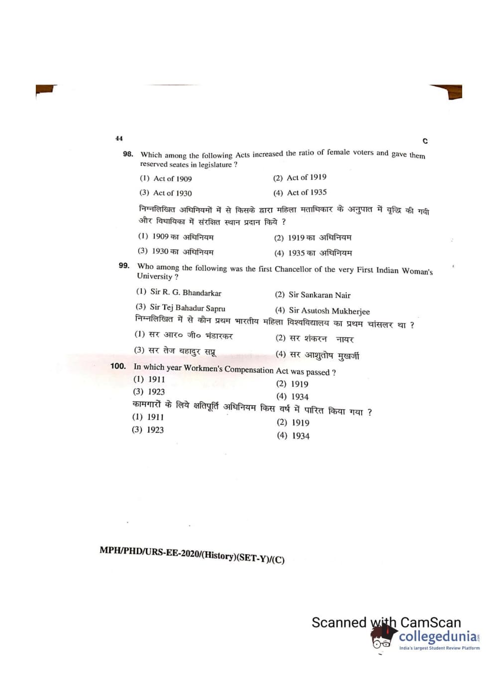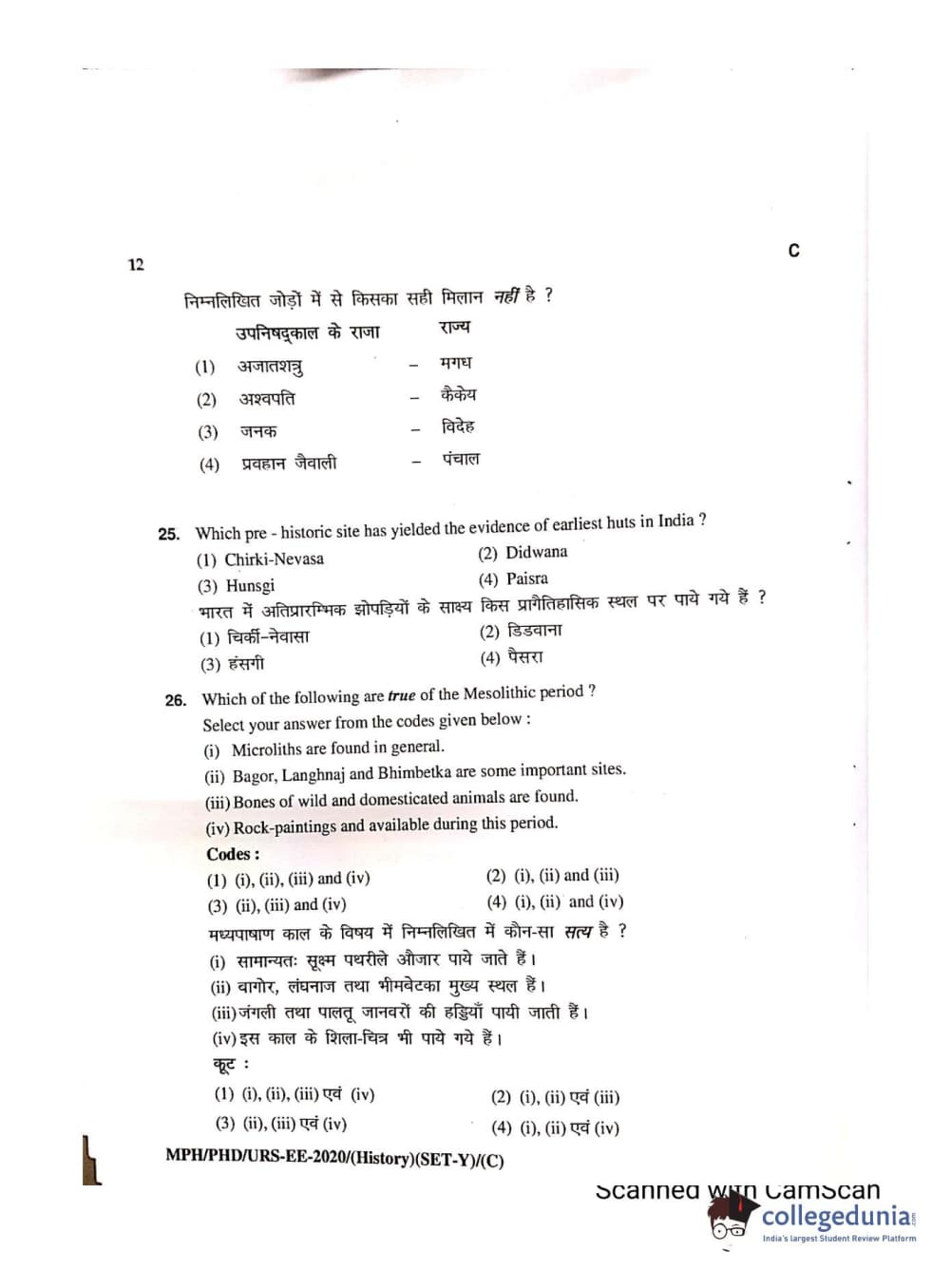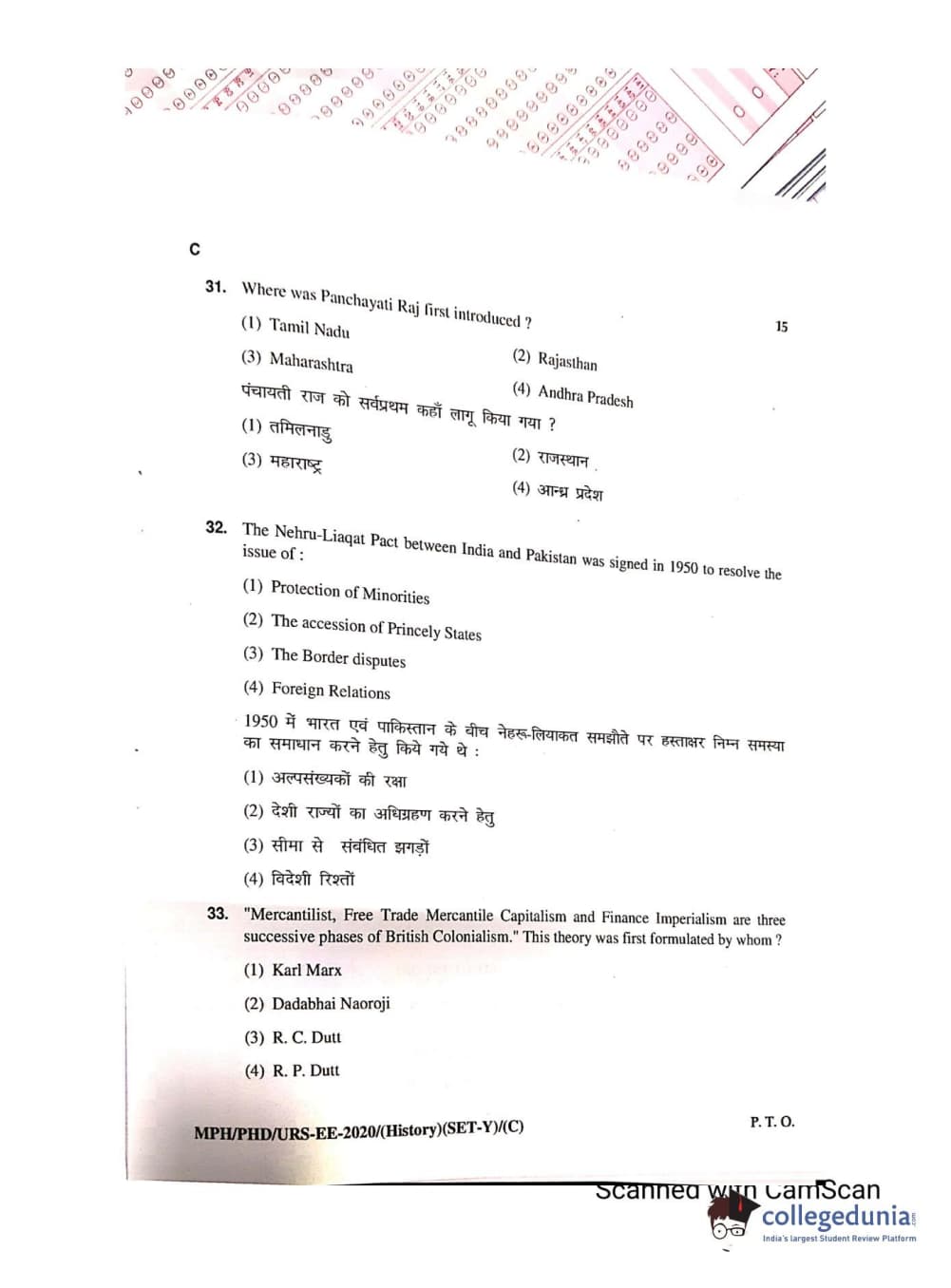 MDUCEE 2020 Ph.D./M.Phil./URS History Set C Question Paper with Answer Key PDFs