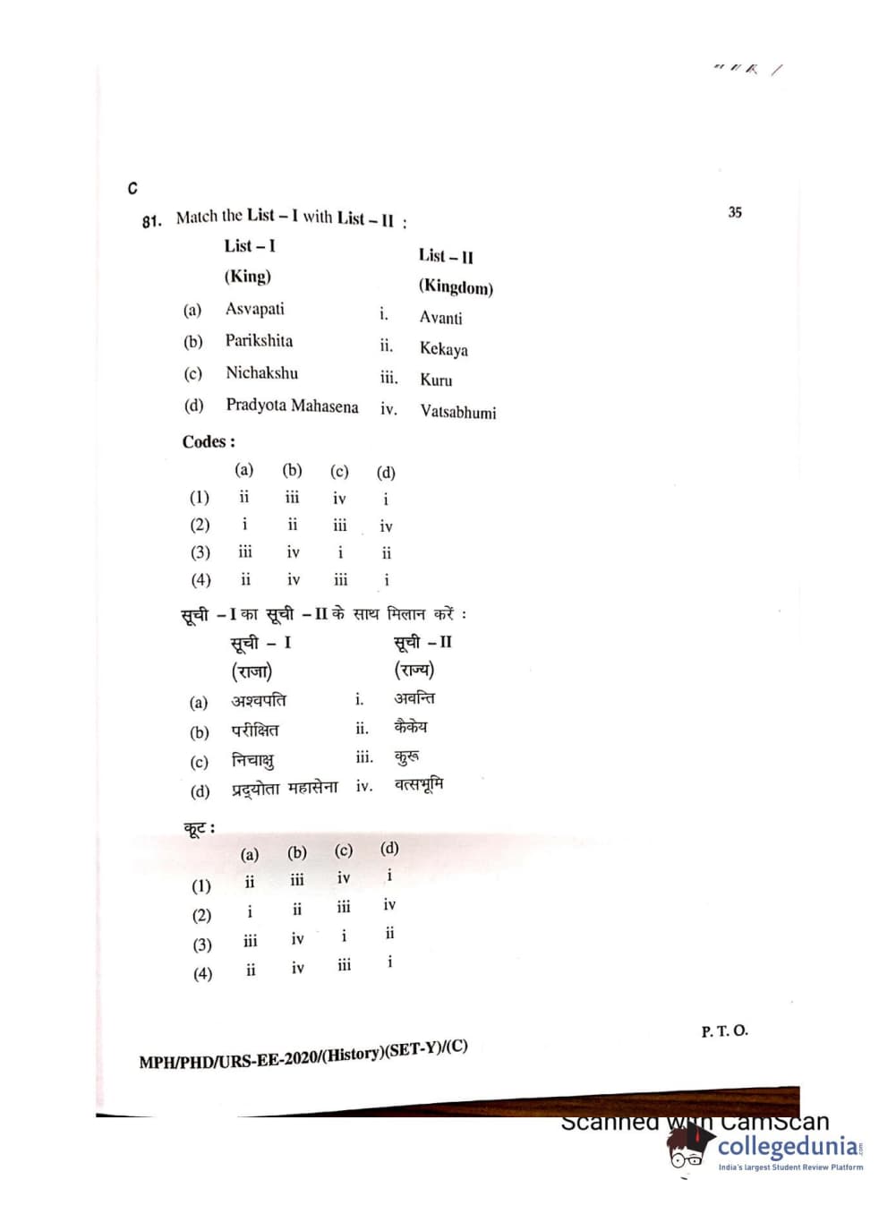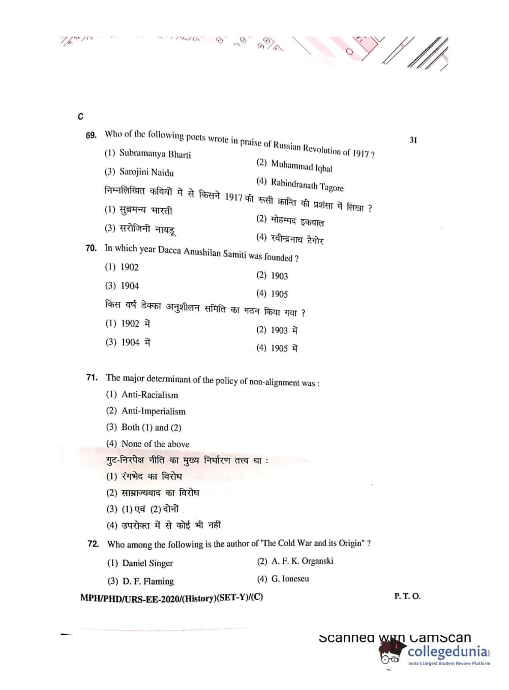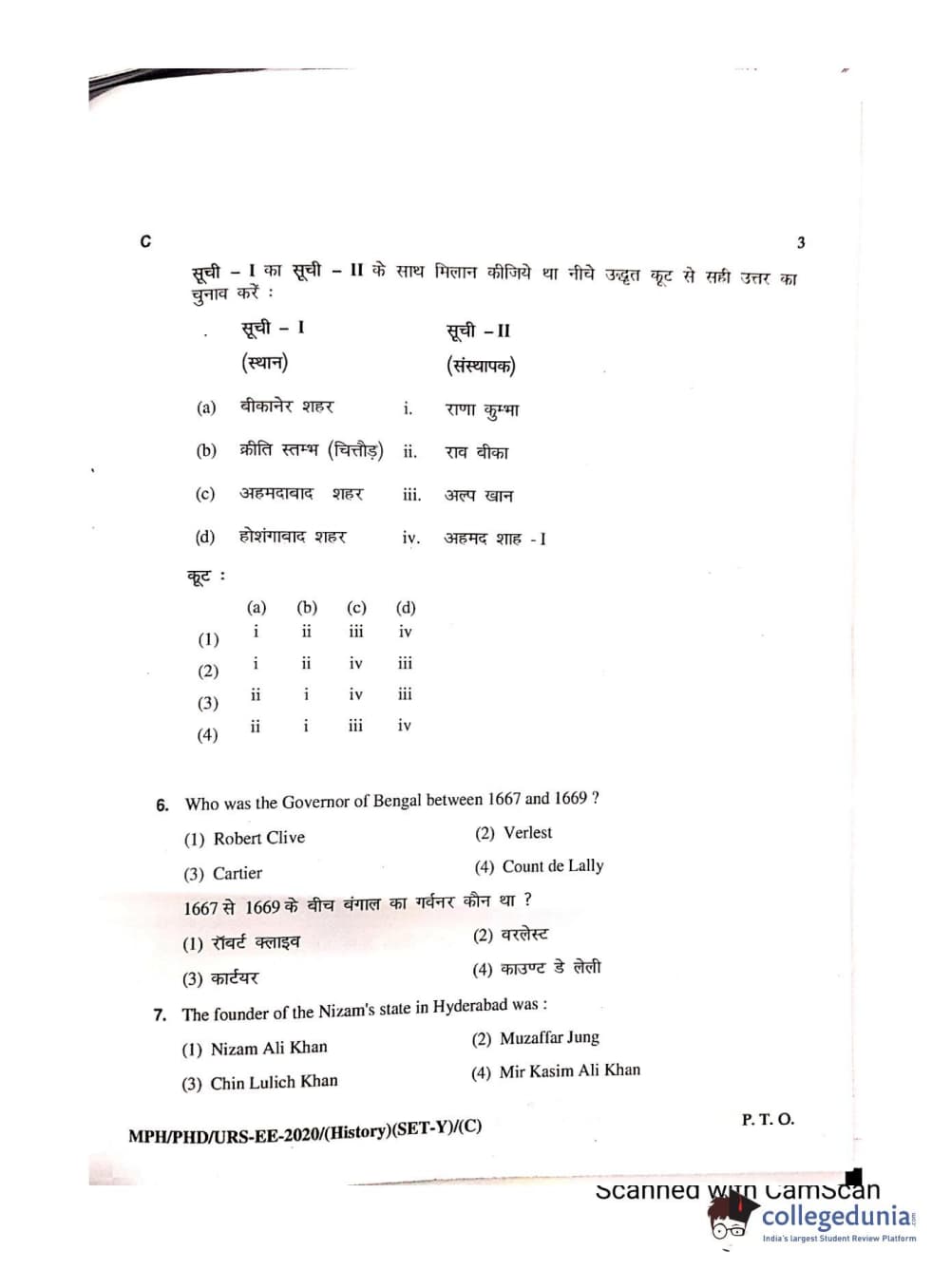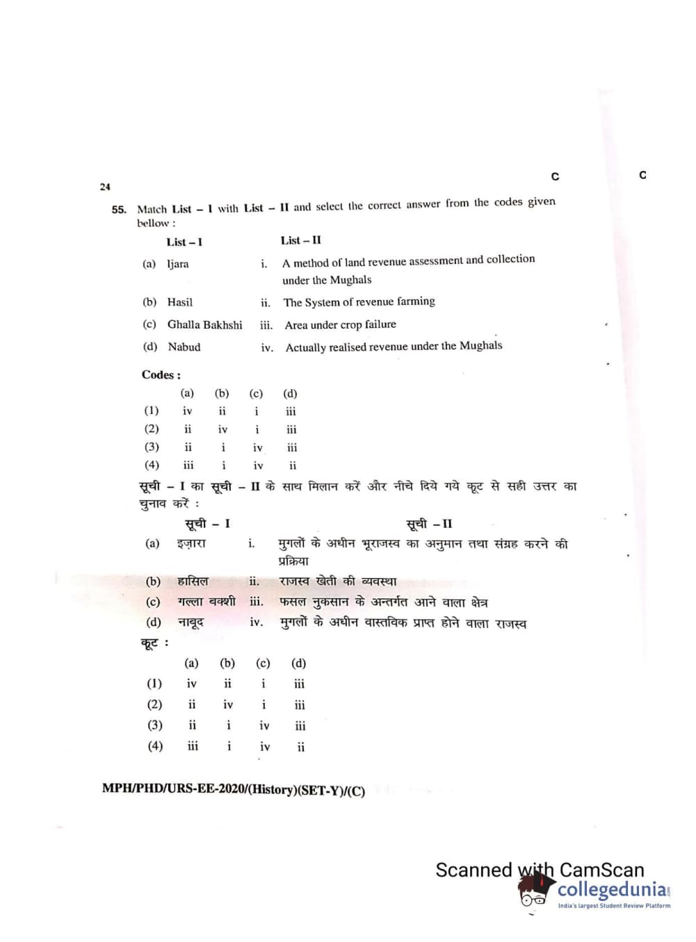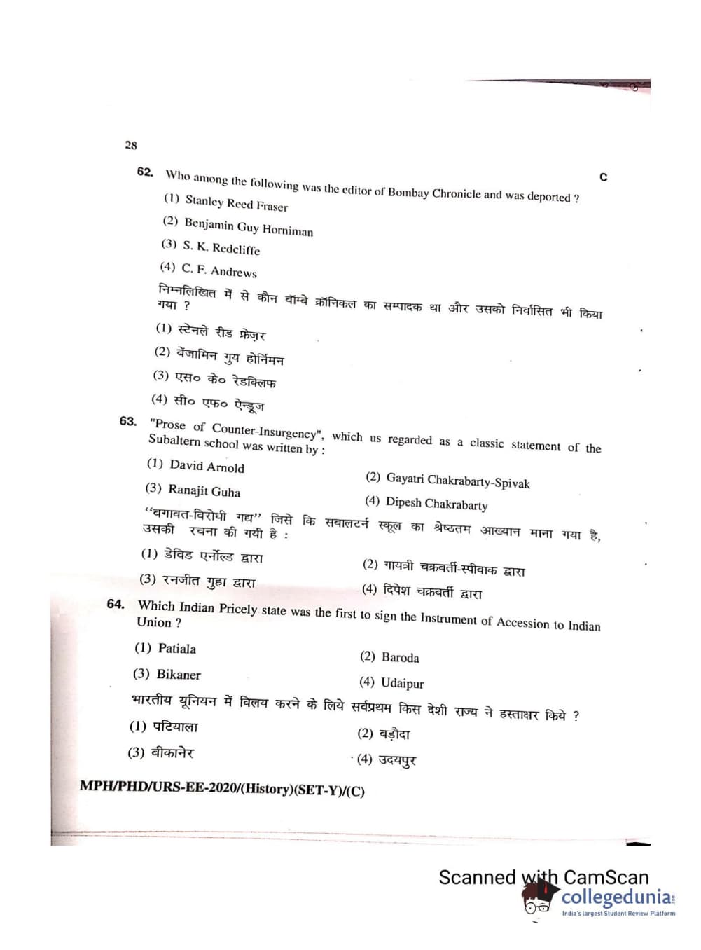 MDUCEE 2020 Ph.D./M.Phil./URS History Set C Question Paper with Answer Key PDFs