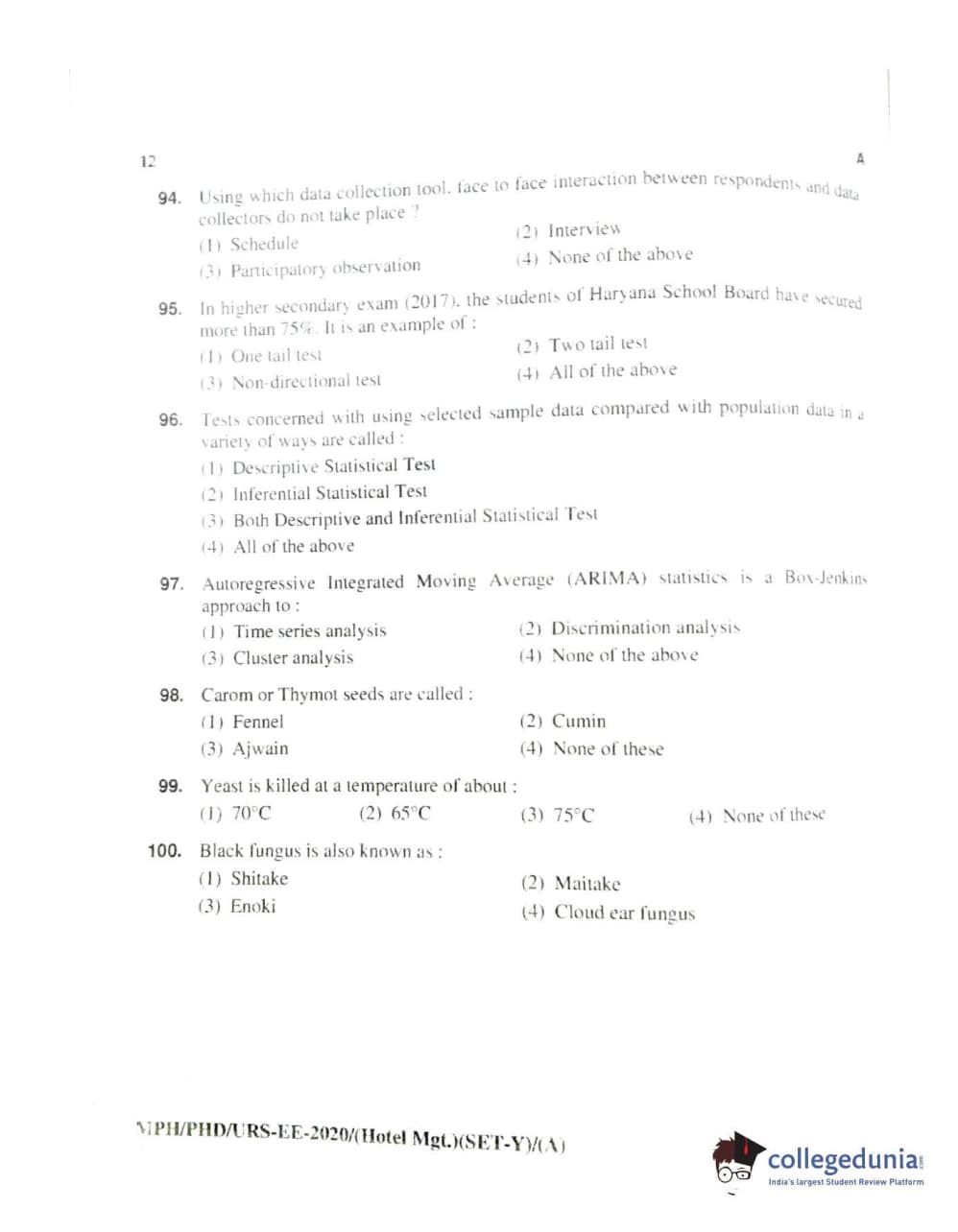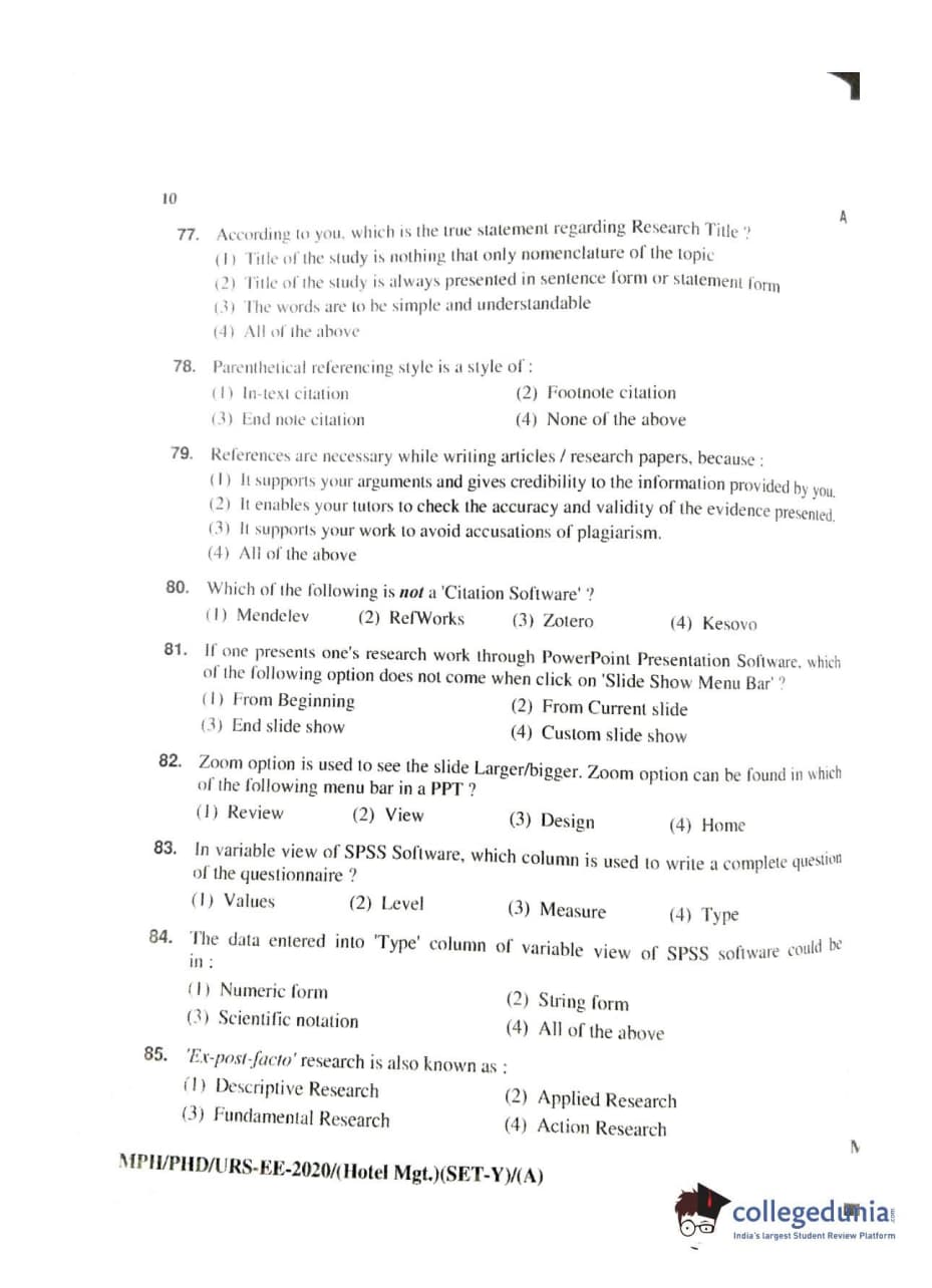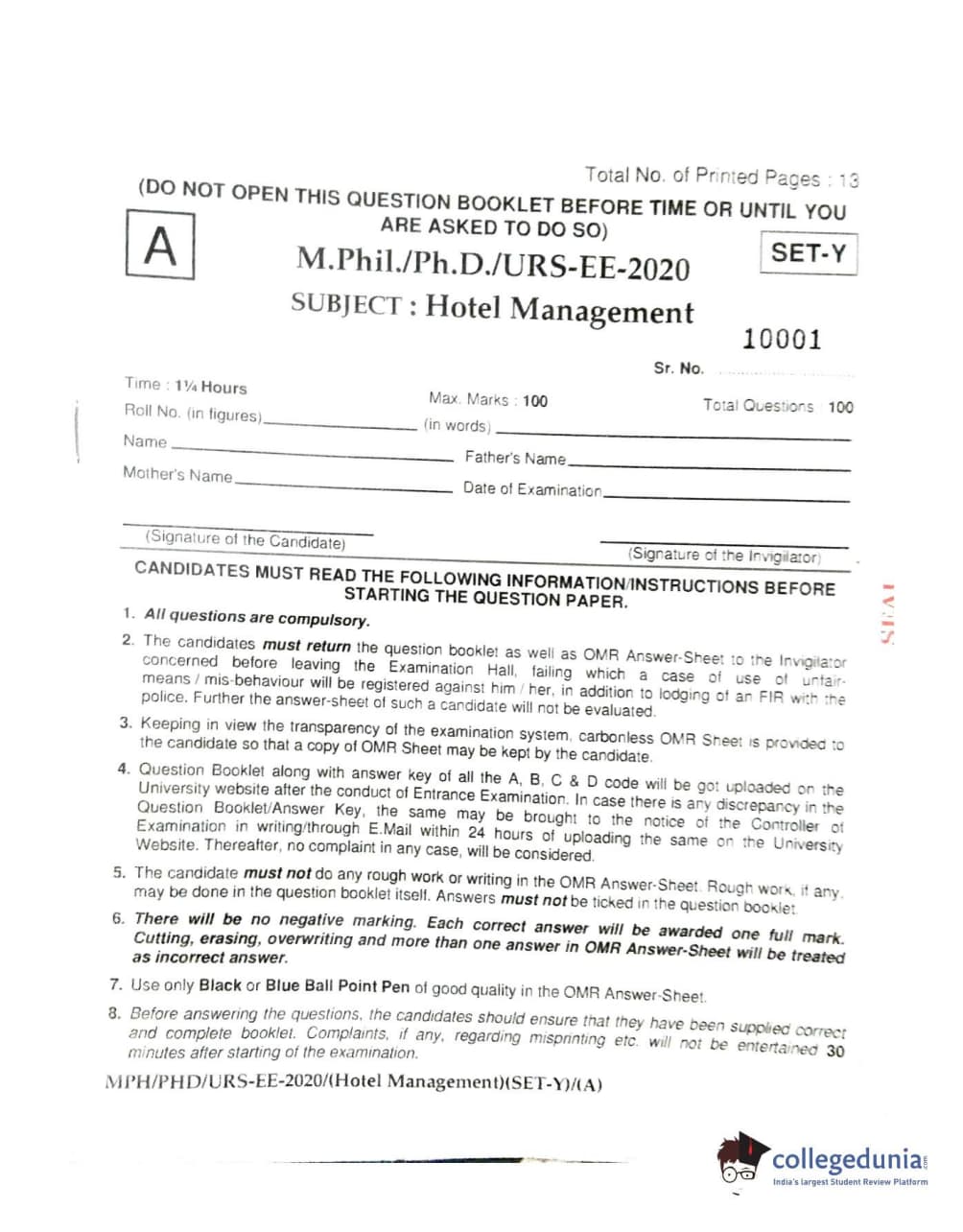 MDUCEE 2020 Ph.D./M.Phil./URS Hotel Management Set A Question paper with answer key pdf is available for download. The exam was successfully organized by Maharishi Dayanand University. The question paper comprised a total of 100 questions.