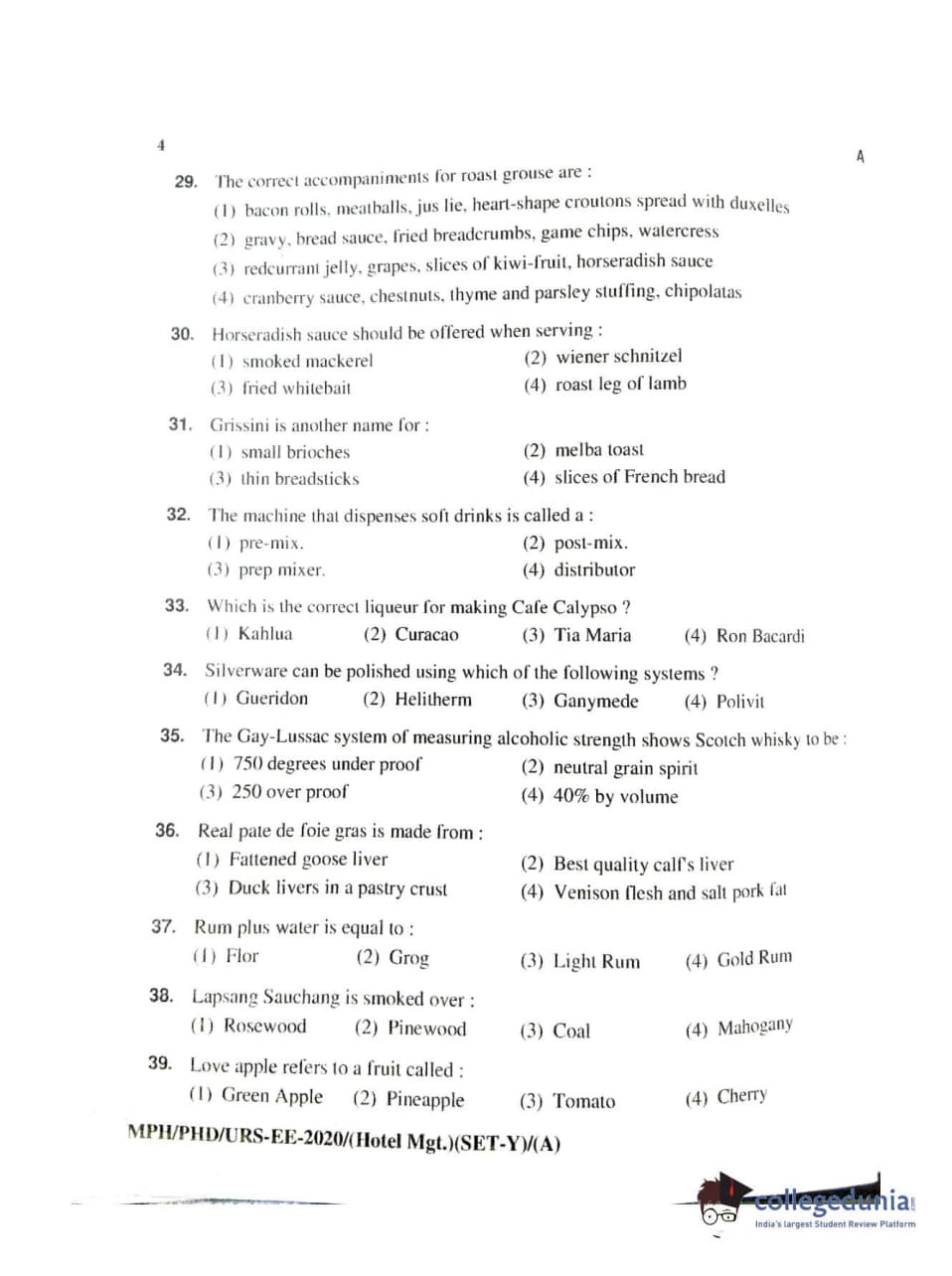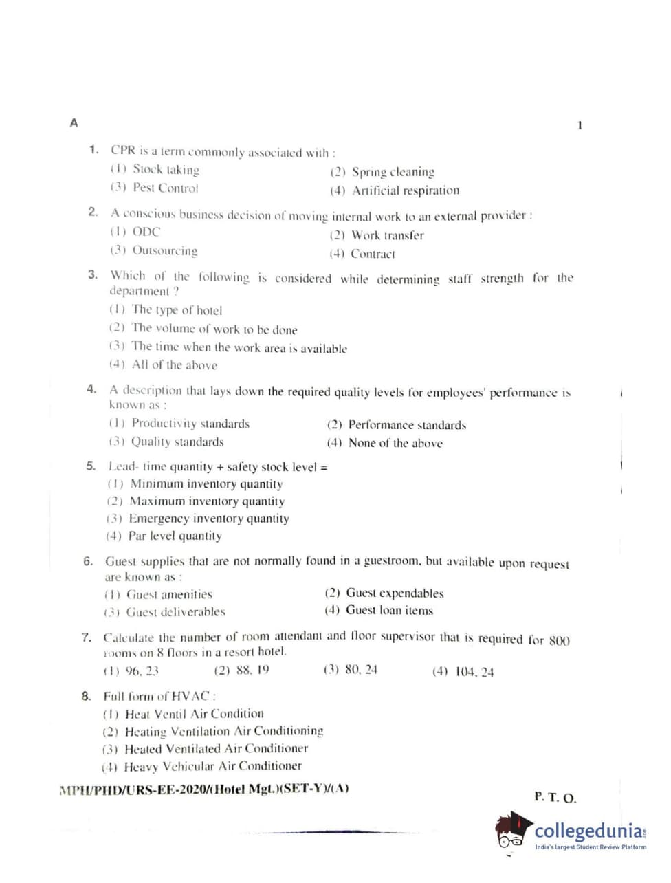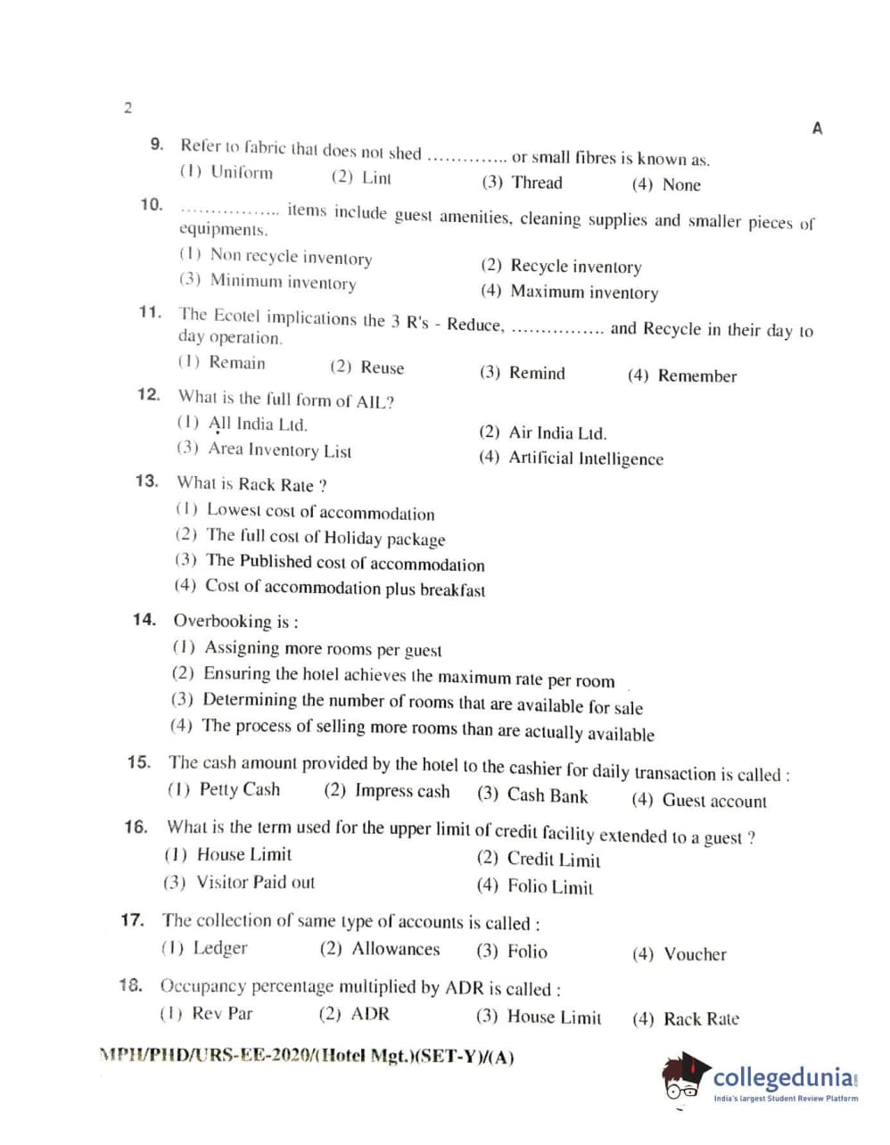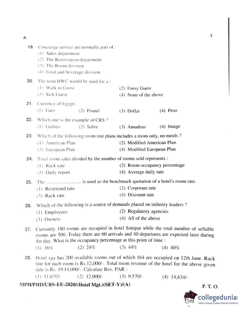 MDUCEE 2020 Ph.D./M.Phil./URS Hotel Management Set A Question Paper with Answer Key PDFs