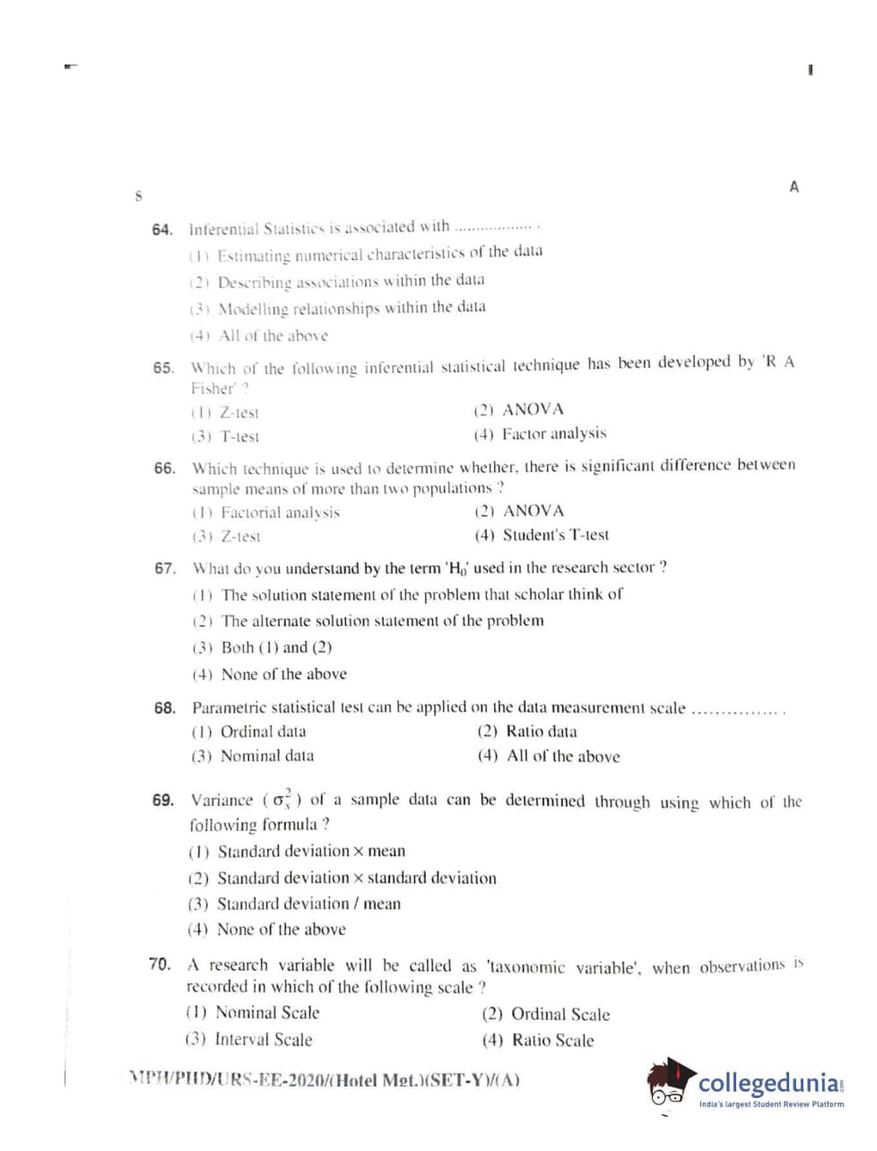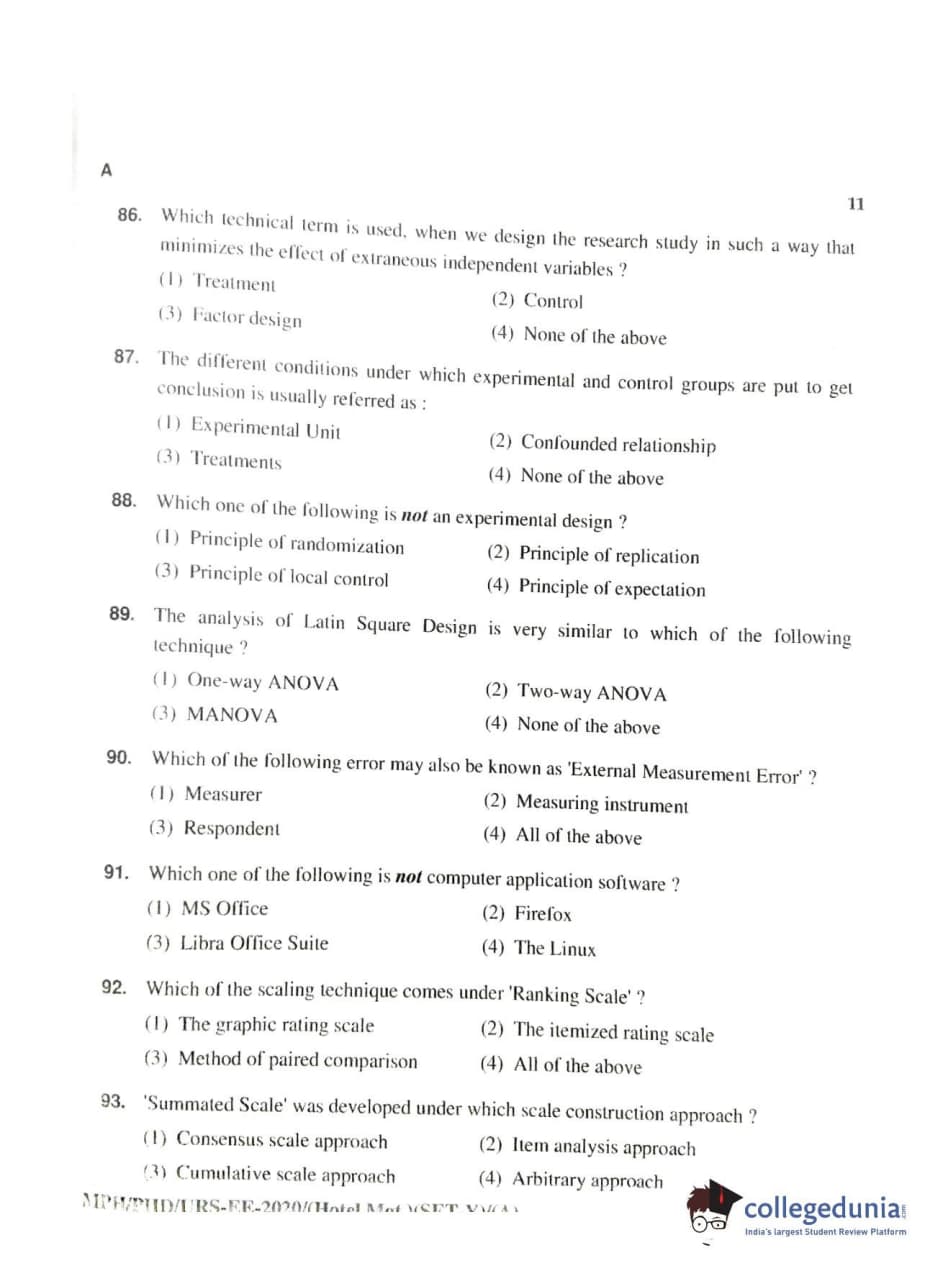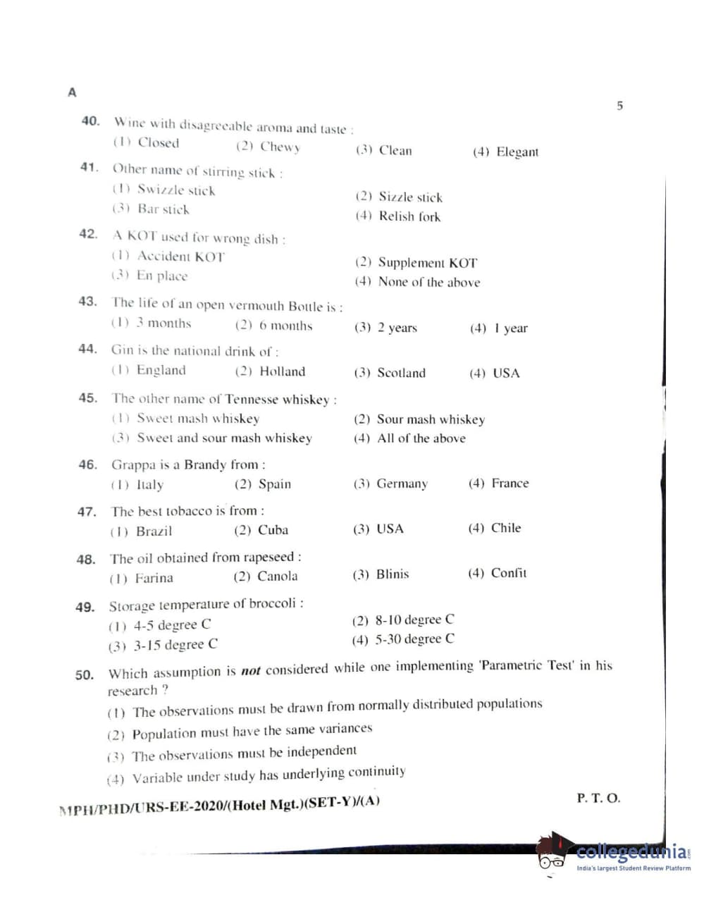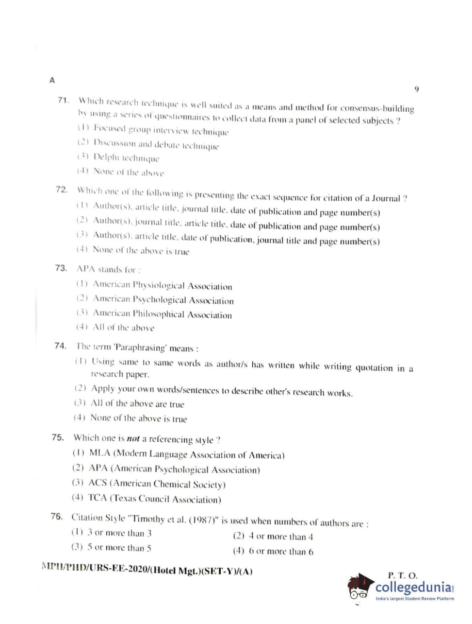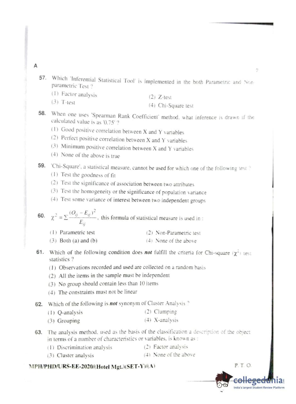 MDUCEE 2020 Ph.D./M.Phil./URS Hotel Management Set A Question Paper with Answer Key PDFs