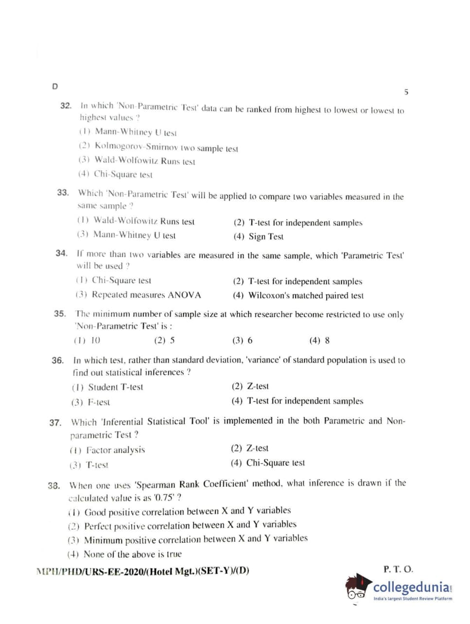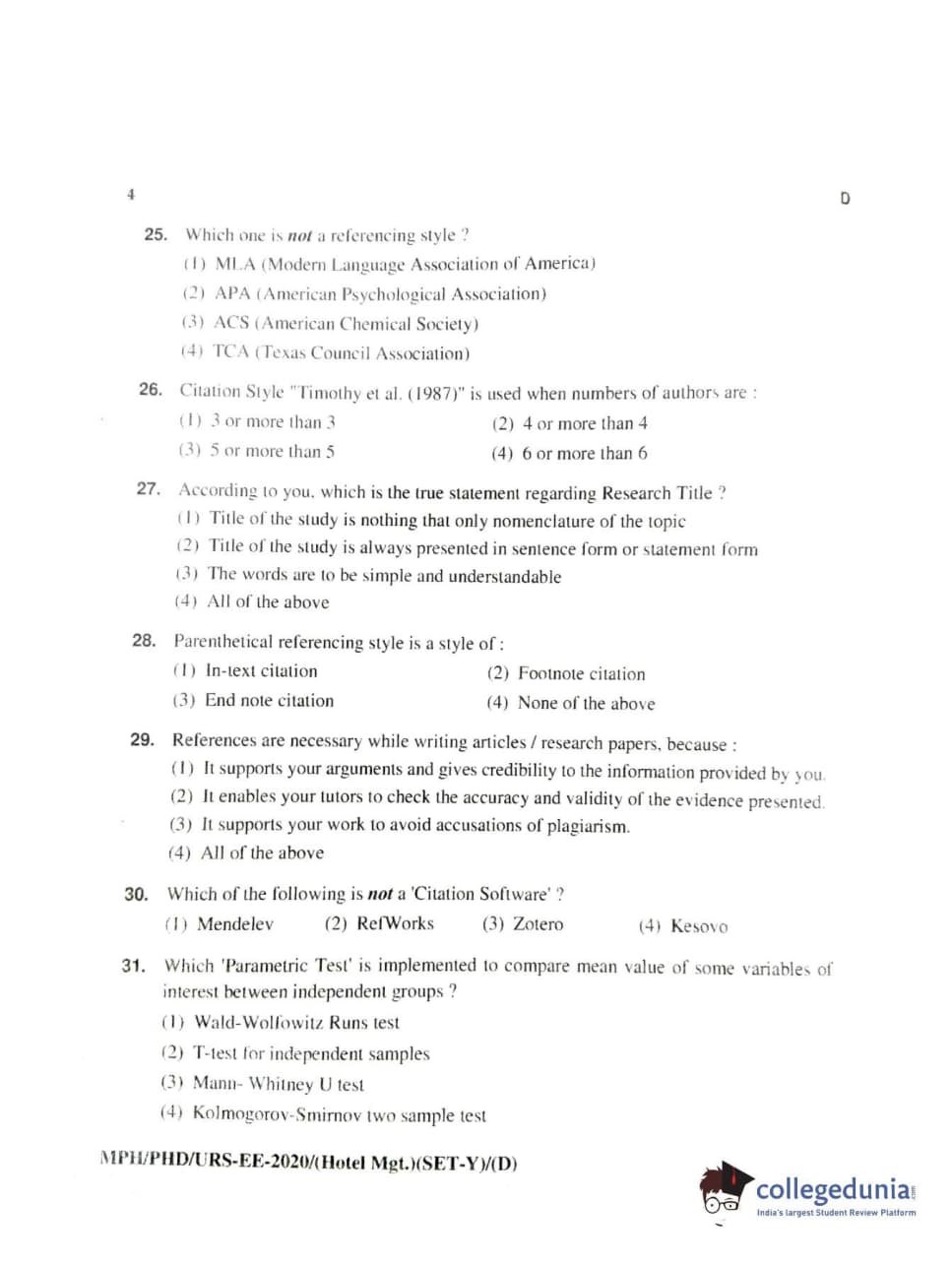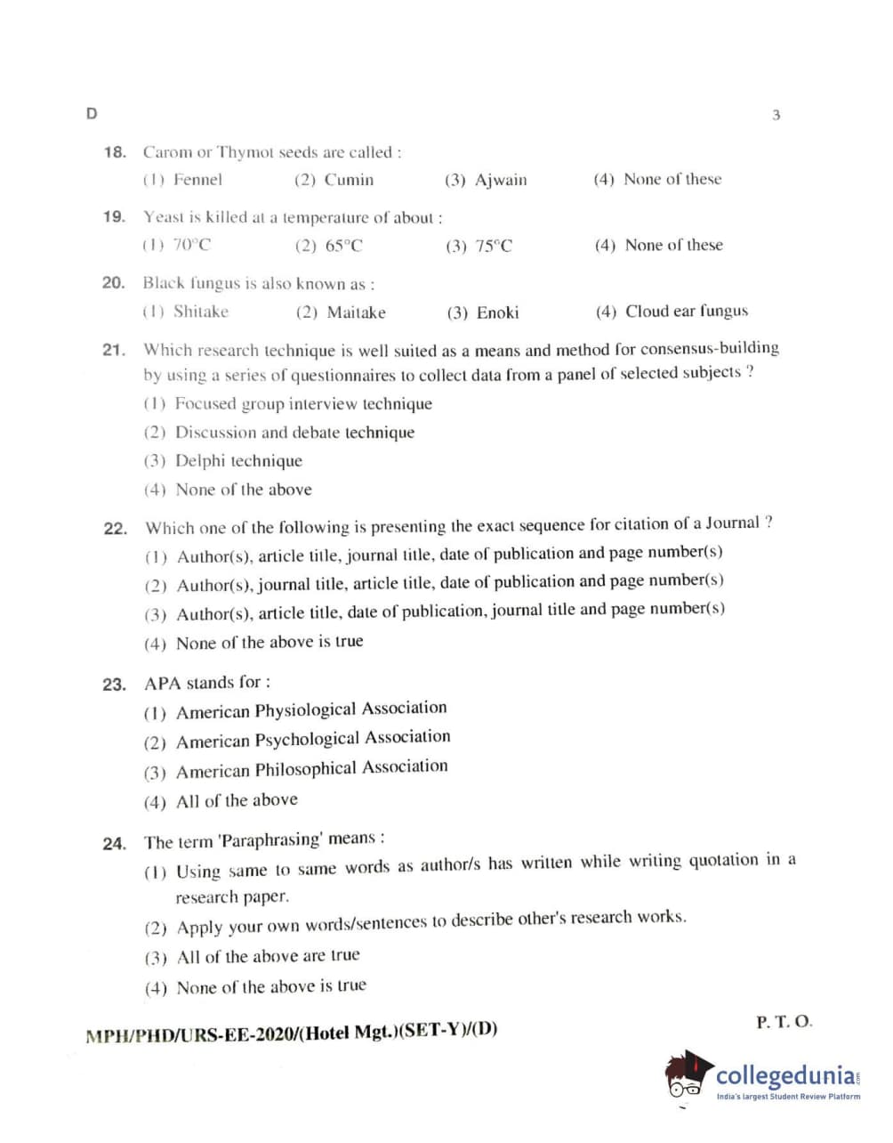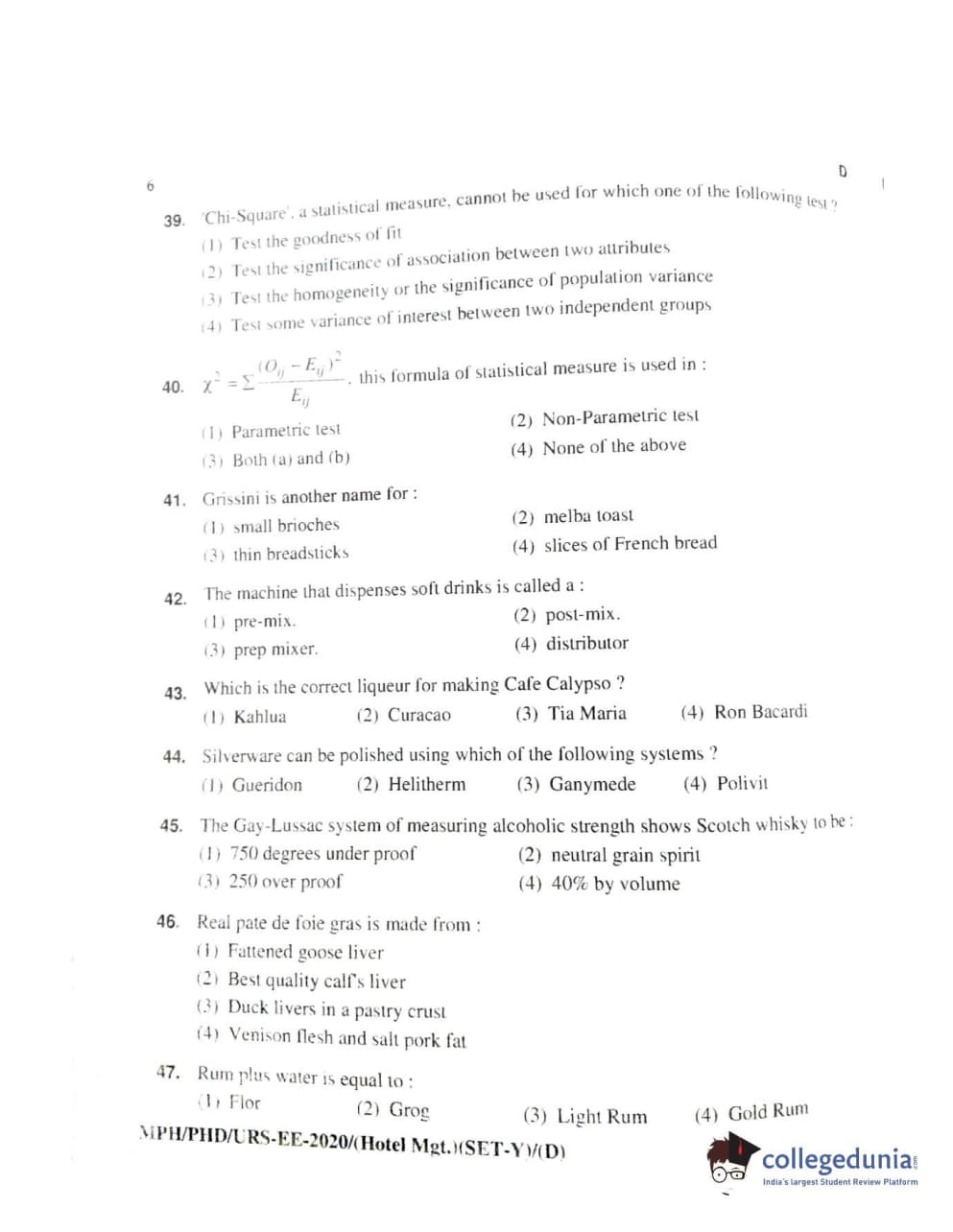 MDUCEE 2020 Ph.D./M.Phil./URS Hotel Management Set D Question Paper with Answer Key PDFs