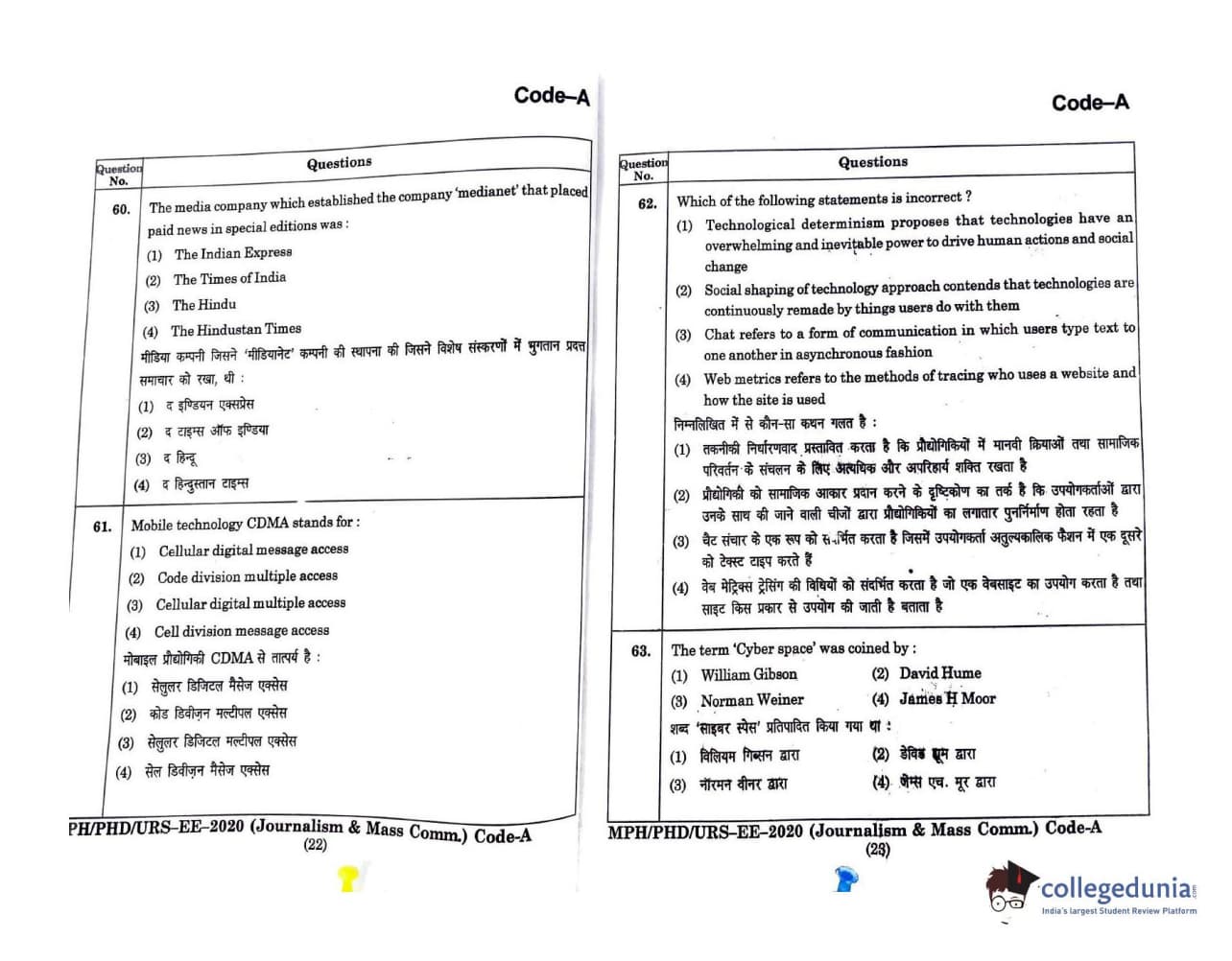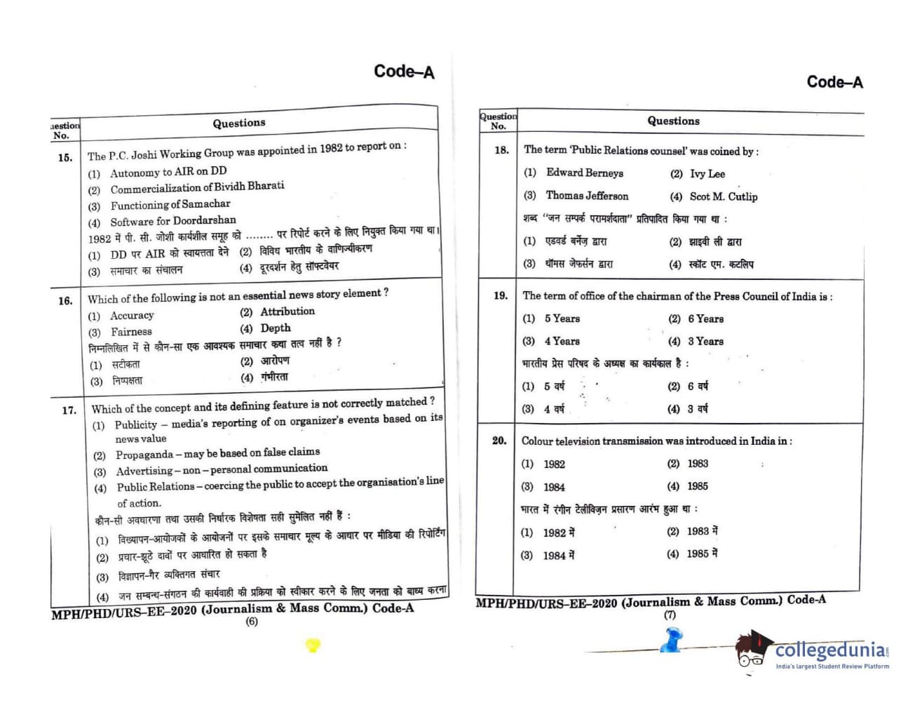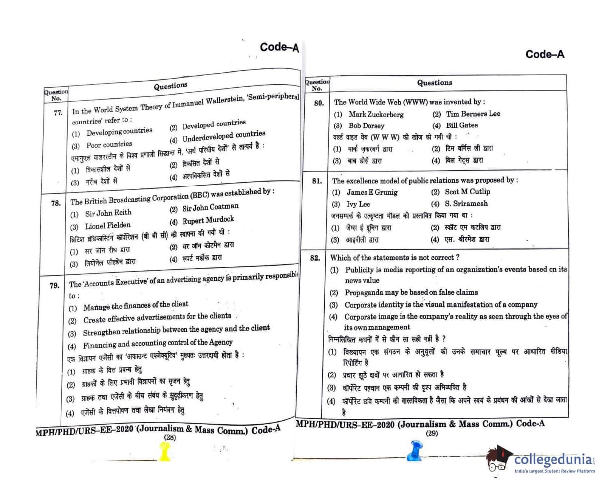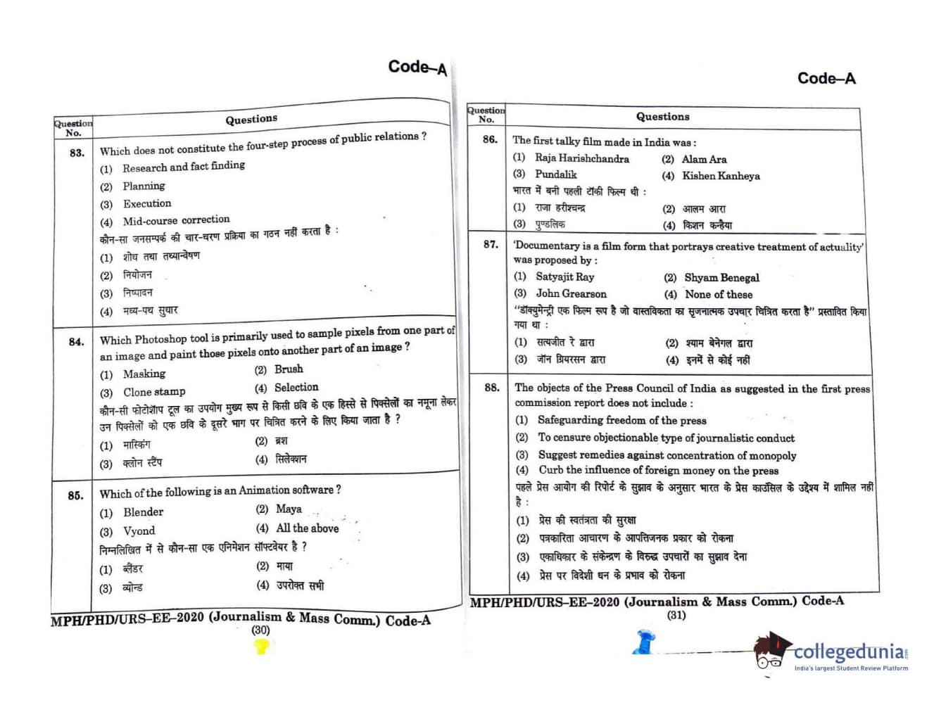 MDUCEE 2020 Ph.D/URS – Journalism and Mass Communication Set A Question Paper with Answer Key PDFs